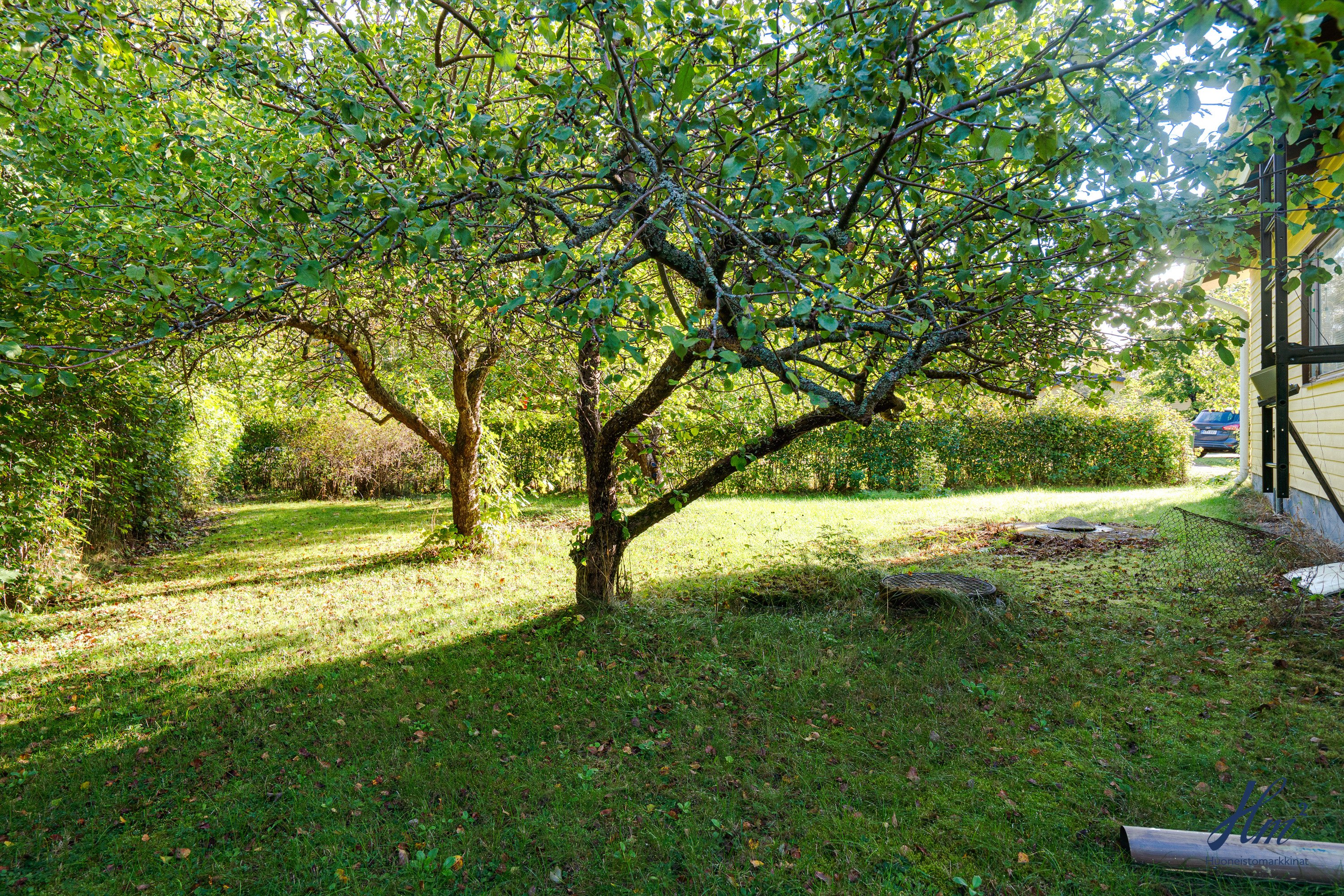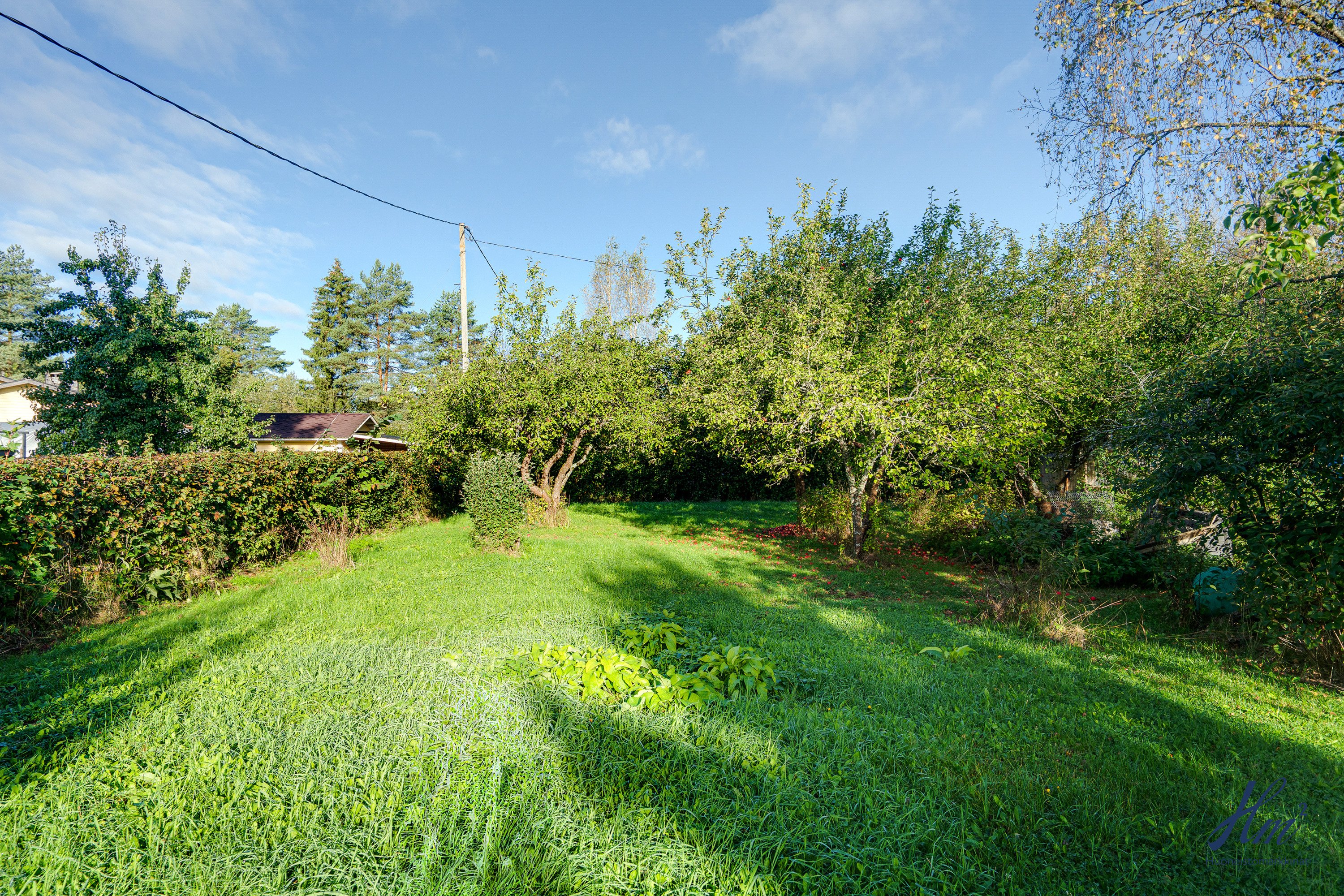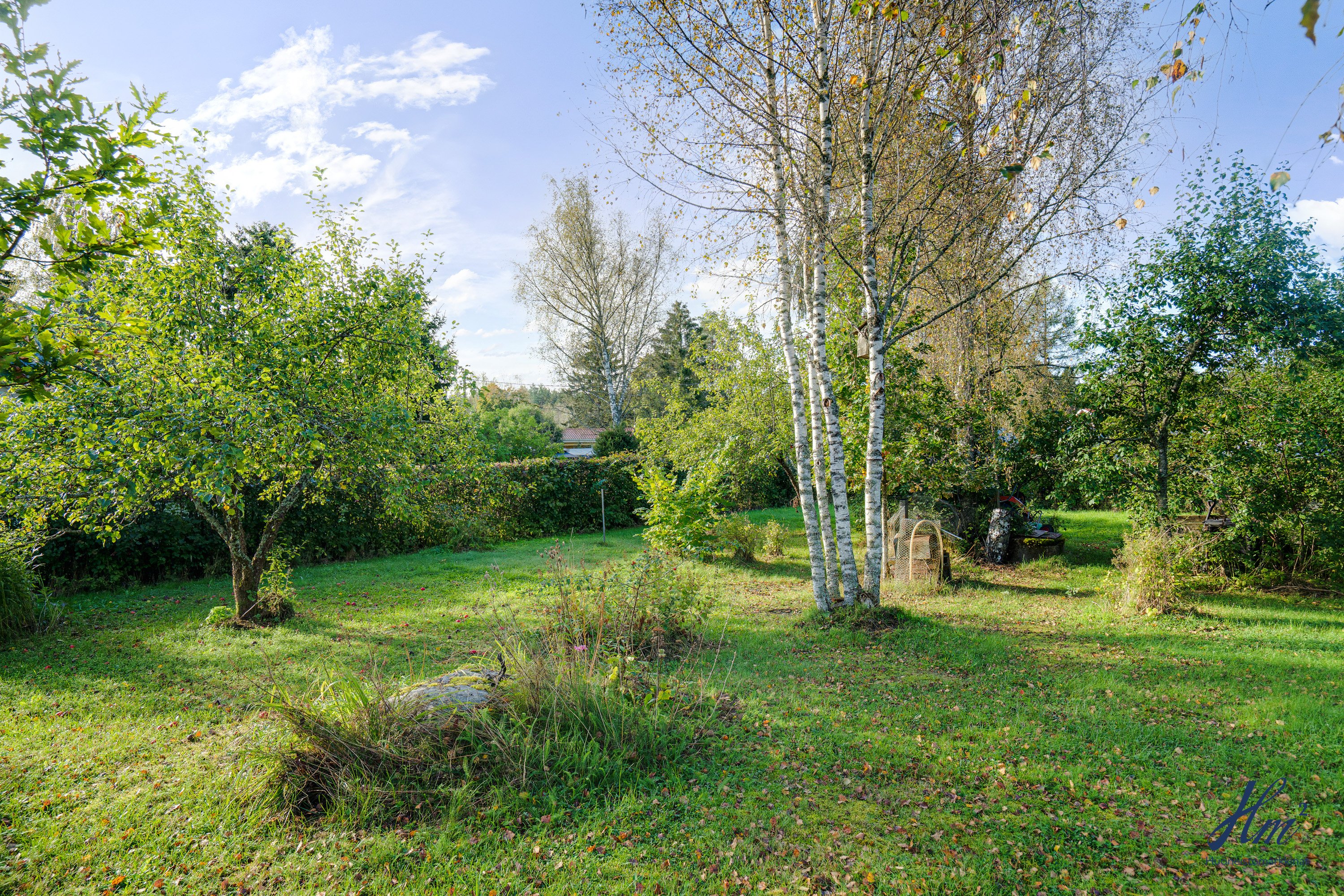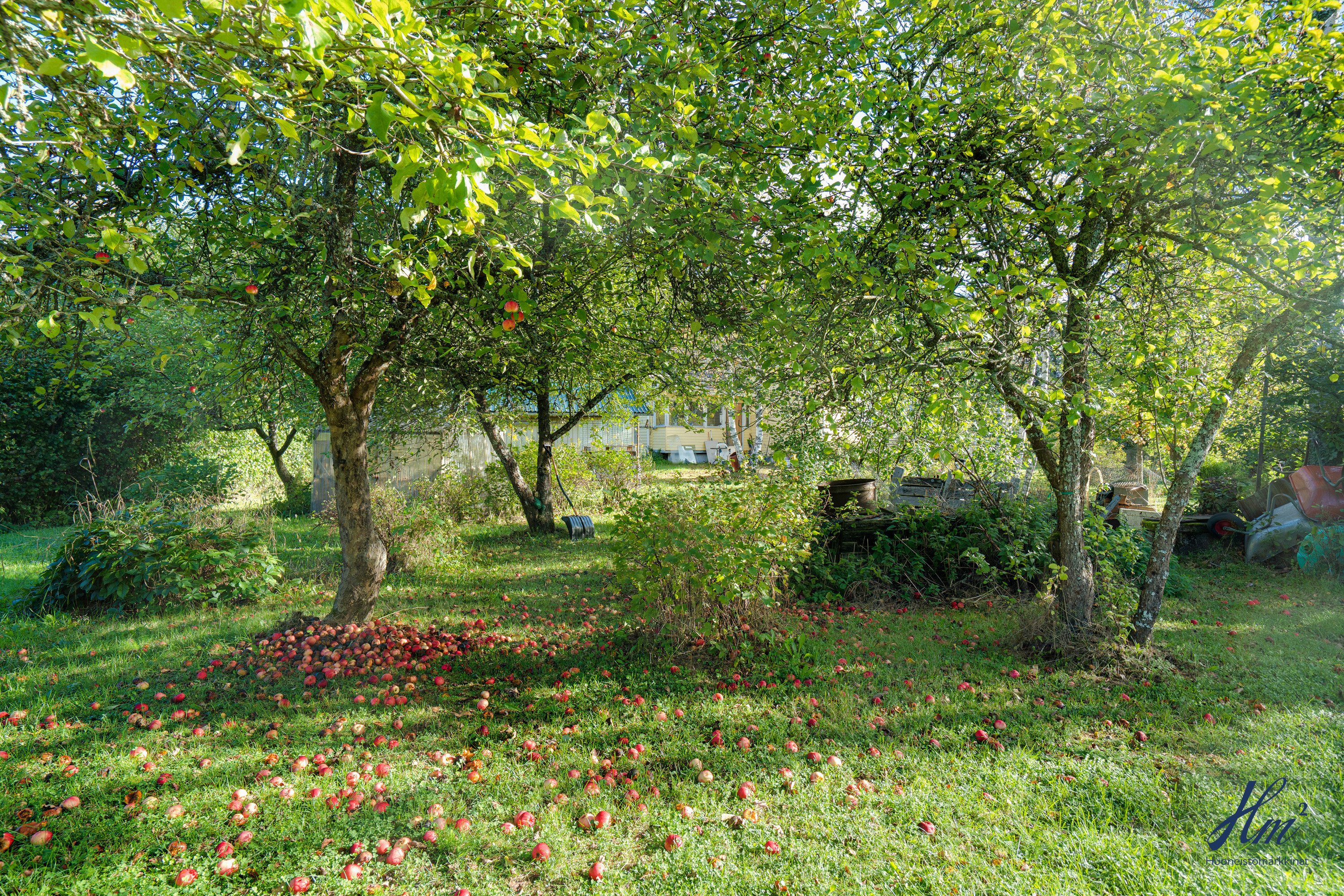 Pihapiiri on todella suojaisa ja maasto suhteellisen tasainen. Tontilla on valmiina uudelle asukkaalle omenapuita sekä marjapensaita ja myös kaivo, josta saa kasteluvettä. Kiinteistöön kuuluu myös oikeudet yhteiseen vesialueeseen.