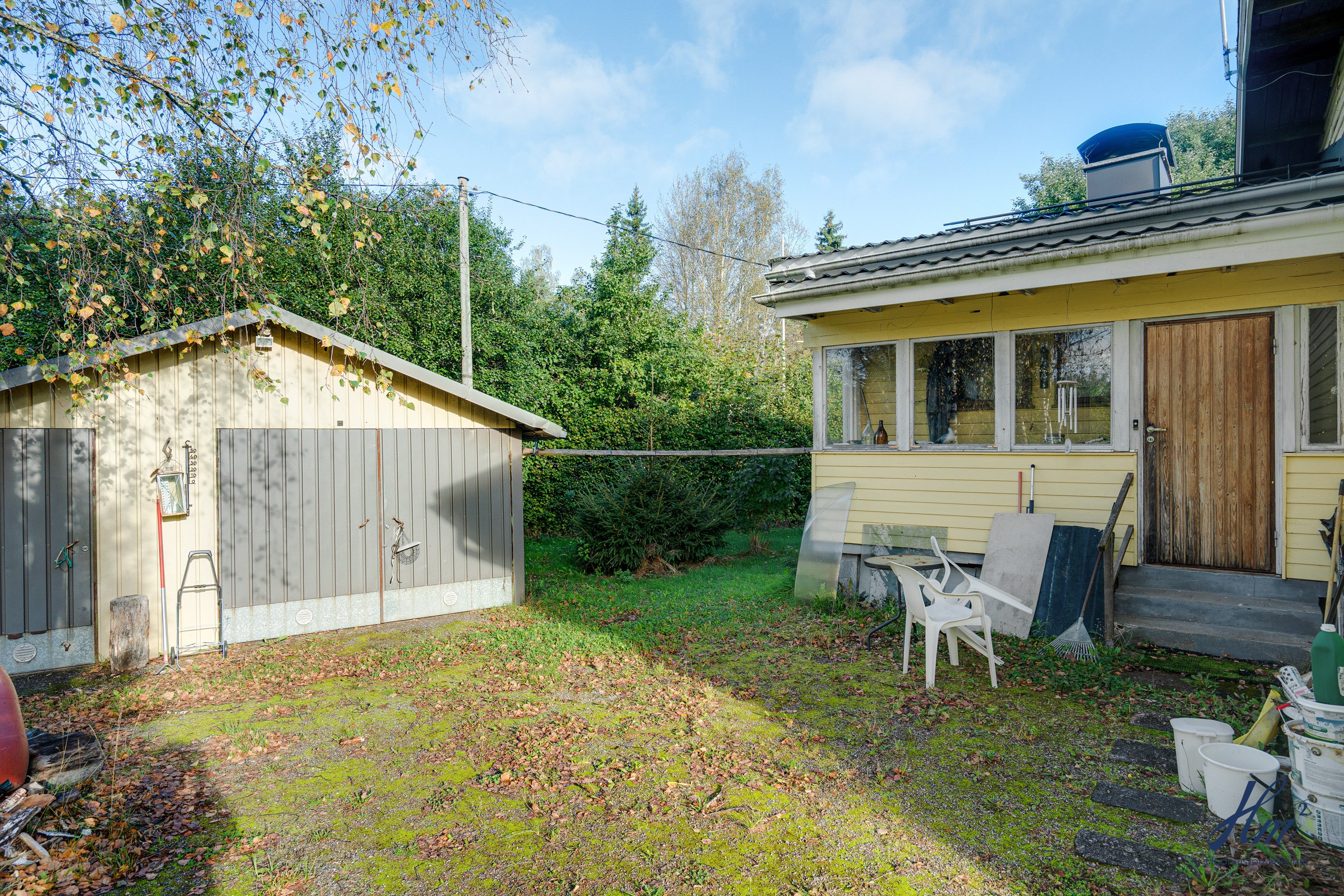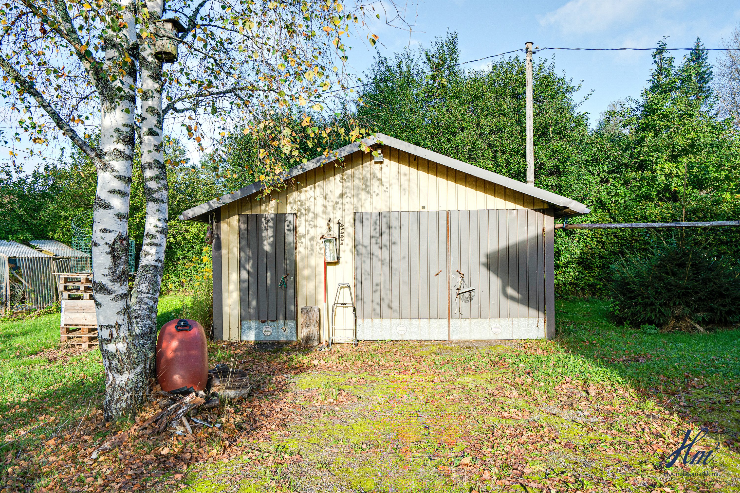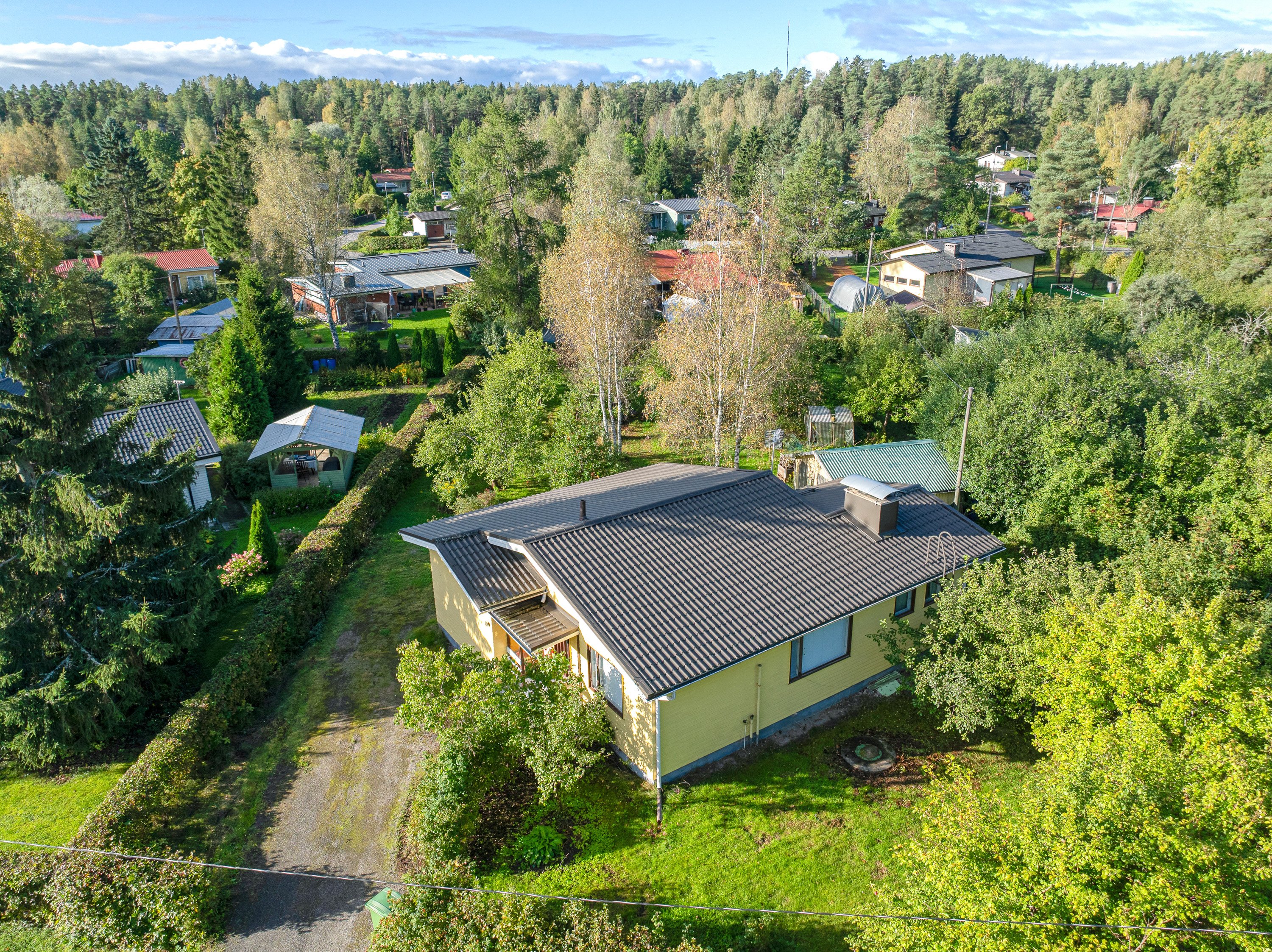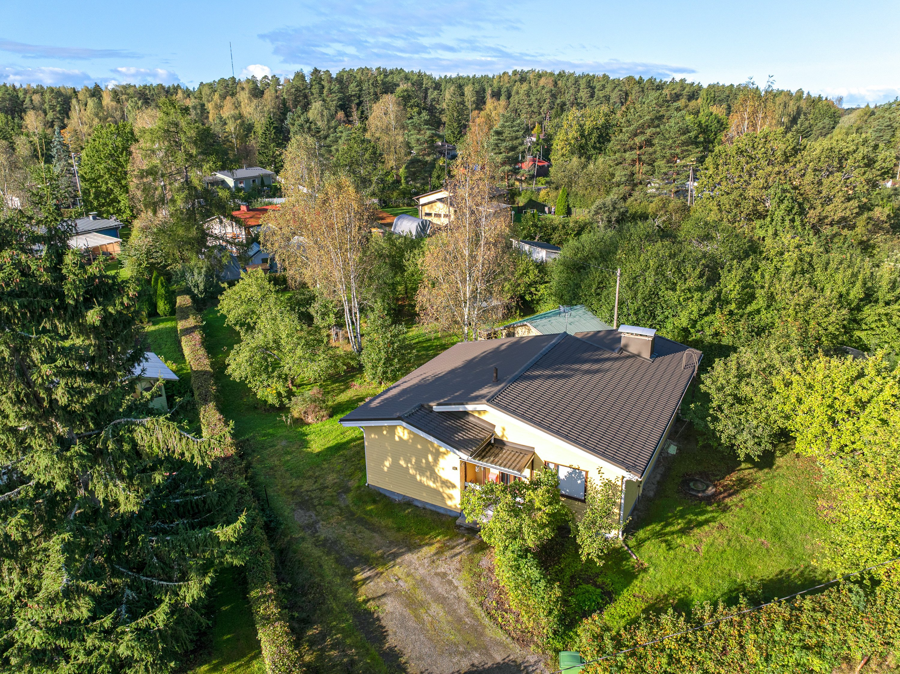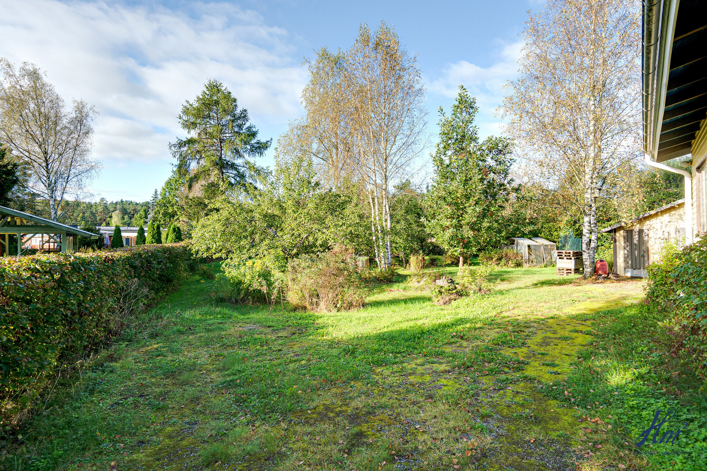 Pihapiiri on todella suojaisa ja maasto suhteellisen tasainen. Tontilla on valmiina uudelle asukkaalle omenapuita sekä marjapensaita ja myös kaivo, josta saa kasteluvettä. Kiinteistöön kuuluu myös oikeudet yhteiseen vesialueeseen.