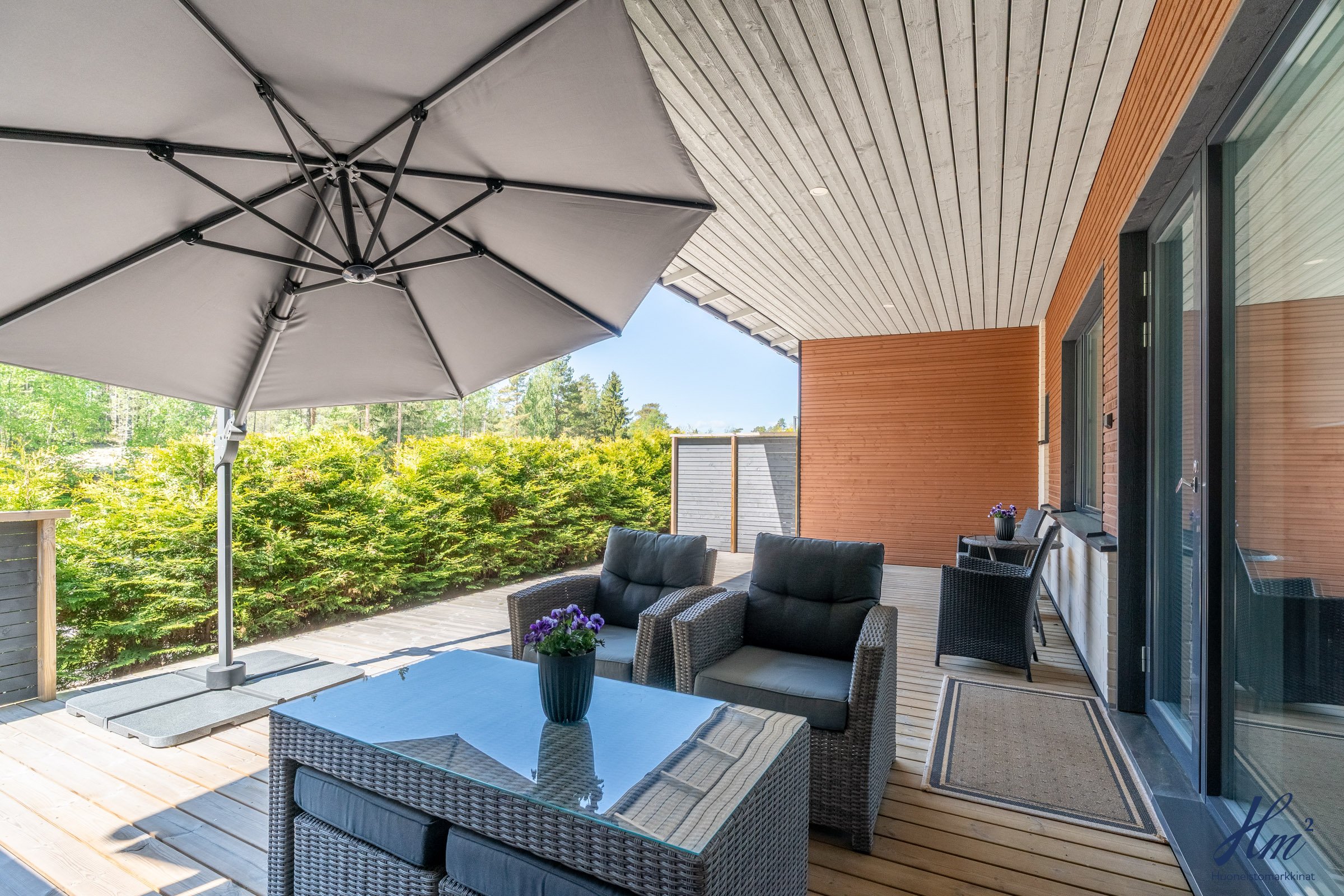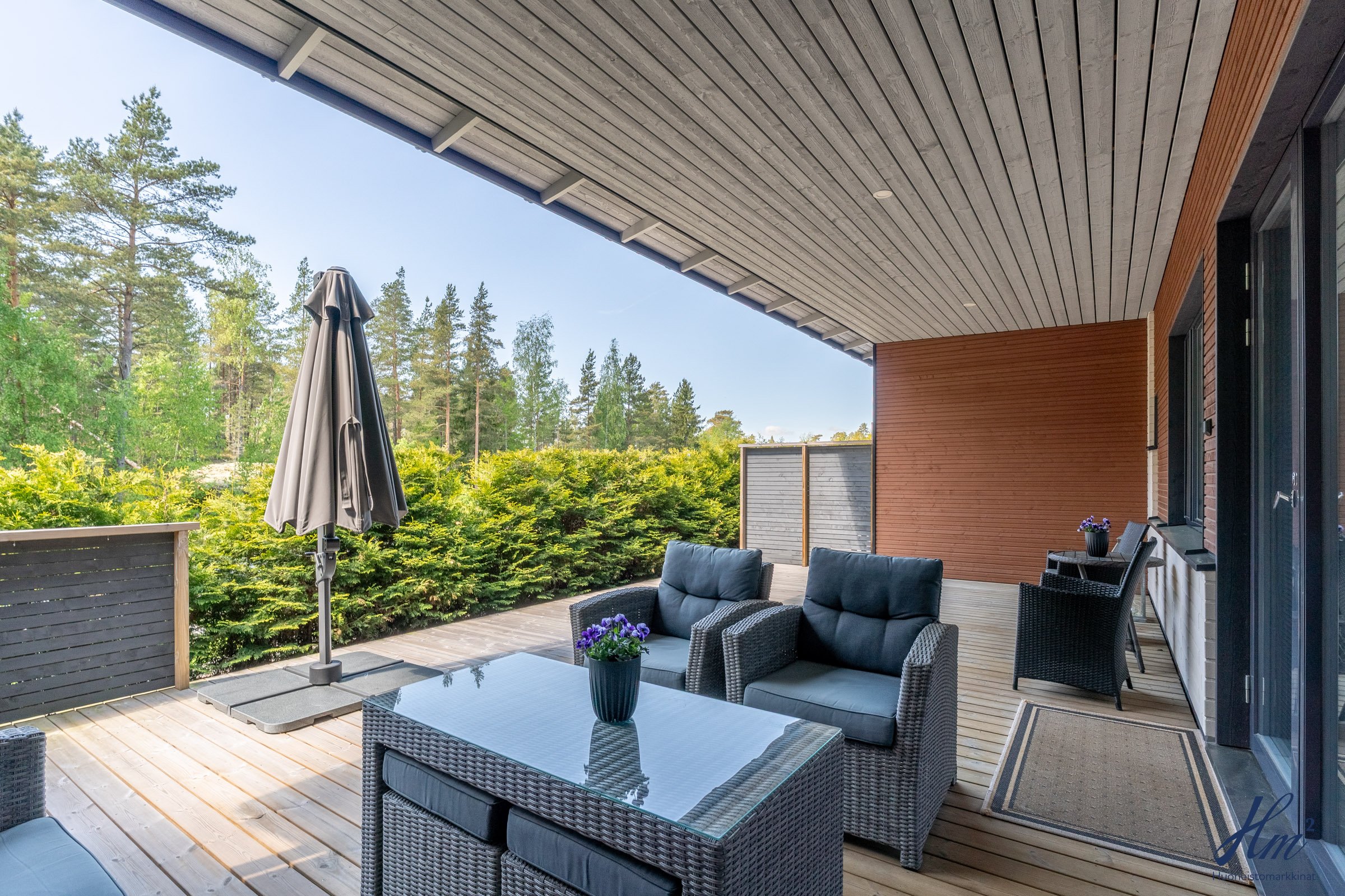 Tämän asunnon sydän on olohuoneen ja keittiön avoin kokonaisuus. Oleskelutilan kruunaa upeat maisemaikkunat, jotka ulottuvat lattiasta lähes kattoon saakka tuoden ympäröivän luonnon osaksi kodin tunnelmaa. Todella iso ja katettu terassi, missä on tilaa, vaikka isolle ruokaryhmälle.