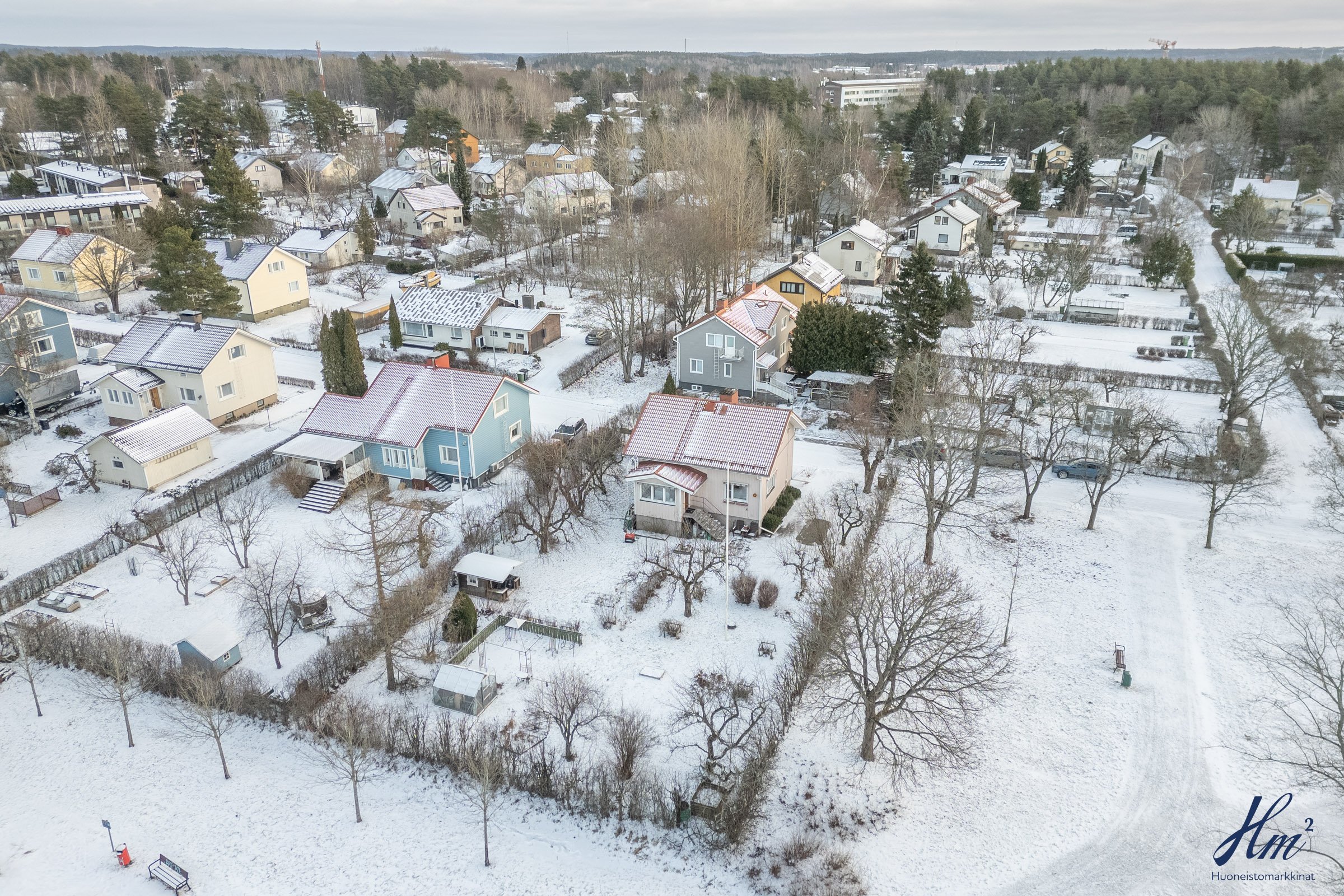 Reilunkokoinen 928 m²:n puutarhatontti kutsuu viihtymään ulkona, ja tontin vuokrasopimus on uusittu aina vuoteen 2065 saakka. Vehreä ympäristö ja puiston läheisyys tuovat asumiseen omaa rauhaa ja luonnon tuntua.