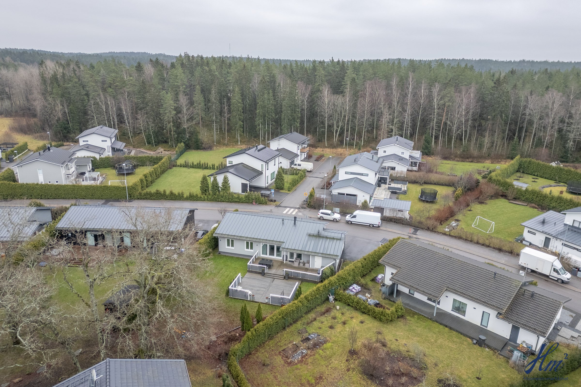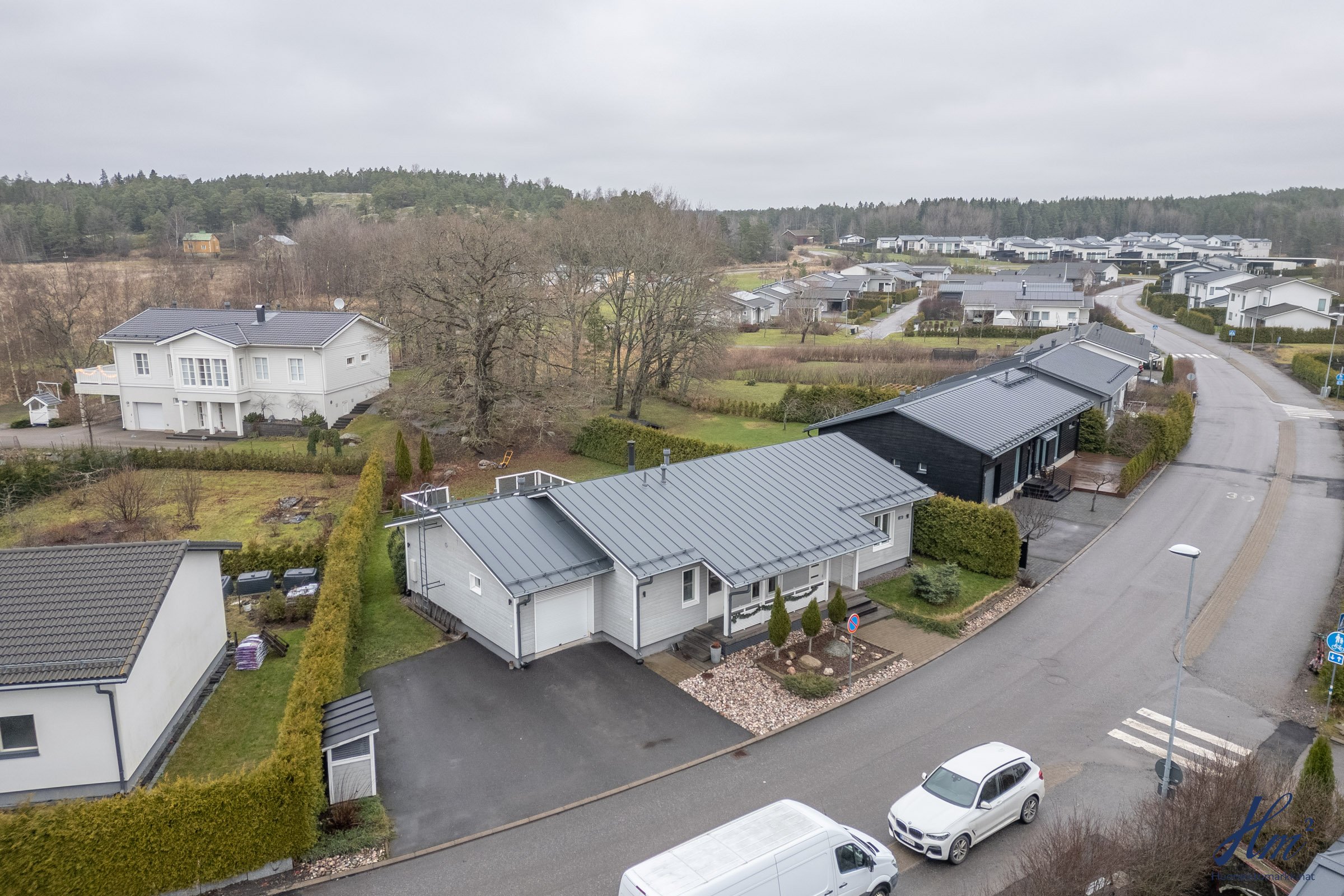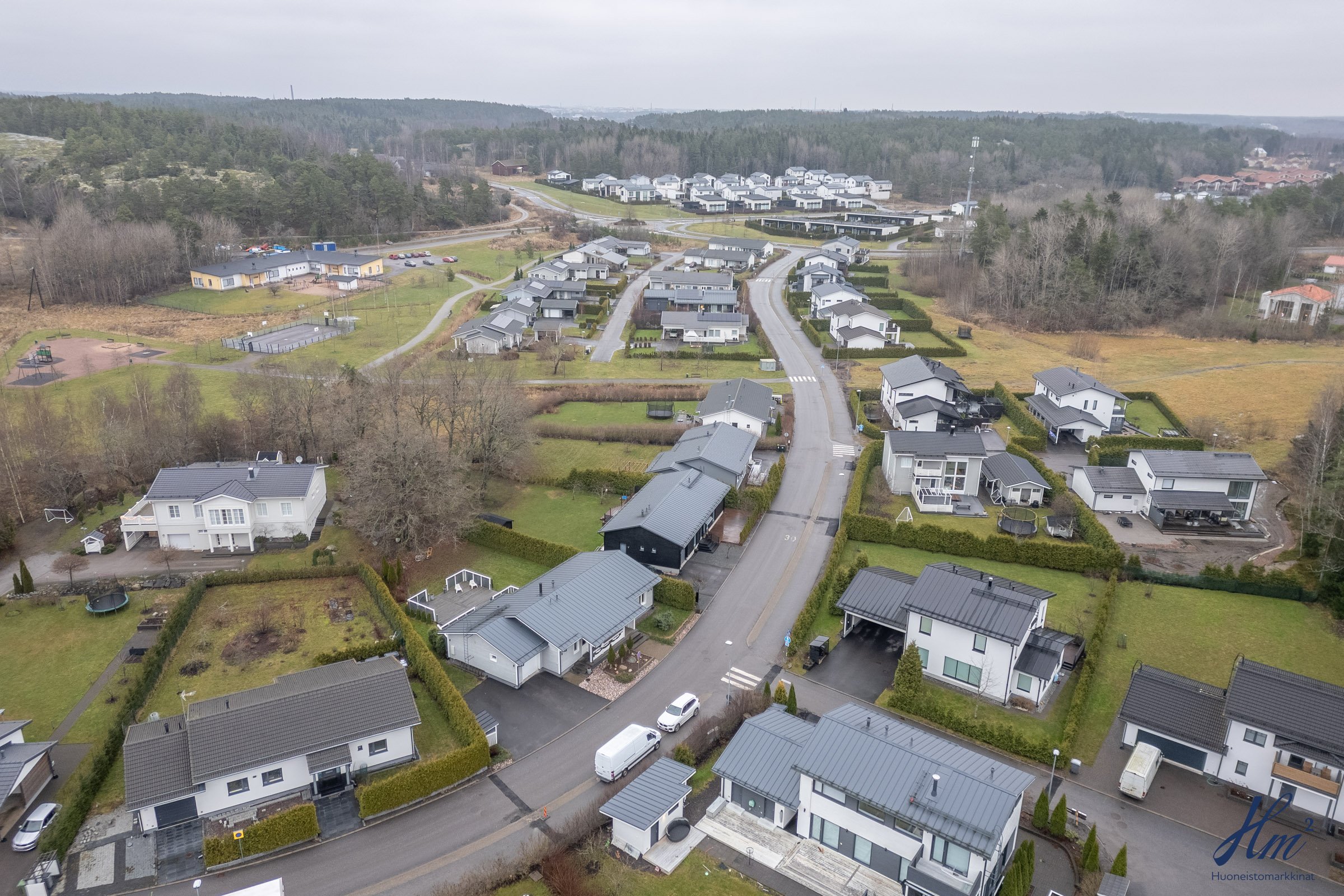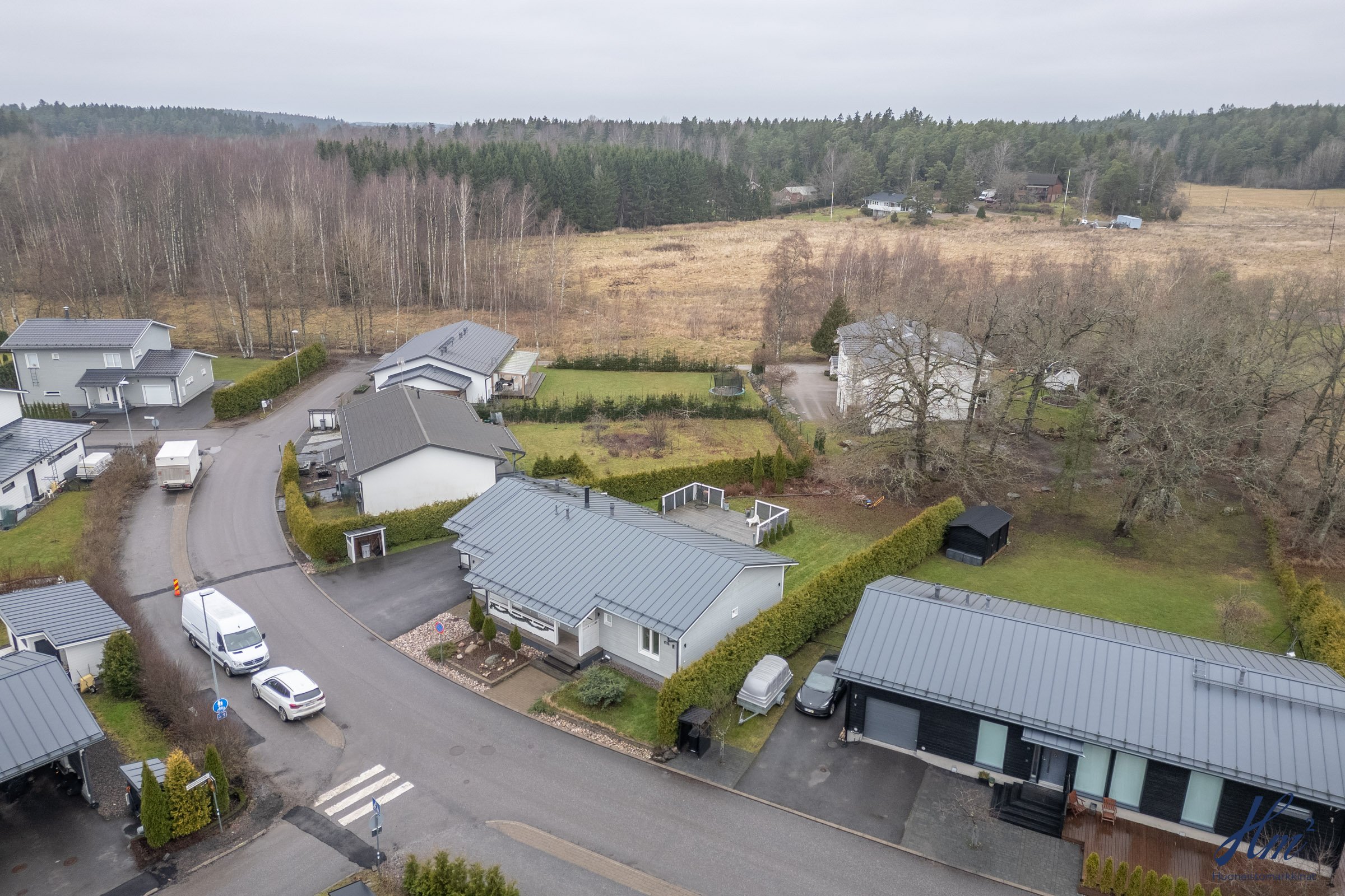 Vuonna 2012 rakennettu koti sopii mainiosti esimerkiksi lapsiperheelle, sillä koulu ja päiväkoti löytyvät vain lyhyen kävelymatkan päästä. Makuuhuoneita on tällä hetkellä kolme, ja neljännen saa muokattua tarpeen mukaan takkahuoneeseen. Arjen helppoutta lisäävät mm. yksitasoisuus, lämmin autotalli, tilavat huoneet, väljä eteinen sekä näppärä kodinhoitohuone omalla sisäänkäynnillä. Suuri terassi tarjoaa runsaasti paikkoja oleskeluun ja nurmialue suojaisaa leikkitilaa. Lisäneliöitä säilytykseen tuo tallin vieressä oleva lämmin varasto, johon pääsee sekä tallin kautta että takapihan puolelta.