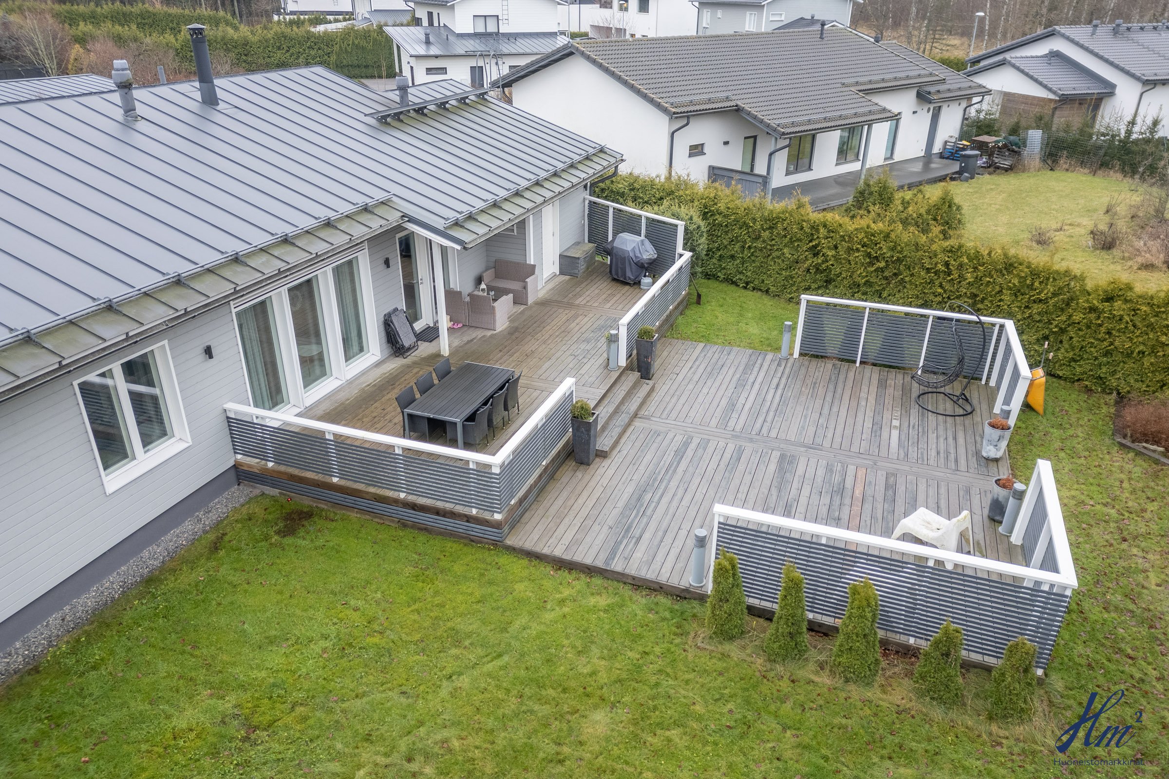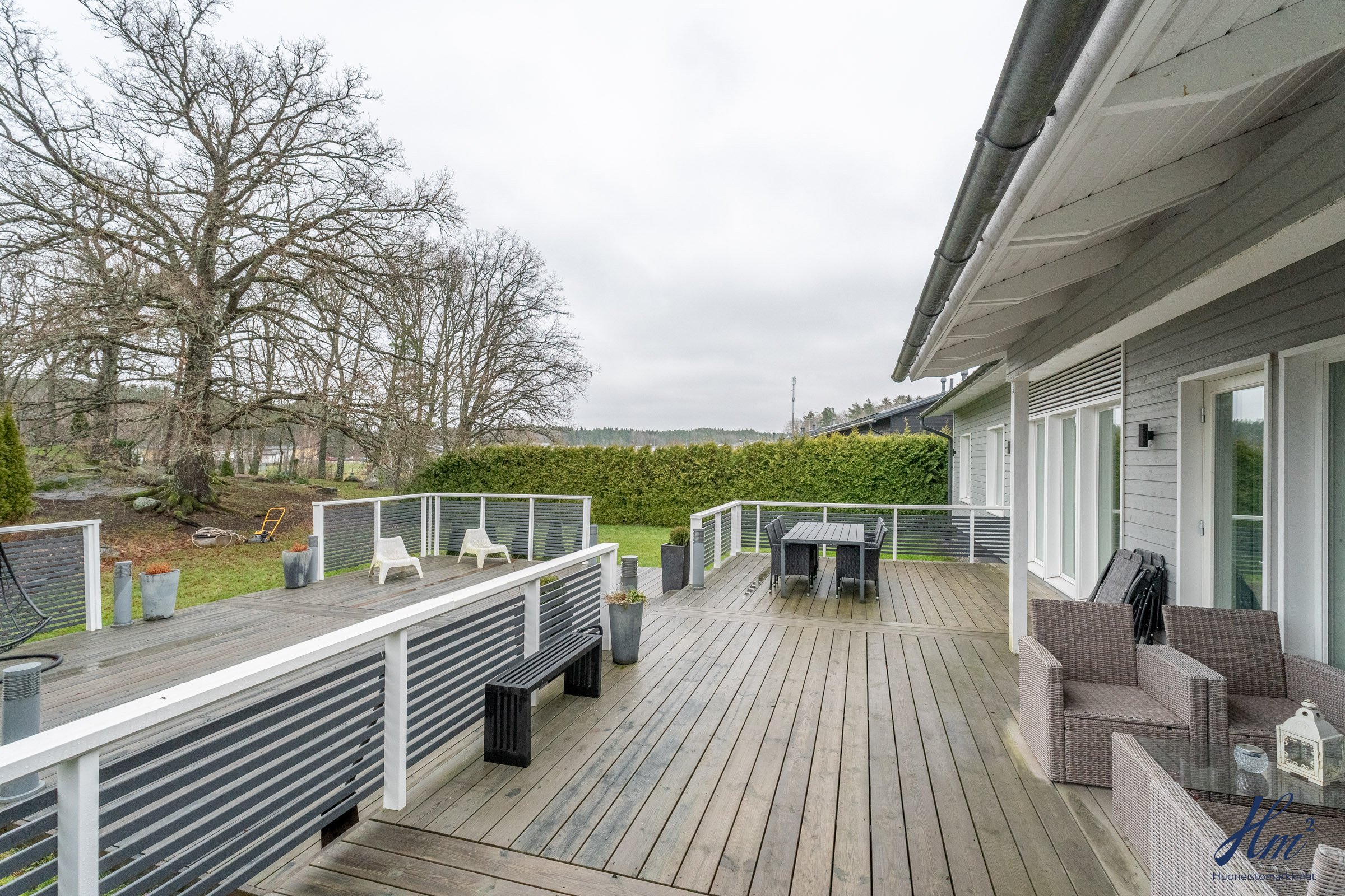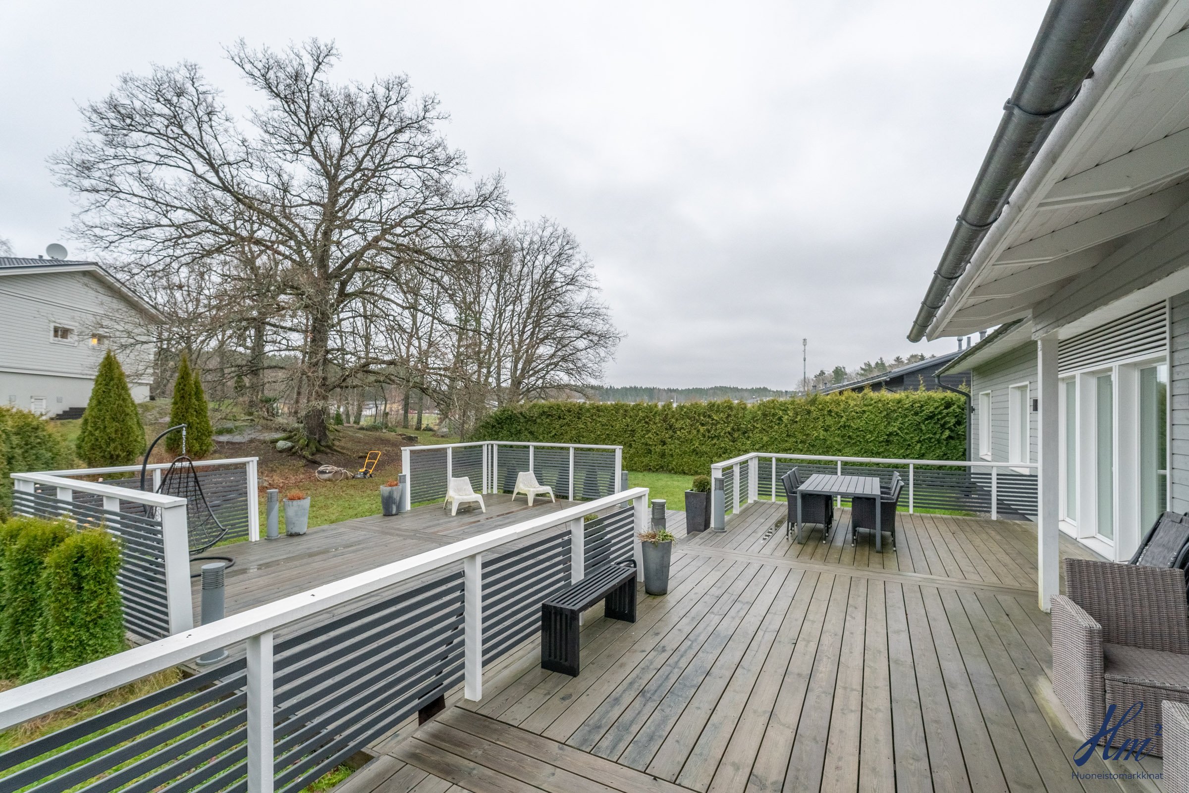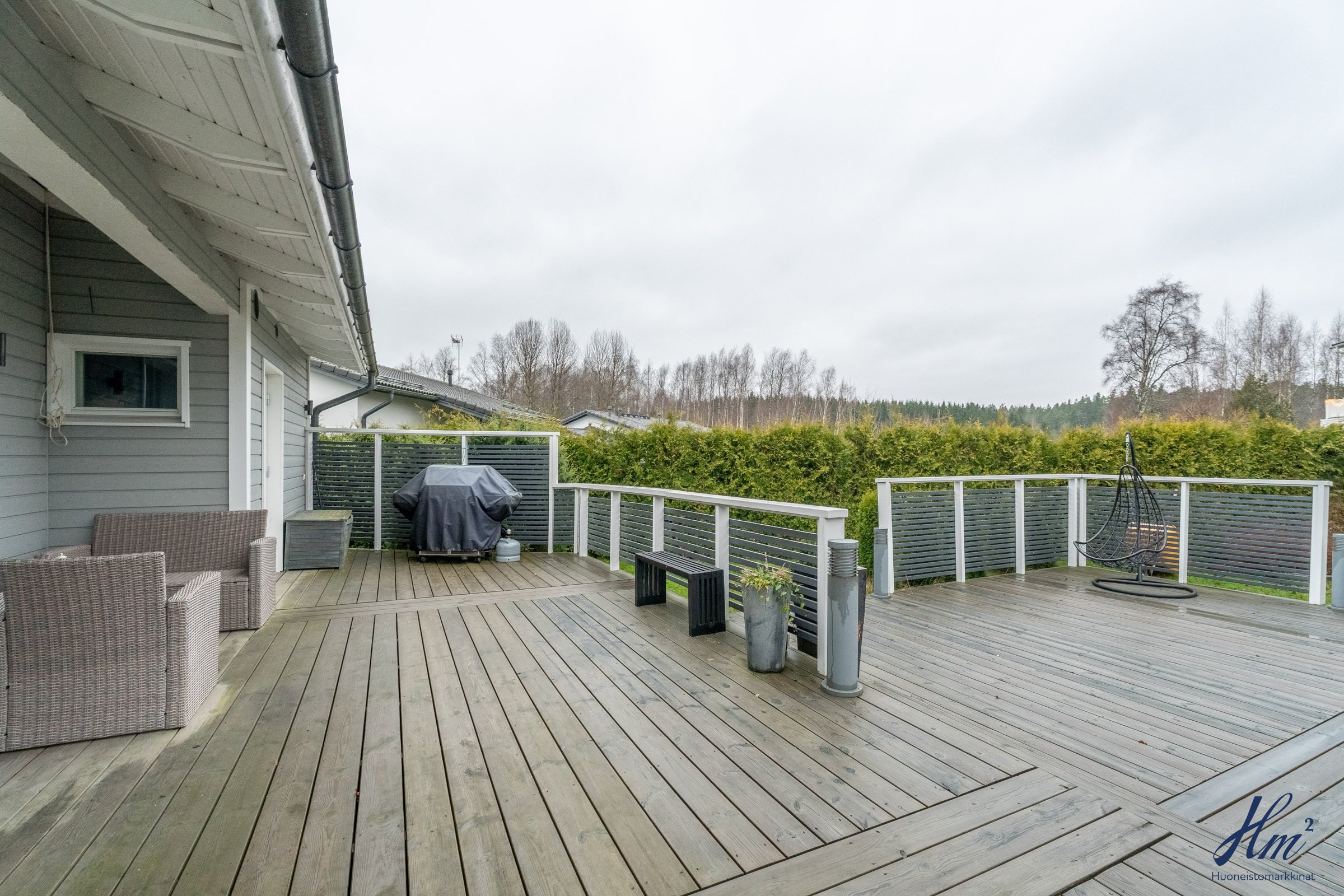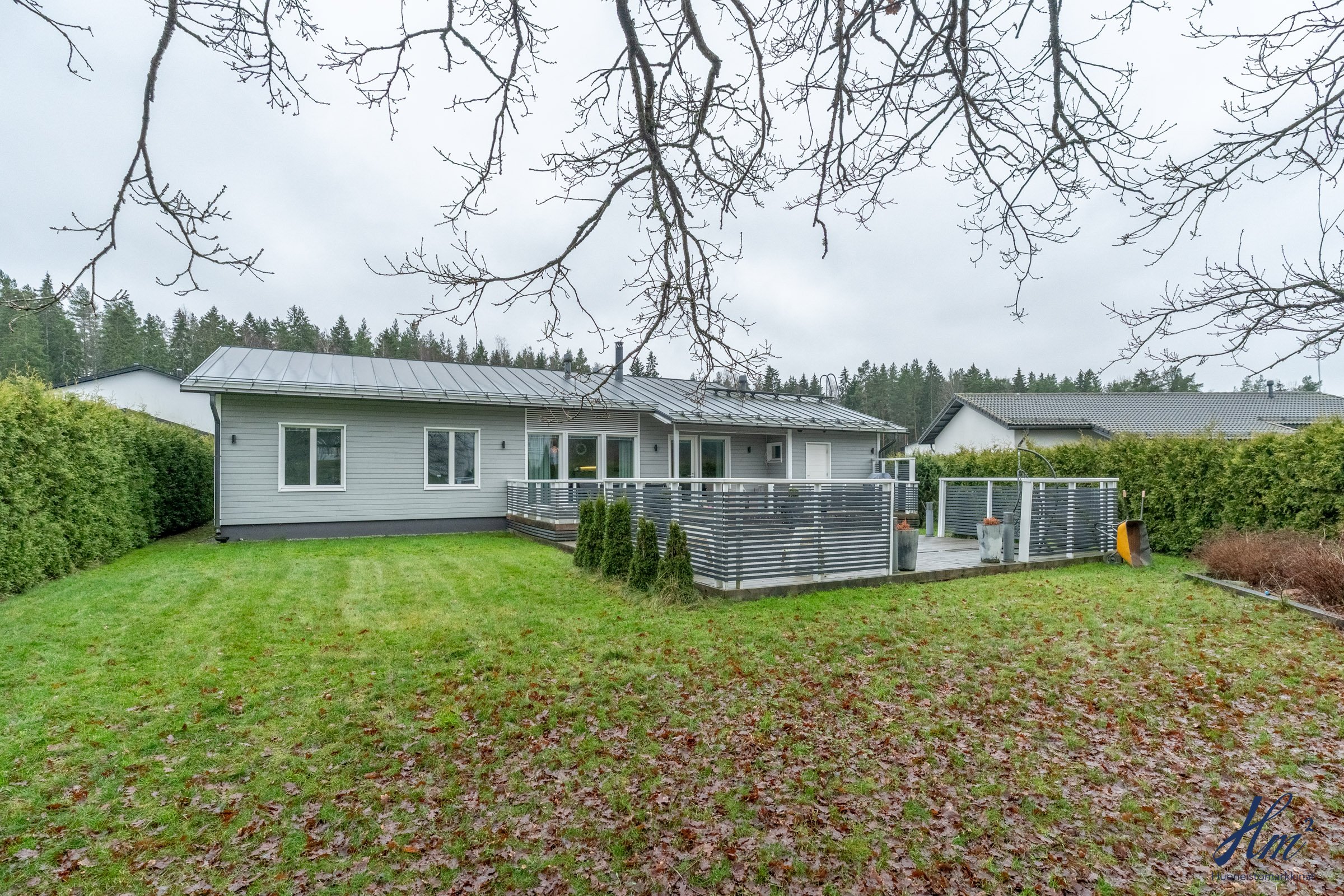 Vuonna 2012 rakennettu koti sopii mainiosti esimerkiksi lapsiperheelle, sillä koulu ja päiväkoti löytyvät vain lyhyen kävelymatkan päästä. Makuuhuoneita on tällä hetkellä kolme, ja neljännen saa muokattua tarpeen mukaan takkahuoneeseen. Arjen helppoutta lisäävät mm. yksitasoisuus, lämmin autotalli, tilavat huoneet, väljä eteinen sekä näppärä kodinhoitohuone omalla sisäänkäynnillä. Suuri terassi tarjoaa runsaasti paikkoja oleskeluun ja nurmialue suojaisaa leikkitilaa. Lisäneliöitä säilytykseen tuo tallin vieressä oleva lämmin varasto, johon pääsee sekä tallin kautta että takapihan puolelta.