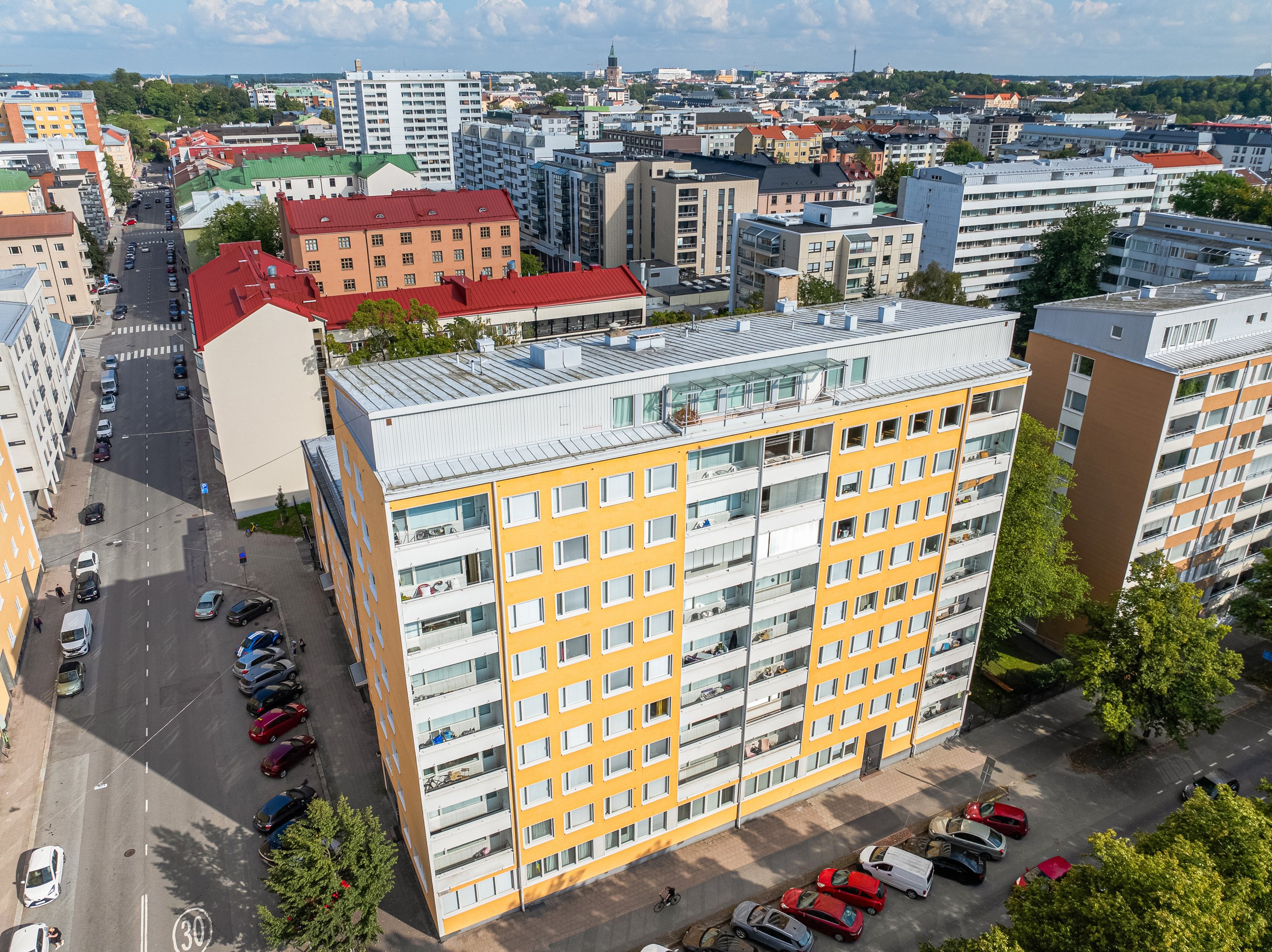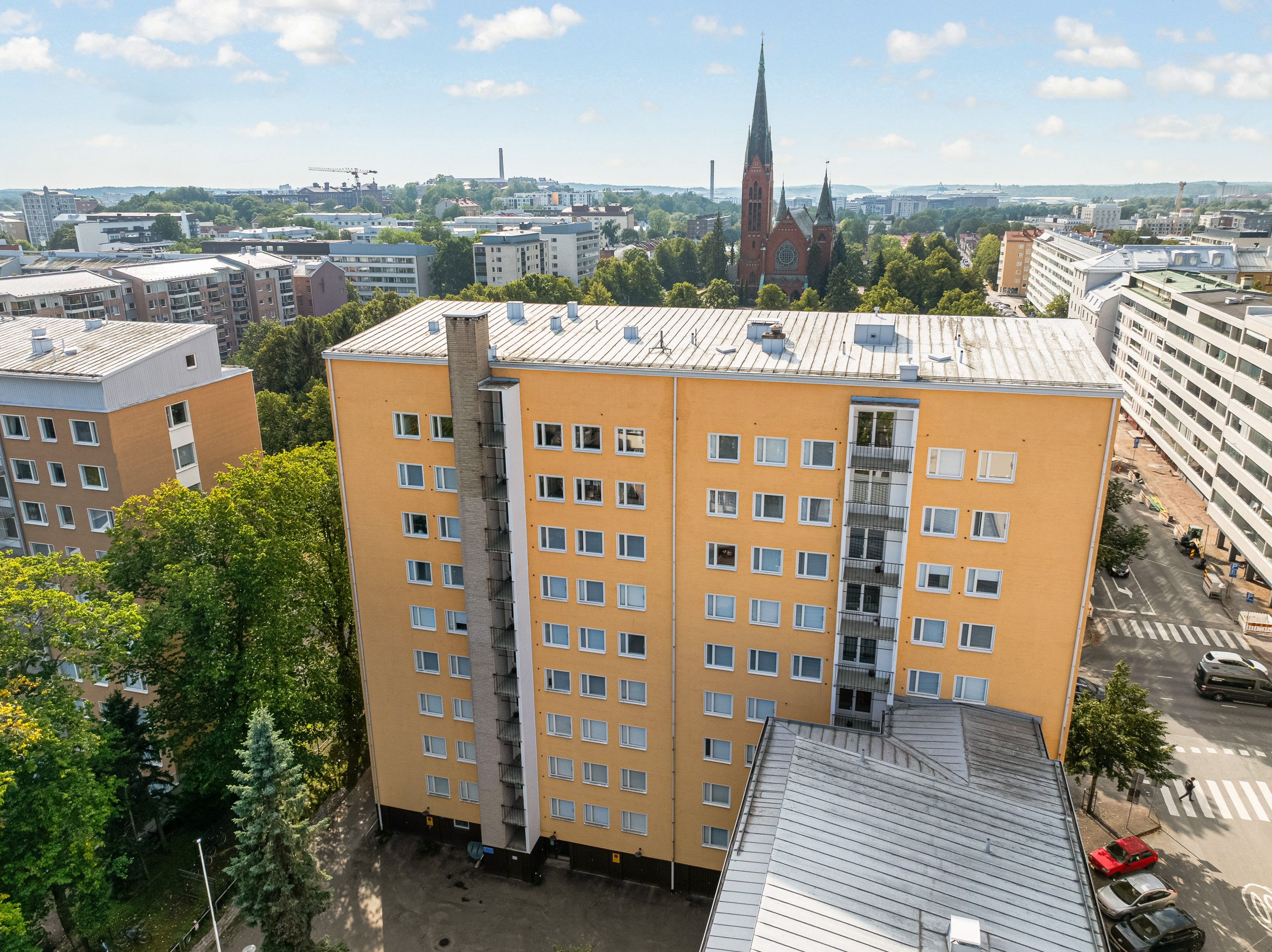 Tämä tilava 67 m² kaksio sijaitsee erinomaisella paikalla Turun keskustassa, Mannerheiminpuiston laidalla, sisäänkäynti Rauhankadun puolelta. Taloyhtiössä on tehty merkittäviä remontteja, joista viimeisimpinä hissien uusinta ja perinteinen linjasaneeraus. Linjasaneerauksen yhteydessä kylpyhuone on uusittu, ja siistikuntoinen keittiö on remontoitu vuonna 2011. Parketti ja muut pinnat on uusittu vuonna 2018. Asunnossa on lasitettu parveke, jolta avautuu näkymä Mikaelin kirkon suuntaan. Kodissa on runsaasti säilytystilaa, ja keittiöstä on kulku varastohuoneeseen, joka soveltuu hyvin myös vaatehuoneeksi. Asunto sijaitsee hissitalon kolmannessa kerroksessa ja on heti vapaa.