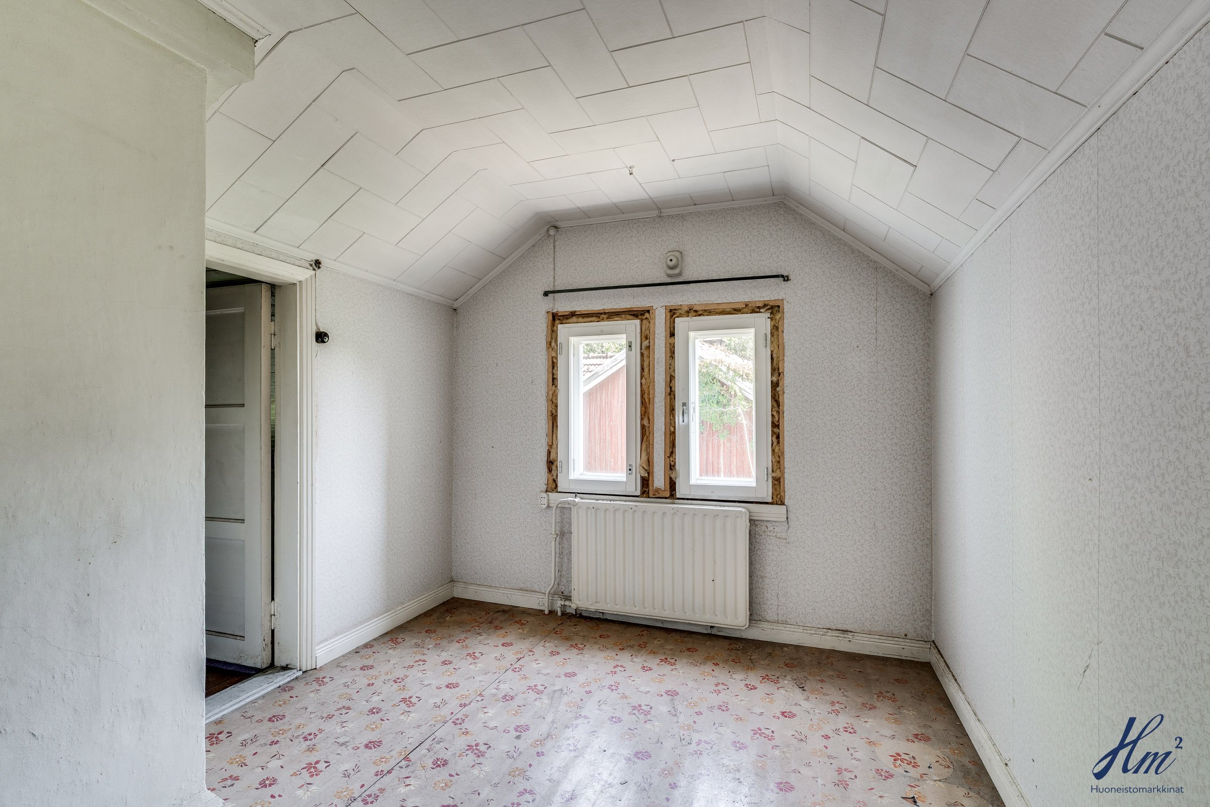 Yläkerrassa, rakennettuna yksi makuuhuone, ikkunanäkymät talon päädystä sisäpihalle. Käynti yläkertaan haastava, sisätilaan ei ole rakennettu portaita.