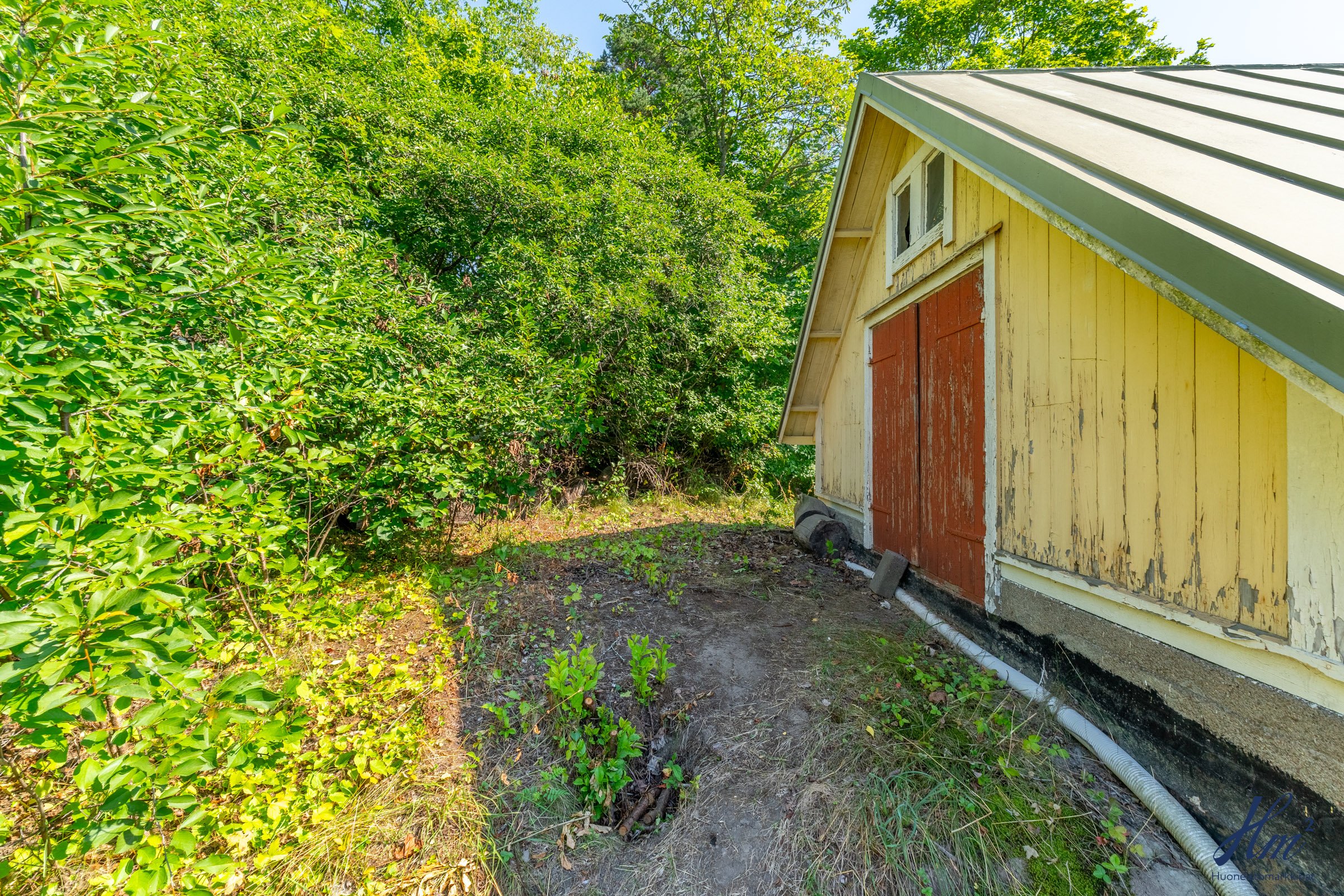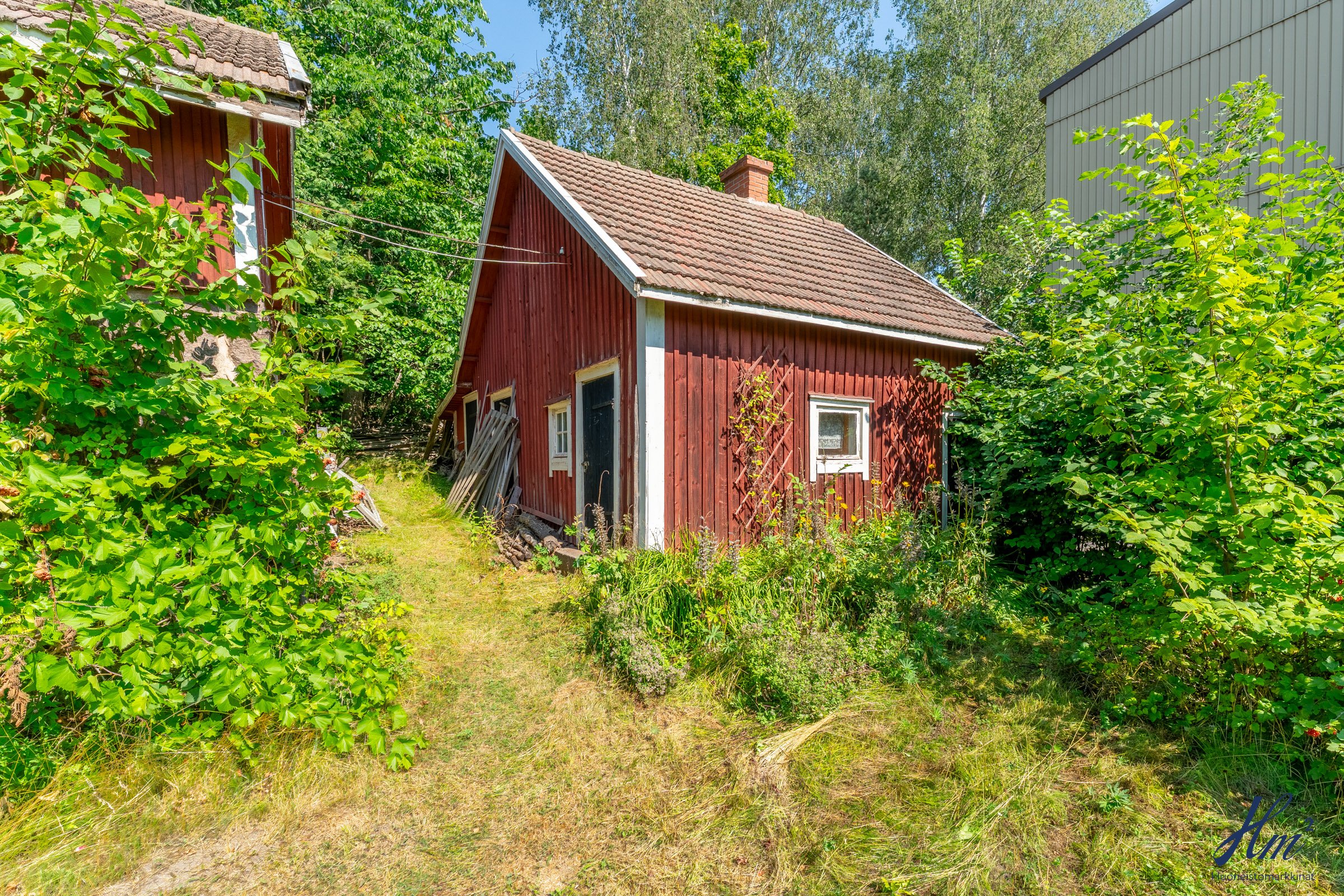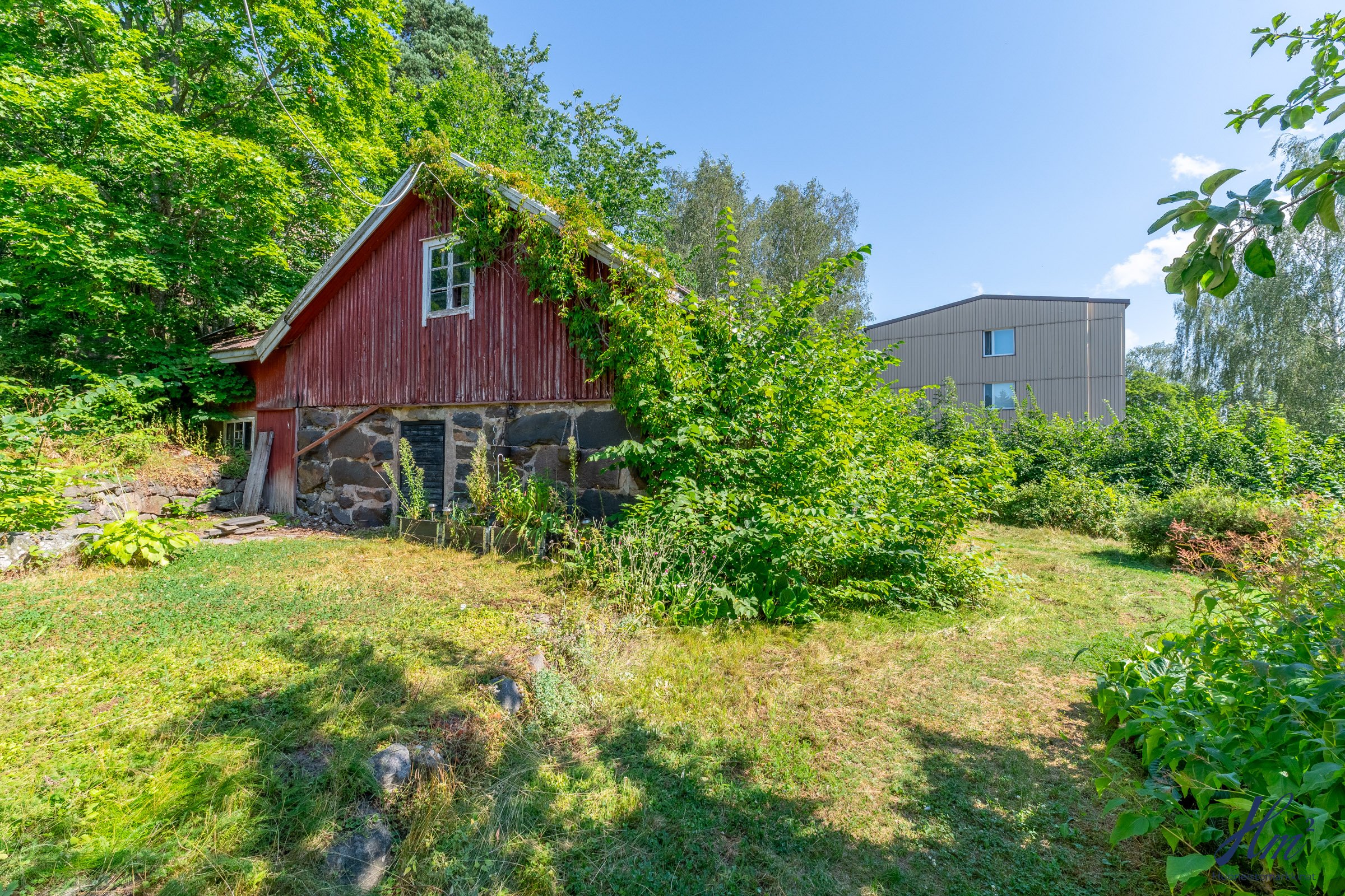 Pihalla vanha ulkorakennus/ navettarakennus, kylmää varastotilaa. Puuvaja, vanha puucee ulkorakennuksen yhteydessä.