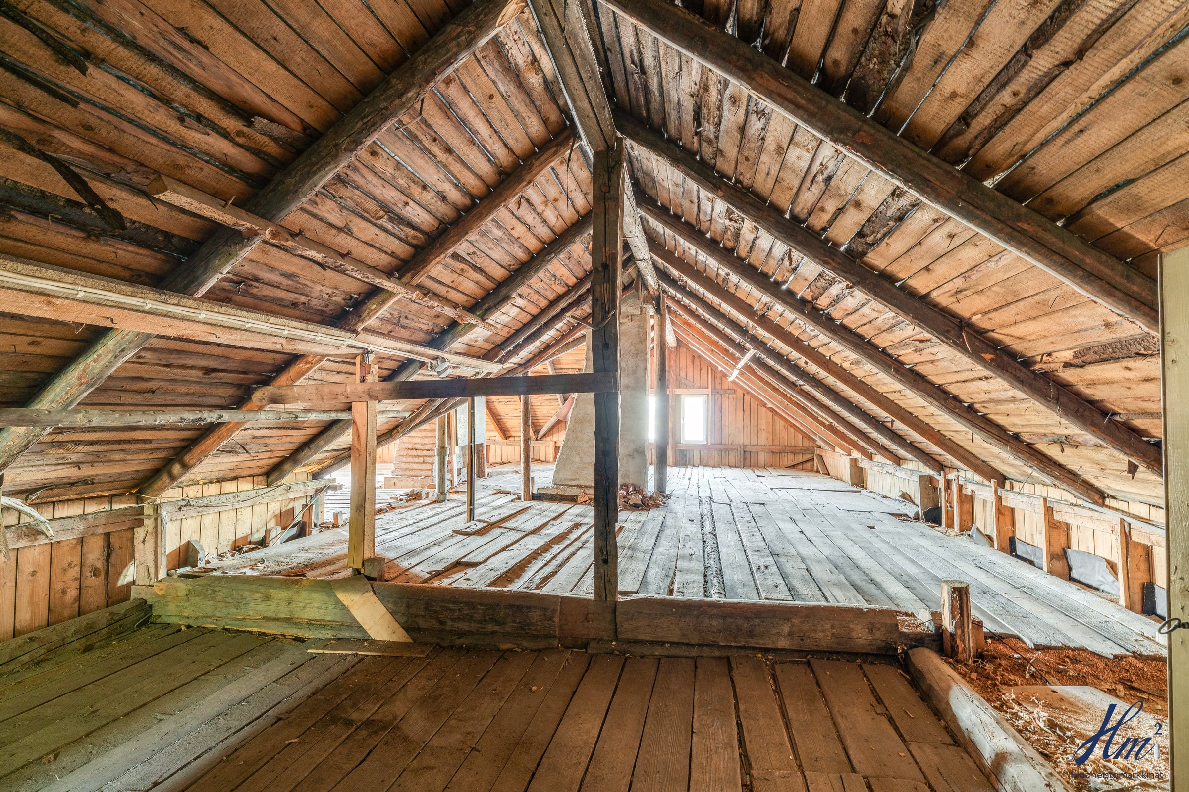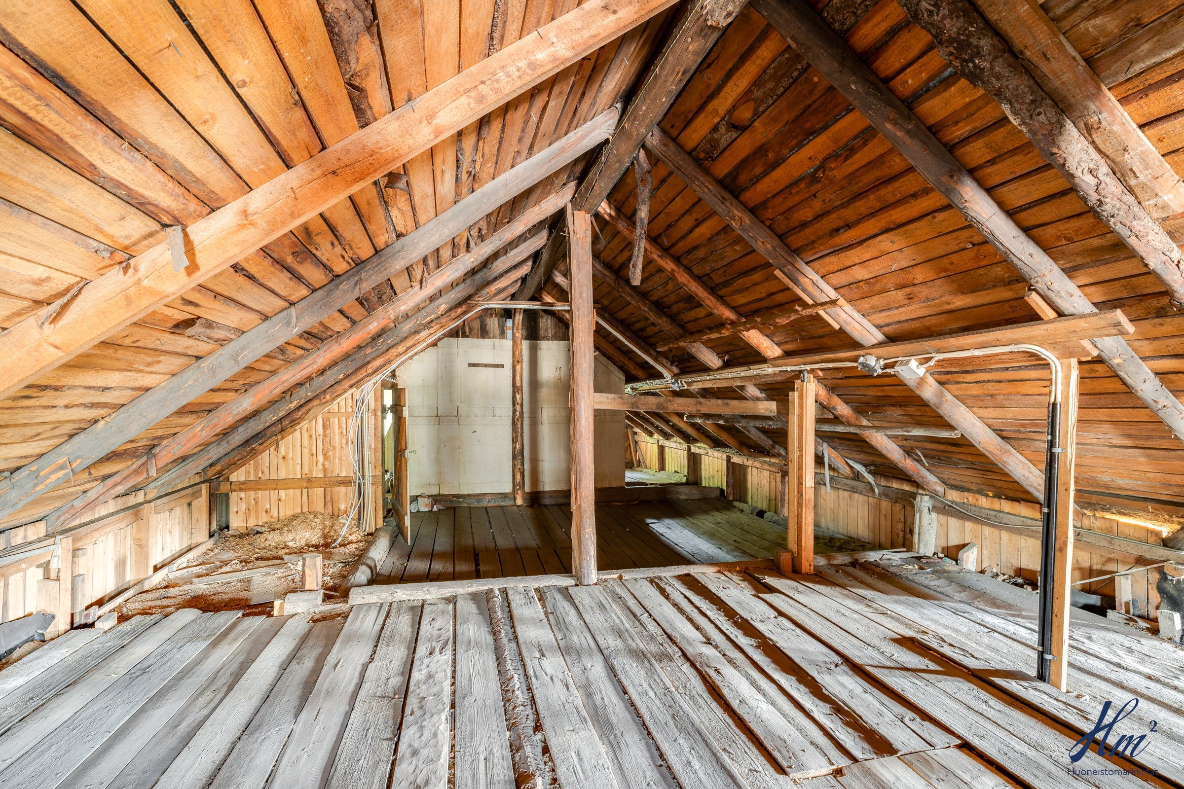 Yksi huone rakennettu yläkertaan, ei portaita, käynti rakentamattoman avoimen vinttitilan kautta.
