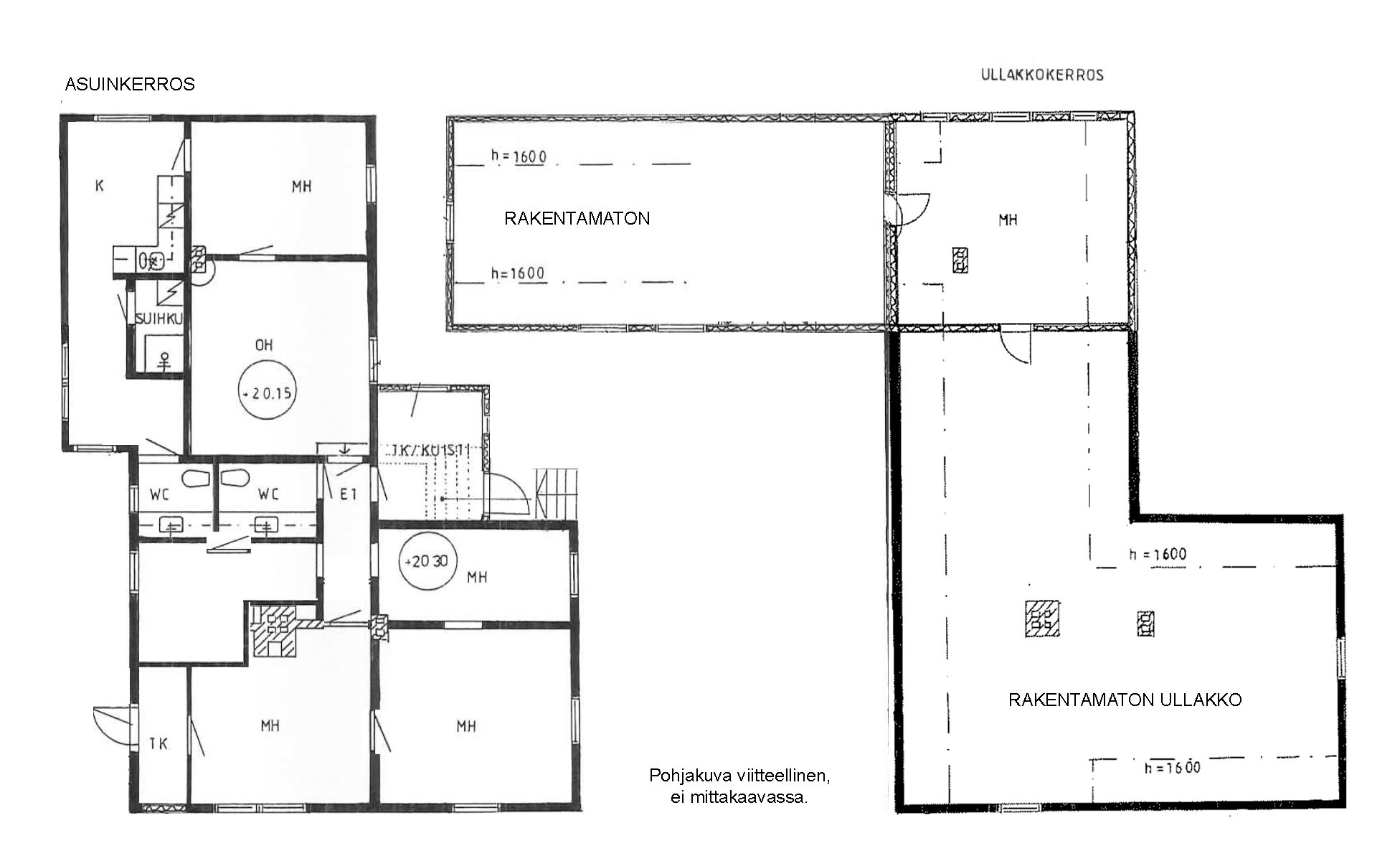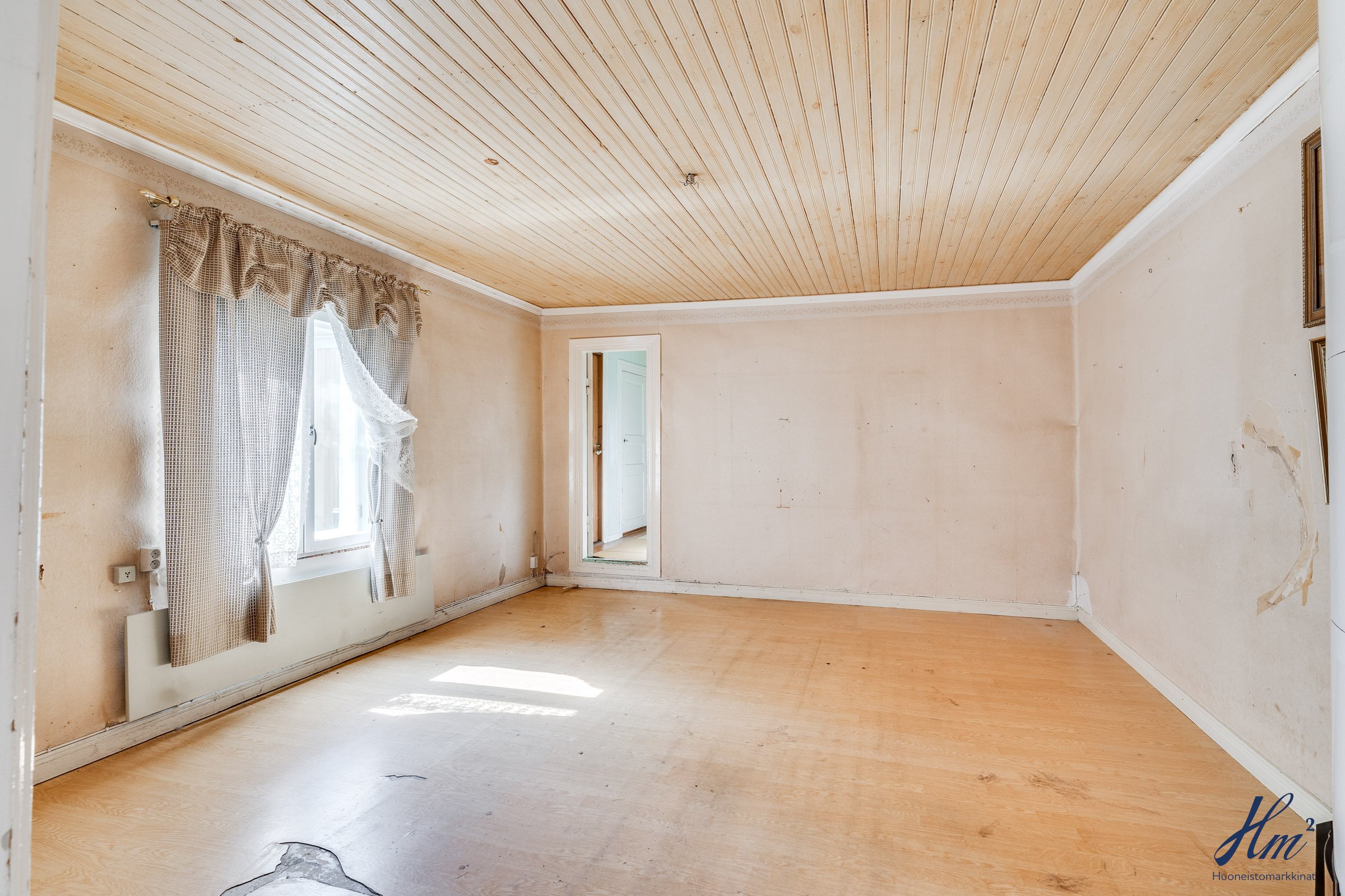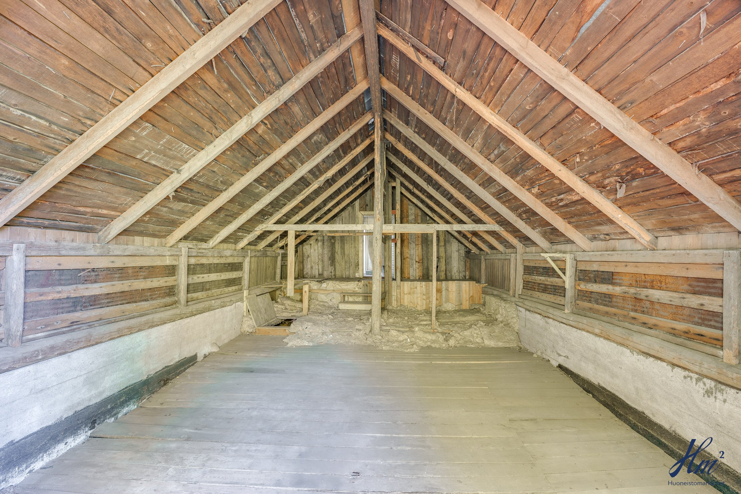 Toisessa kerroksessa iso ullakkotila, rakentamaton, osittain matalaa tilaa.