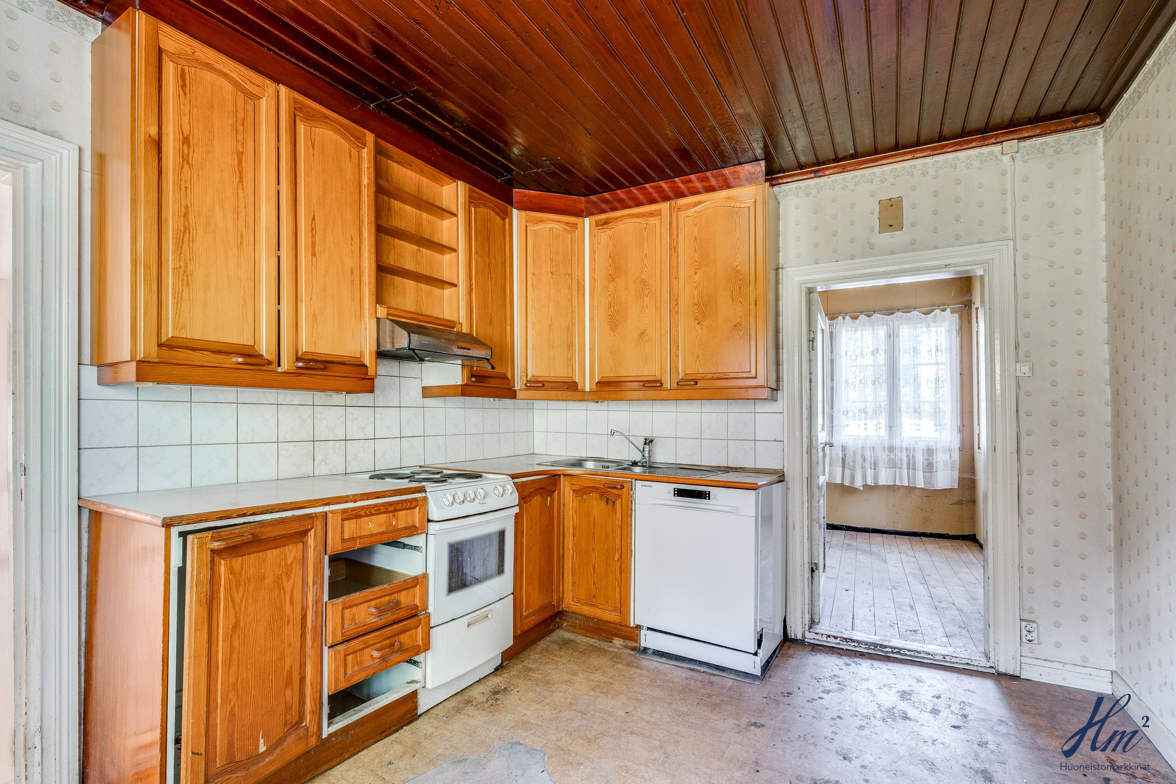 Välttäväkuntoinen keittiötila, kaipaa kunnostamista. Kodinkoneiden toimivuudesta ei tietoa.