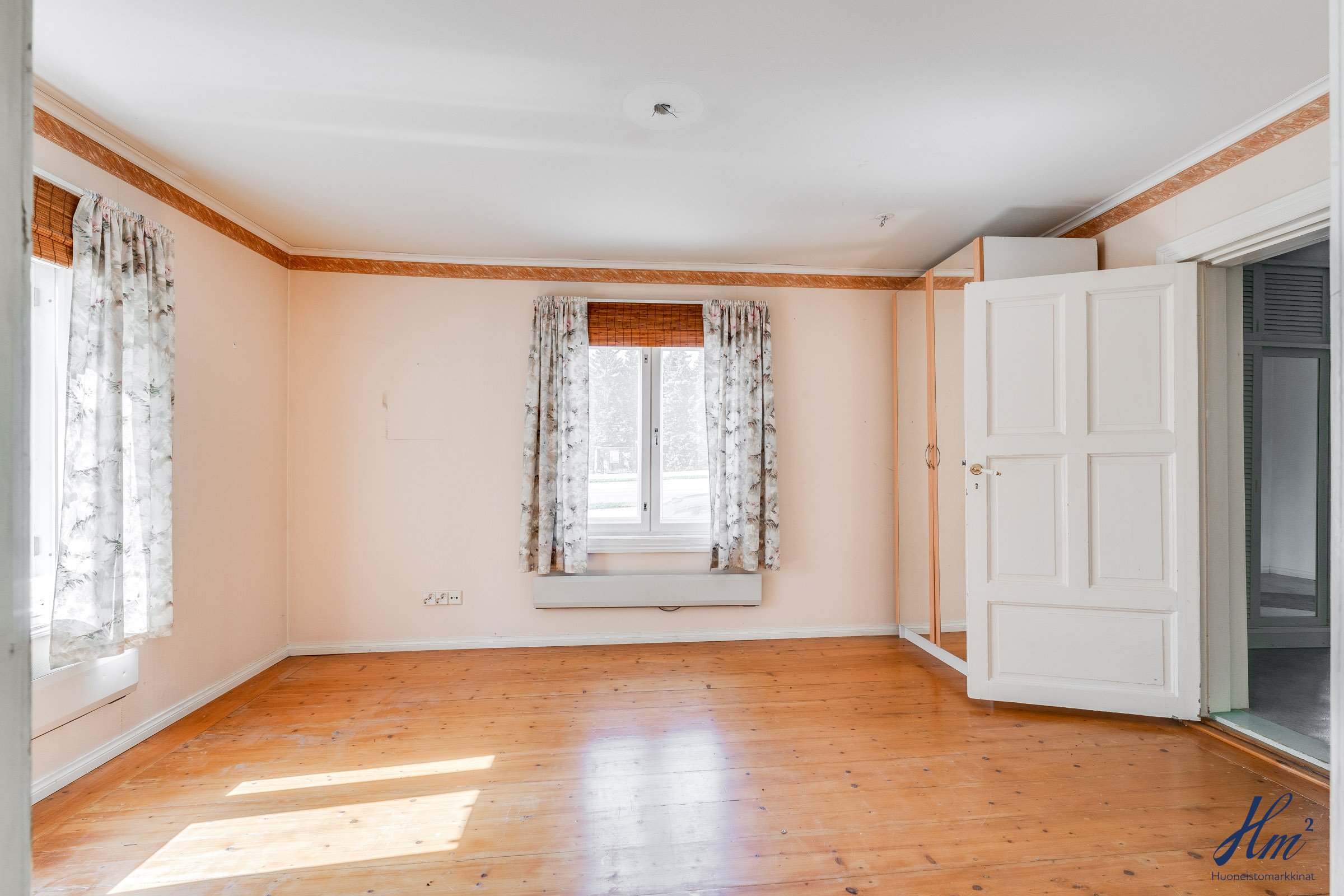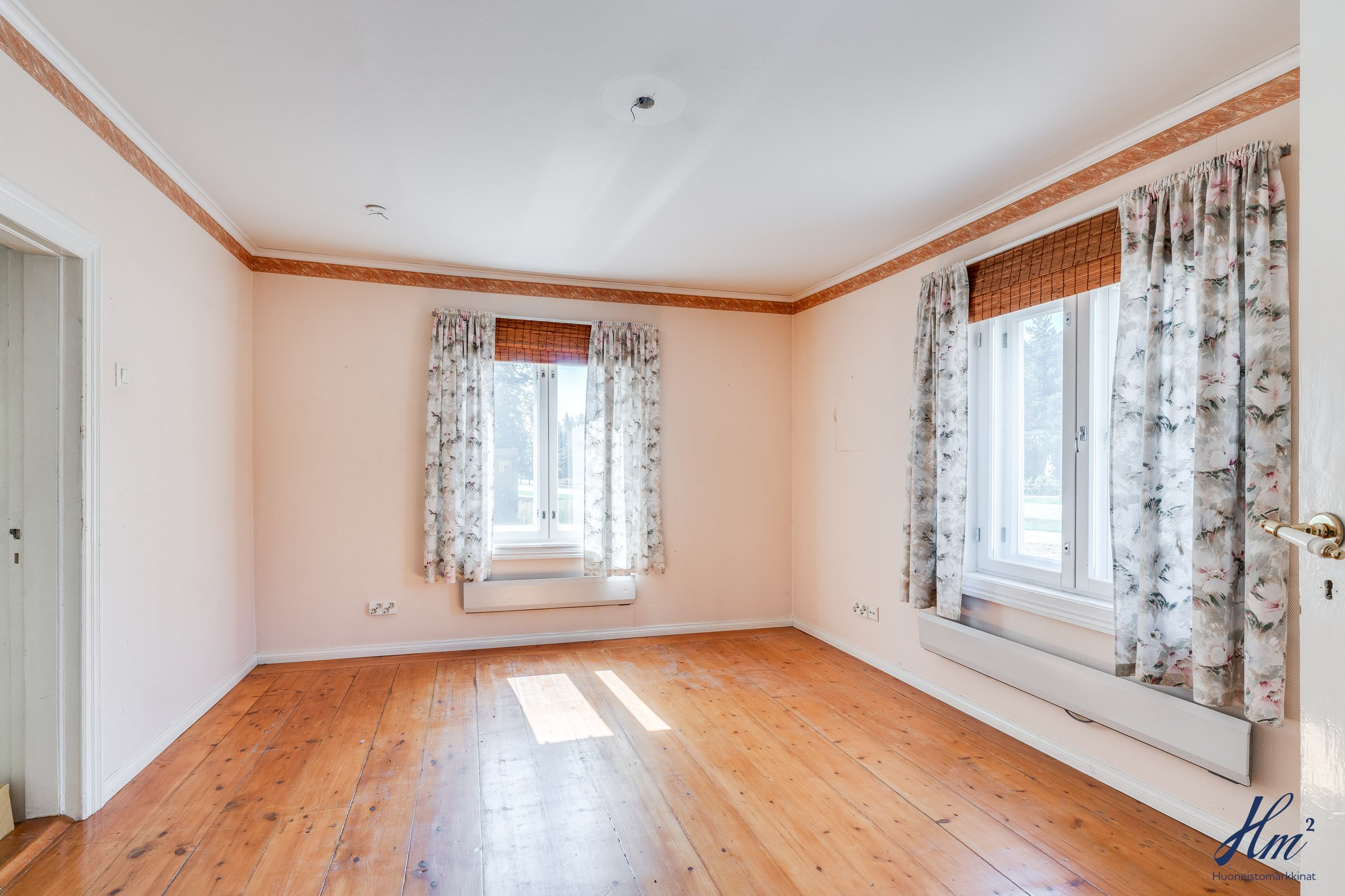 2-3 makuuhuonetta. Lattiat muovimattoa, seinät tapettia/ maalia. Yhdessä makuuhuoneessa kakluuni.