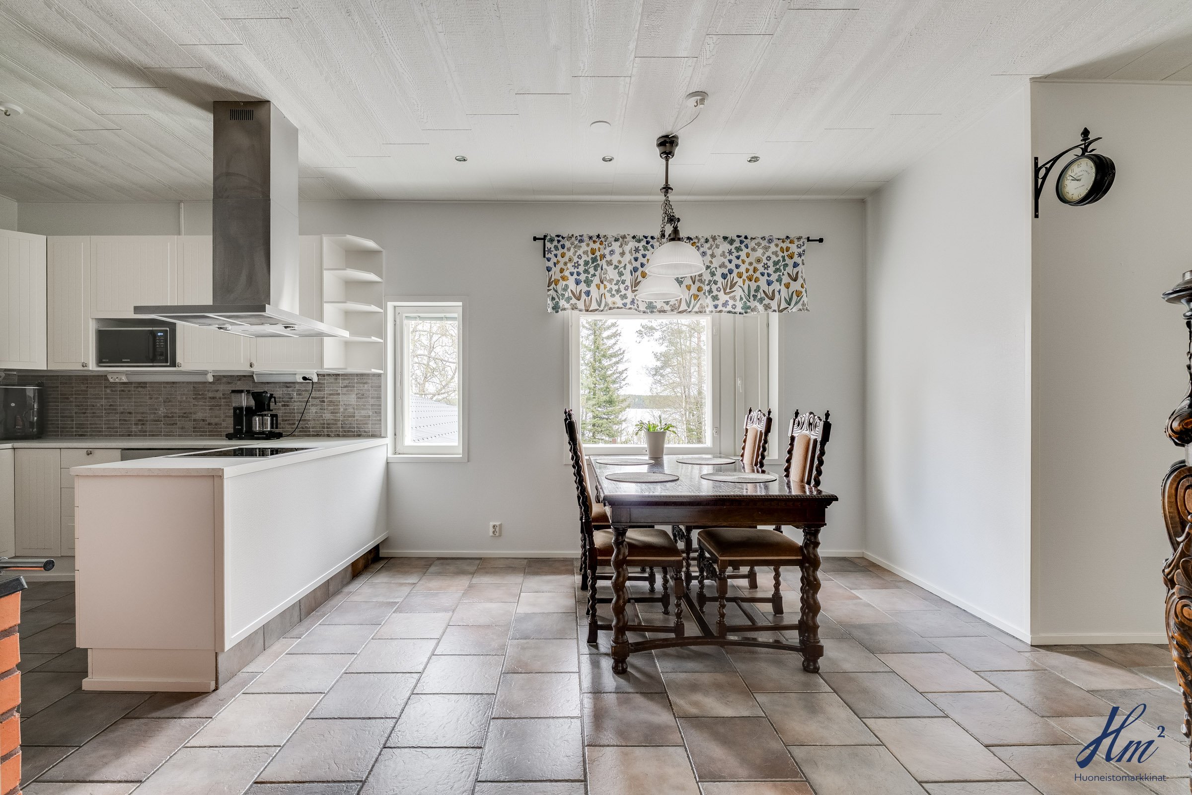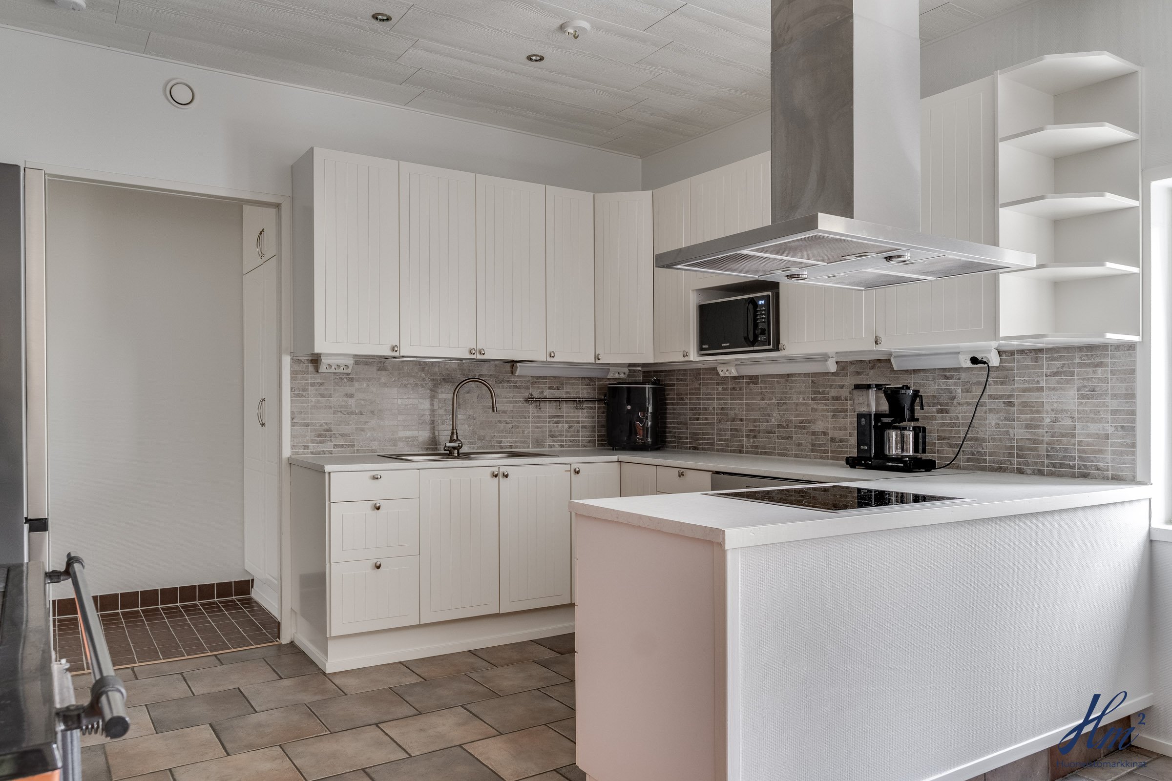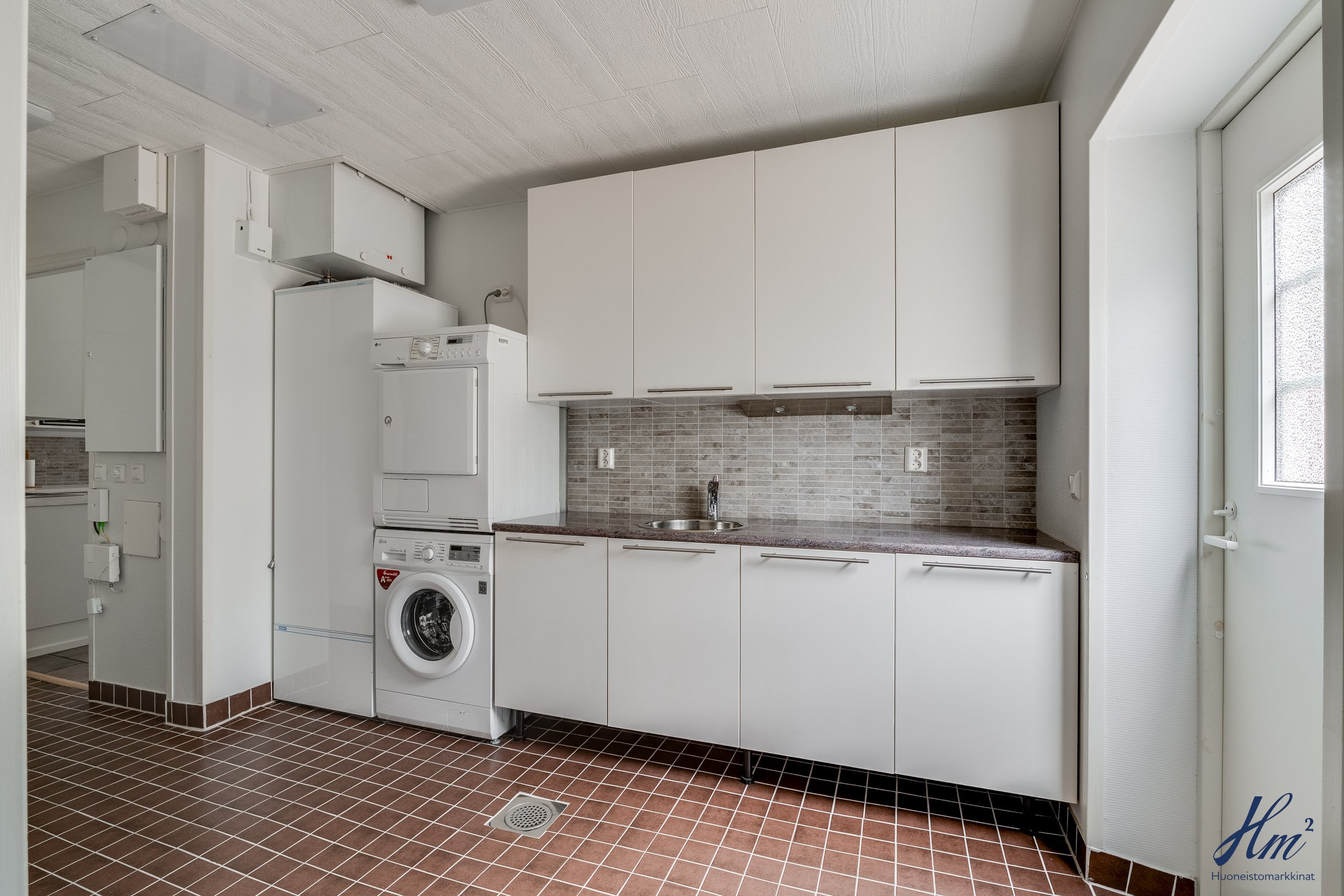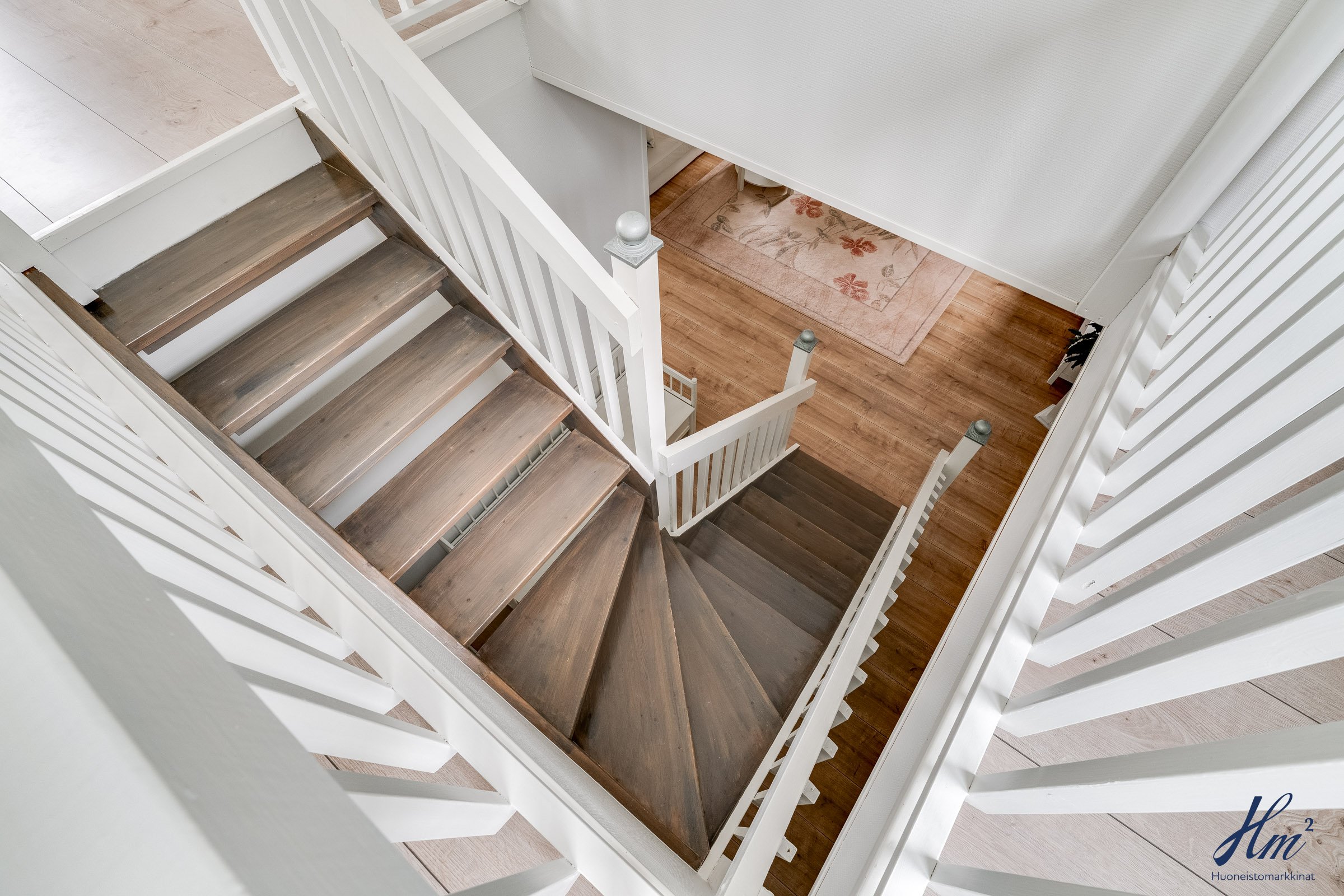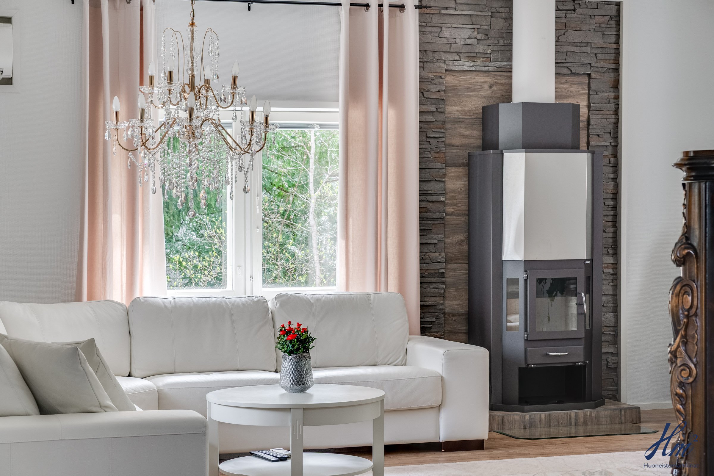 Alakerrassa on avara ja valoisa olohuone, jossa on takka. Keittiö on hyvin varusteltu, ja sen kruunaa puuhella. Neljä makuuhuonetta tarjoavat runsaasti tilaa perheelle tai vieraille, ja sauna kutsuu rentoutumaan kiireisen päivän jälkeen. Kodinhoitohuone helpottaa arjen sujuvuutta omalla uloskäynnillä.