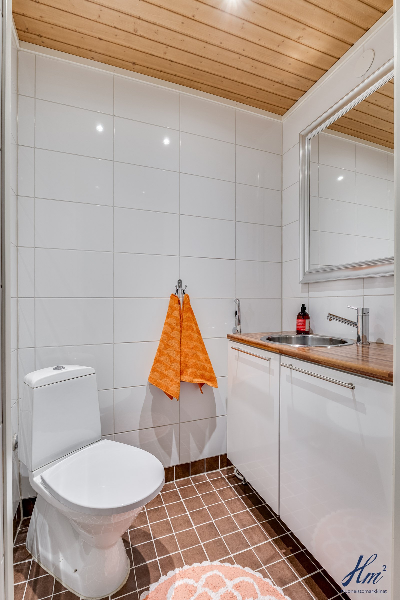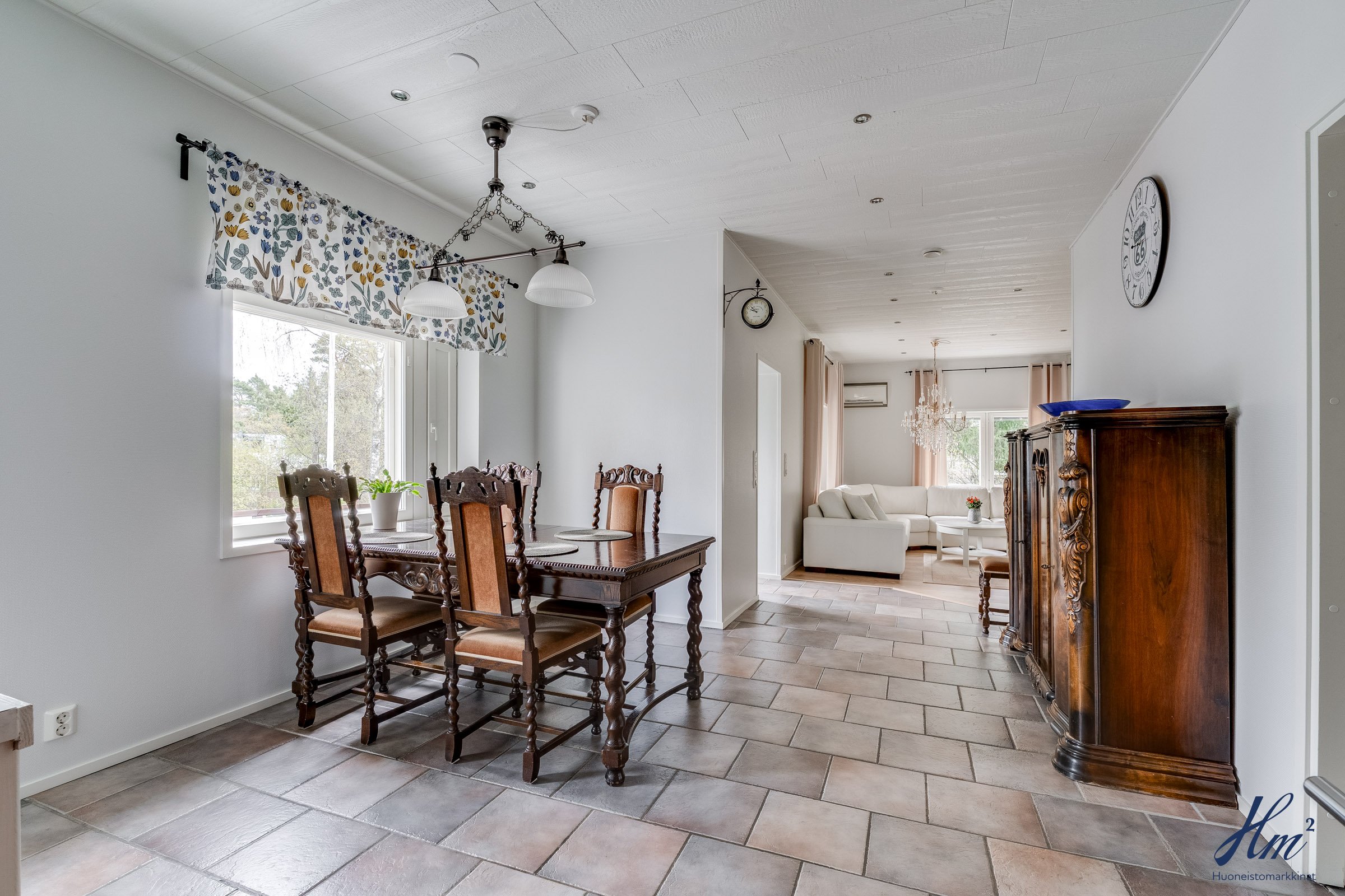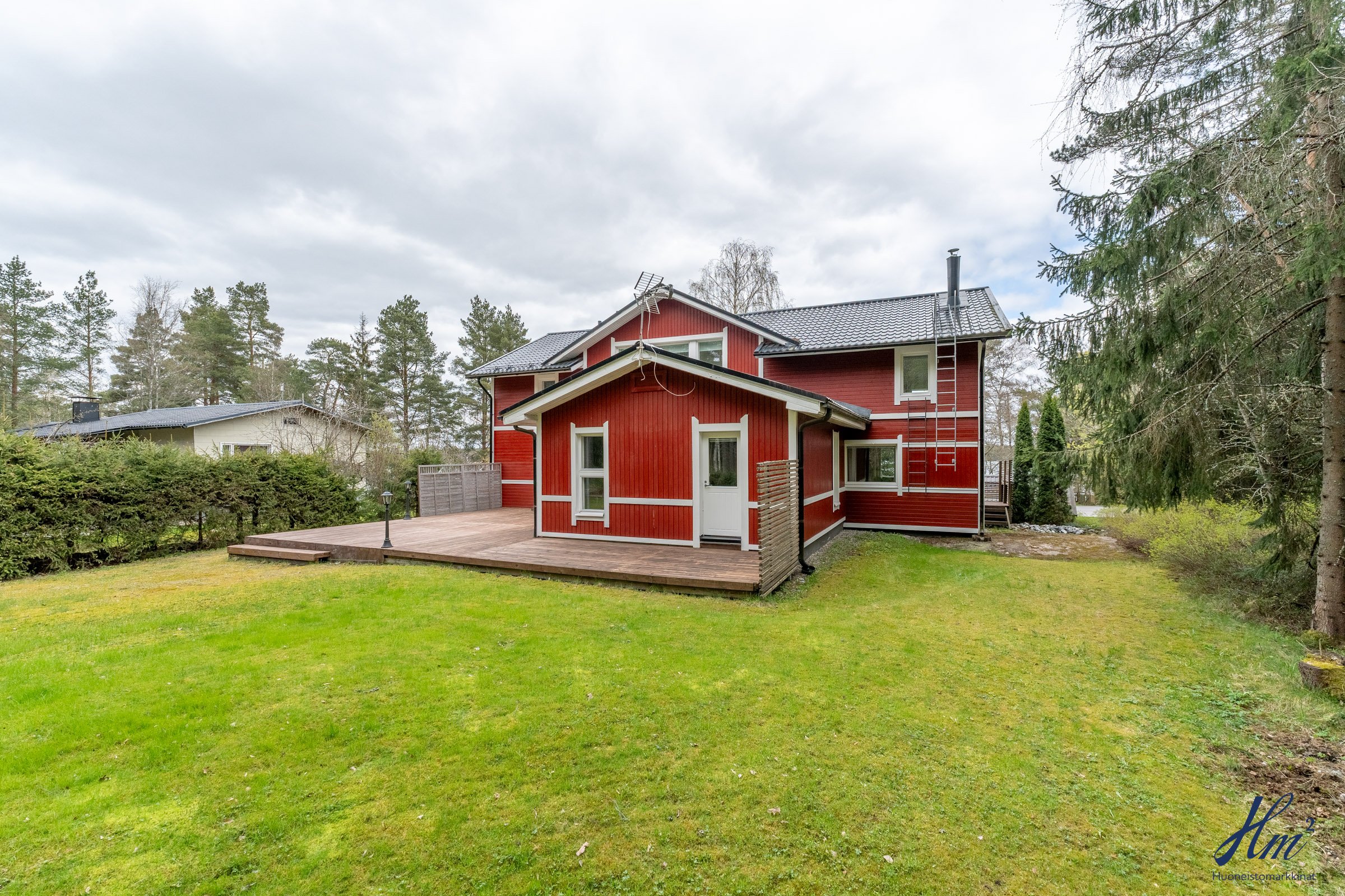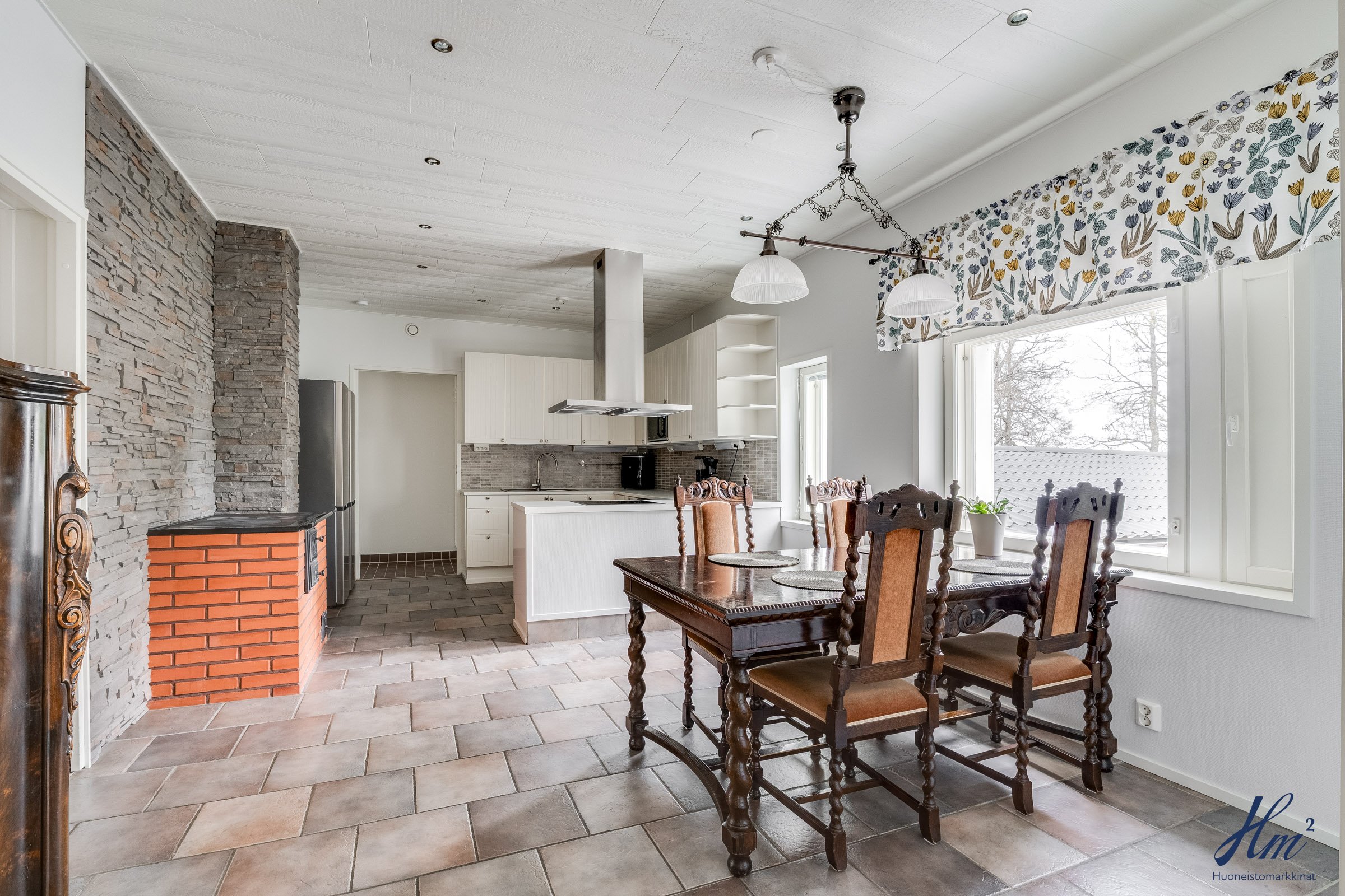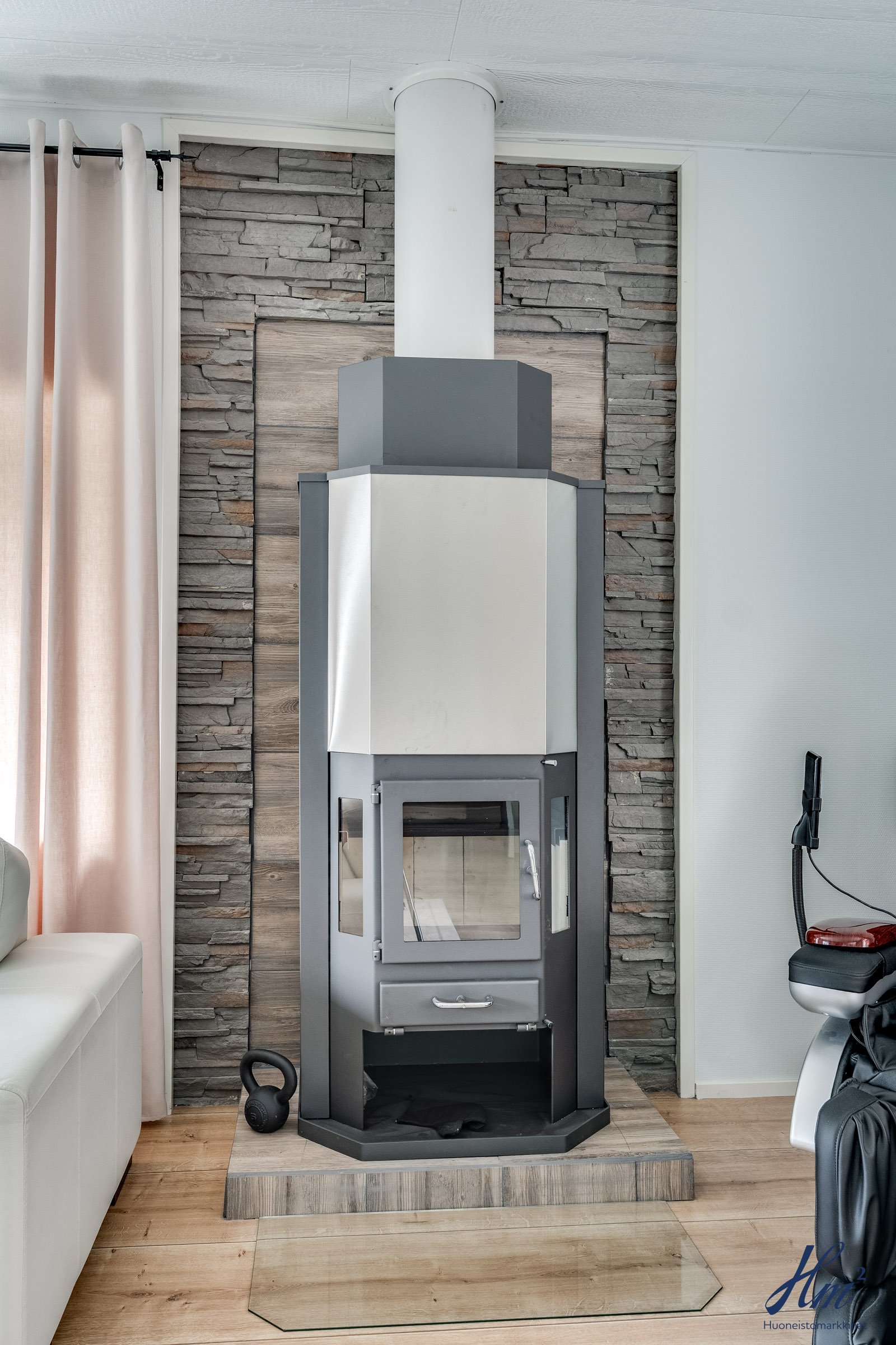 Alakerrassa on avara ja valoisa olohuone, jossa on takka. Keittiö on hyvin varusteltu, ja sen kruunaa puuhella. Neljä makuuhuonetta tarjoavat runsaasti tilaa perheelle tai vieraille, ja sauna kutsuu rentoutumaan kiireisen päivän jälkeen. Kodinhoitohuone helpottaa arjen sujuvuutta omalla uloskäynnillä.