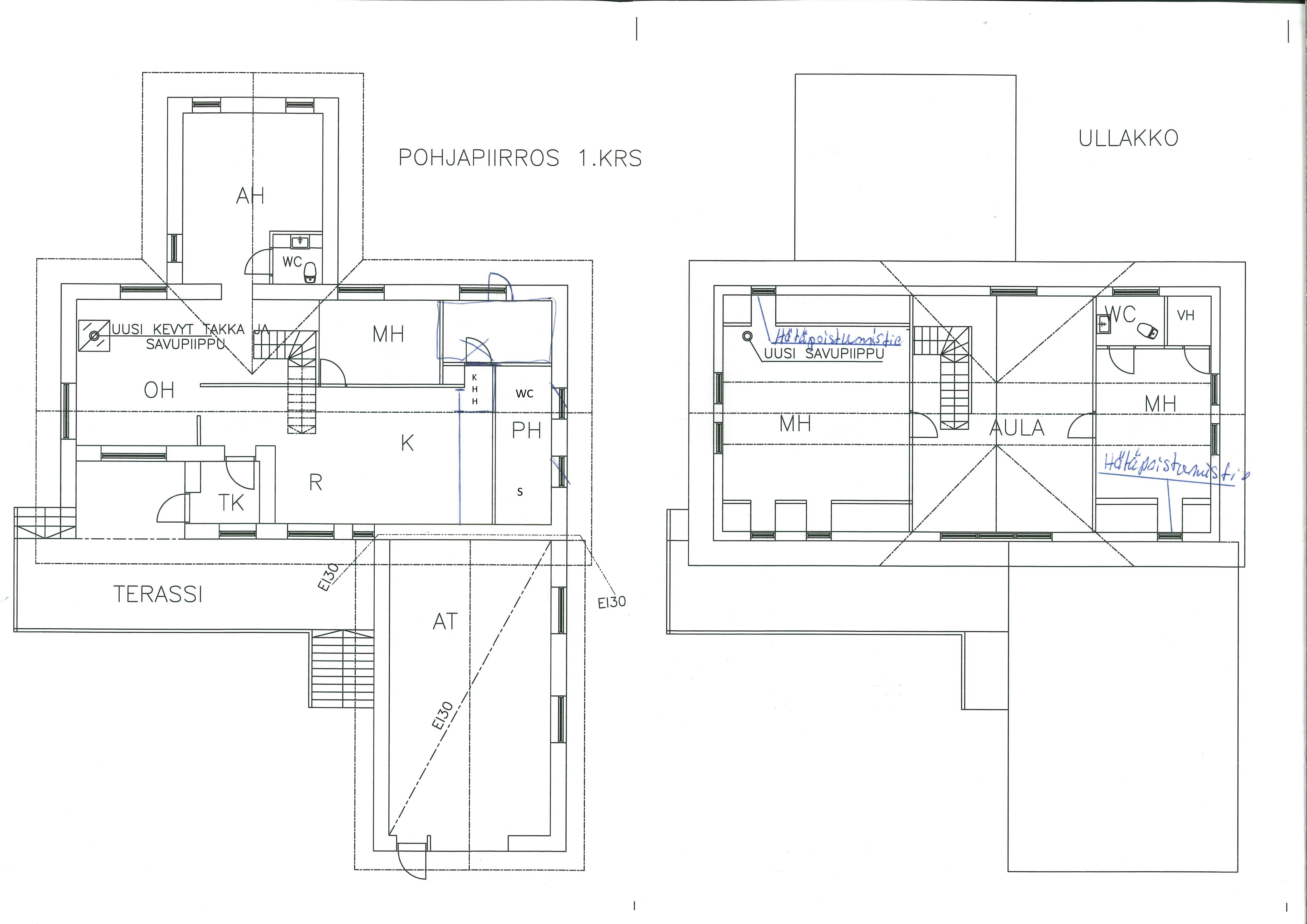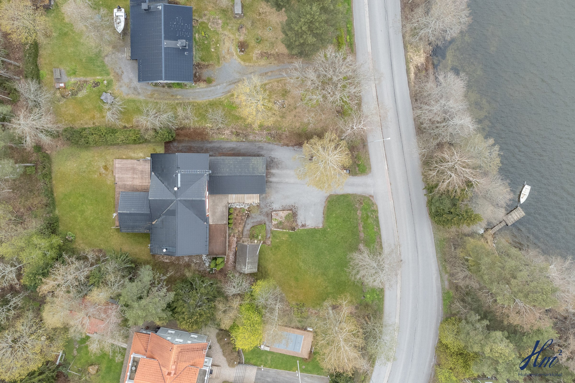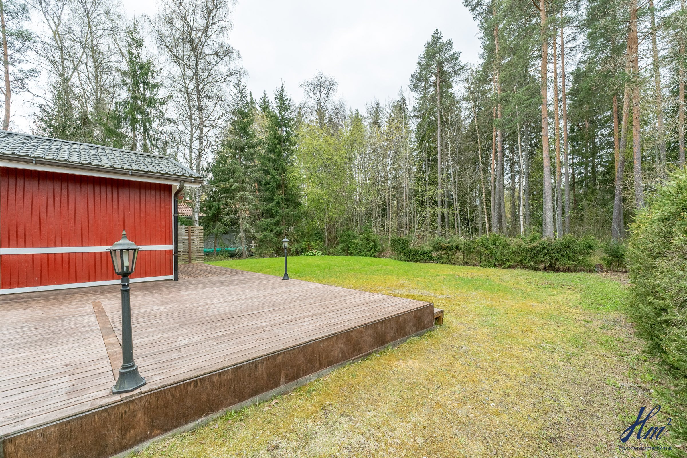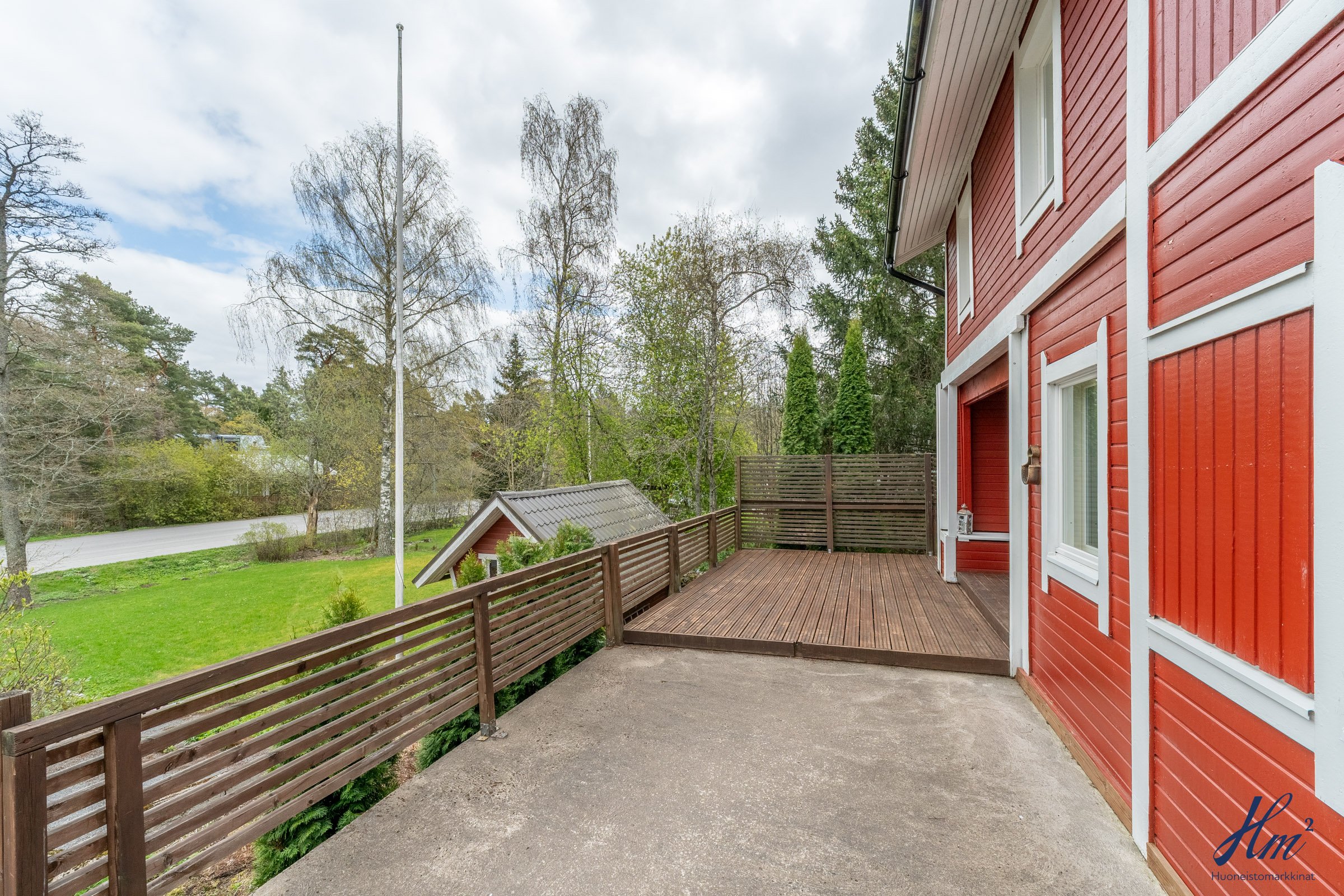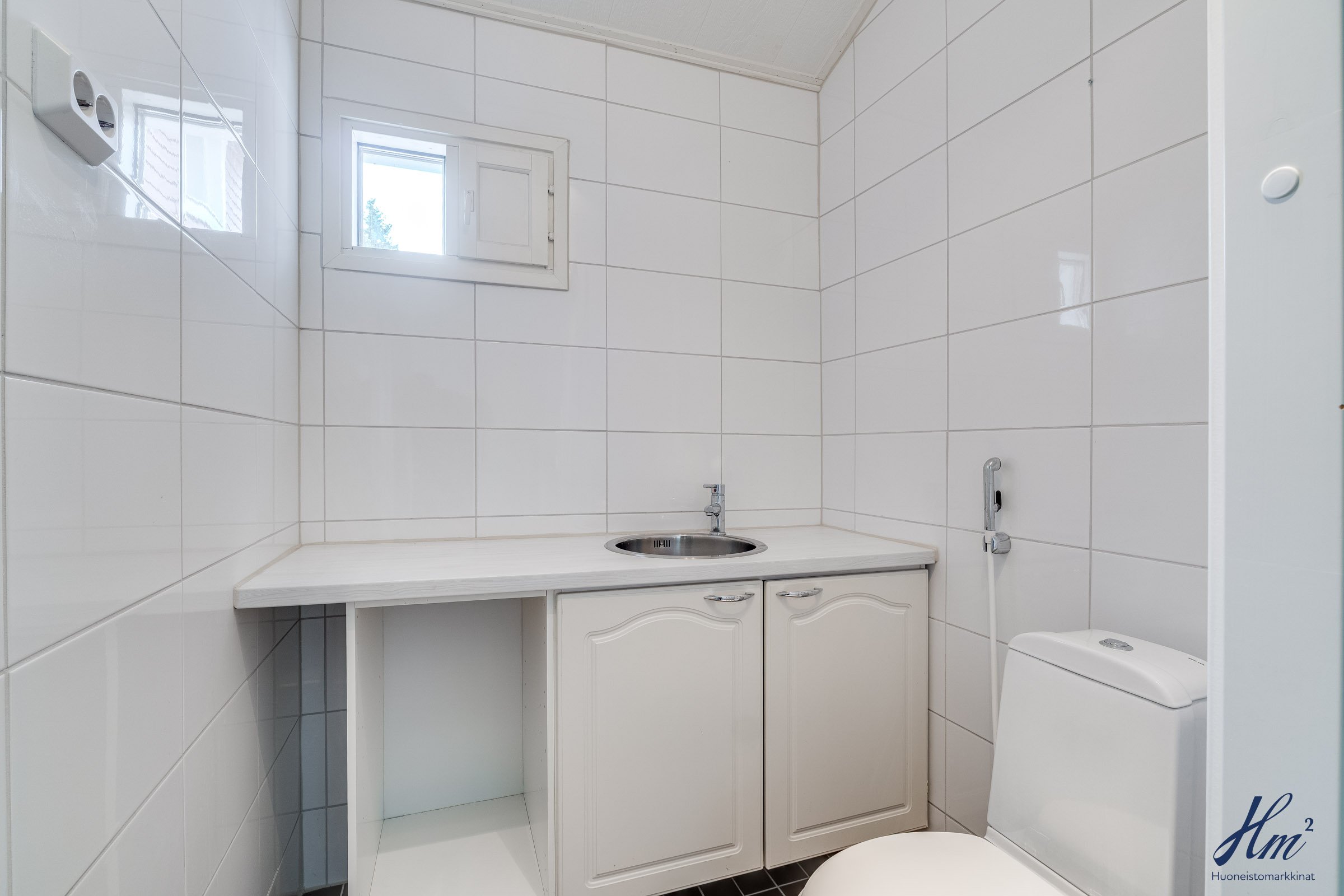 Yläkerrasta löytyy lisää oleskelutilaa sekä kaksi makuuhuoneista. Talon alakerrasta löytyy runsaasti varastotilaa sekä tilava autotalli noin 60 m².
