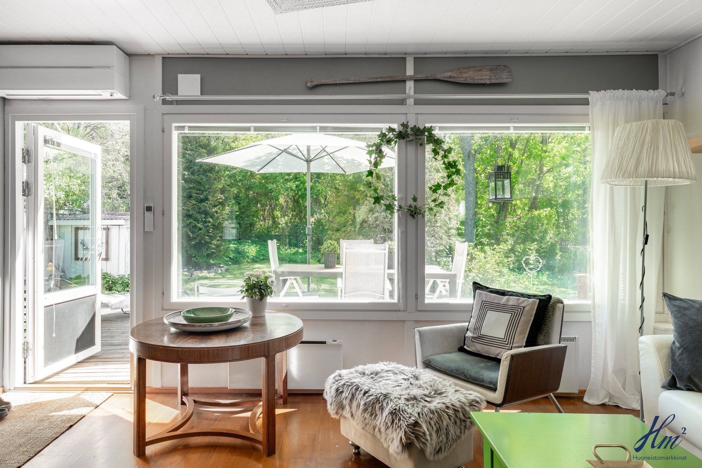 Pintaremonttia asunto jo osittain vaatii, mutta paljon on toki tehtynä. Alakerran kylpyhuone/wc ja askarteluhuone on remontoitu vuonna 2010, ja yläkerran kylpyhuone/wc tila on remontoitu vuonna 2022 linjasaneerauksen yhteydessä. Pohjaratkaisu tarjoaa loistavasti tilaa niin asumiselle kuin arjen askareisiin. Sisääntulo on alakerrassa, ja siitä aukeaa tuulikaapin kautta todella tilava eteisaula. Alhaalla on lisäksi kylpyhuone/wc, kodinhoitohuone/varasto sekä askarteluhuone, joka on toiminut aiemmin kolmantena makuuhuoneena. Kauniiden kierreportaiden kautta saavutaan asunnon yläkertaan, jossa sijaitsee pääasialliset asumisen tilat. Olohuone ja keittiö/ruokailutilat muodostavat tilavan yhtenäisen kokonaisuuden, jonka keskiössä on takka niin lämmitykseen kuin tunnelmankin luontiin. Yläkerran yhteydessä on myös kaksi makuuhuonetta sekä vuonna 2022 remontoitu kylpyhuone/wc tila. Kodin isot ikkunat tuovat runsaasti valoa kolmesta suunnasta. Tilavalle ja yksityiselle takapihalle on kulku olohuoneen kautta. Takapihalta löytyy iso terassi oleiluun sekä iso nurmipiha. Takapiha on aidattu, joka tuo lisäarvoa esimerkiksi koiraperheelle. Lisämukavuutena mainittakoon 09/2024 asennettu ilmalämpöpumppu, joka toimii lämmitykseen ja viilennykseen kesän kovimmilla helteillä.