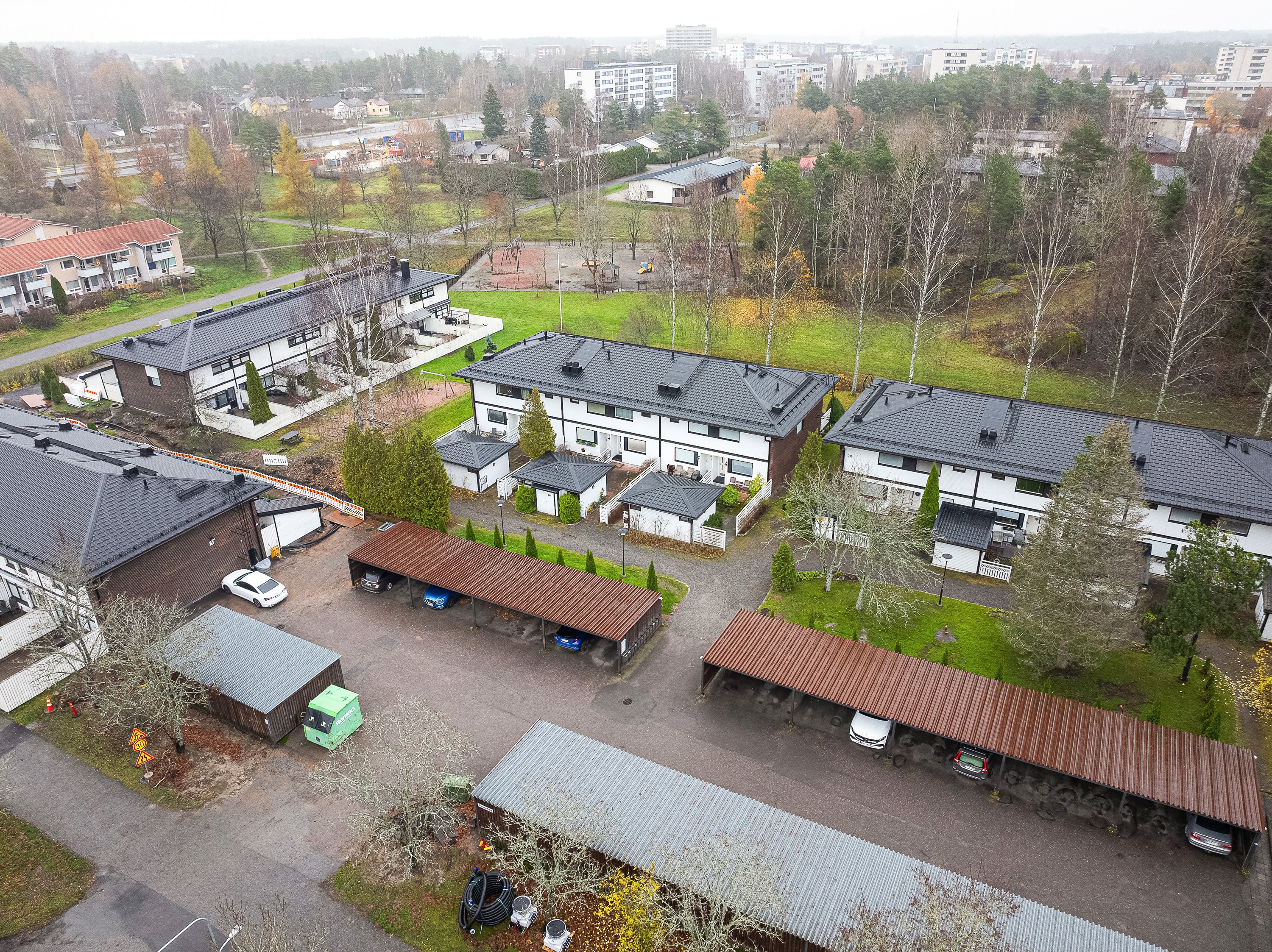 Jokaiseen taloyhtiön asuntoon kuuluu: 1 ulkovarasto, 1 autokatospaikka