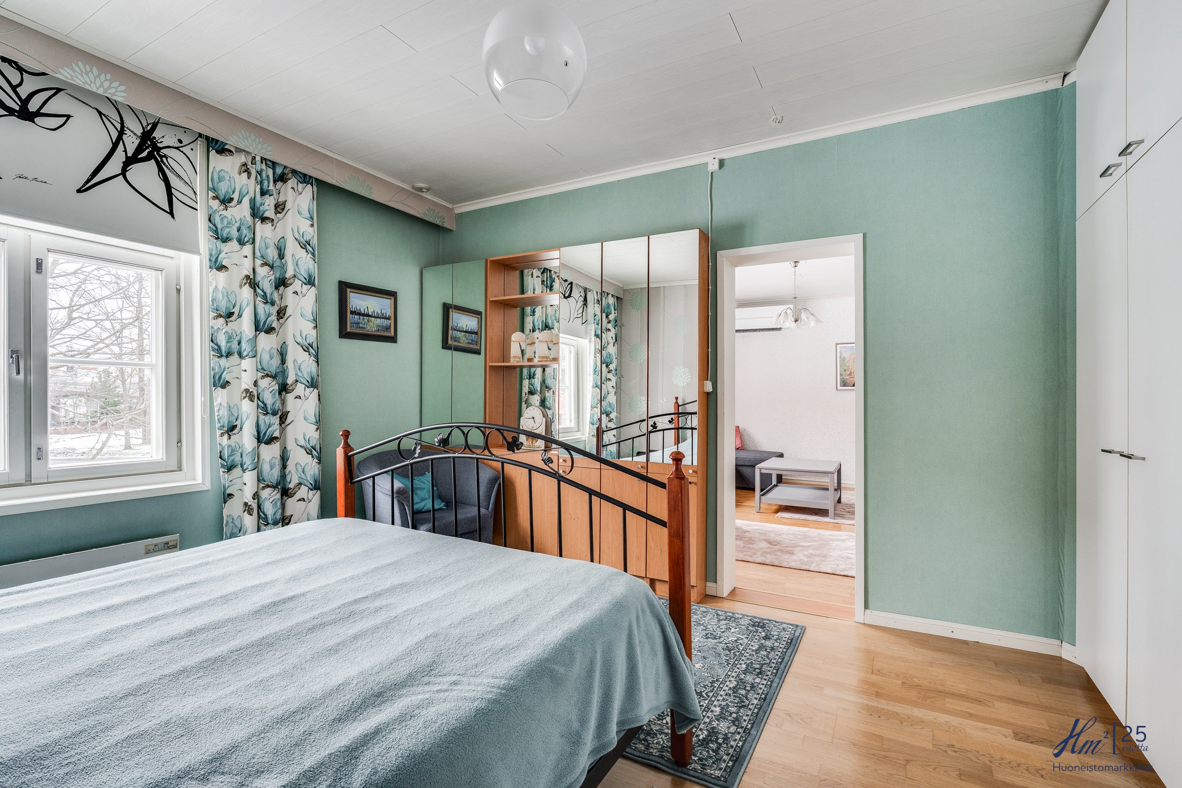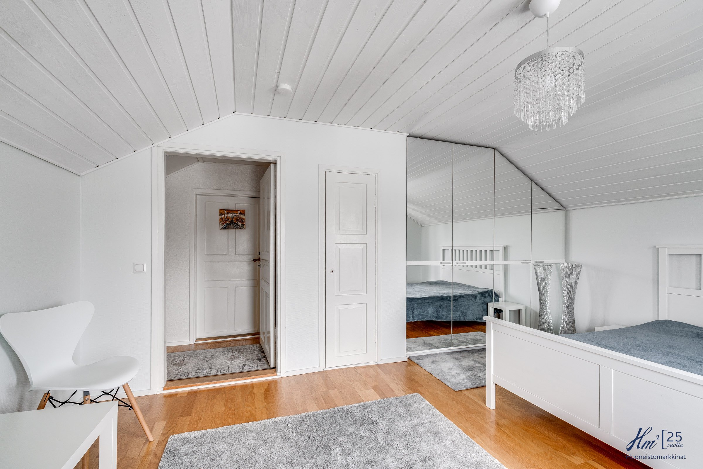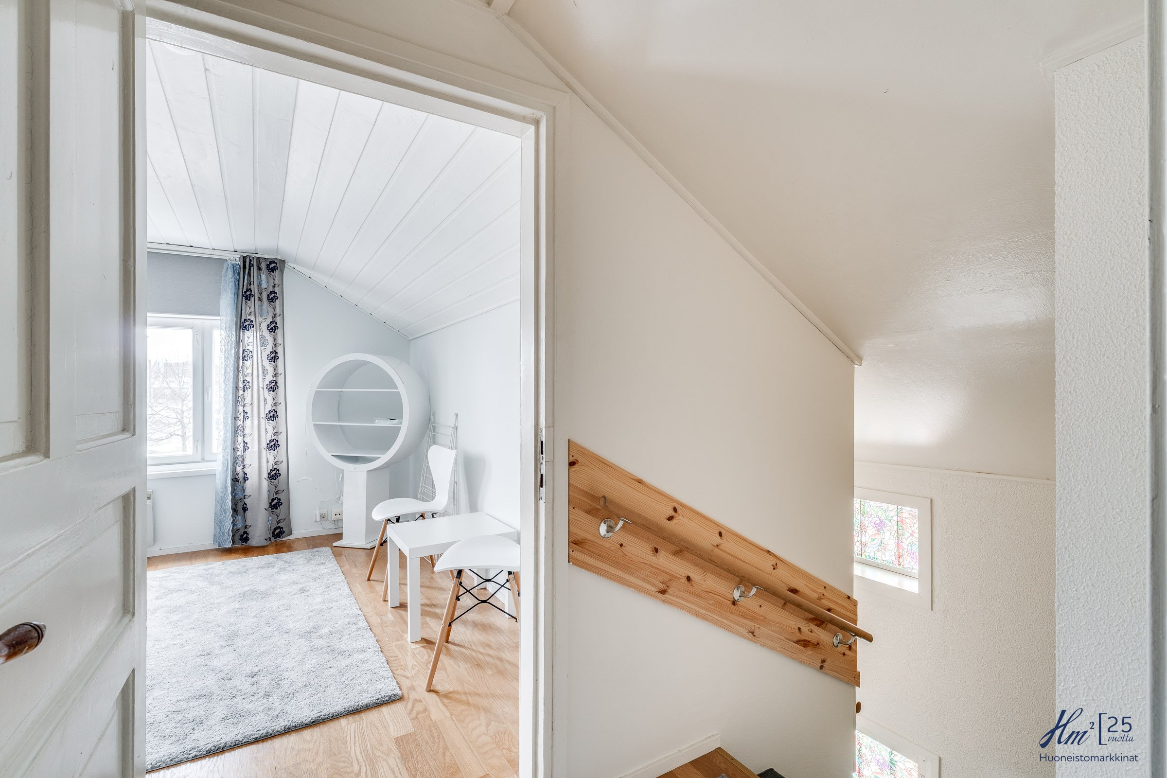 Turun Raunistulan kaupunginosasta löytyy tämä viehättävä ja tunnelmallinen puutalokoti. Läpitalon päätyhuoneisto kahdessa tasossa tarjoaa avarat tilat. Yläkerta käsittää makuuhuoneen, kylpyhuoneen sekä oman upean saunan. Asuinkerroksen isossa olohuoneessa on kaunis pönttöuuni sekä ilmalämpöpumppu. Samassa kerroksessa on myös asunnon toinen makuuhuone sekä keittiö. Asunnon alakerran rakentamattomasta kellarista löytyy mukavasti säilytystilaa.
