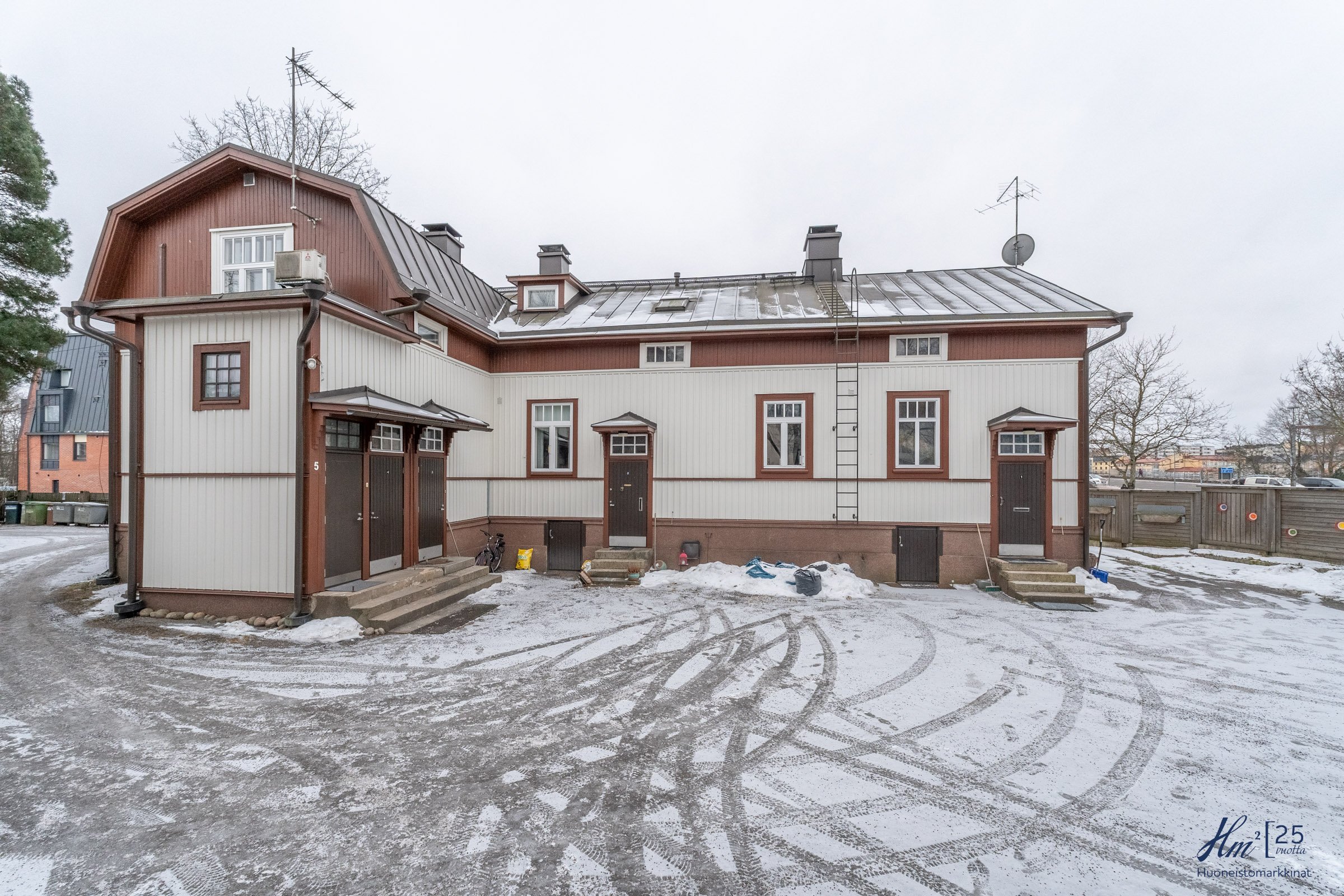 Vuonna 1940 valmistunut, hyvin hoidettu taloyhtiö, huokuu historiaa ja kodikkuutta. Viimeisimpänä remonttikohteena on ollut rakennusten julkisivumaalaus.