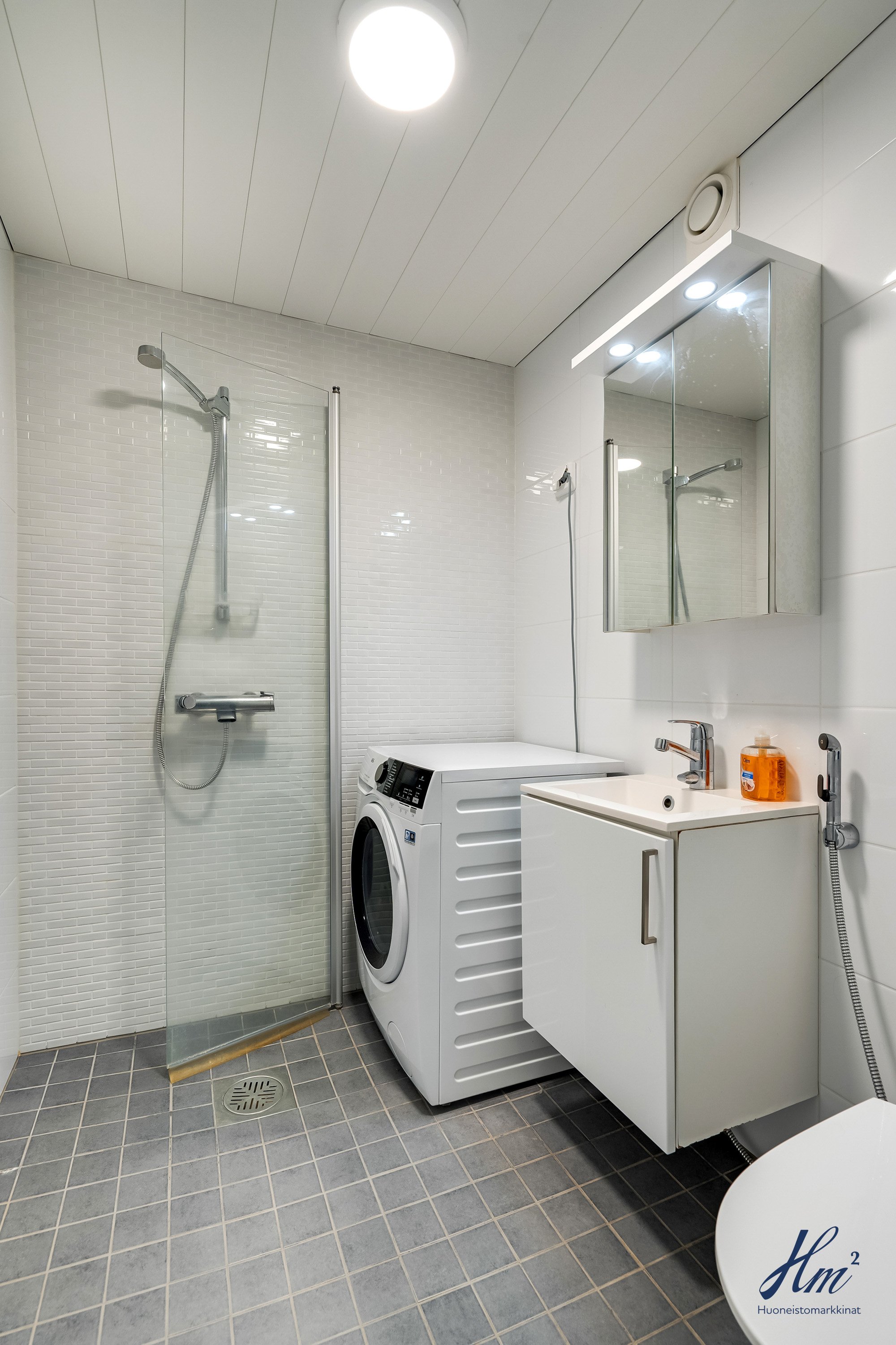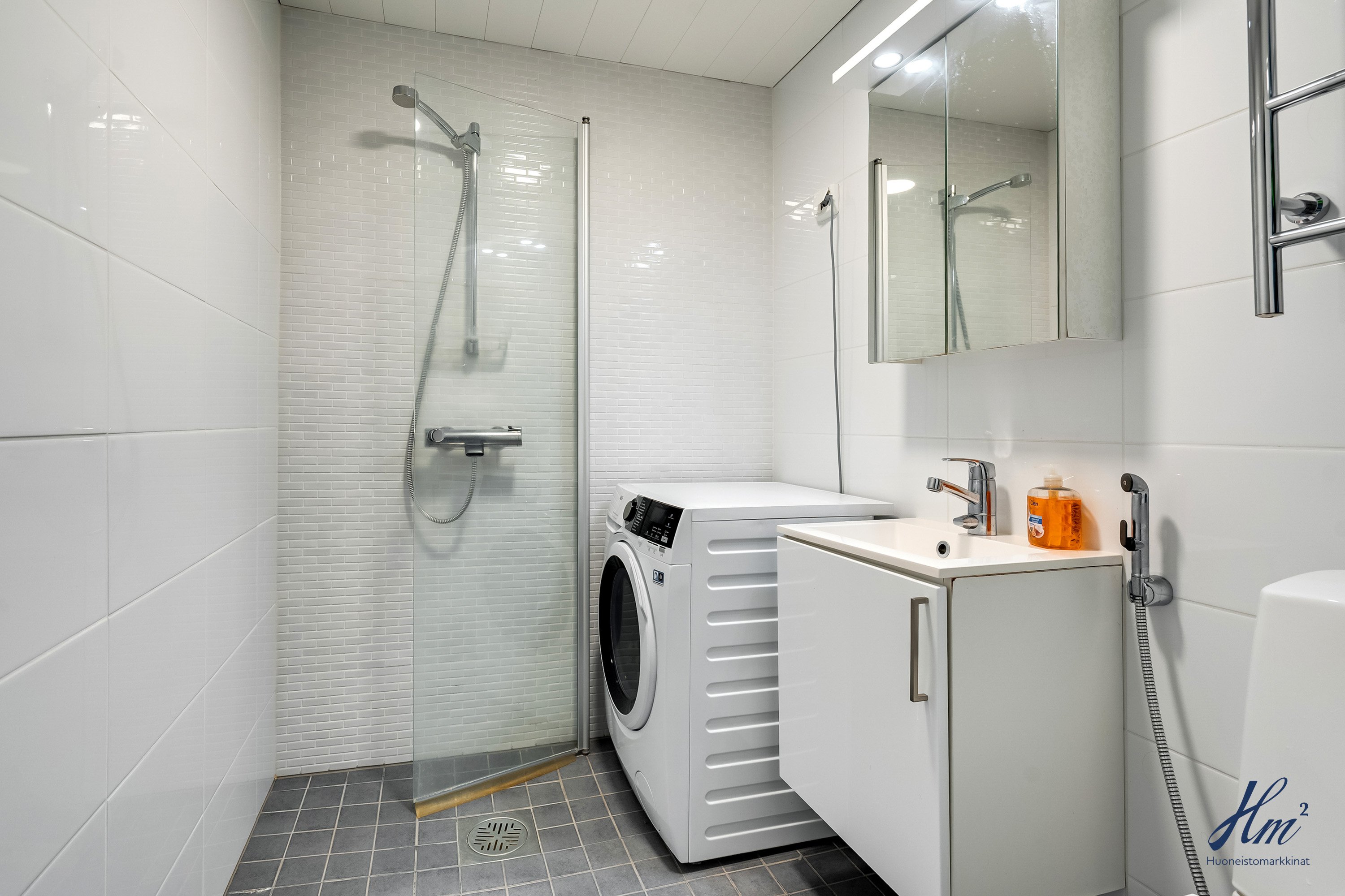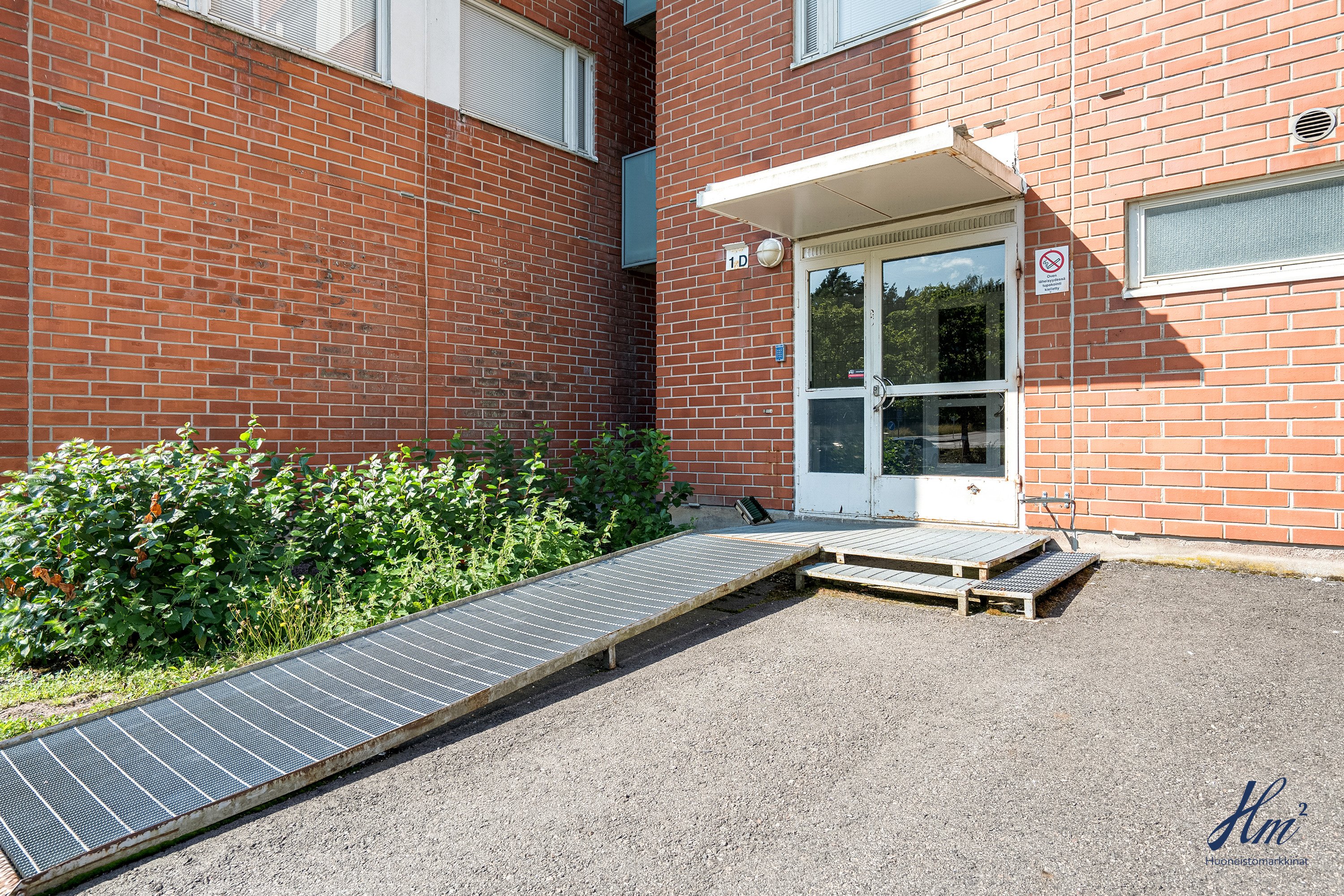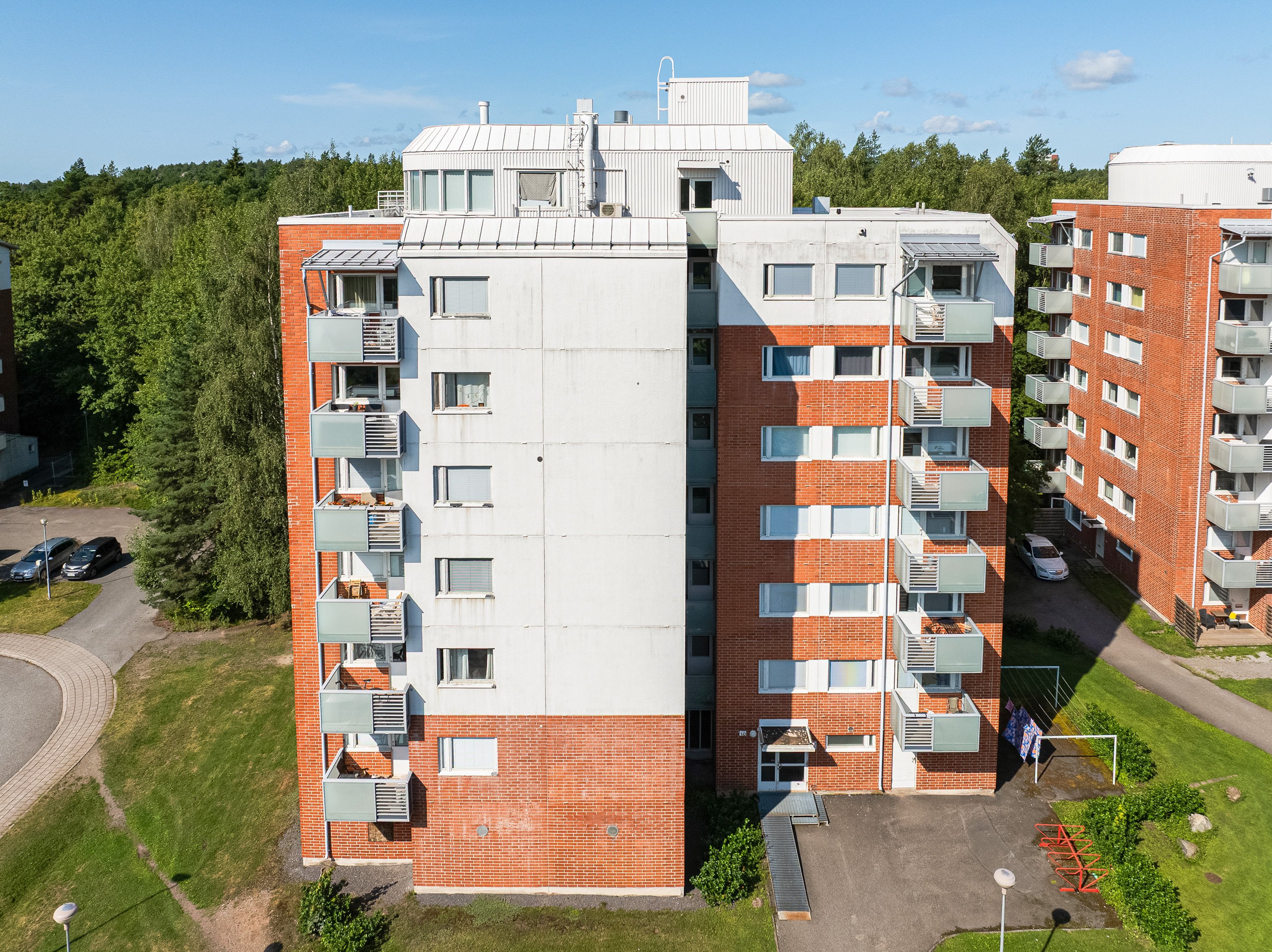 Tämä kerrostaloasunto sijaitsee rauhallisella alueella, jossa arki sujuu vaivattomasti. Lähin kauppa löytyy aivan tien toiselta puolelta, ja myös sujuvat julkiset yhteydet löytyvät läheltä.