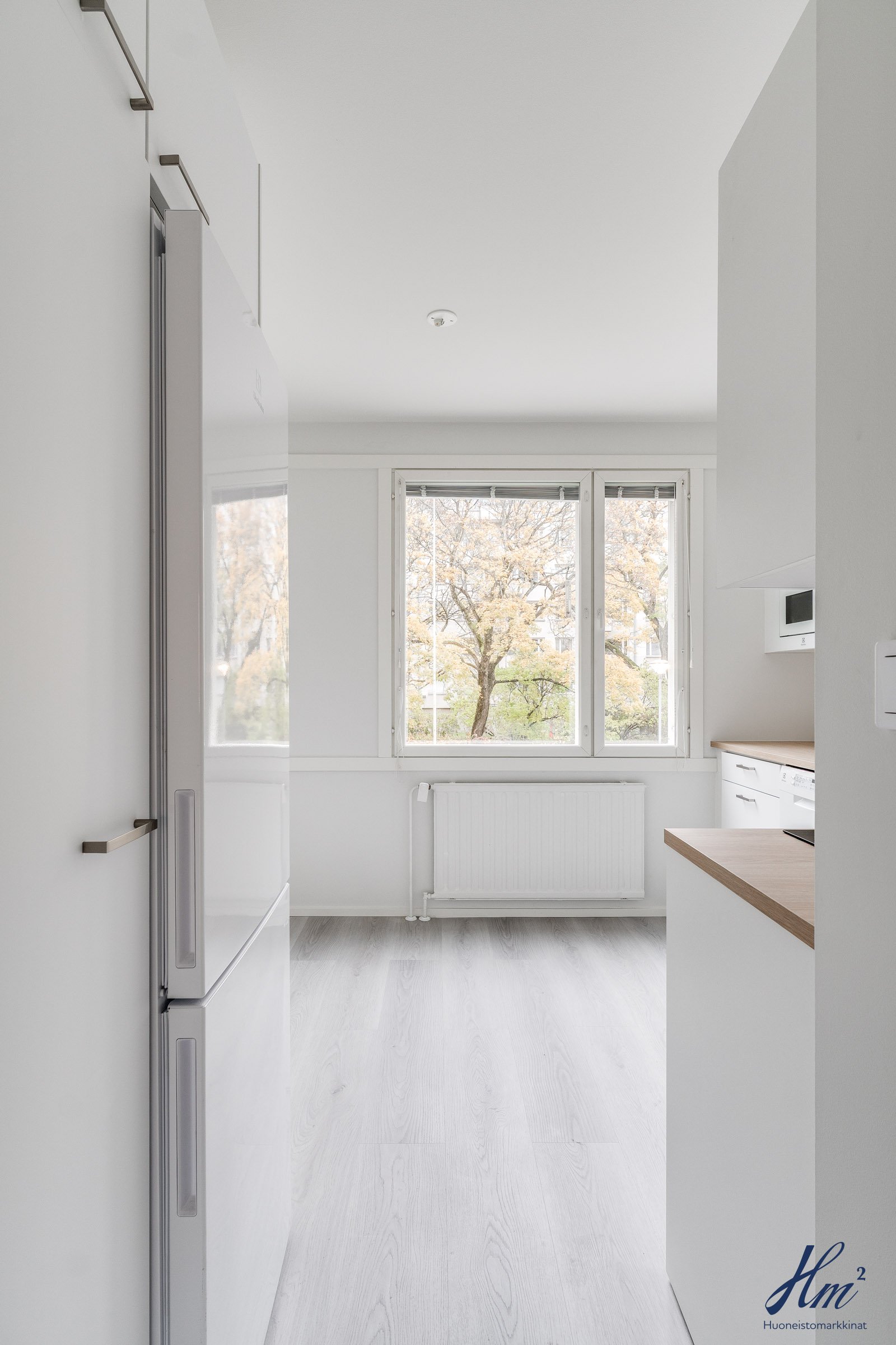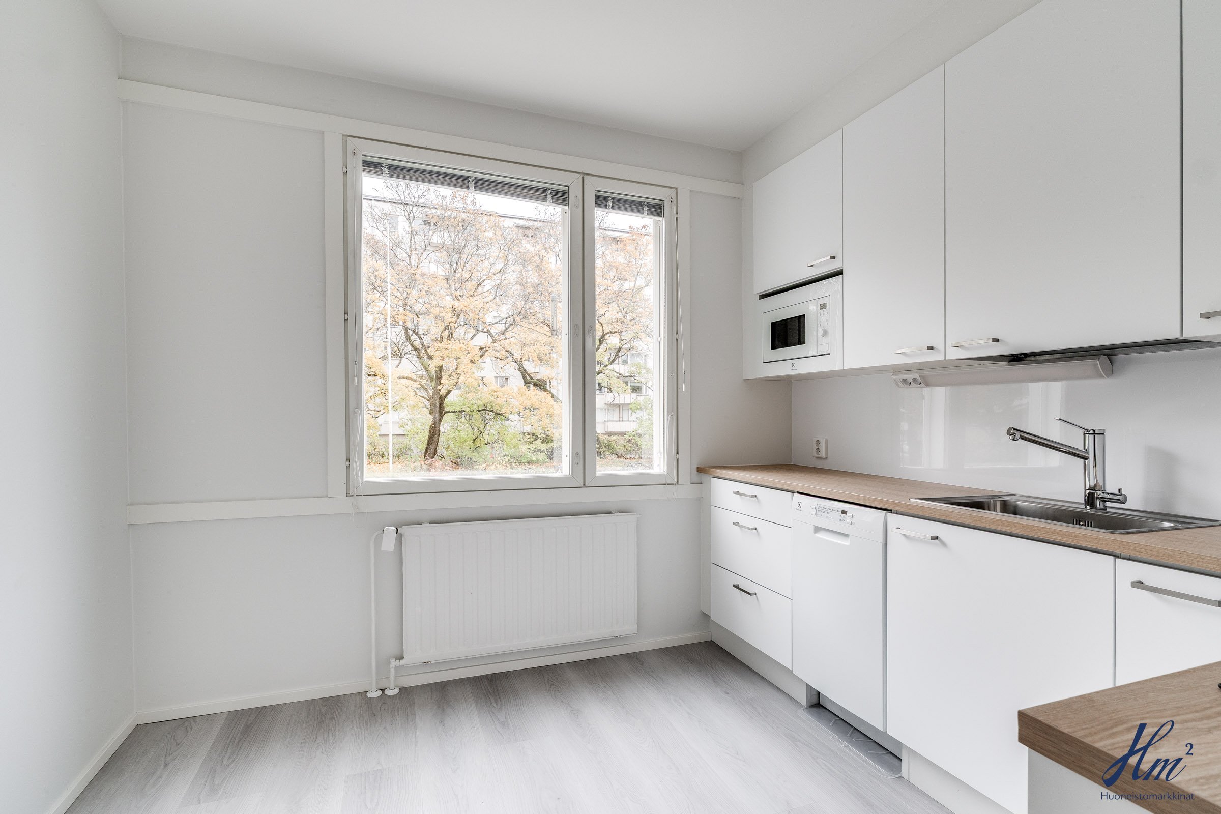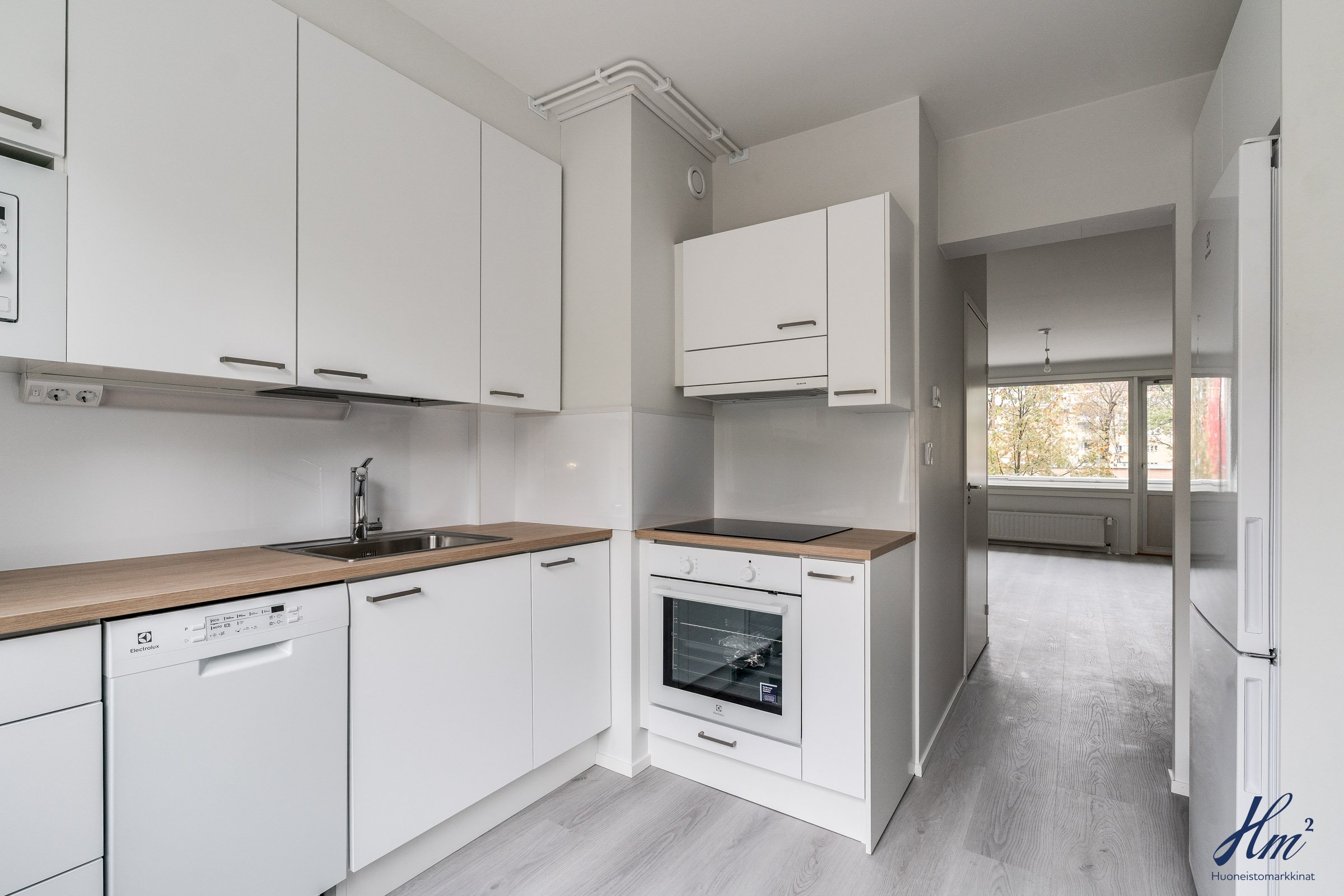 Vuonna 2025 kokonaan remontoidussa asunnossa on uusi keittiö, jossa on laadukkaat kodinkoneet, mukaan lukien induktioliesi ja astianpesukone. Kylpyhuone on myös täysin uusittu putkiremontin yhteydessä. Laminaattilattiat ja maalatut seinät luovat modernin ja raikkaan ilmeen.