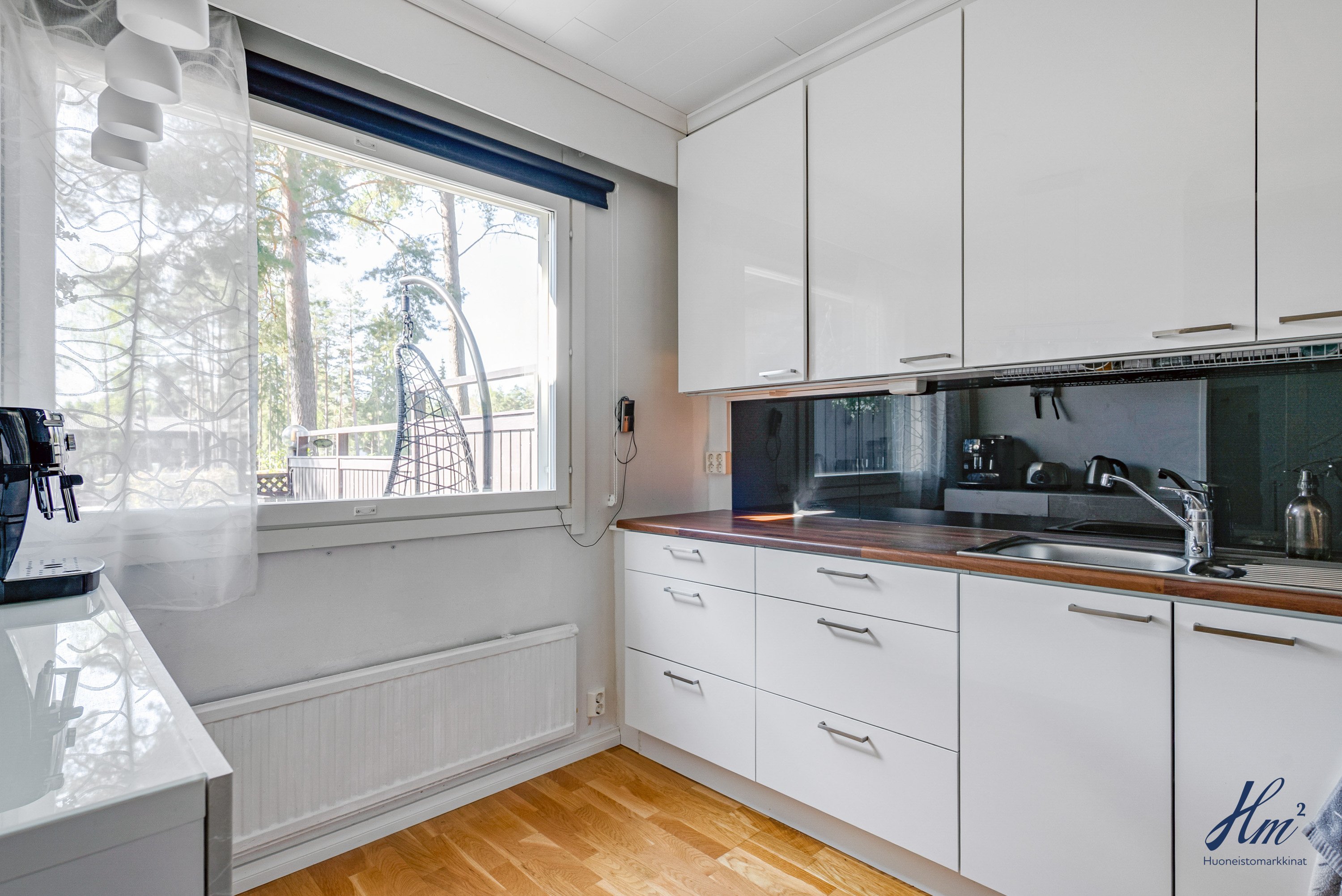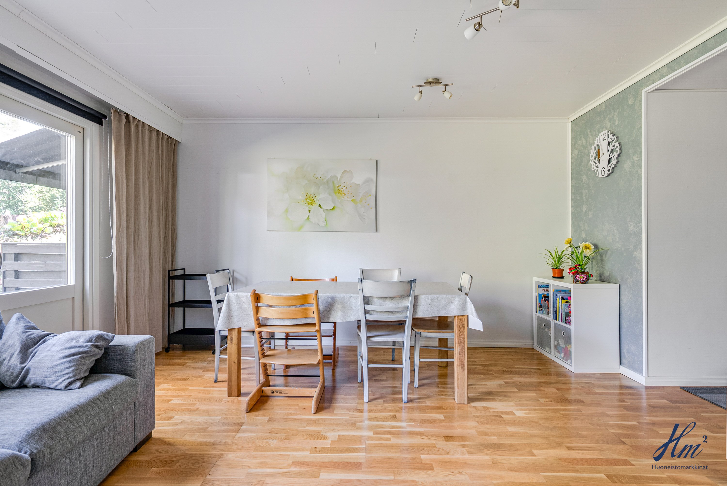 Tämä kaunis ja huolella pidetty rivitalohuoneisto tarjoaa toimivan pohjaratkaisun kahdessa kerroksessa sekä rauhallisen sijainnin luonnonläheisellä alueella.