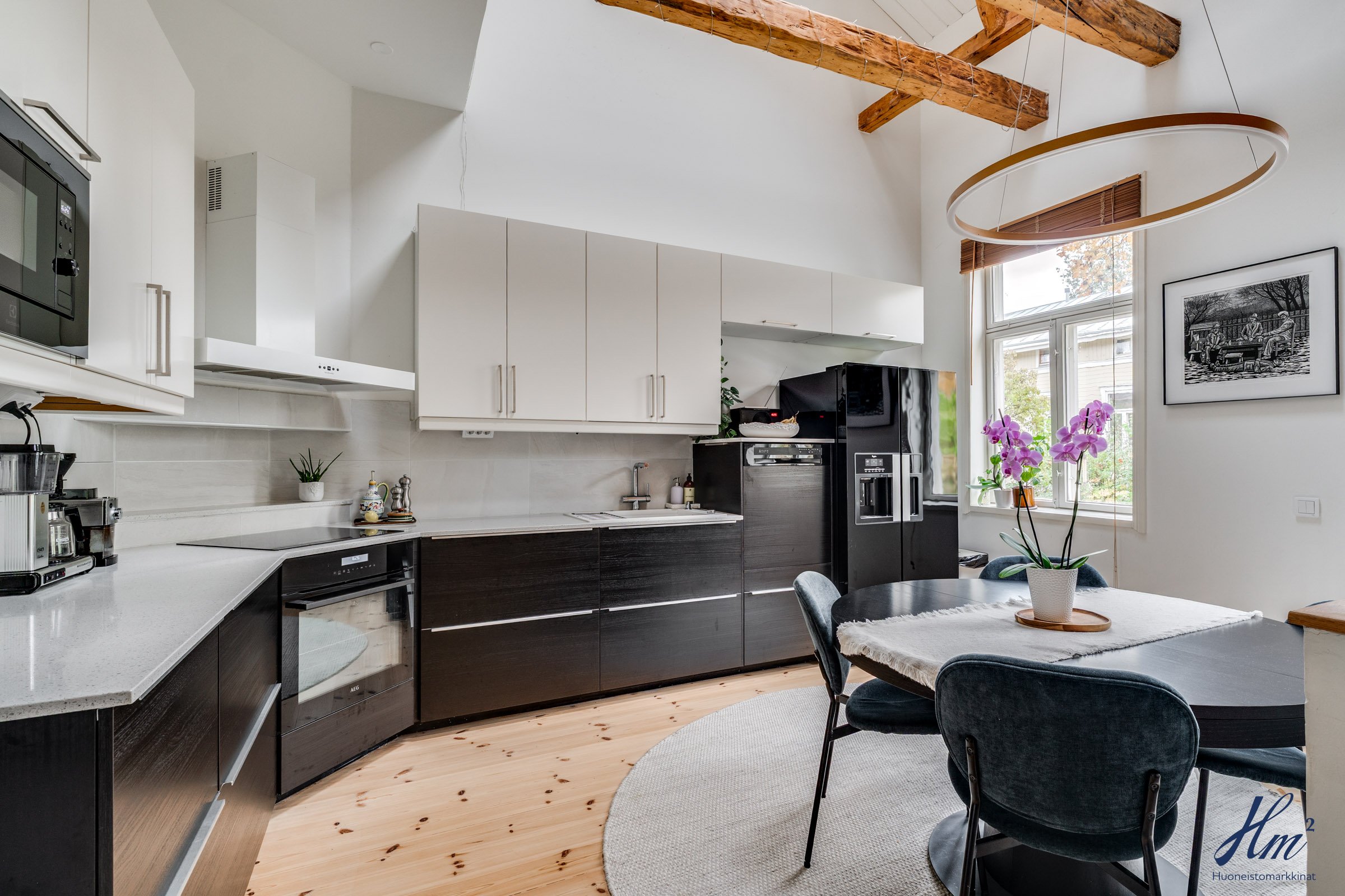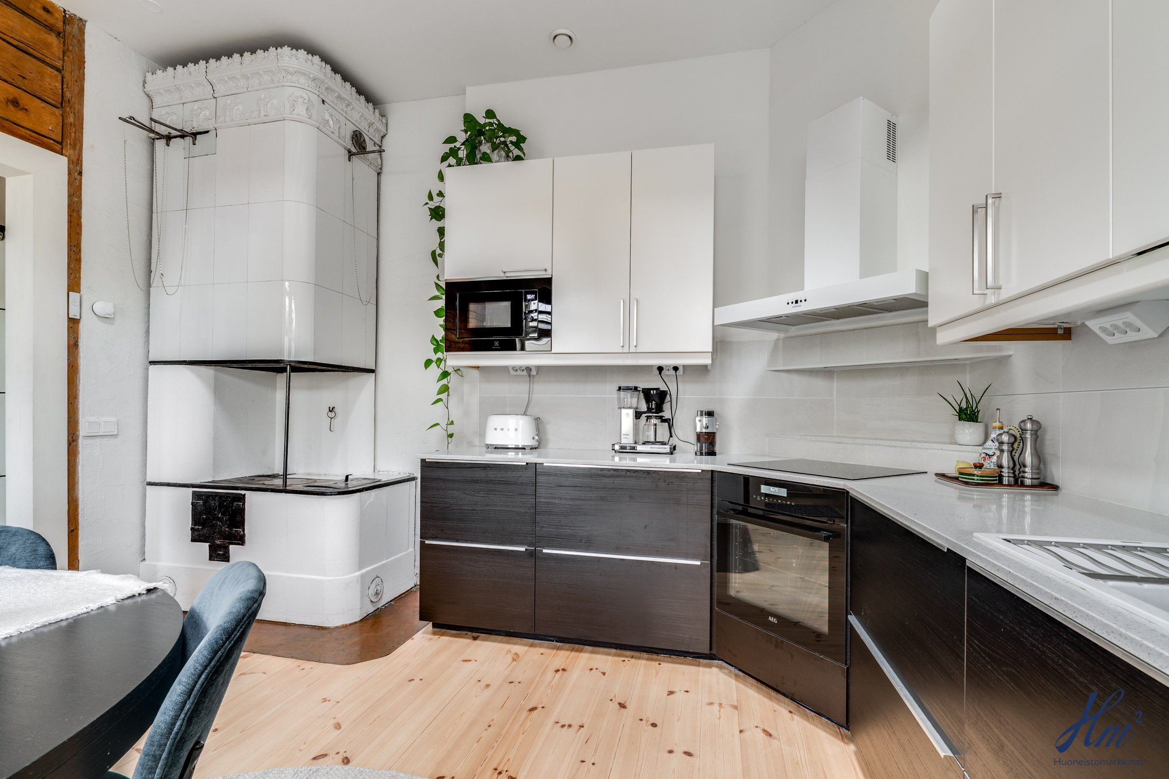 Tämä vuonna 1901 valmistunut koti tarjoaa ainutlaatuisen yhdistelmän historiaa ja modernia asumismukavuutta. Huoneisto on saneerattu kokonaisuudessaan vuonna 2014, ja asunto on lattiapinta-alaltaan n. 127 neliömetriä, jakautuen kolmeen kerrokseen. Puulattiat, kauniit kaakeliuunit, korkea huonekorkeus ja upeat yksityiskohdat luovat lämpimän ja kutsuvan tunnelman.