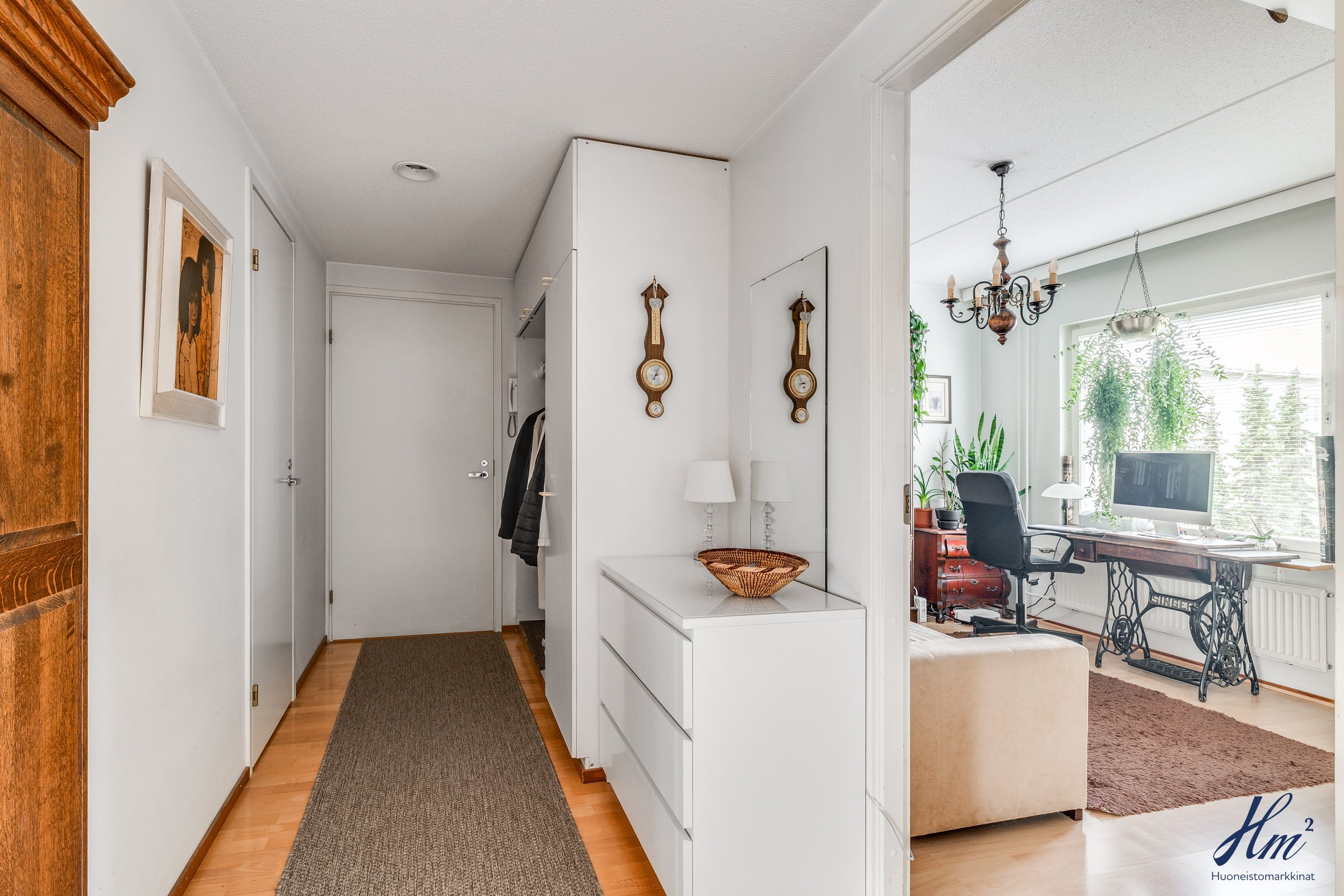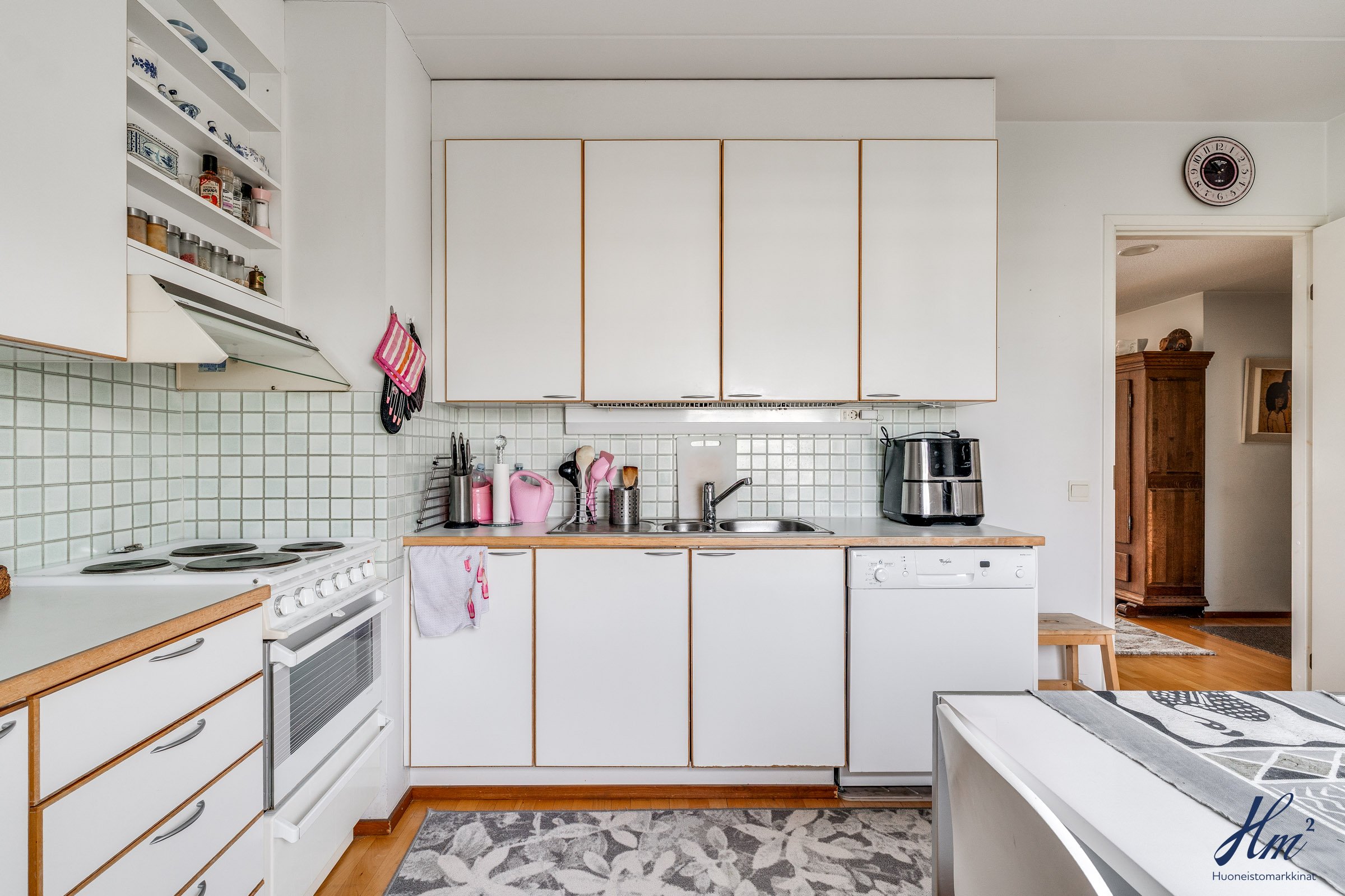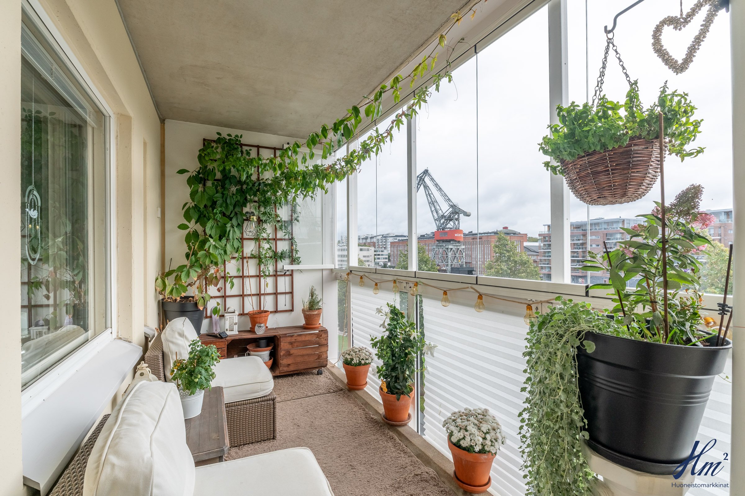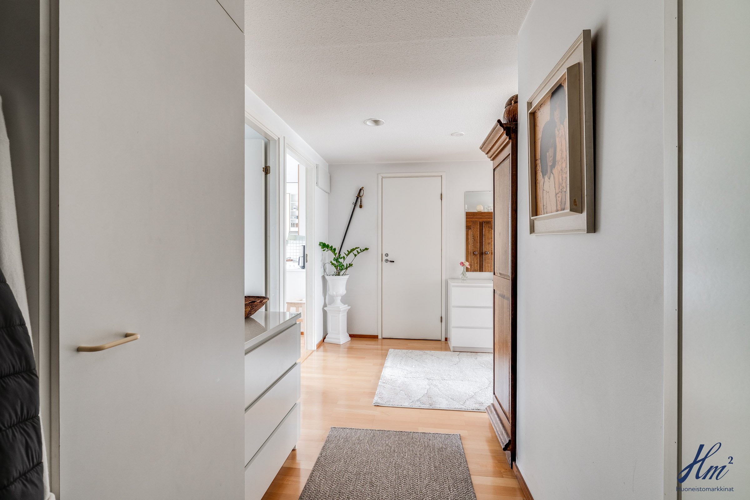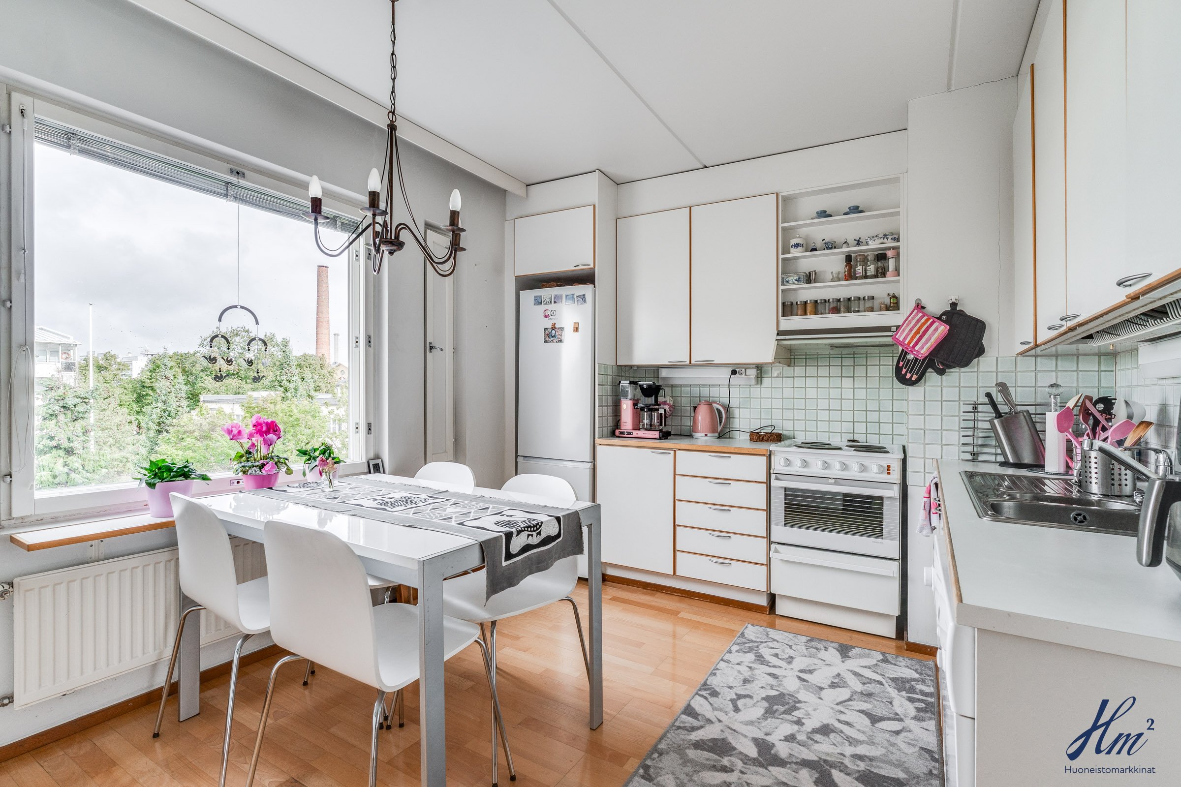 Tämä 84,5 m²:n kokoinen koti tarjoaa kaksi makuuhuonetta, olohuoneen, erillisen keittiön, kylpyhuoneen, saunan sekä lasitetun parvekkeen, jolta avautuvat suorat maisemat Aurajoelle. Parveke on kuin toinen olohuone. Paikka, jossa voi rauhoittua, seurata jokiliikennettä tai katsella auringonlaskun maalaamaa taivasta. Vuonna 1991 rakennetun talon neljännessä kerroksessa sijaitseva huoneisto on hyvässä peruskunnossa, ja pohjaratkaisu on käytännöllinen ja selkeä, ja säilytystilaa löytyy muun muassa vaatehuoneesta.