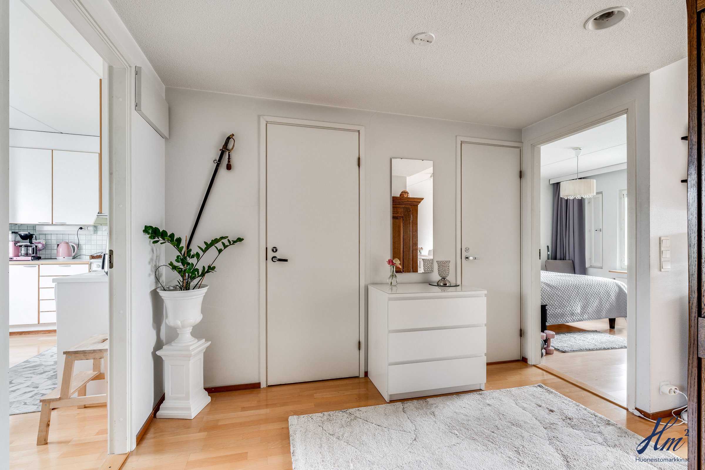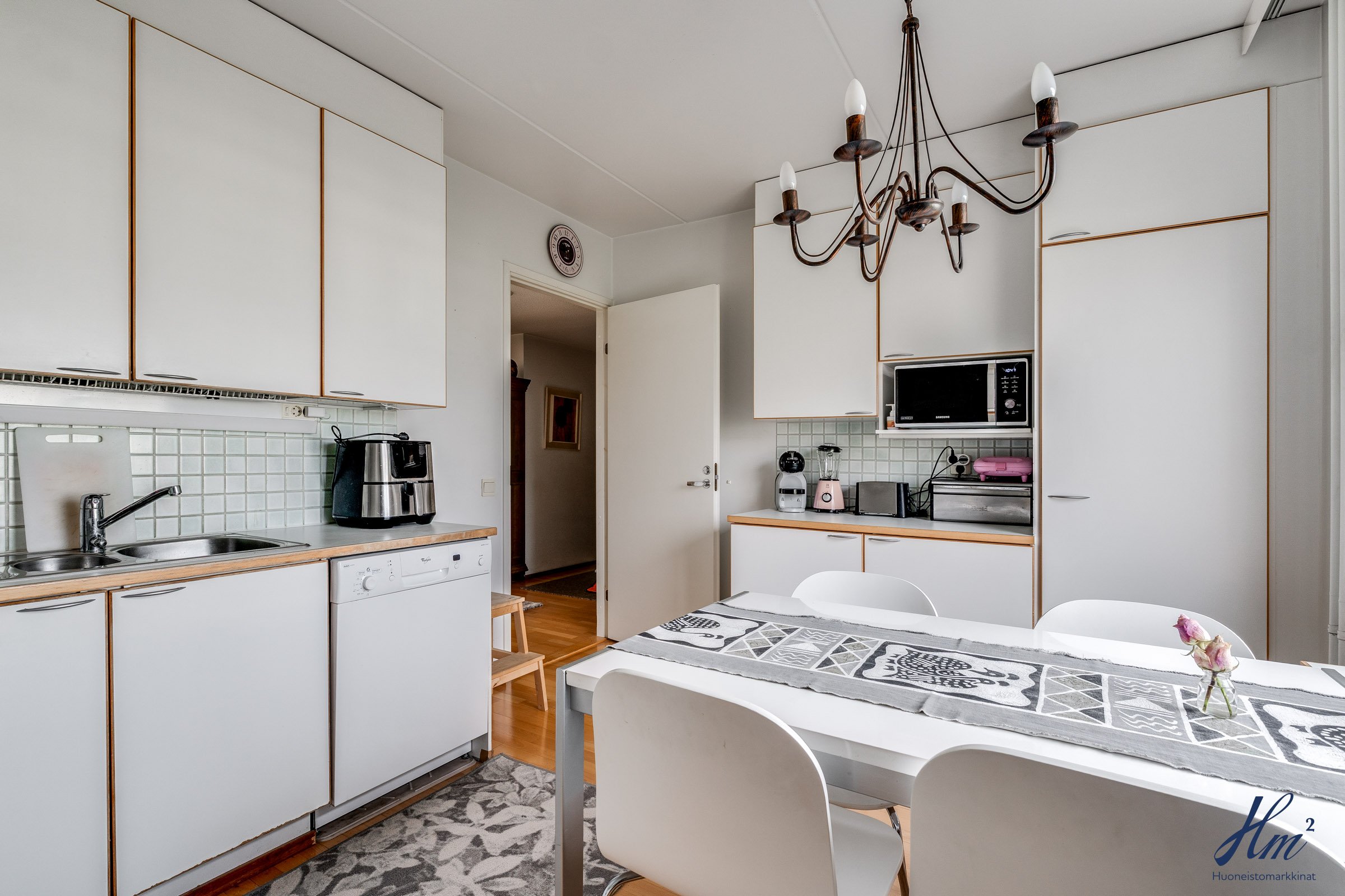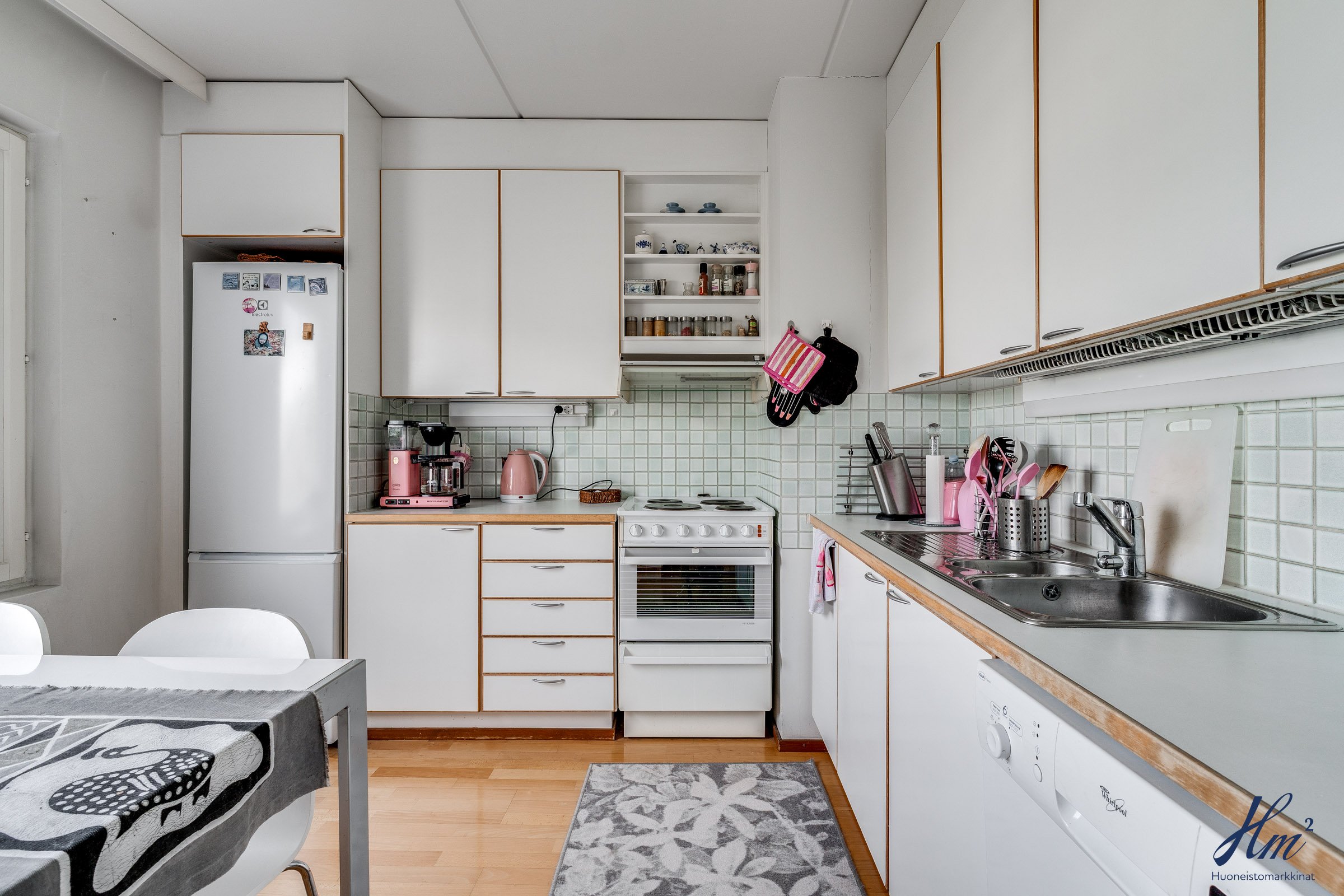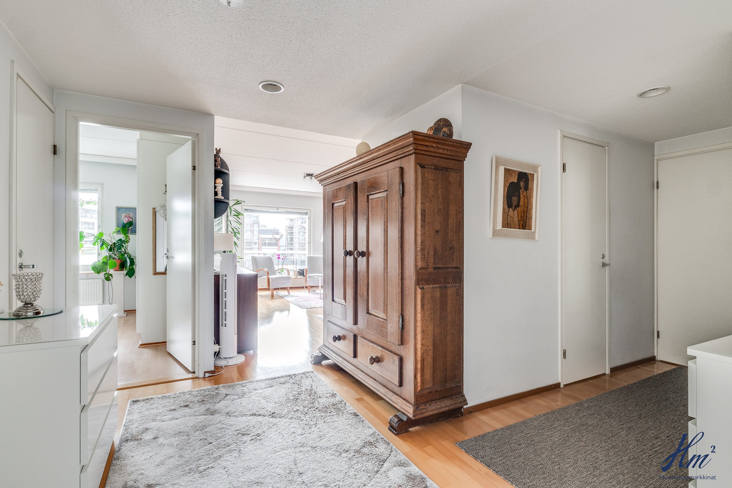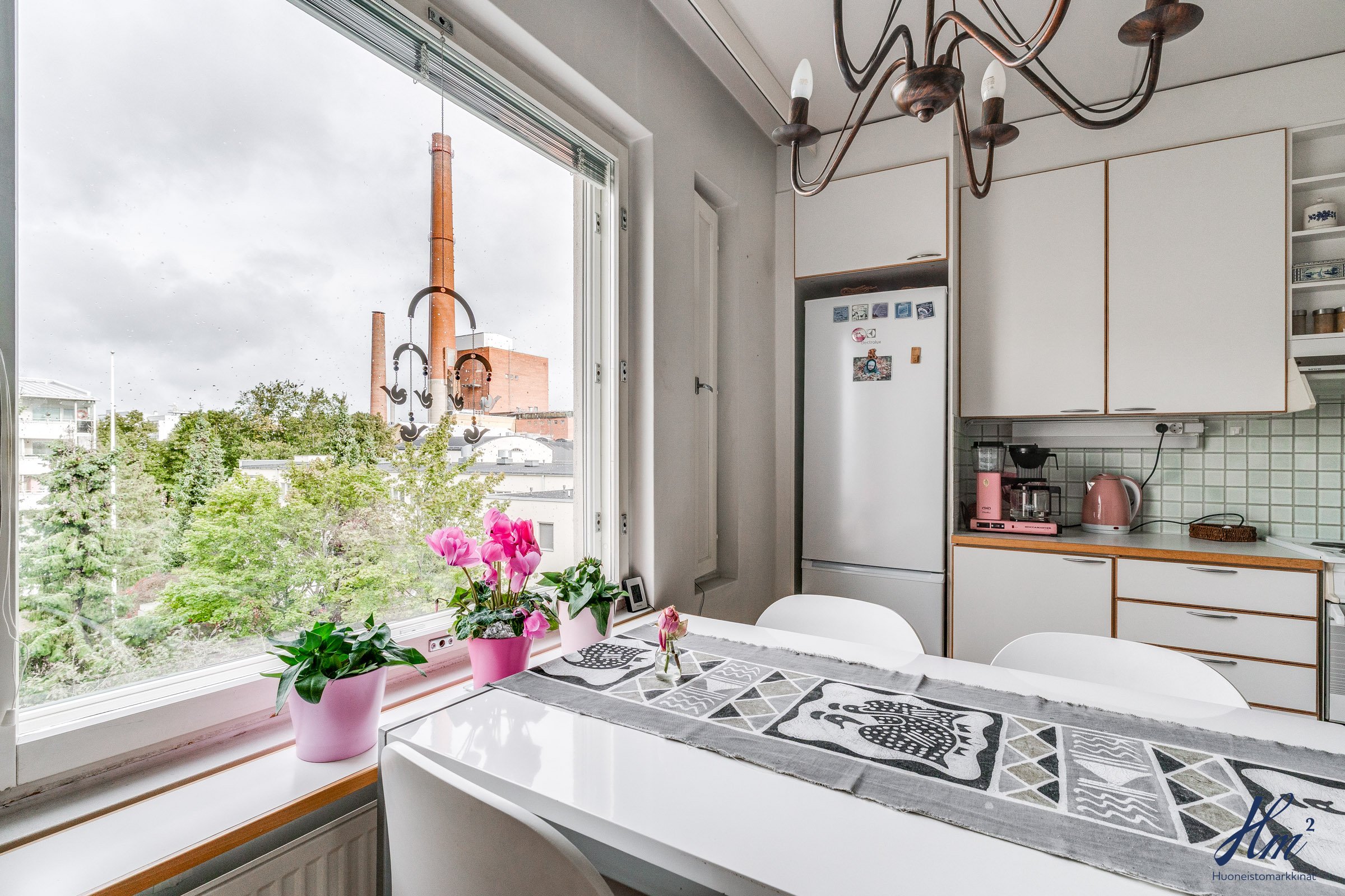 Tämä 84,5 m²:n kokoinen koti tarjoaa kaksi makuuhuonetta, olohuoneen, erillisen keittiön, kylpyhuoneen, saunan sekä lasitetun parvekkeen, jolta avautuvat suorat maisemat Aurajoelle. Parveke on kuin toinen olohuone. Paikka, jossa voi rauhoittua, seurata jokiliikennettä tai katsella auringonlaskun maalaamaa taivasta. Vuonna 1991 rakennetun talon neljännessä kerroksessa sijaitseva huoneisto on hyvässä peruskunnossa, ja pohjaratkaisu on käytännöllinen ja selkeä, ja säilytystilaa löytyy muun muassa vaatehuoneesta.