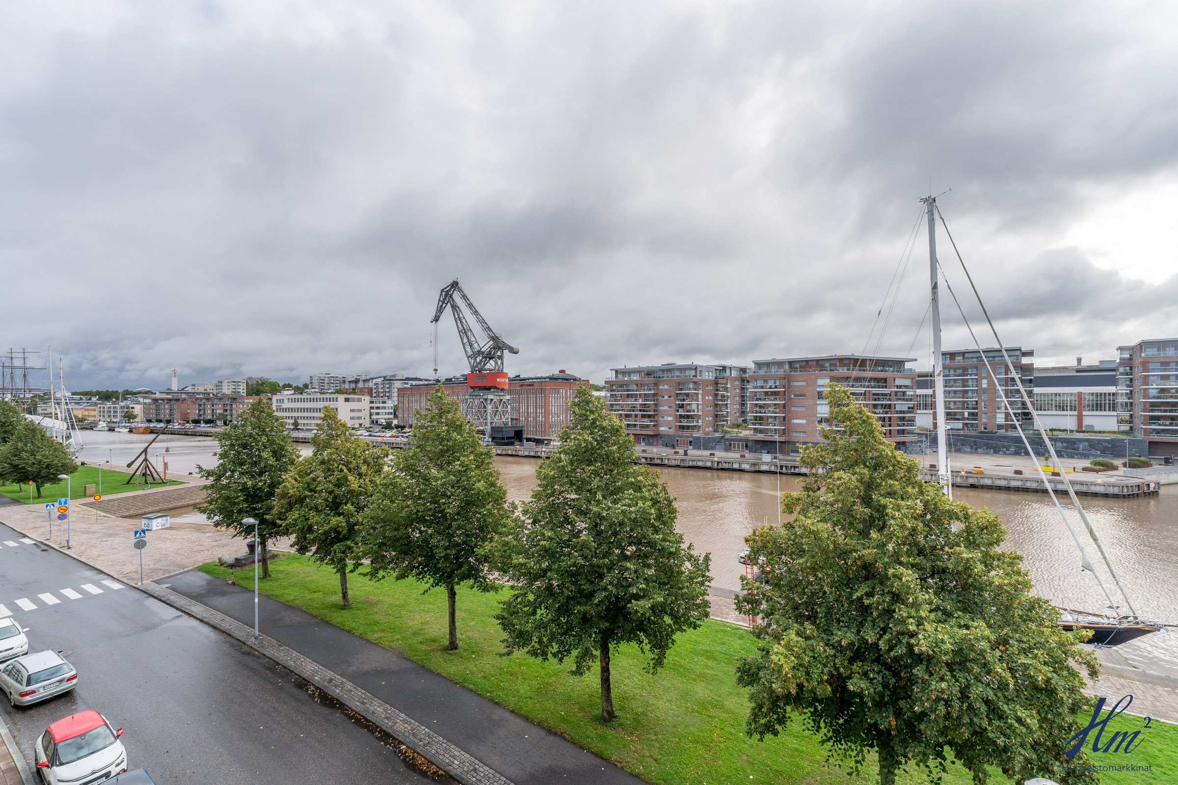 Aurajoen rannalla, vain muutaman askeleen päässä jokirannan ravintoloista ja palveluista, avautuu näkymä, jota on harvoin tarjolla. Tässä Läntisen Rantakadun neljännen kerroksen läpi talon huoneistossa ikkunat avautuvat sekä sisäpihalle että joen suuntaan.