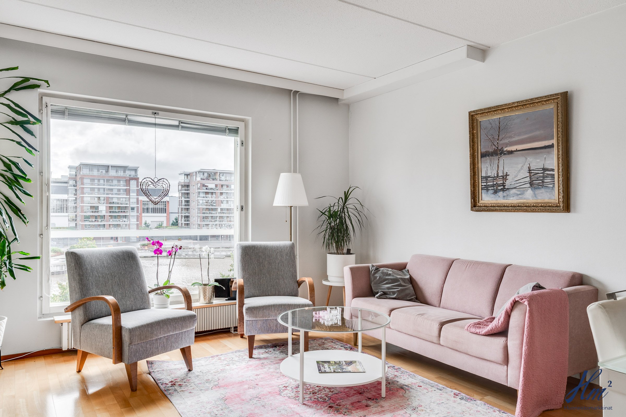 Sijainti on yksi kaupungin halutuimmista, jokirannan kulttuurimaisemat, ravintolat ja lenkkipolut avautuvat kotiovelta.