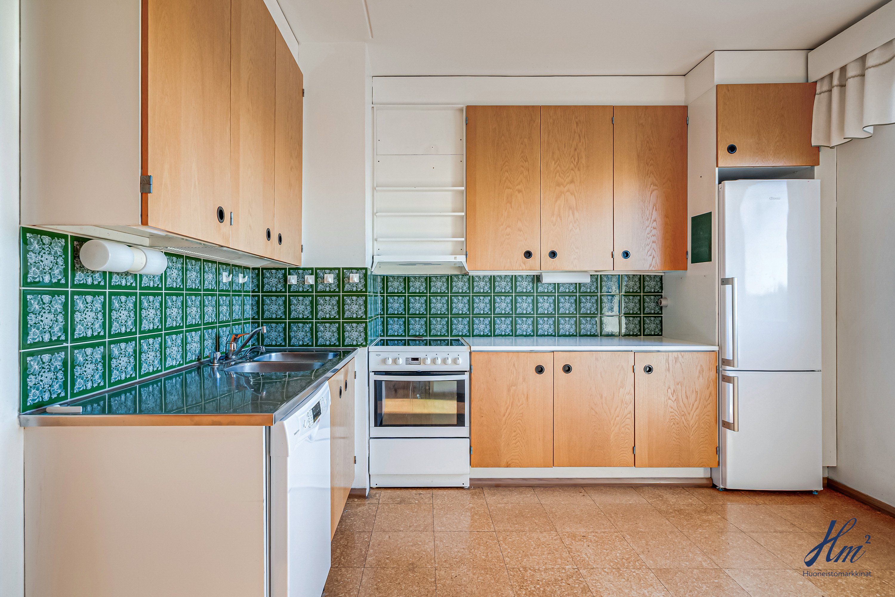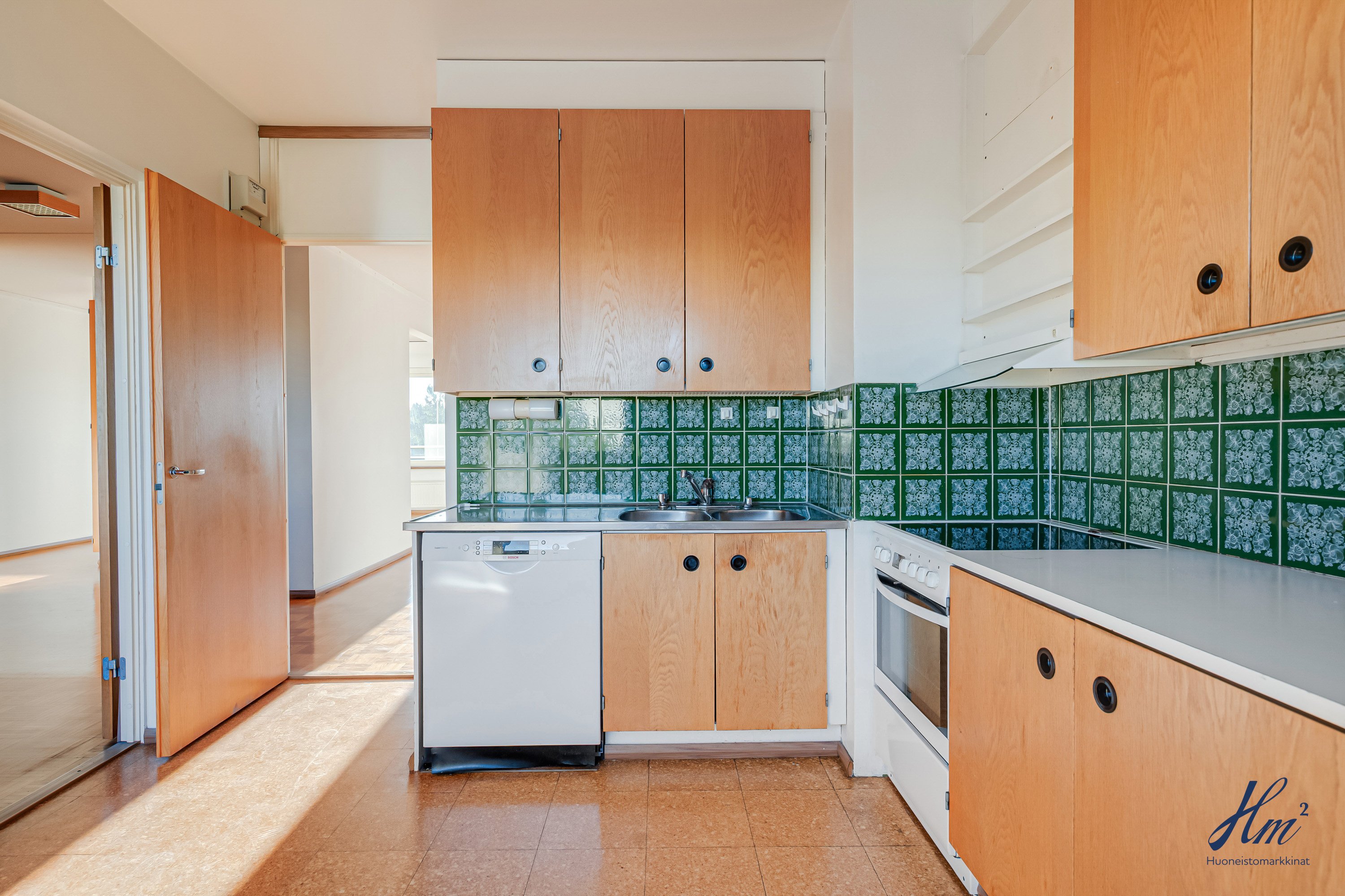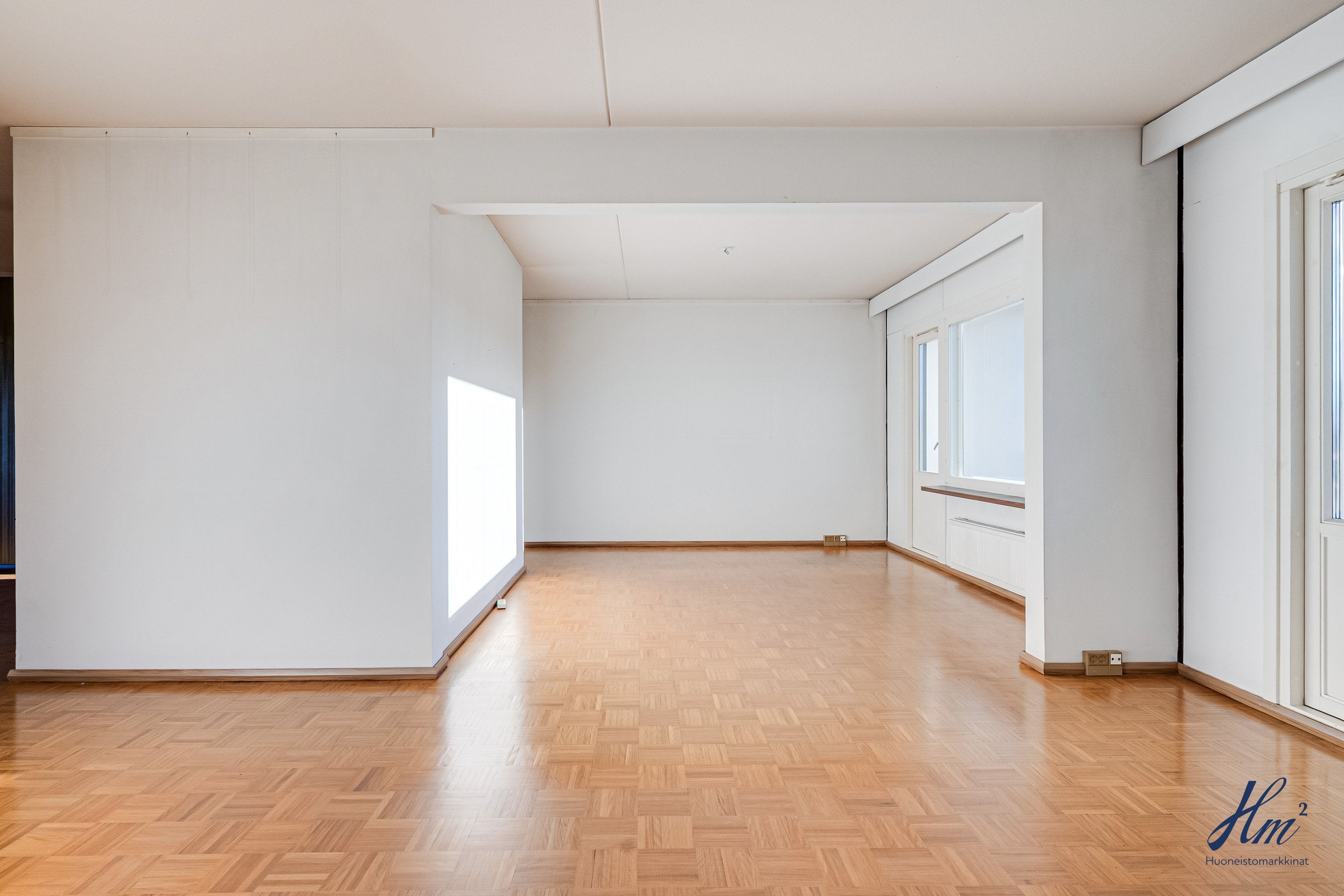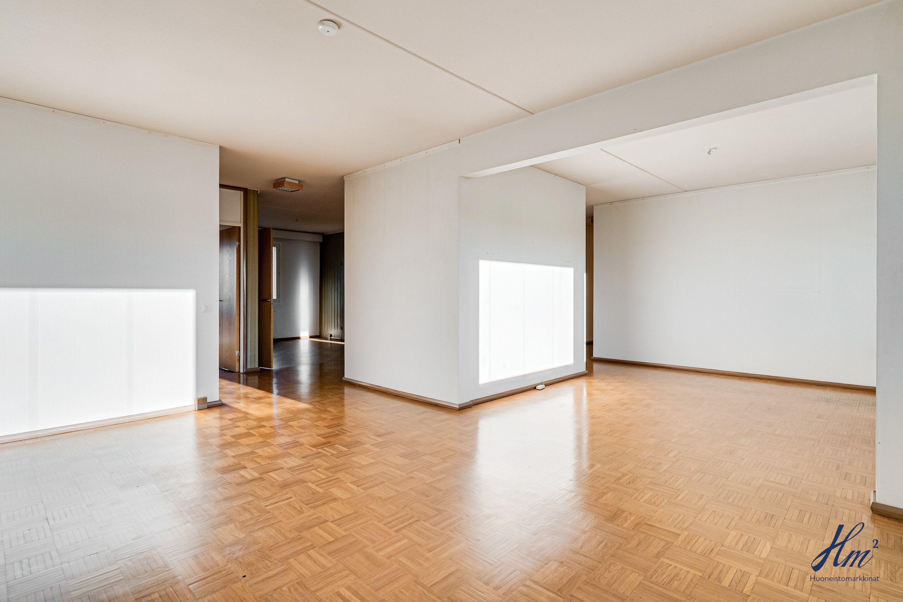 Tämä asunto tarjoaa aivan uniikin mahdollisuuden remonttitaitoiselle tekijälle. Tämä rakennusvaiheessa kolmesta asunnosta yhdistetty huoneisto pitää sisällään runsaat neliöt ja loistavat toiminnot. Makuuhuoneita on tällä hetkellä neljä ja pohjaratkaisu tarjoaa mahdollisuuden myös lisämakuuhuoneiden rakentamiseen. Kylpyhuoneita on kaksi, jonka lisäksi kolmas kylpyhuone on alusta lähtien toiminut kodinhoitotilana. Tulevan linjasaneerauksen yhteydessä kodin kylpyhuoneet ja vesikalusteet uusitaan. Asunnosta löytyy myös sauna ja etelän puoleisia laistettuja parvekkeita on kaiken kaikkiaan kolme.