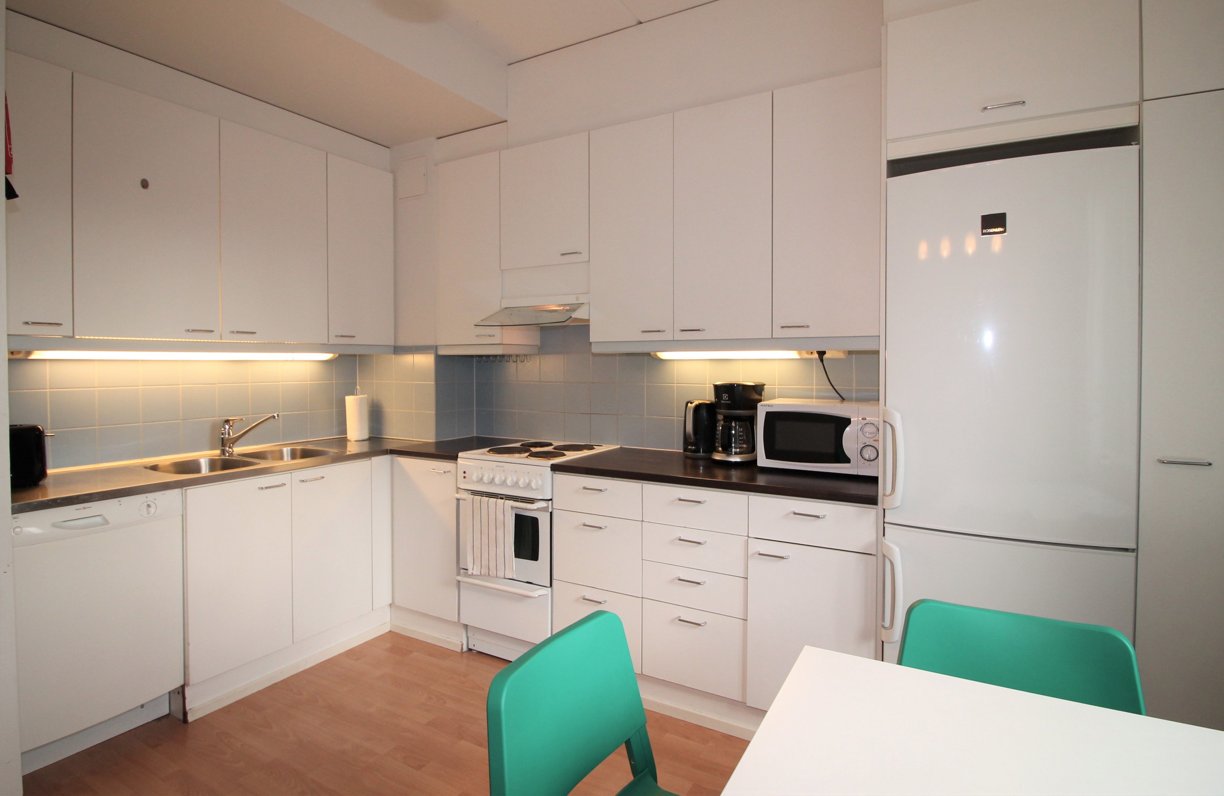 Jääkaappipakastin, liesi, liesituuletin, uuni ja astianpesukone