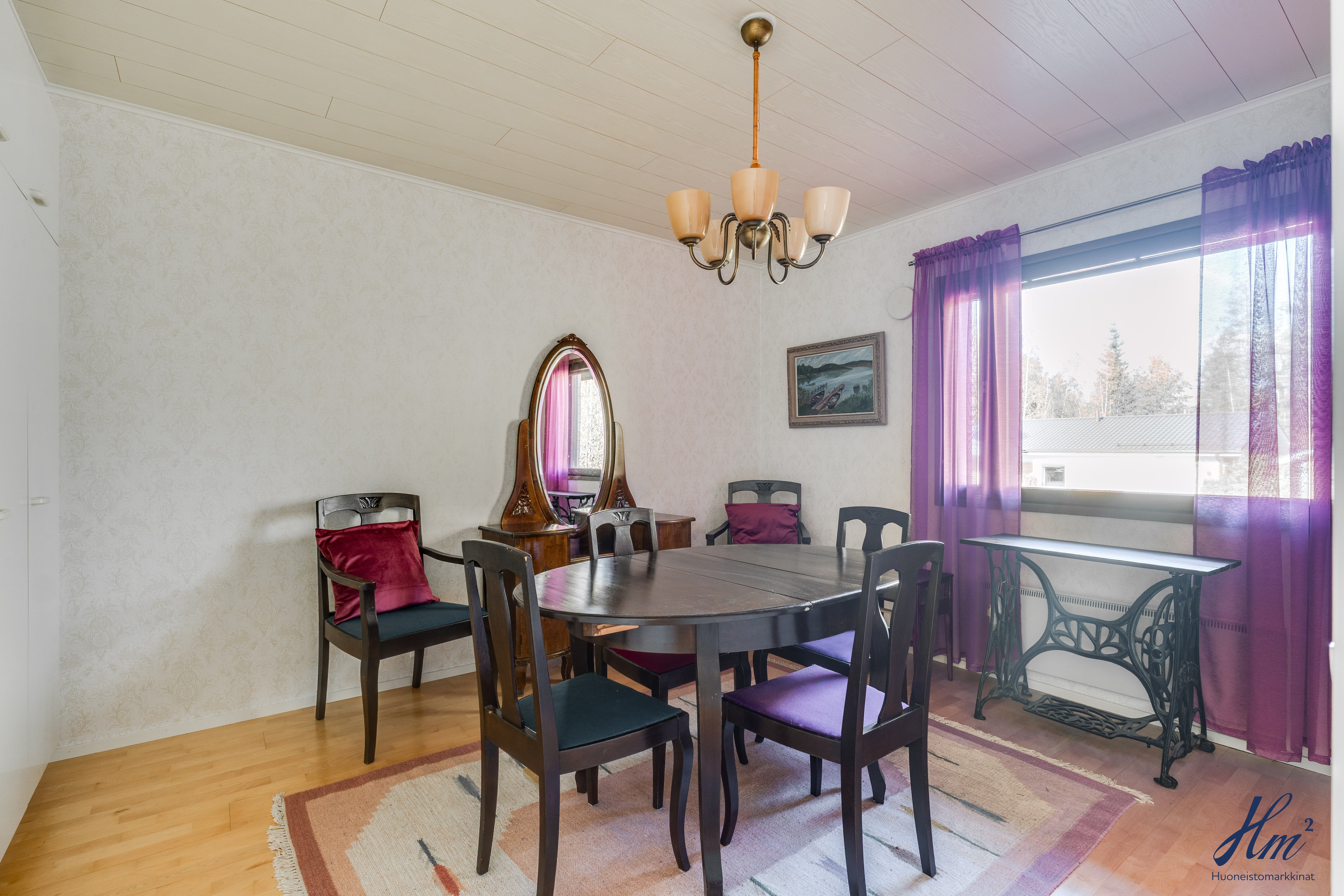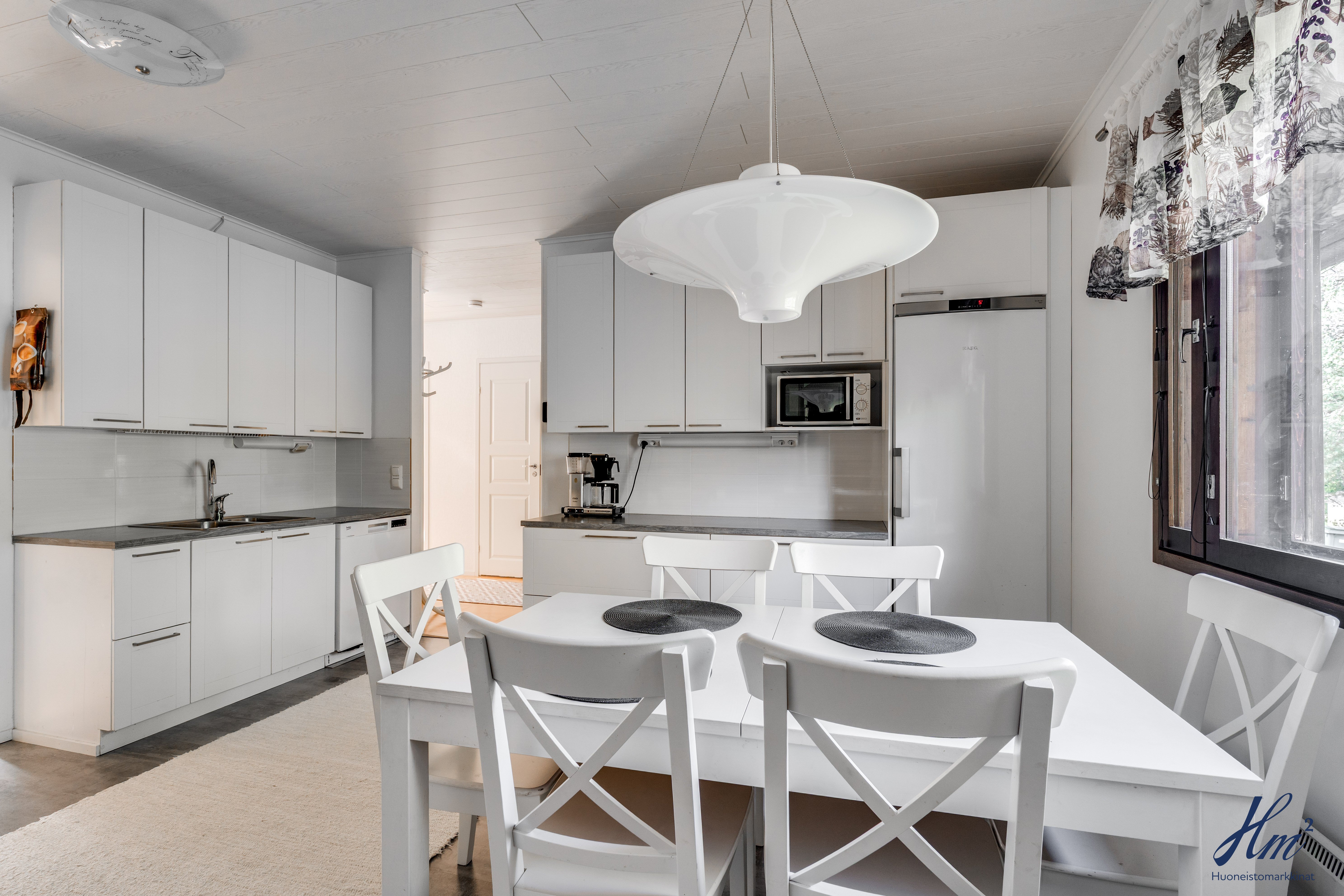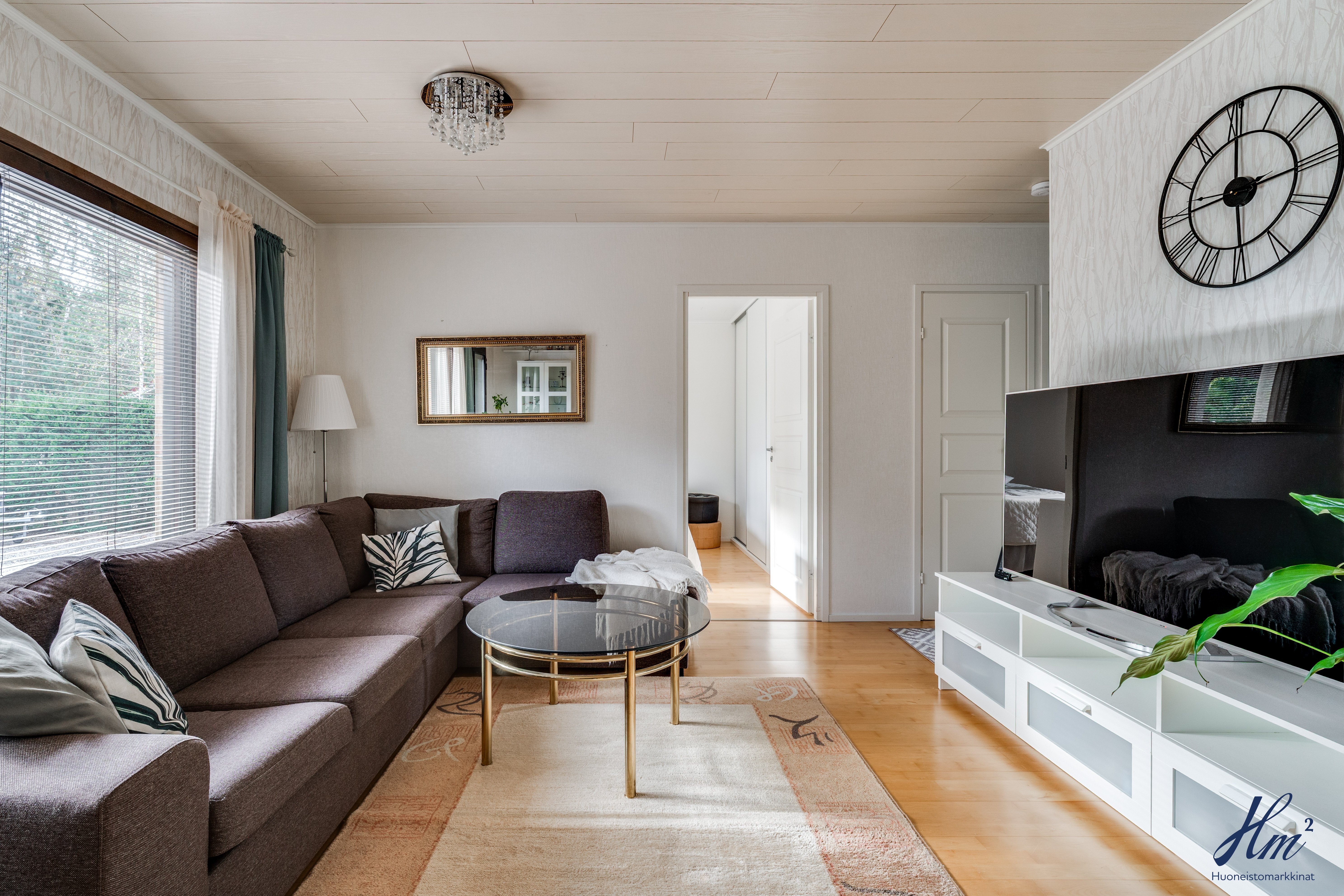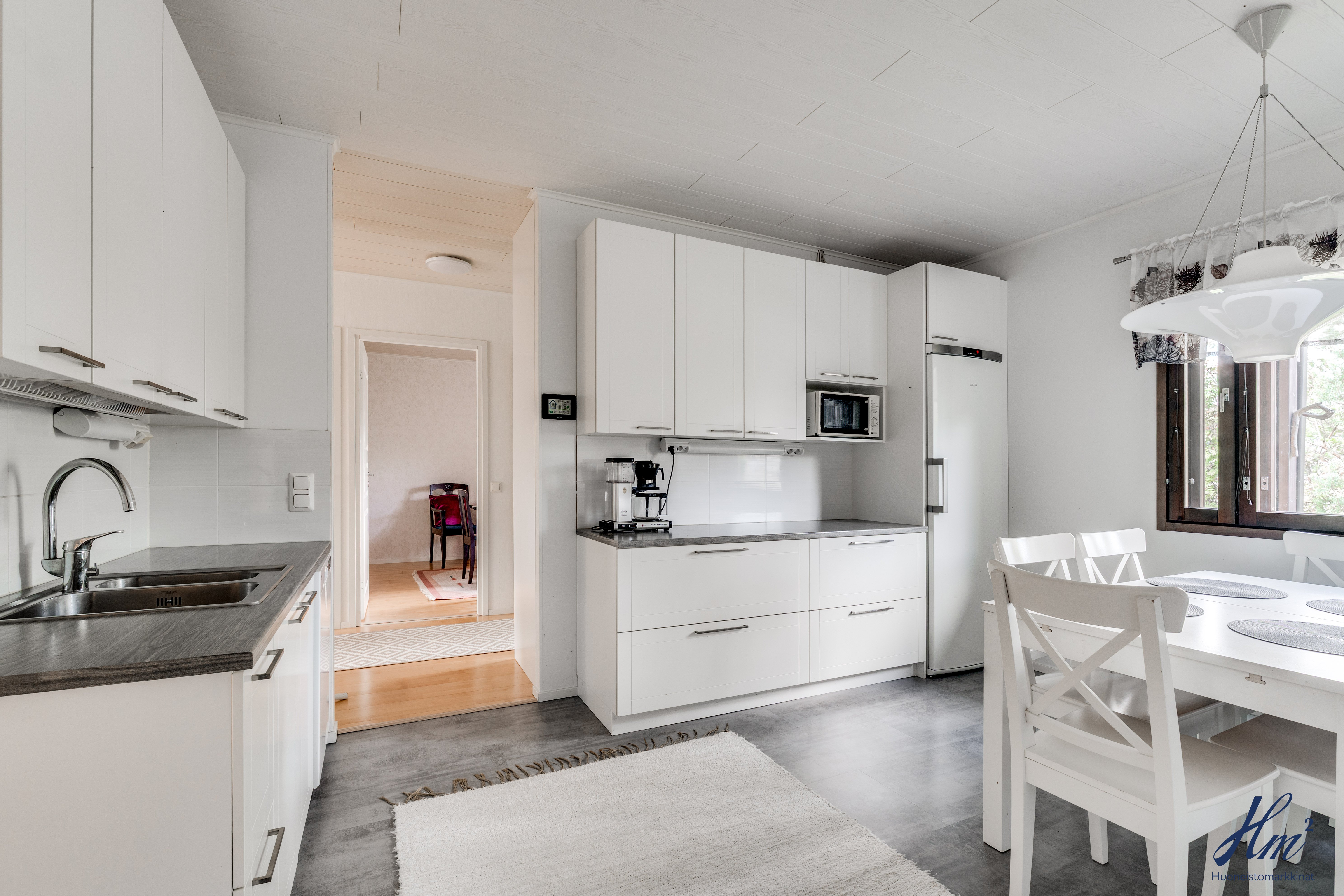 Olohuoneen lisäksi on kolme makuuhuonetta keittiö, wc ja pesuhuone, sauna.