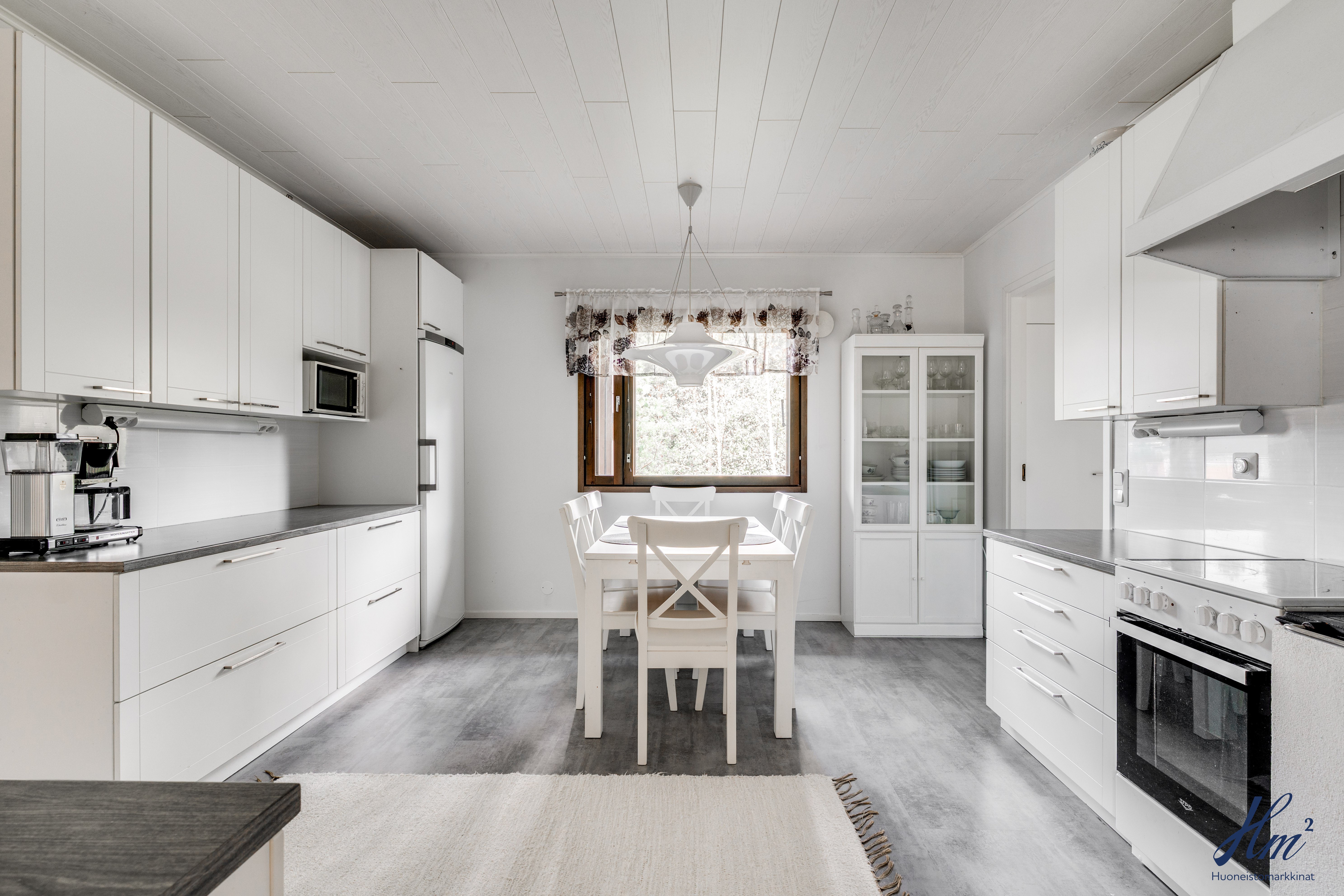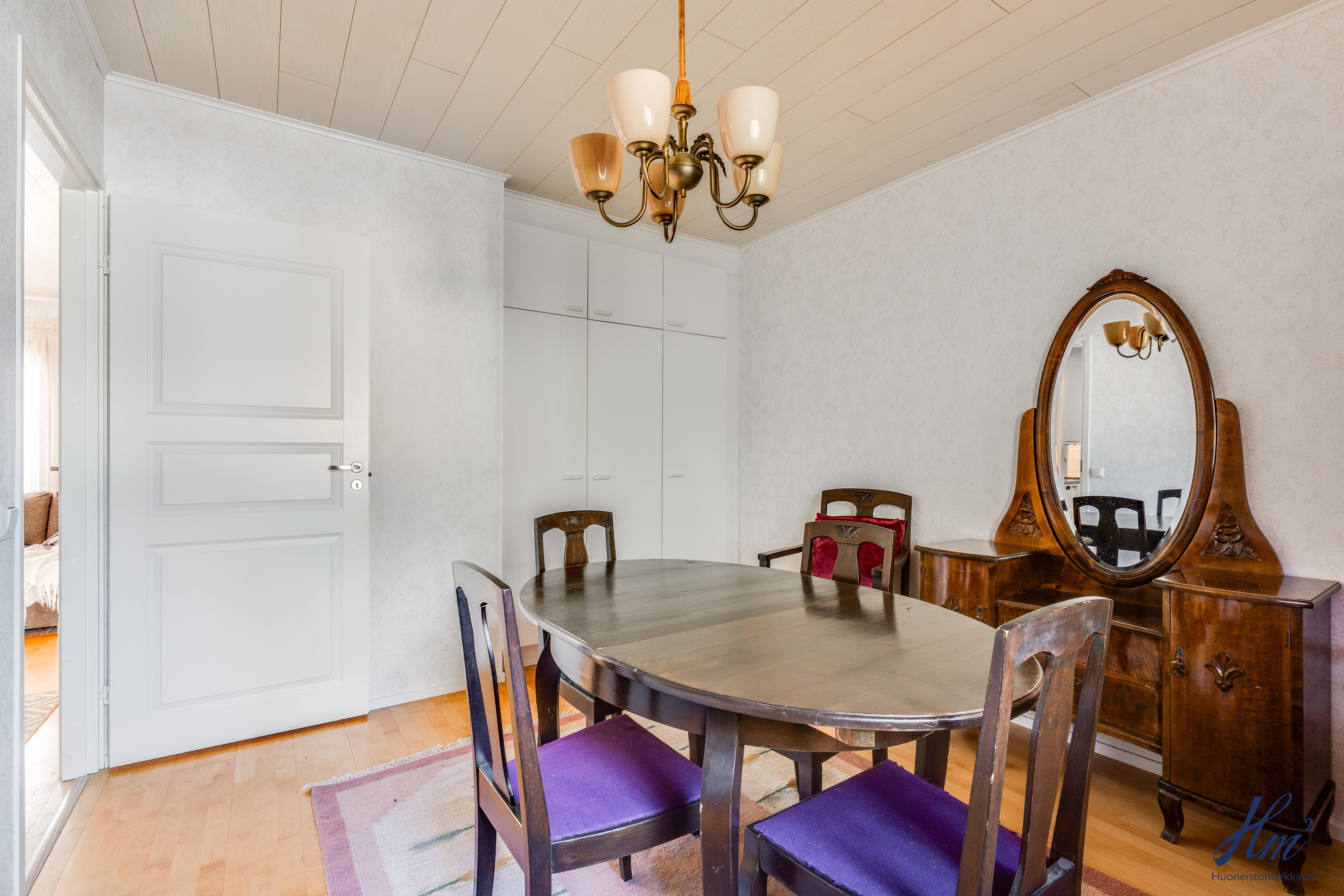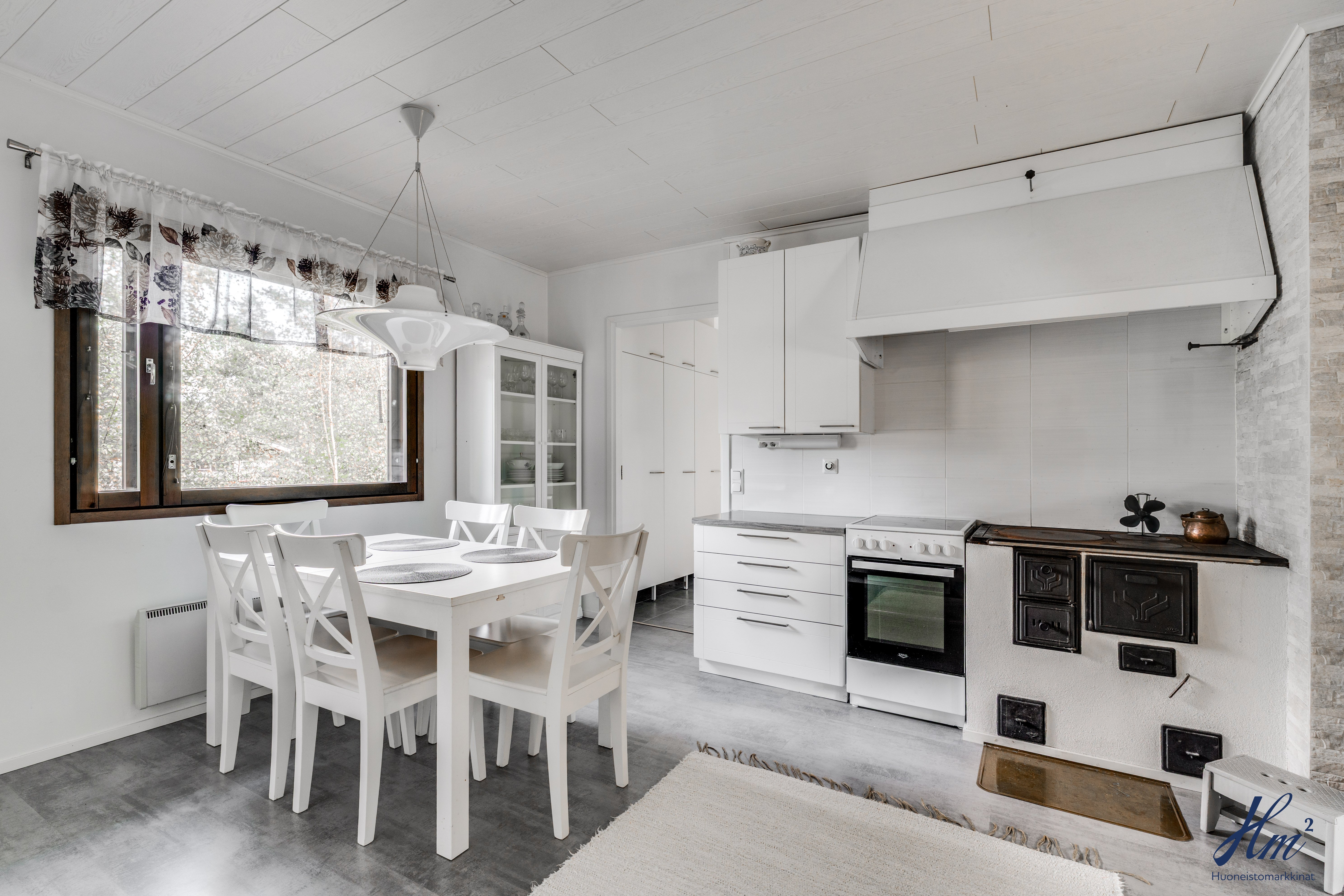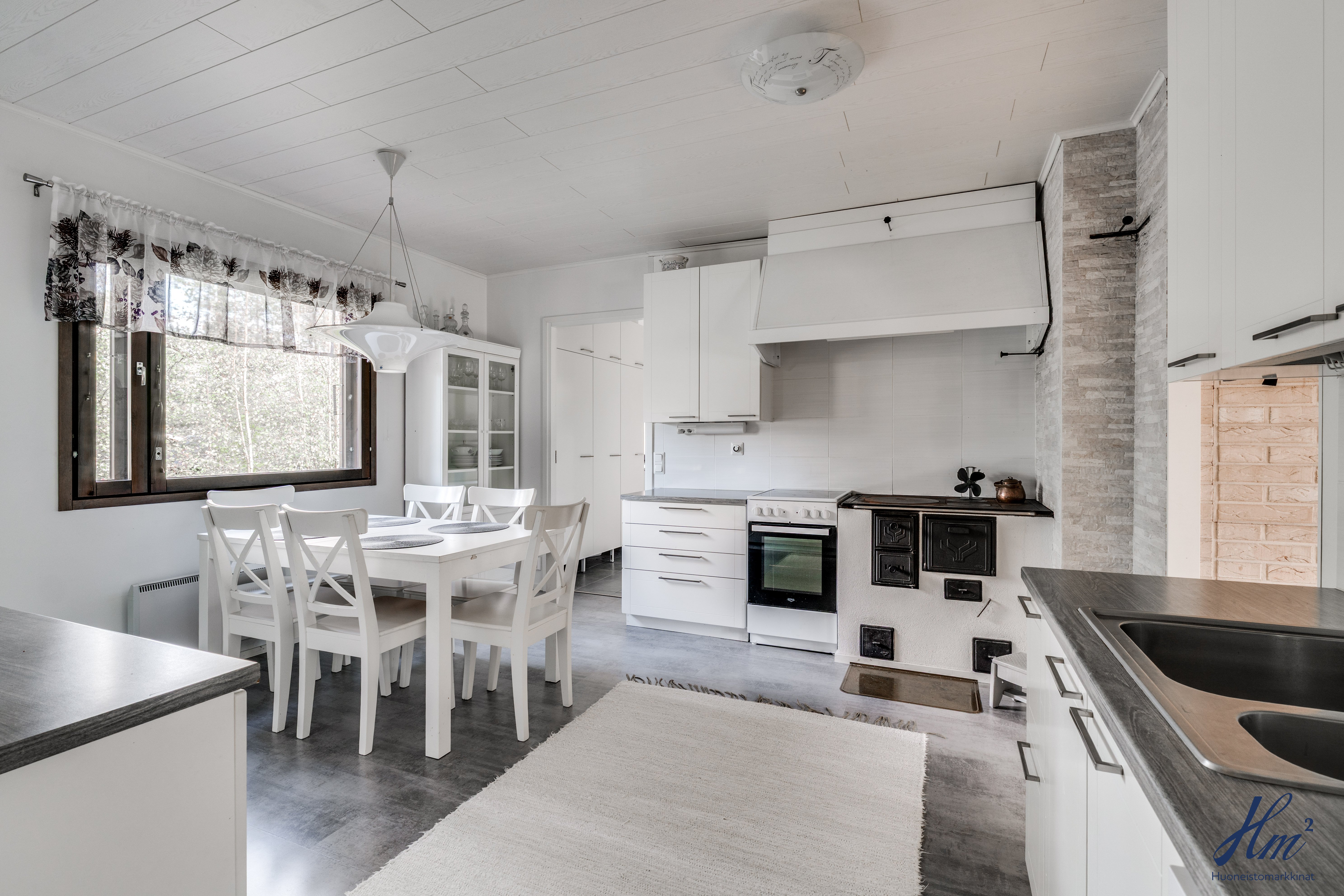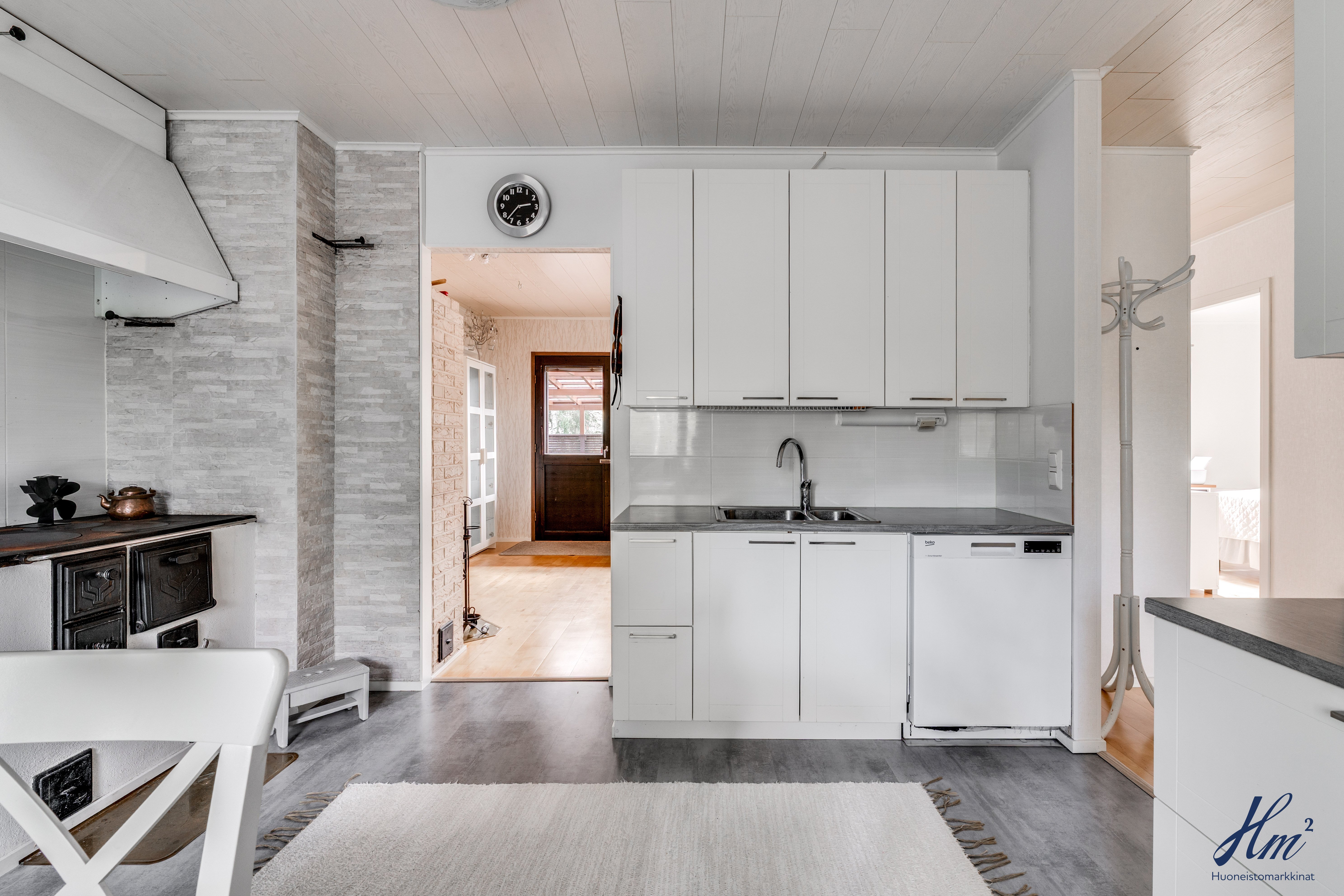 Olohuoneen lisäksi on kolme makuuhuonetta keittiö, wc ja pesuhuone, sauna.