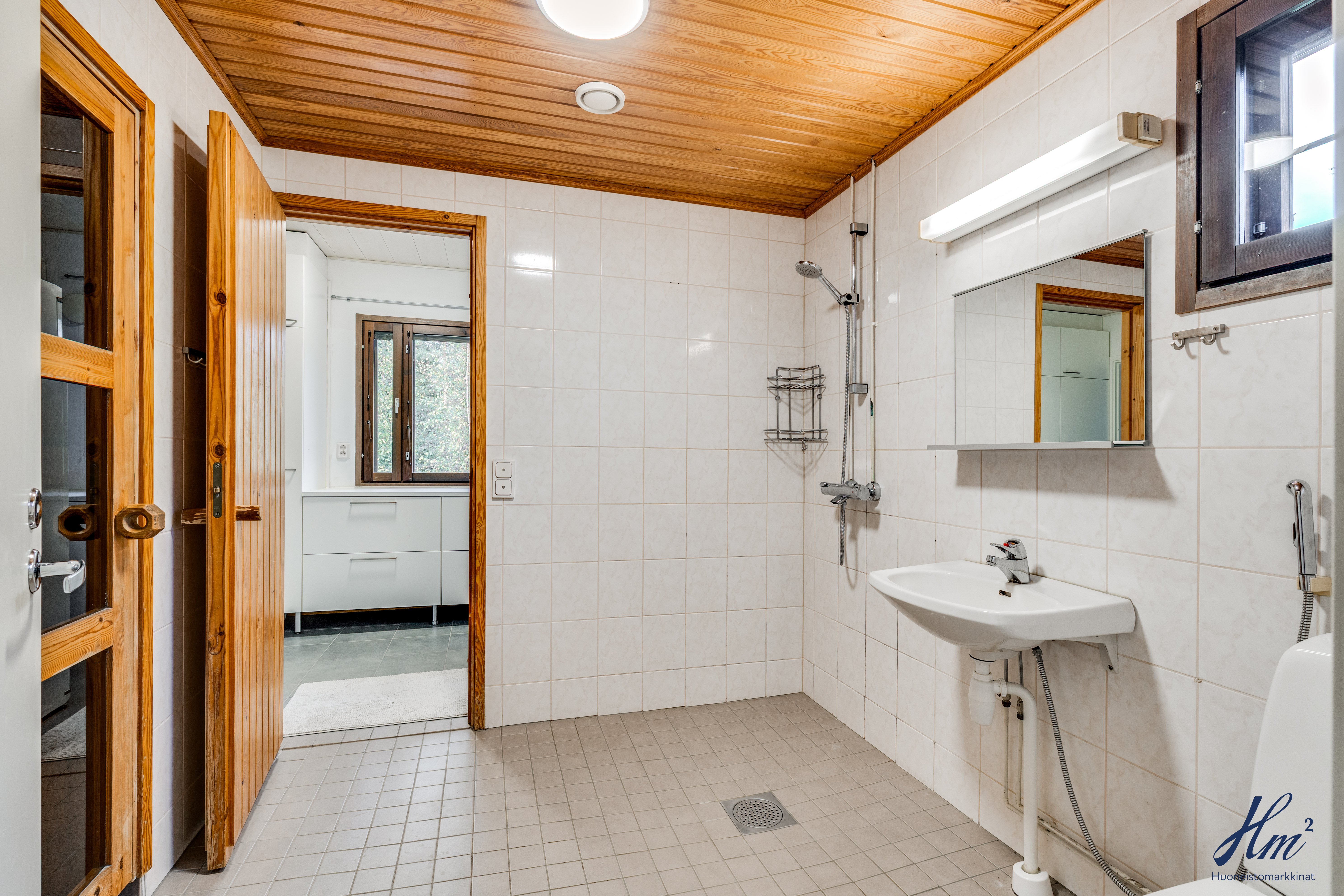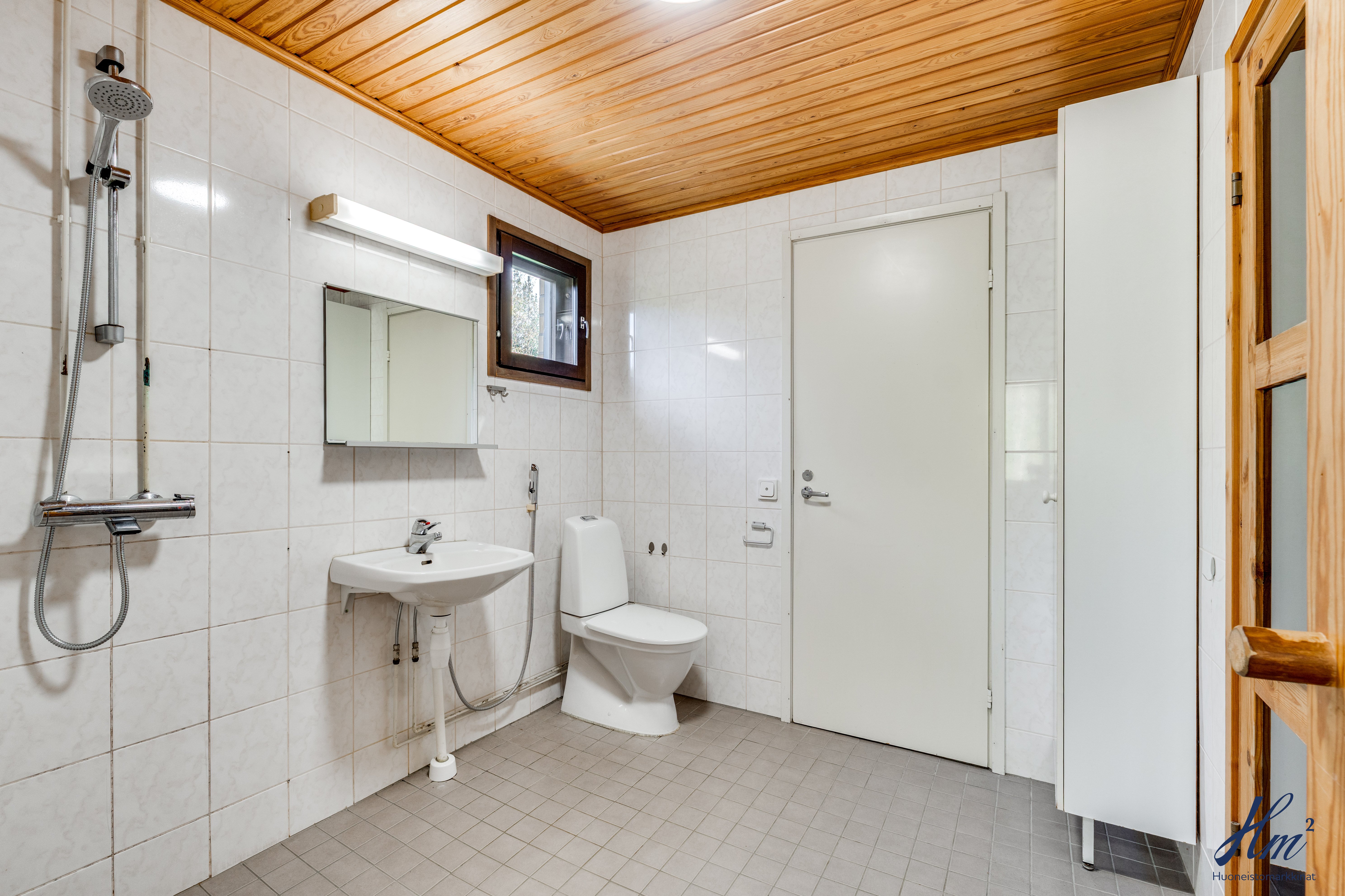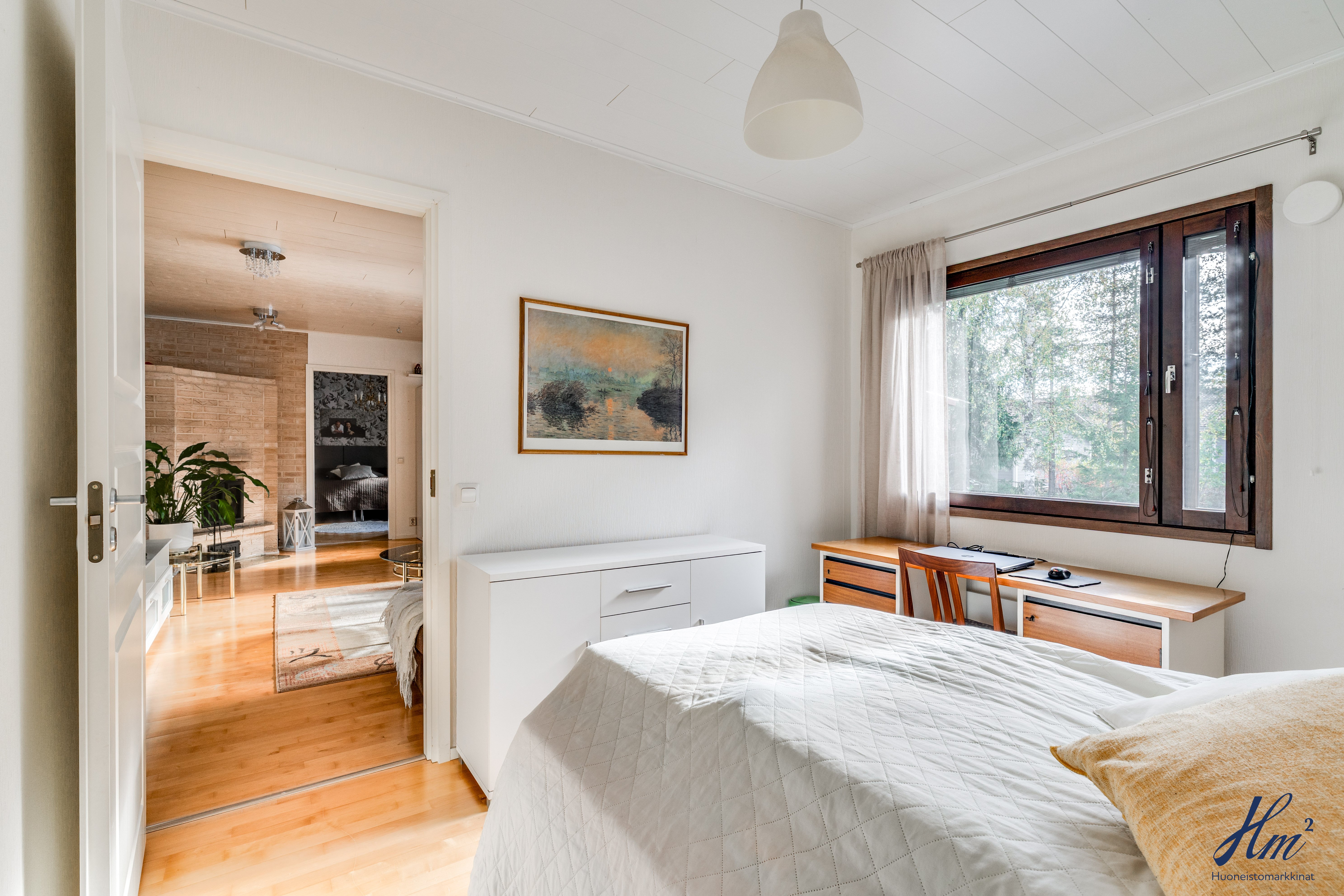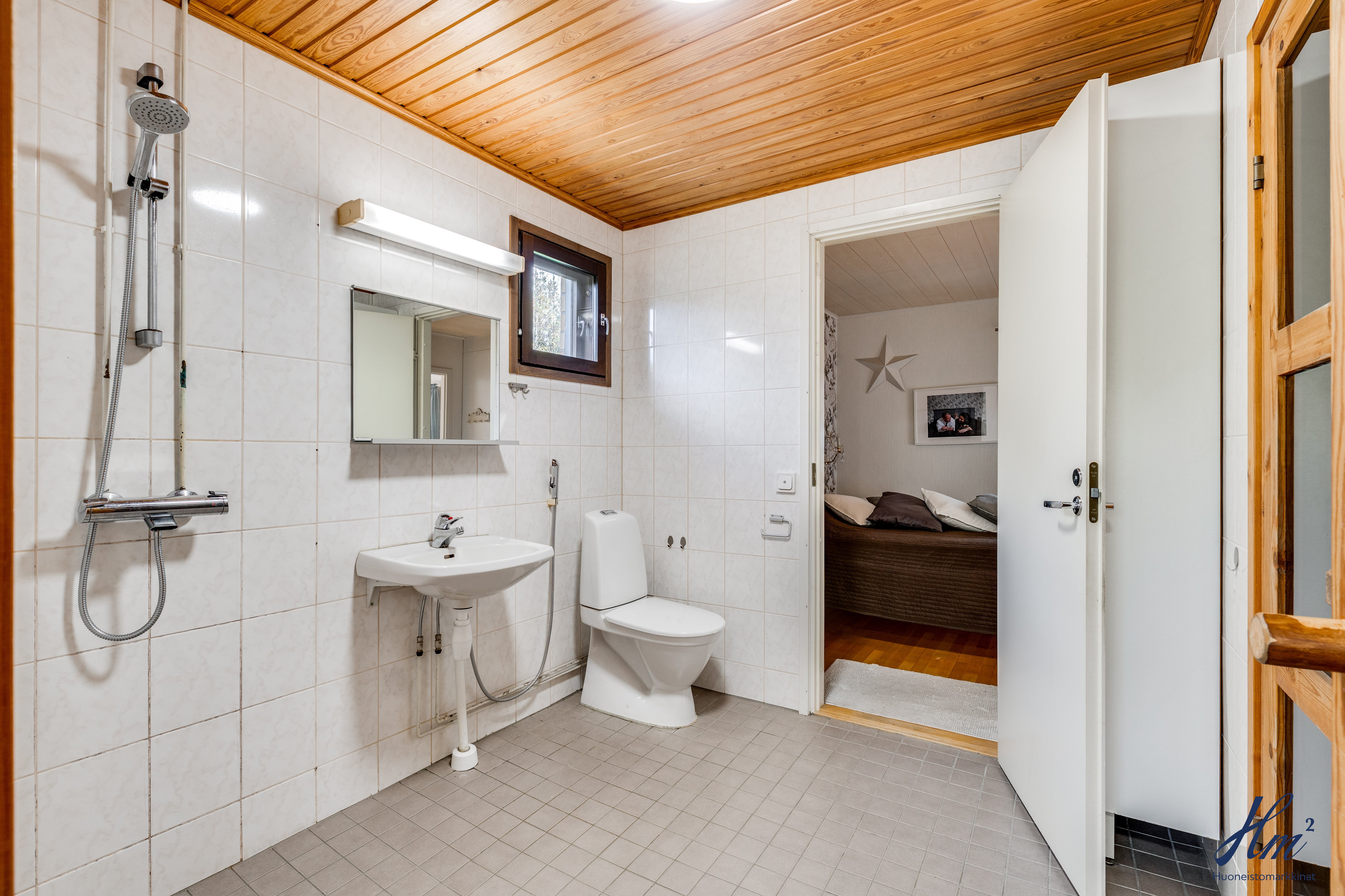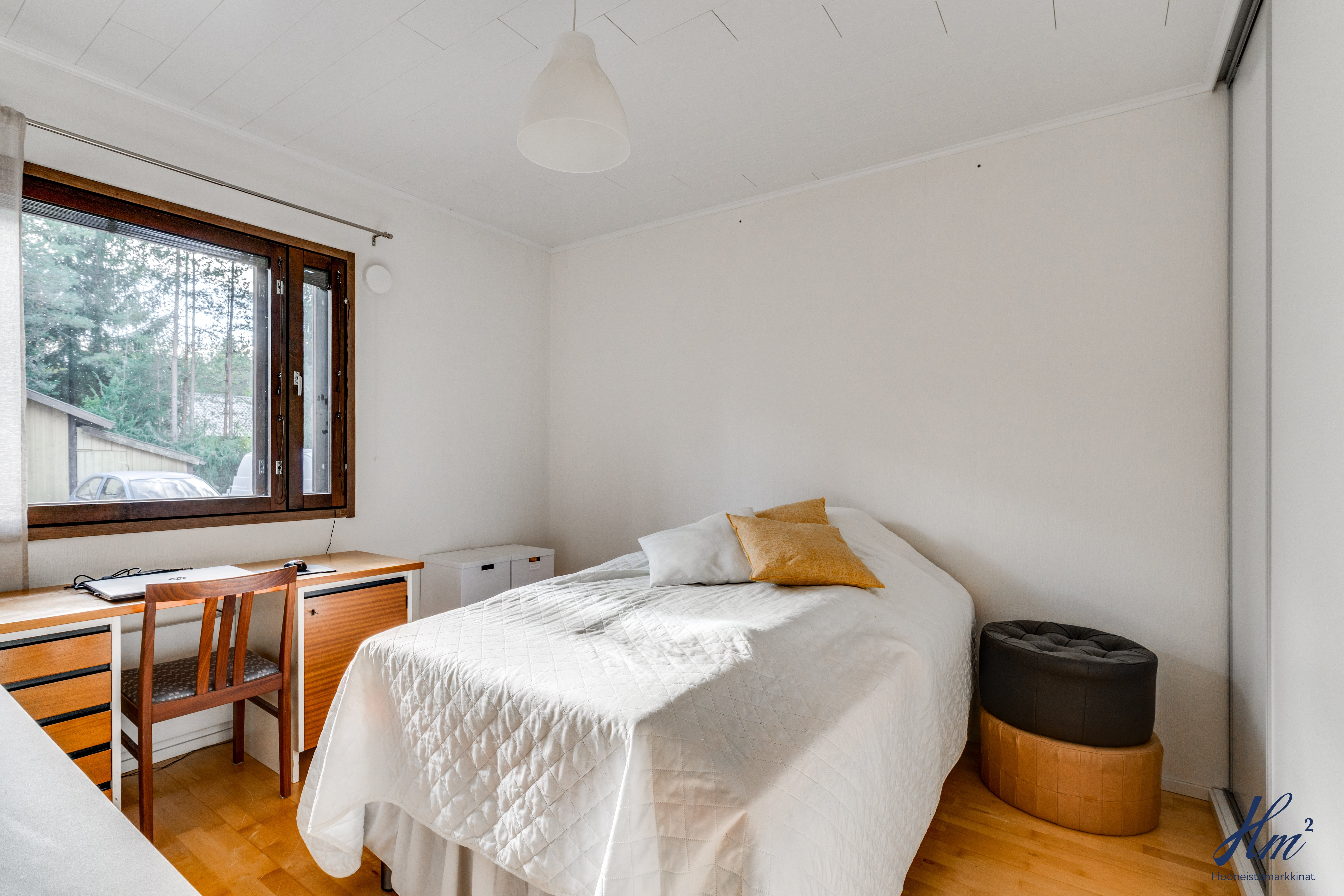 Olohuoneen lisäksi on kolme makuuhuonetta keittiö, wc ja pesuhuone, sauna.