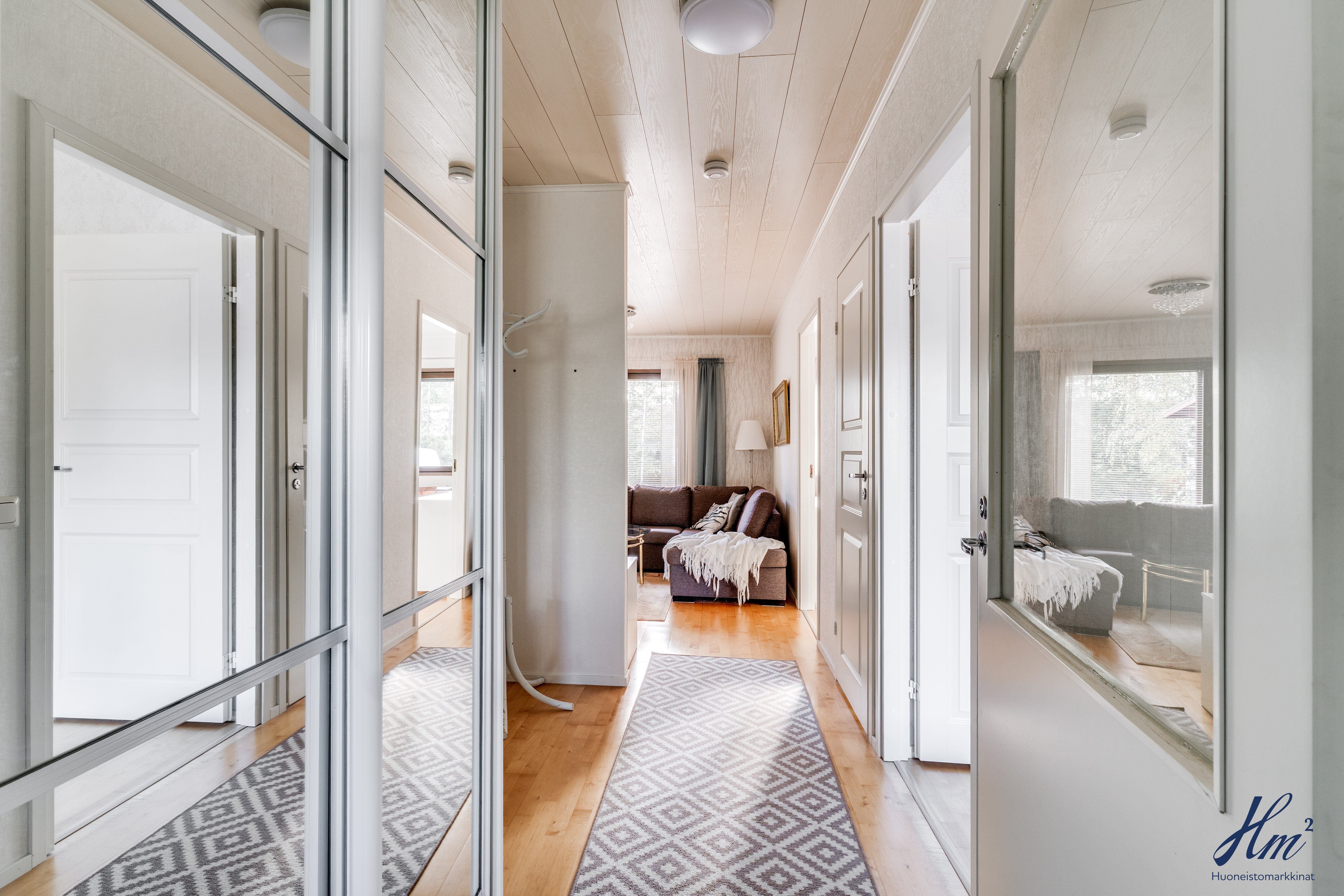 Talon yhteydessä on osin katettu iso terassi, joka kutsuu viettämään aikaa ulkona. Alueella on hyvät palvelut, kuten Auran yhtenäiskoulu ja keskustan palvelut, jotka tekevät arjesta sujuvaa.
