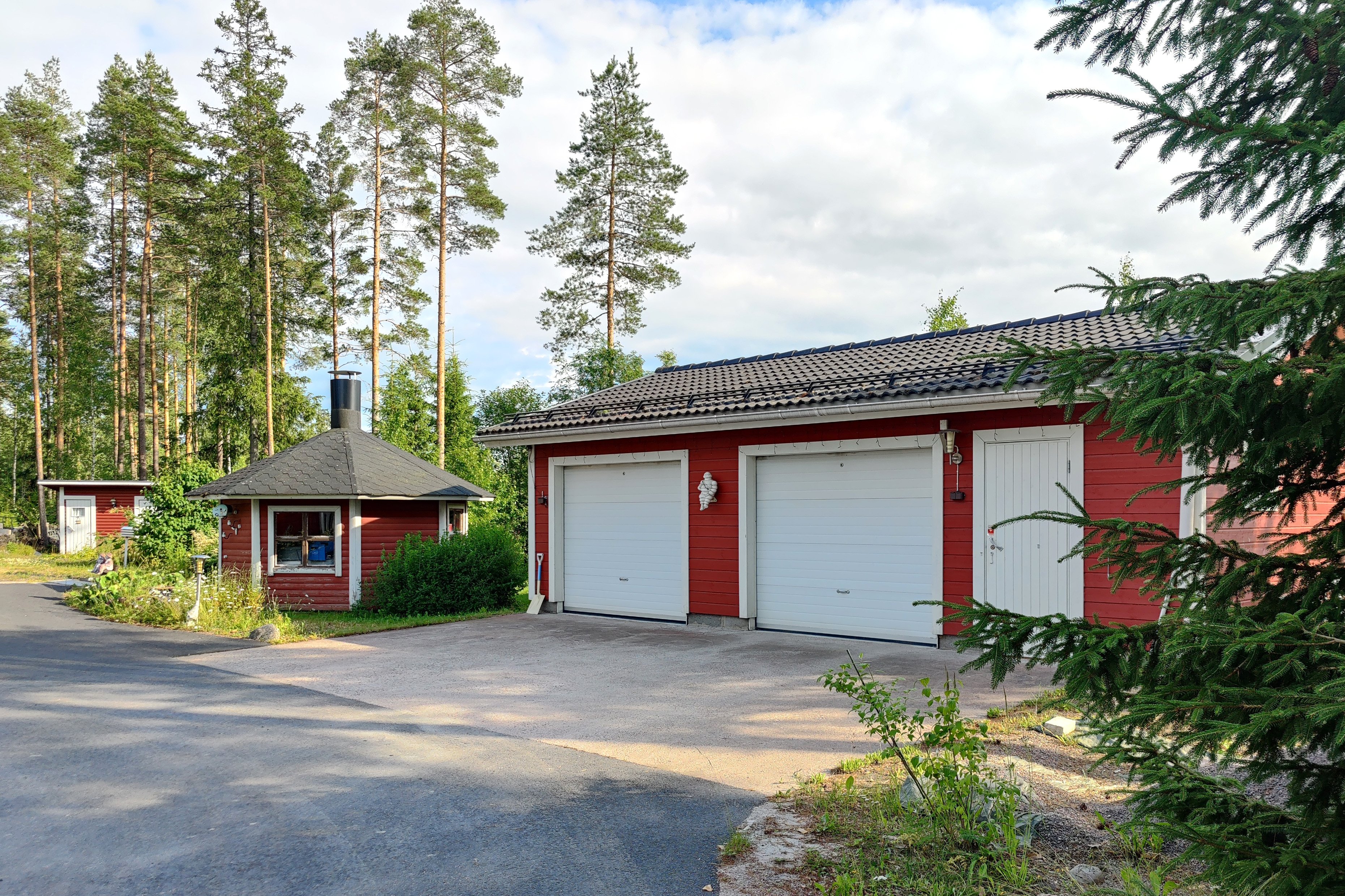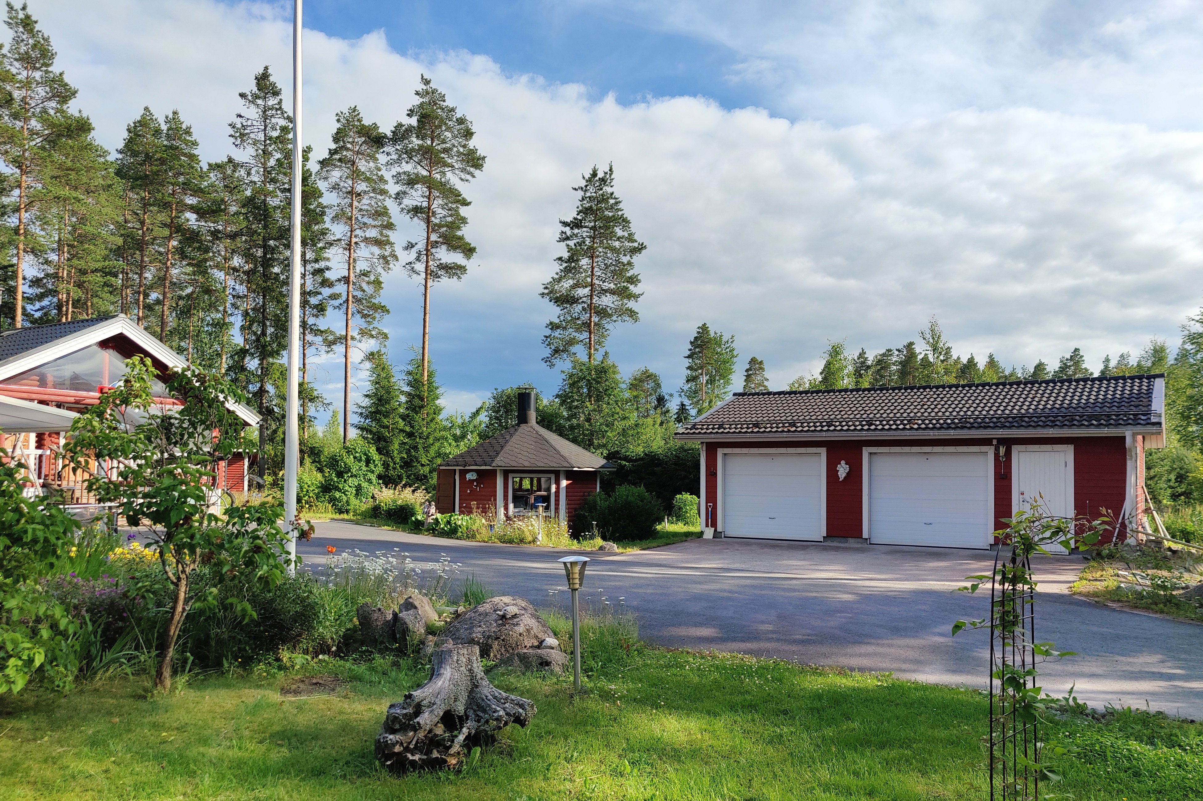 Pihapiirissä kahden auton lämmin autotalli sekä erillinen ulko- / puuvarasto, jonka yhteydessä on kesähuone.