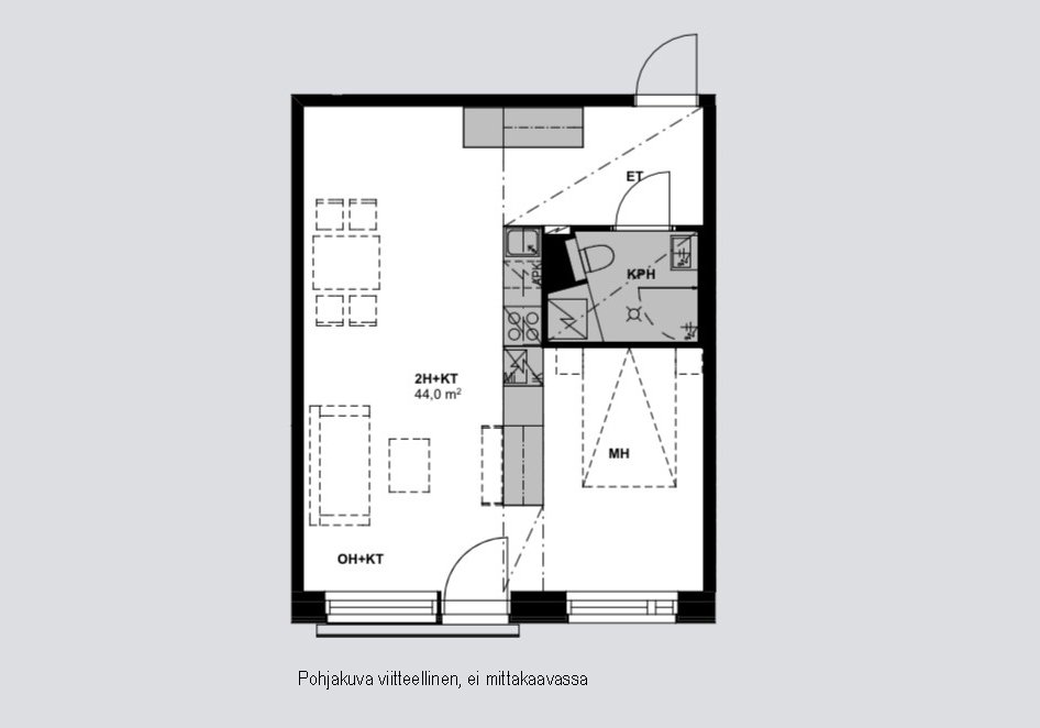 Asunnossa on hyvin varusteltu keittiö, jossa on muun muassa induktioliesi, erillisuuni ja astianpesukone. Olohuoneen ja makuuhuoneen lattiat ovat kestävää laminaattia, ja kylpyhuoneessa on tyylikäs laatoitus. Ranskalainen parveke tuo lisää viihtyisyyttä ja mahdollisuuden nauttia raikkaasta ulkoilmasta.