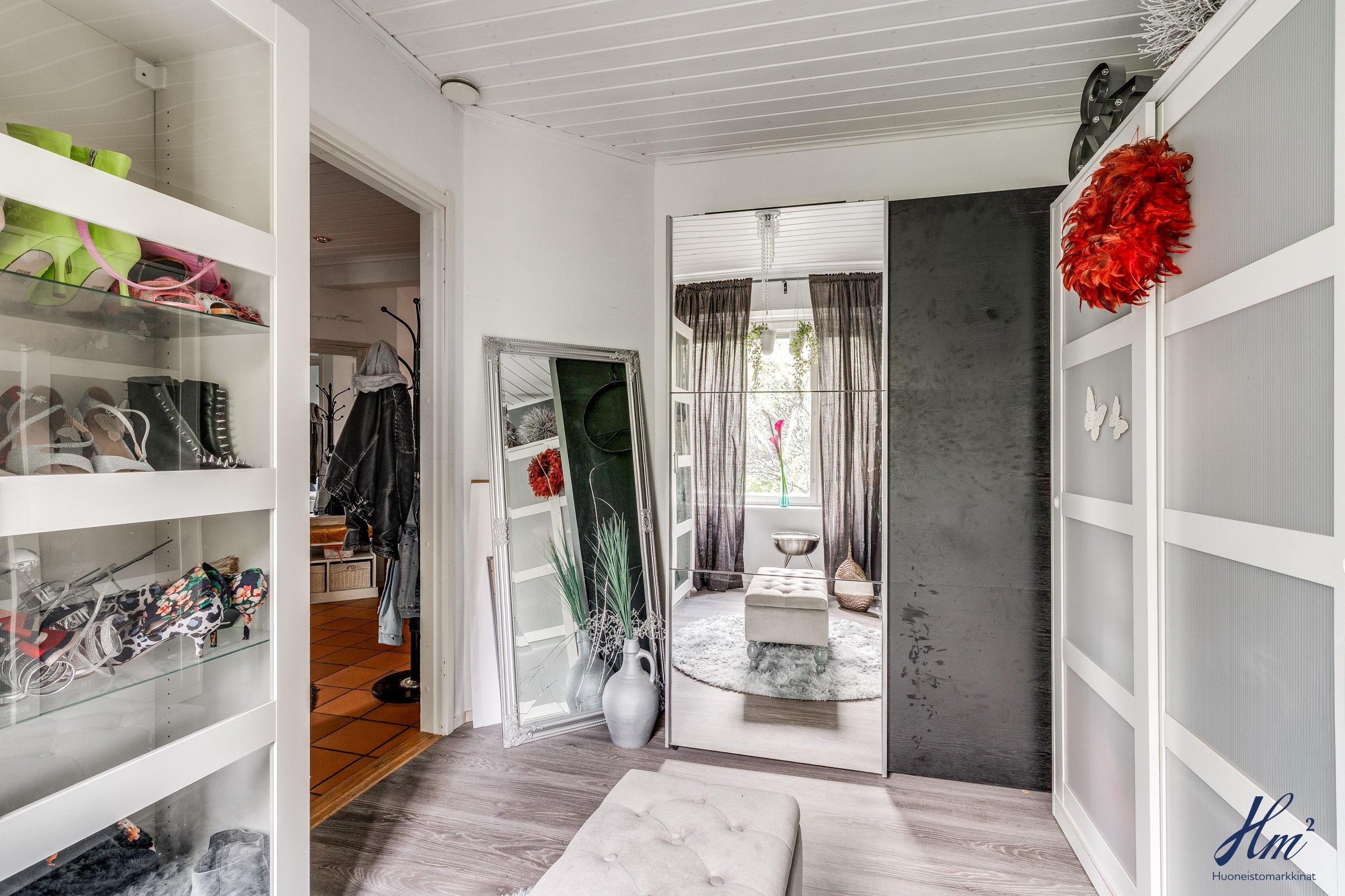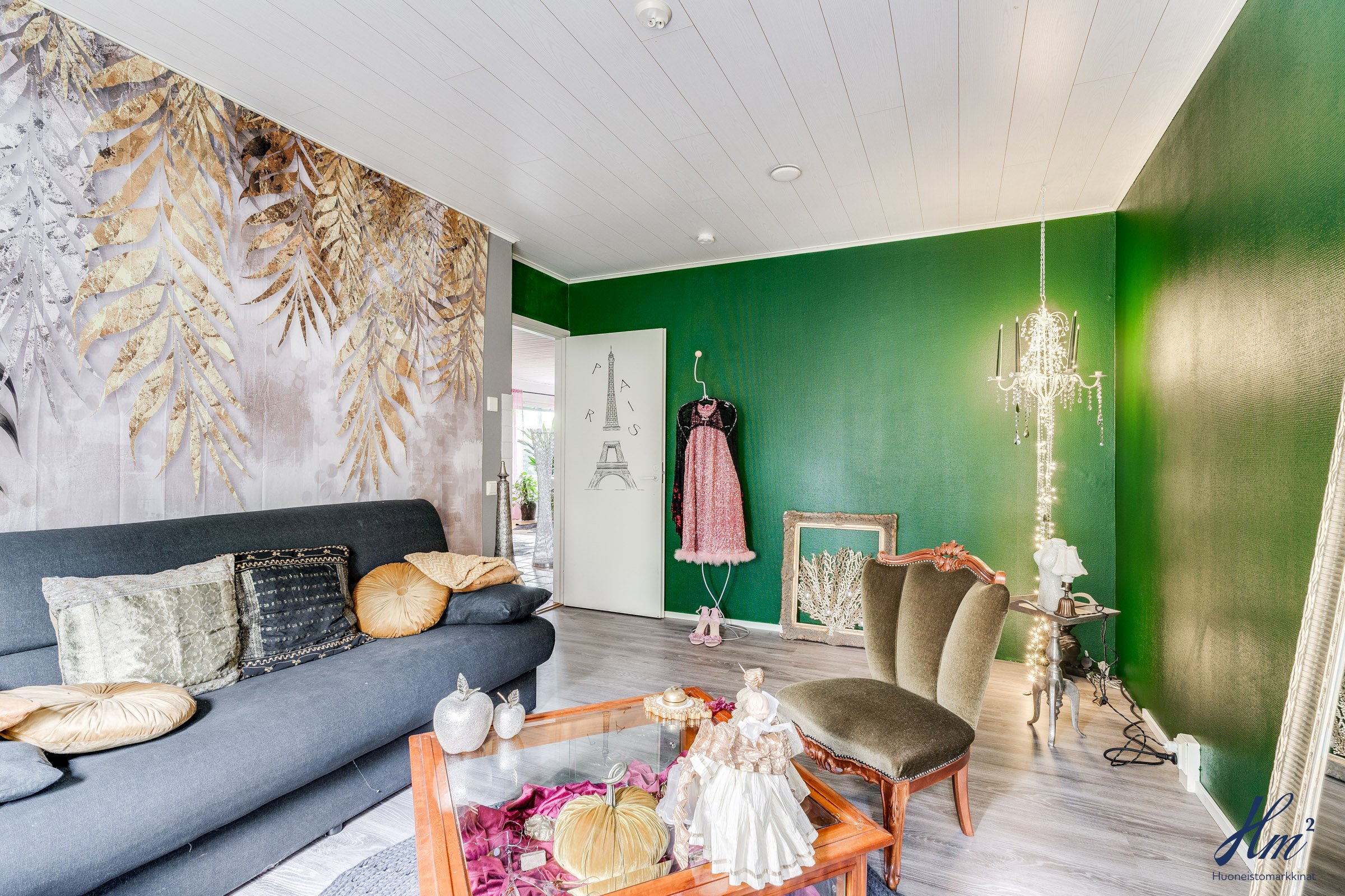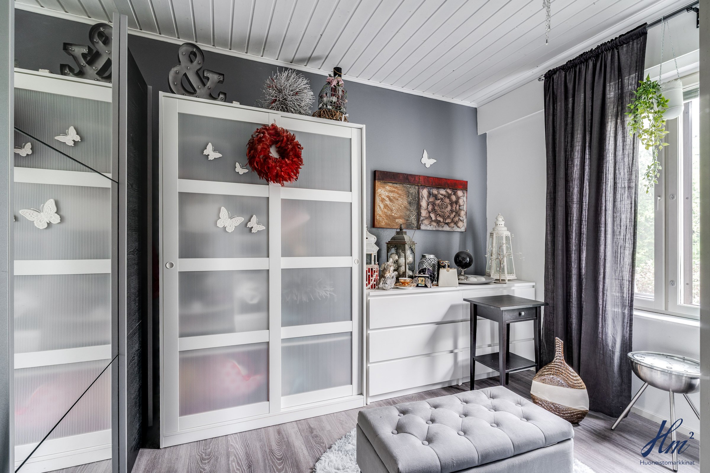 Asuinhuoneiden lattiapinnat on laminaattia ja seinäpinnat on osin tapetoitu ja maalattu.