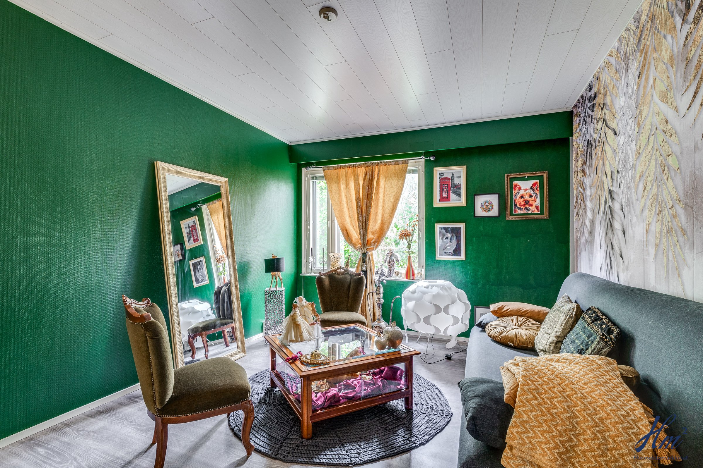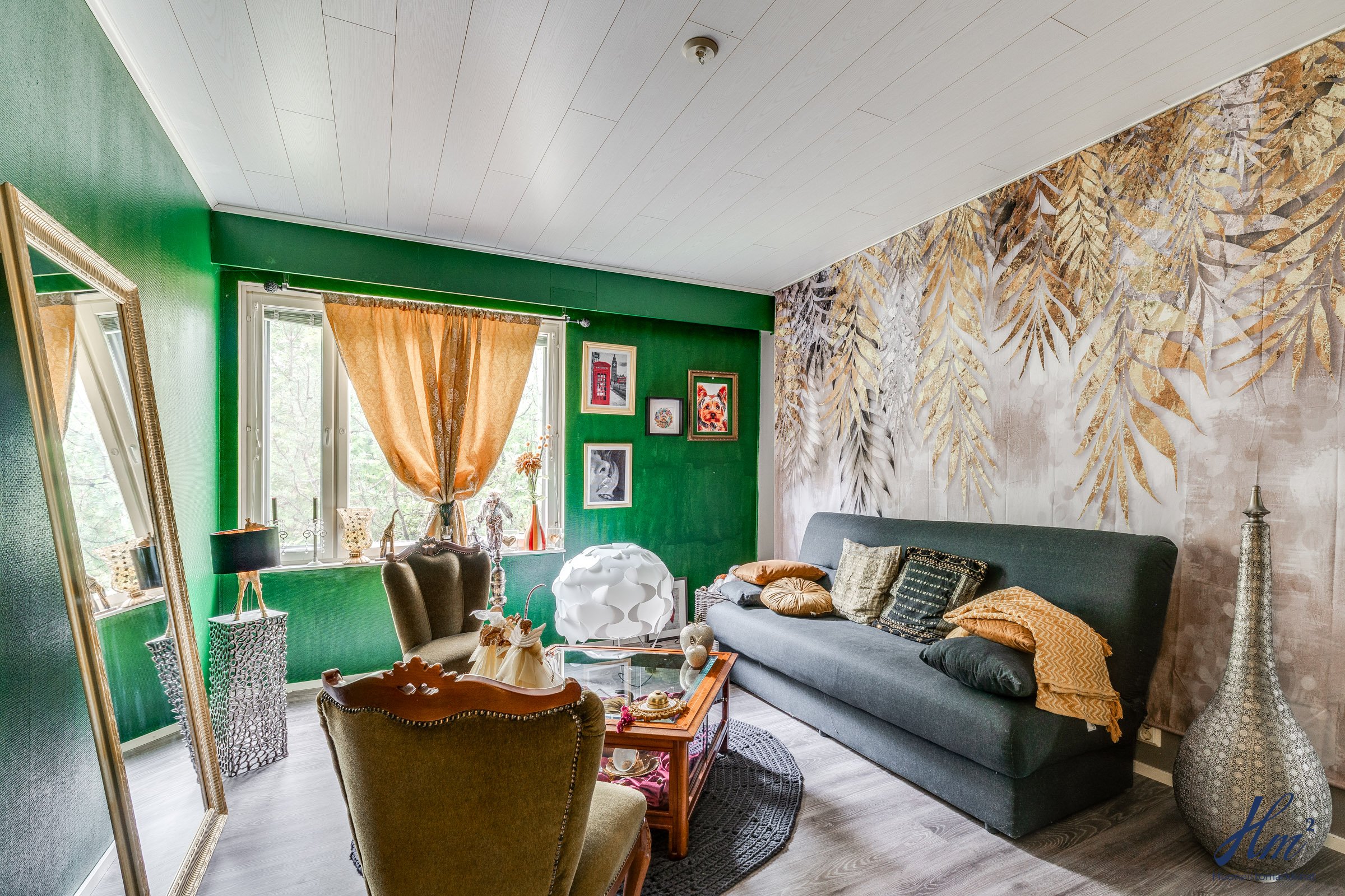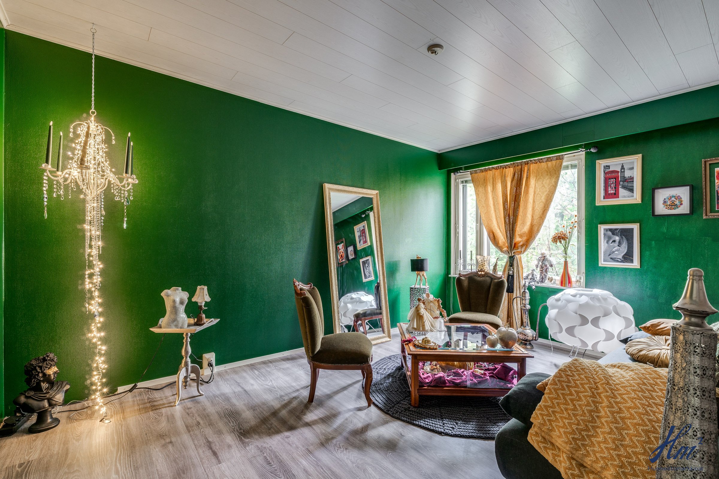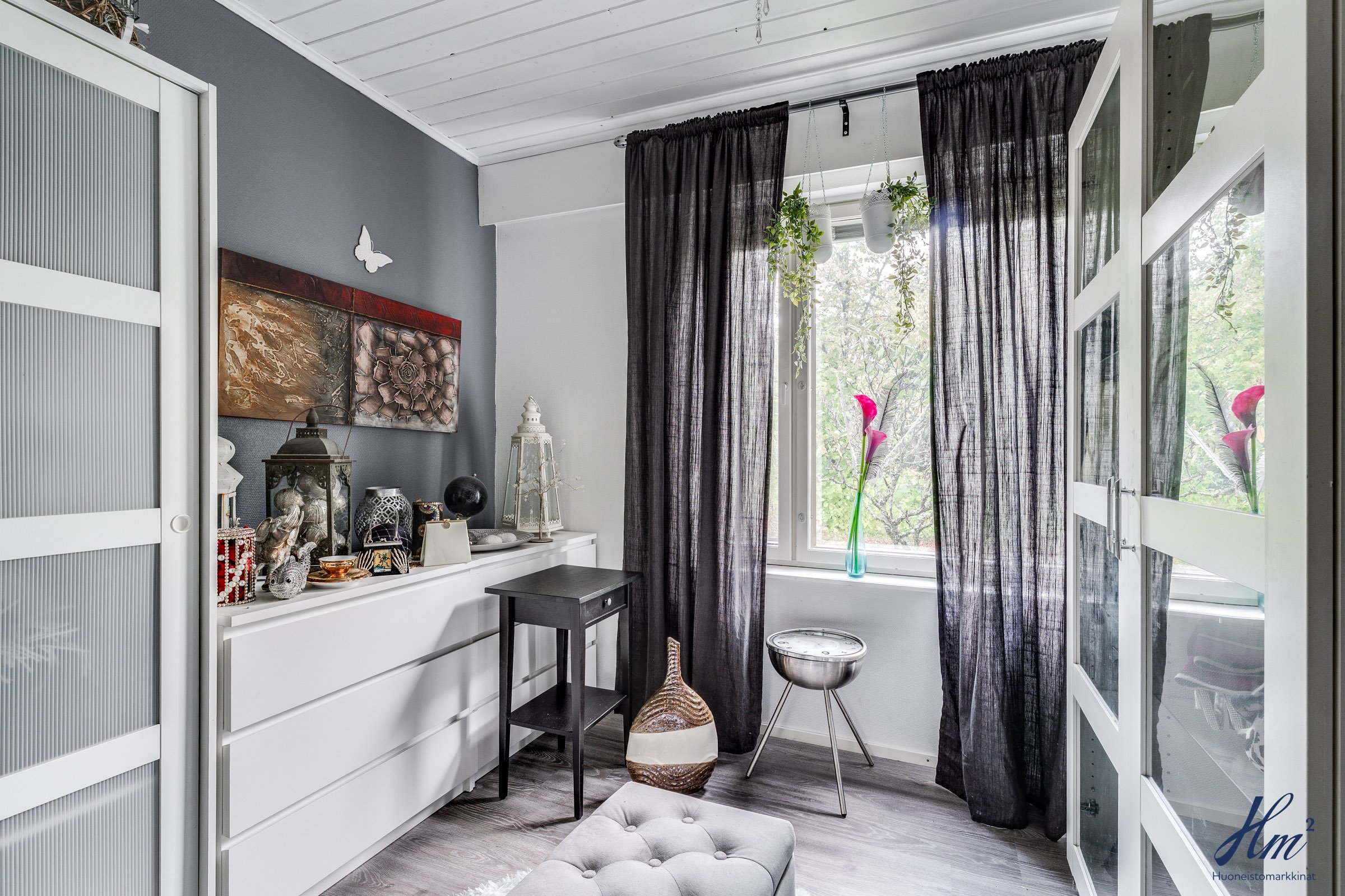 Asuinhuoneiden lattiapinnat on laminaattia ja seinäpinnat on osin tapetoitu ja maalattu.