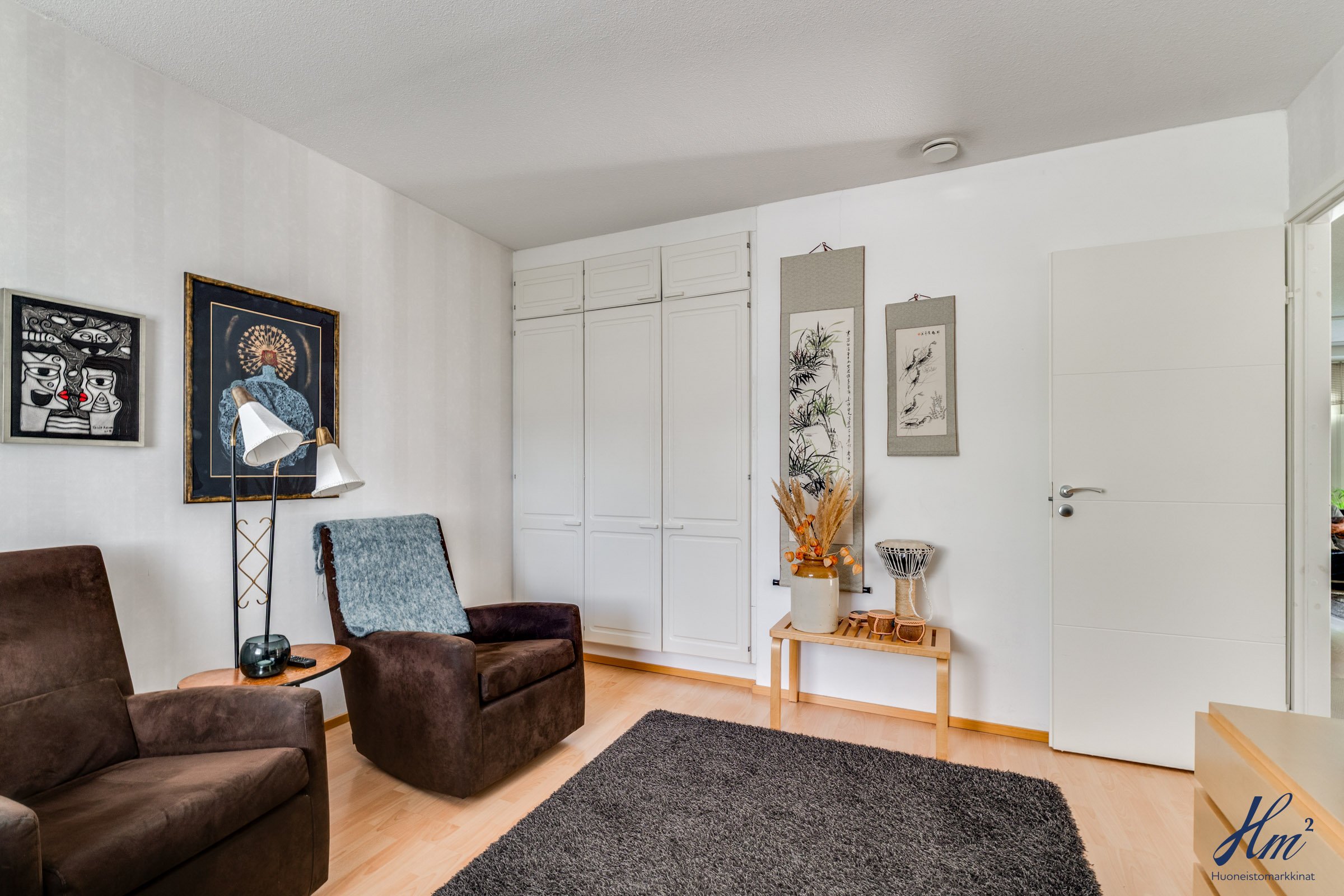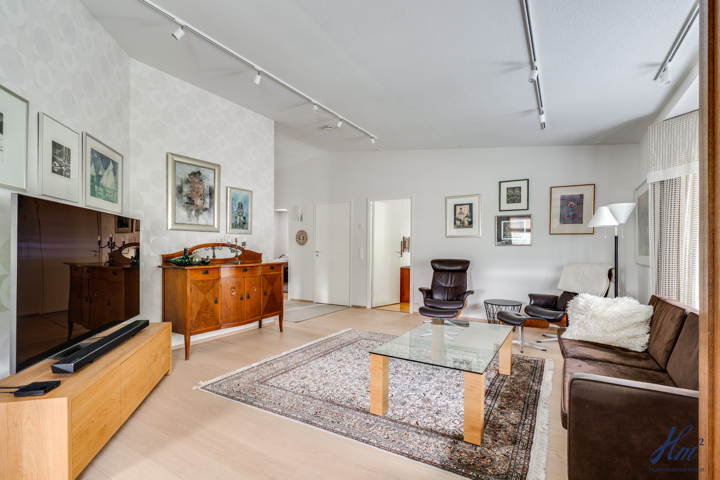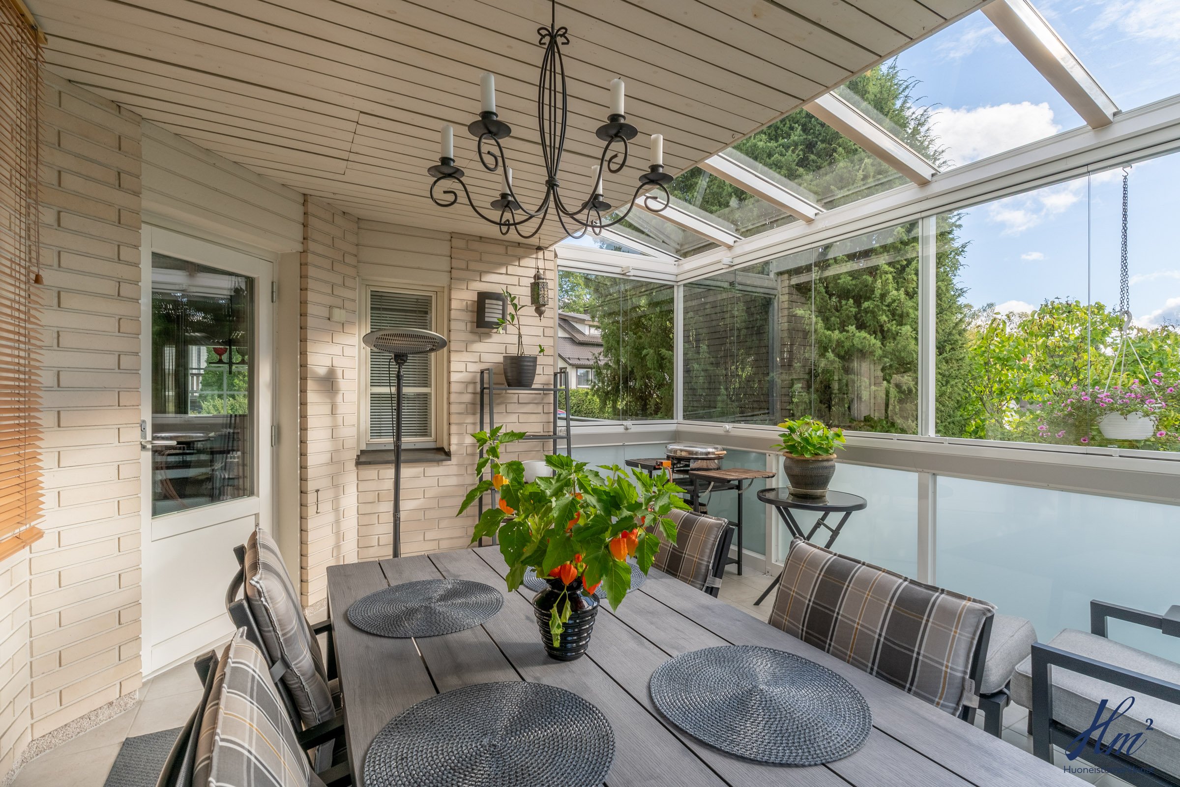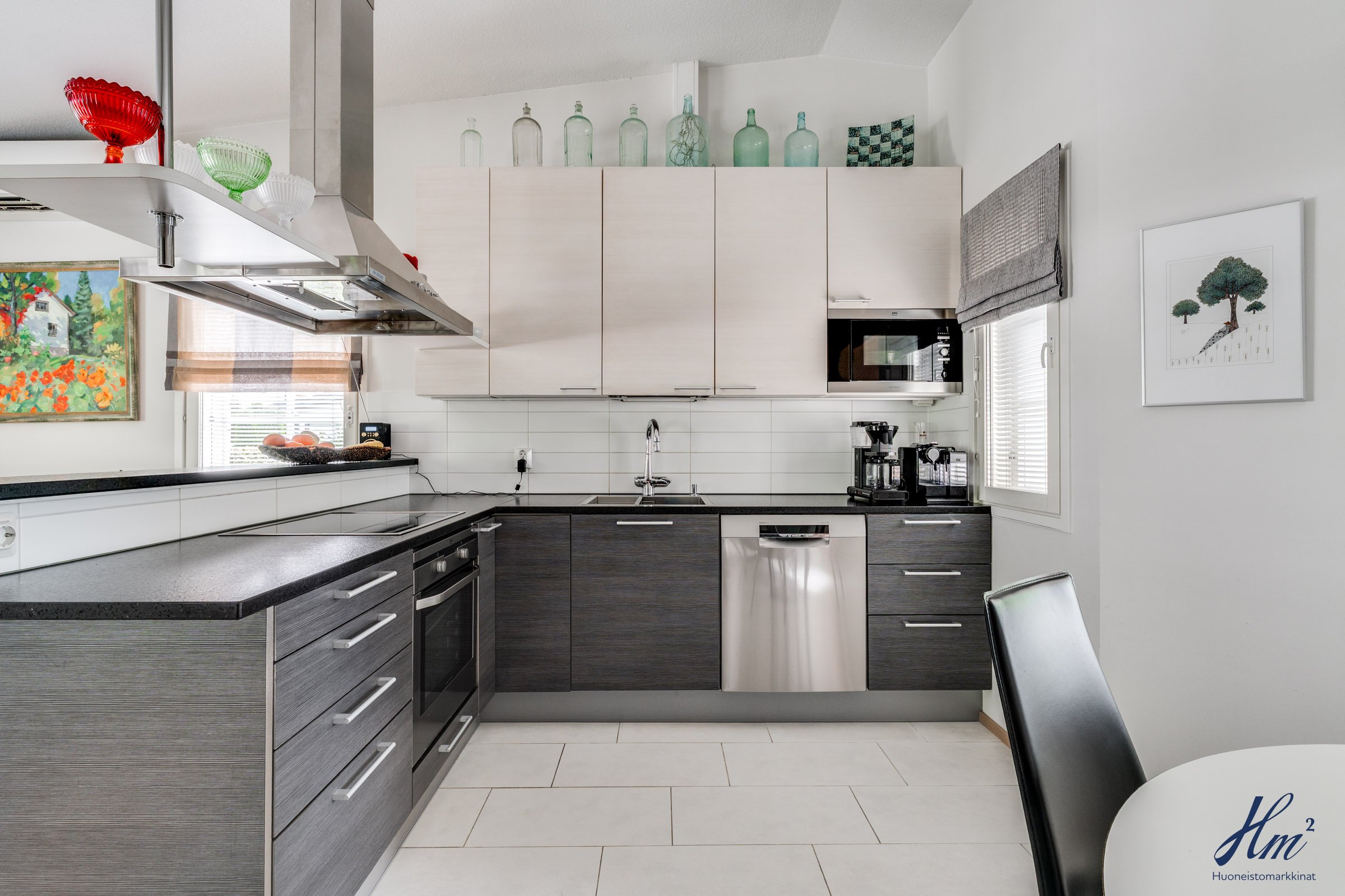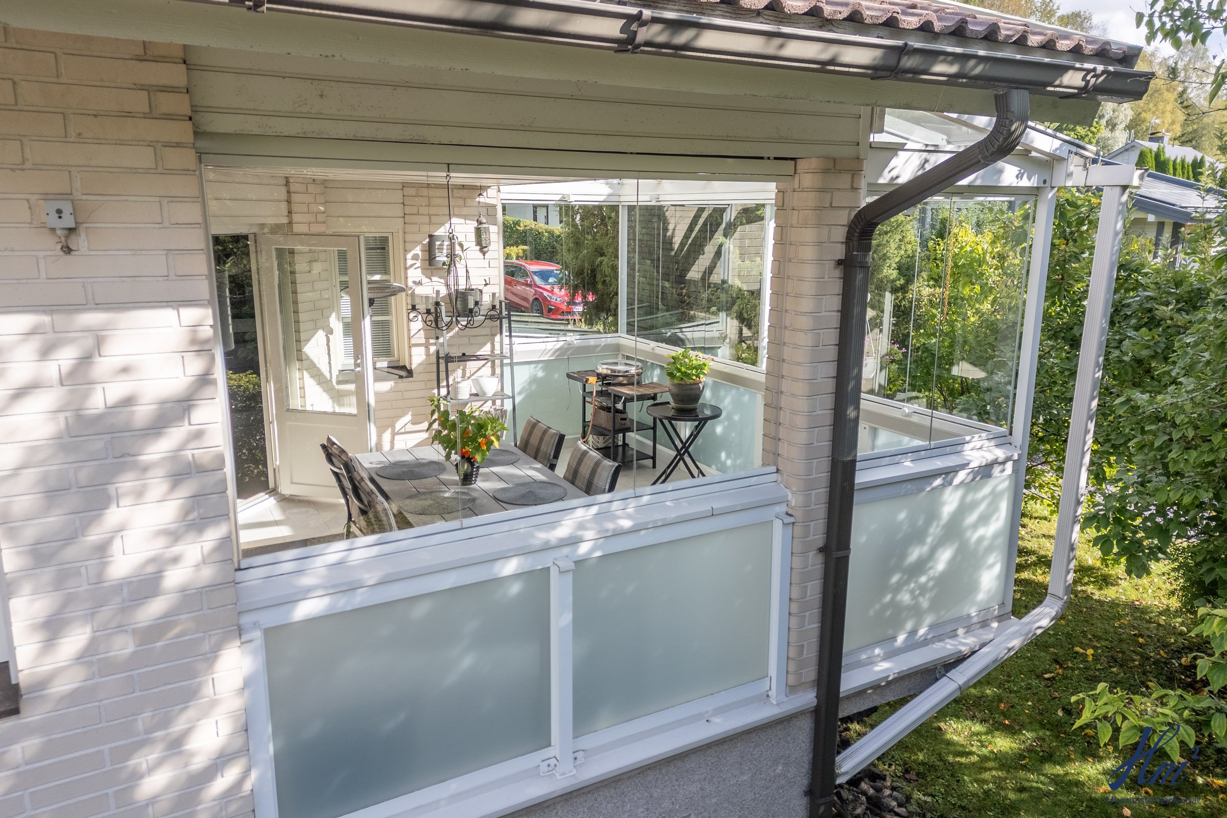 Yläkerran (n. 130 m² kerrosala) avara ja valoisa oleskelutila kutsuu viihtymään. Öljyvahattu tammiparketti luo lämpimän tunnelman, ja tilan sydän on vuonna 2009 päivitetty Puustellin tyylikäs avokeittiö. Tämä moderni keittiö yhdistyy saumattomasti ruokailutilaan ja olohuoneeseen, muodostaen kodikkaan ja toimivan kokonaisuuden niin arkeen kuin juhlaan. Suoraan keittiöstä on käynti katetulle ja lasitetulle terassille, jossa voit nauttia ulkoilmasta sateisenakin päivinä ja viilentyvinä syysiltoina.