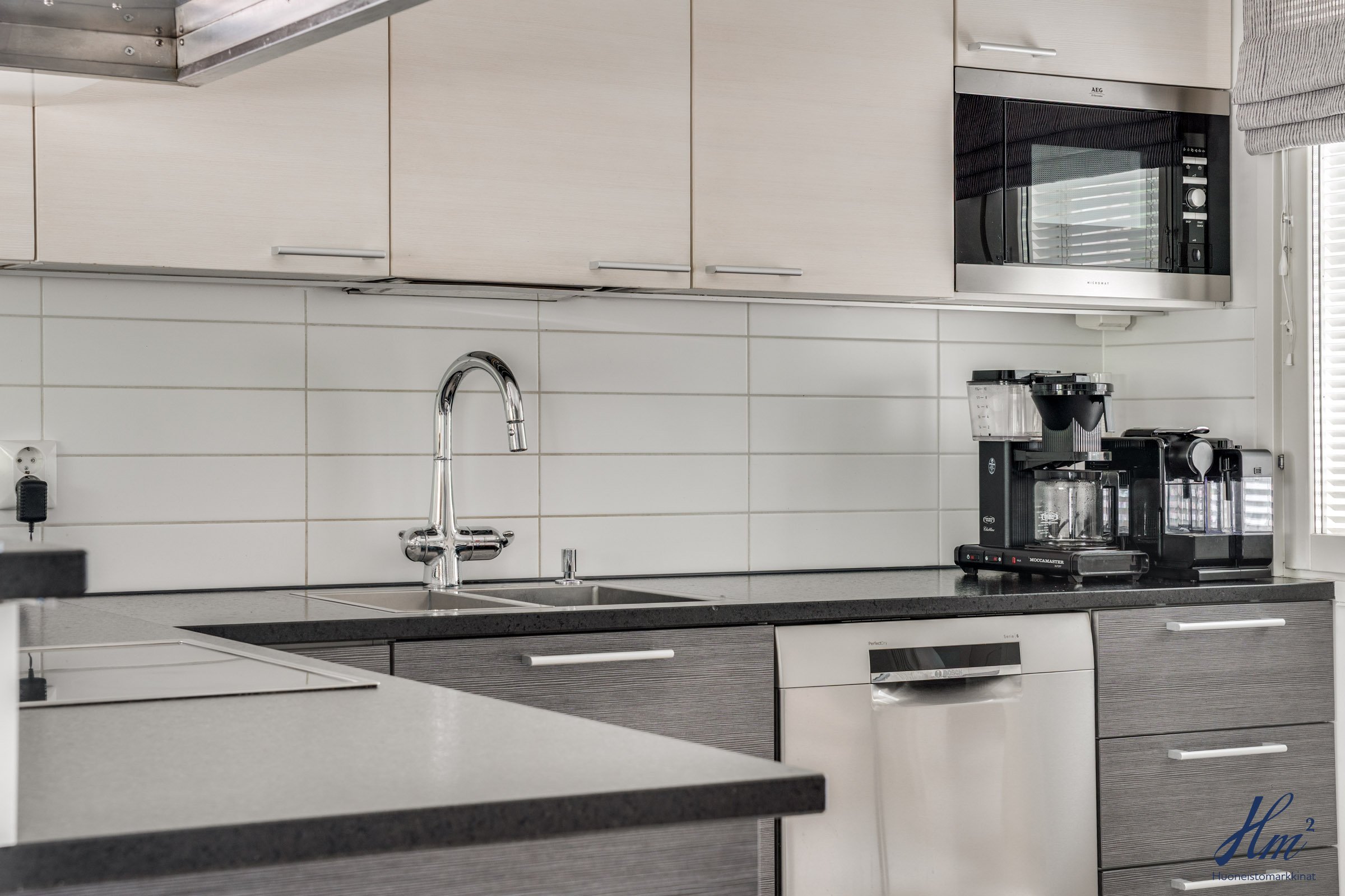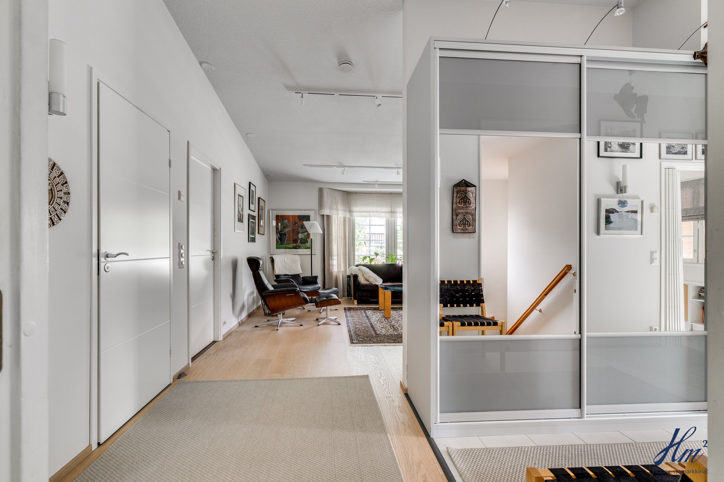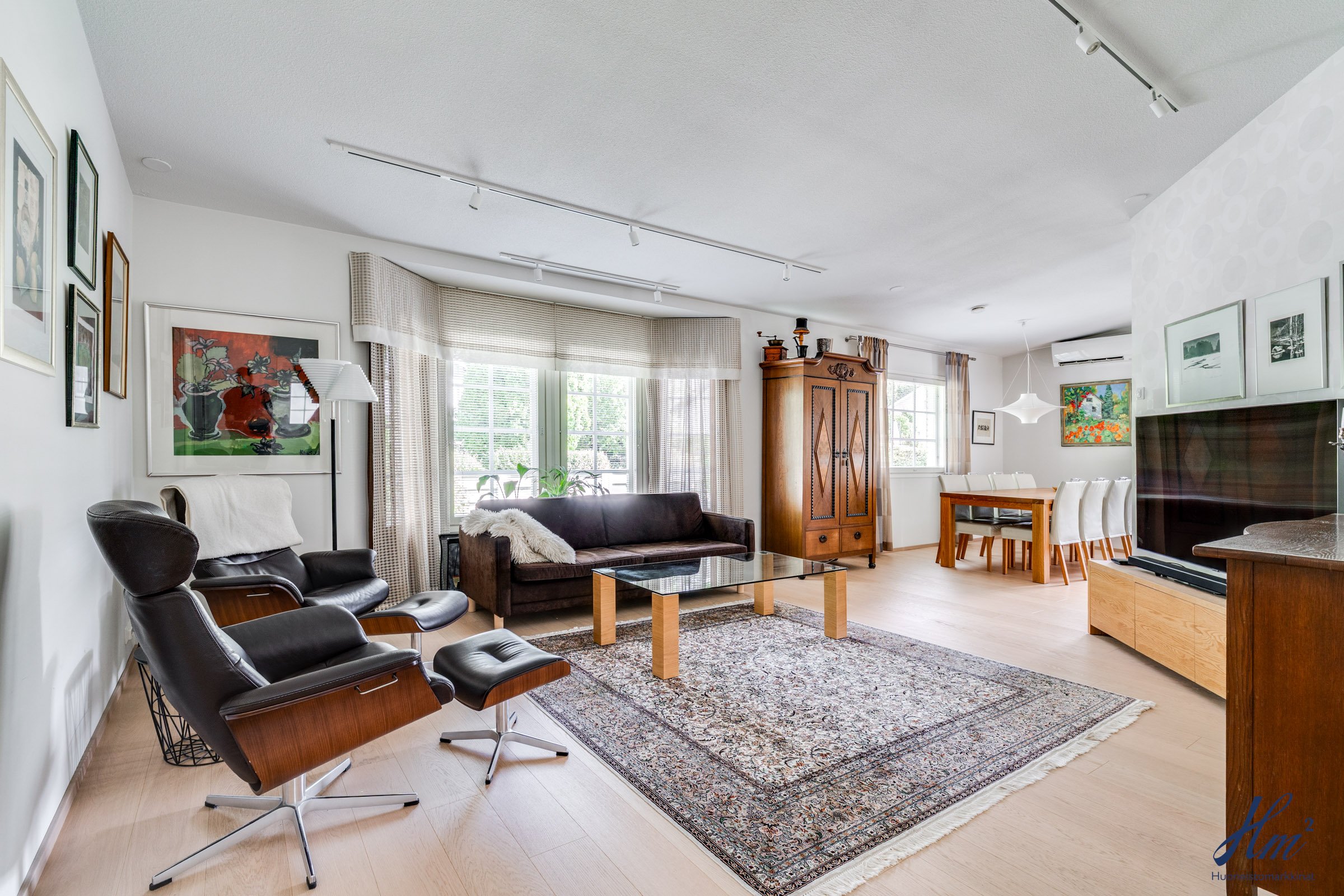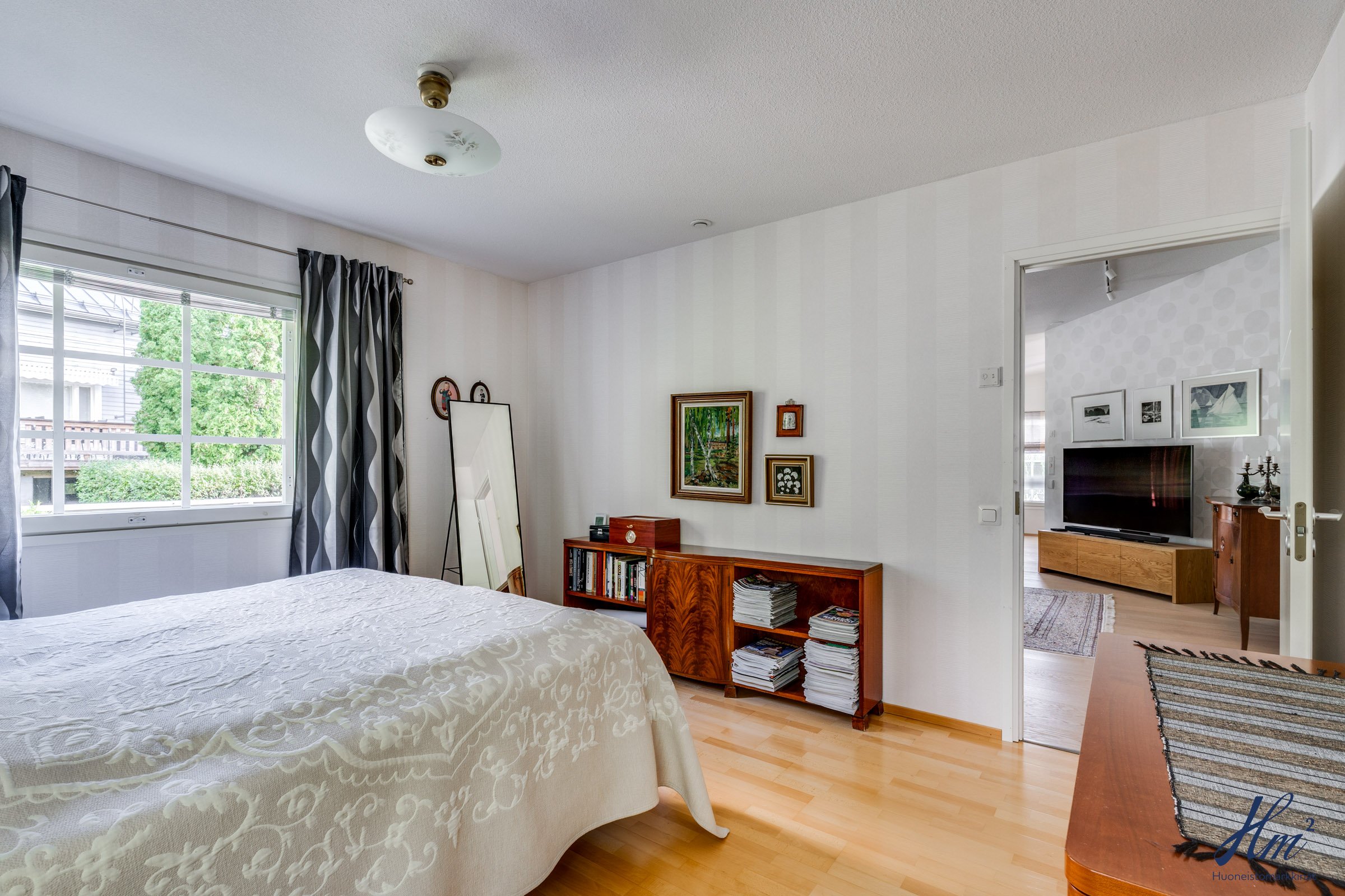 Yläkerran (n. 130 m² kerrosala) avara ja valoisa oleskelutila kutsuu viihtymään. Öljyvahattu tammiparketti luo lämpimän tunnelman, ja tilan sydän on vuonna 2009 päivitetty Puustellin tyylikäs avokeittiö. Tämä moderni keittiö yhdistyy saumattomasti ruokailutilaan ja olohuoneeseen, muodostaen kodikkaan ja toimivan kokonaisuuden niin arkeen kuin juhlaan. Suoraan keittiöstä on käynti katetulle ja lasitetulle terassille, jossa voit nauttia ulkoilmasta sateisenakin päivinä ja viilentyvinä syysiltoina.