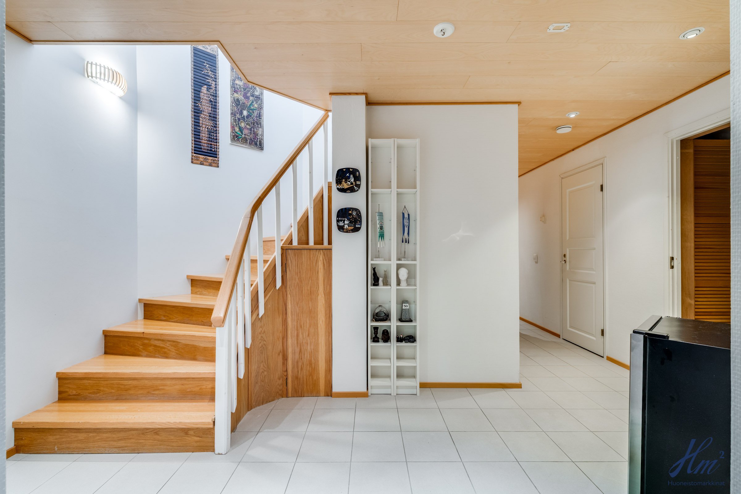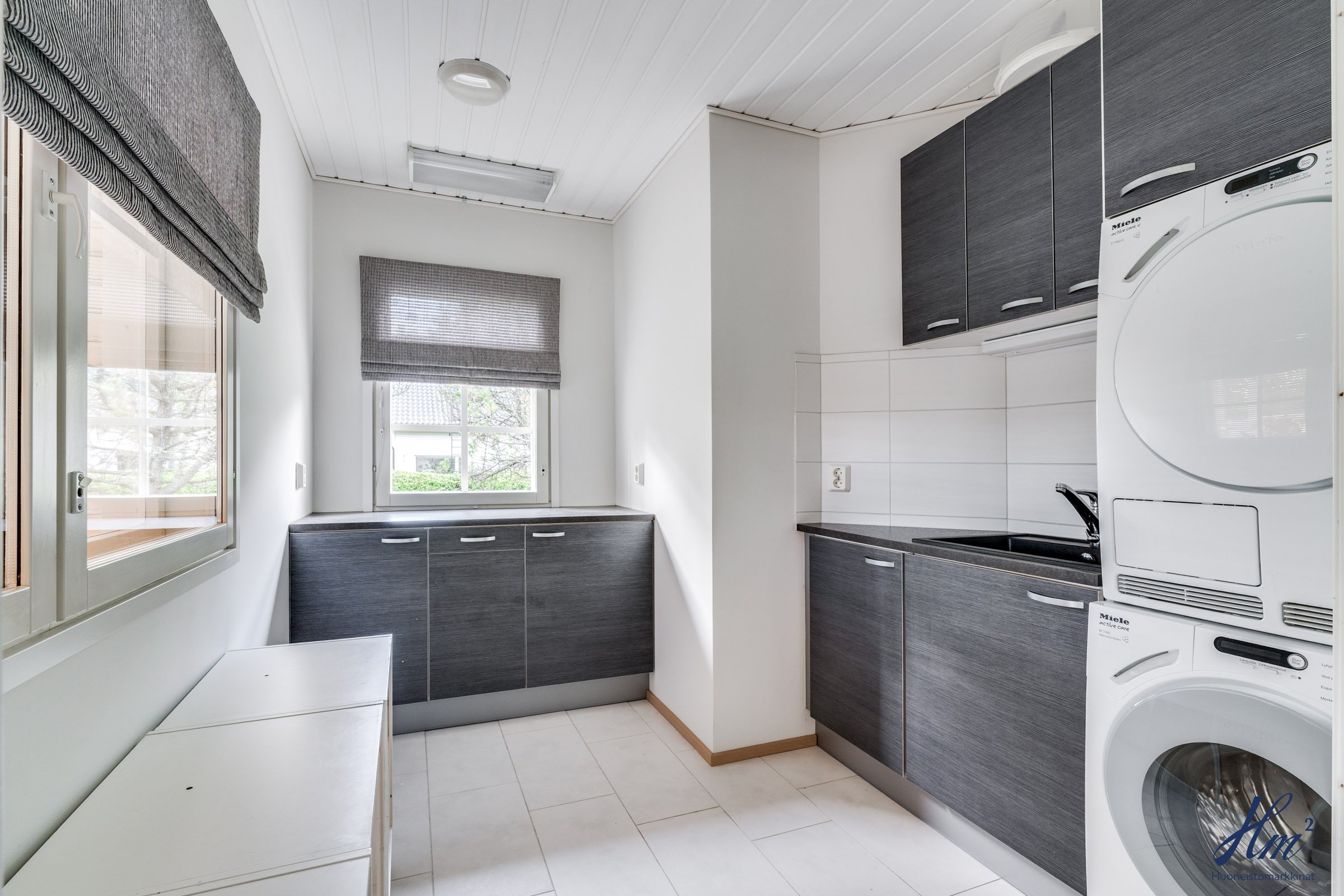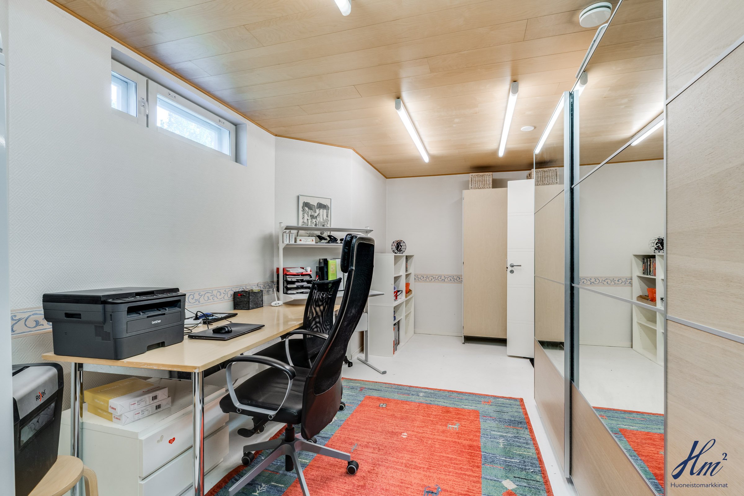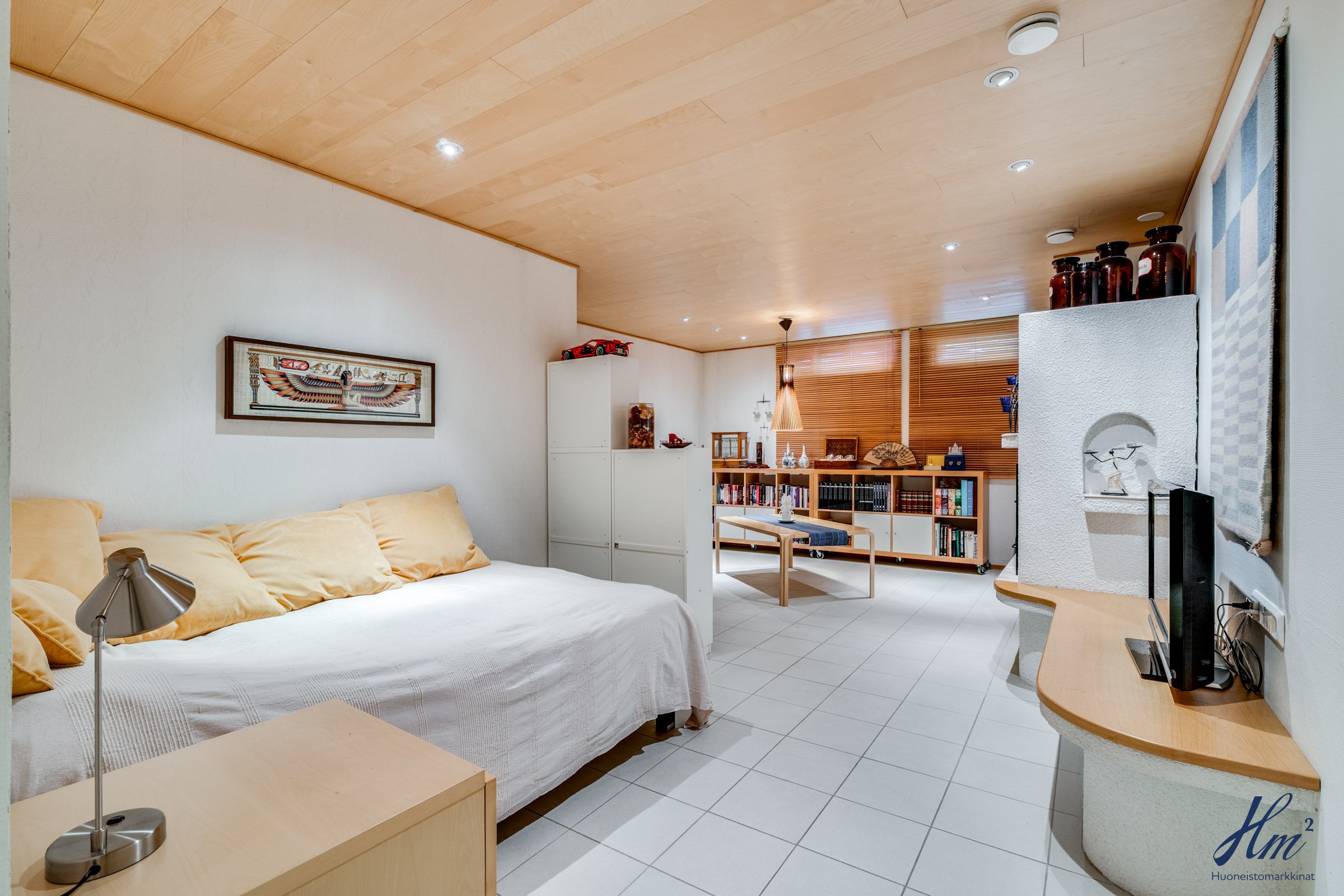 Kodin kellarikerros (n. 98 m² kerrosala) tarjoaa monipuolista lisätilaa arkeen ja vapaa-aikaan. Vuonna 2015 uusittu kylpyhuone ja saunaosasto muodostavat ylellisen spa-osaston, jossa rentoudut kauniissa tassuammeessa ja nautit upean saunan lämpimistä löylyistä. Kellarista löydät myös takkahuoneen tunnelmallisiin iltoihin, pukuhuoneen sekä runsaasti säilytystilaa.