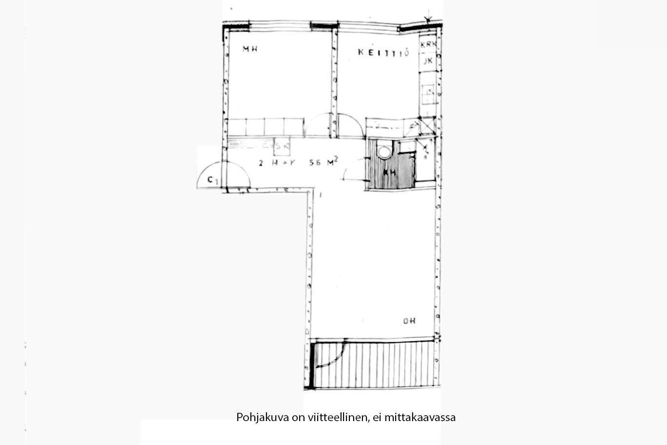 Ei tarkistusmitattu. Pinta-alat saattavat tämän ikäisissä kohteissa (yhtiö rekisteröity ennen 01.01.1992) poiketa olennaisestikin asuinrakennusten nykyisten mittaustapojen ja standardien (SFS 5139) mukaan laskettavasta asuintilojen pinta-alasta. Pinta-ala voi siis olla edellä mainittua pienempi tai suurempi.