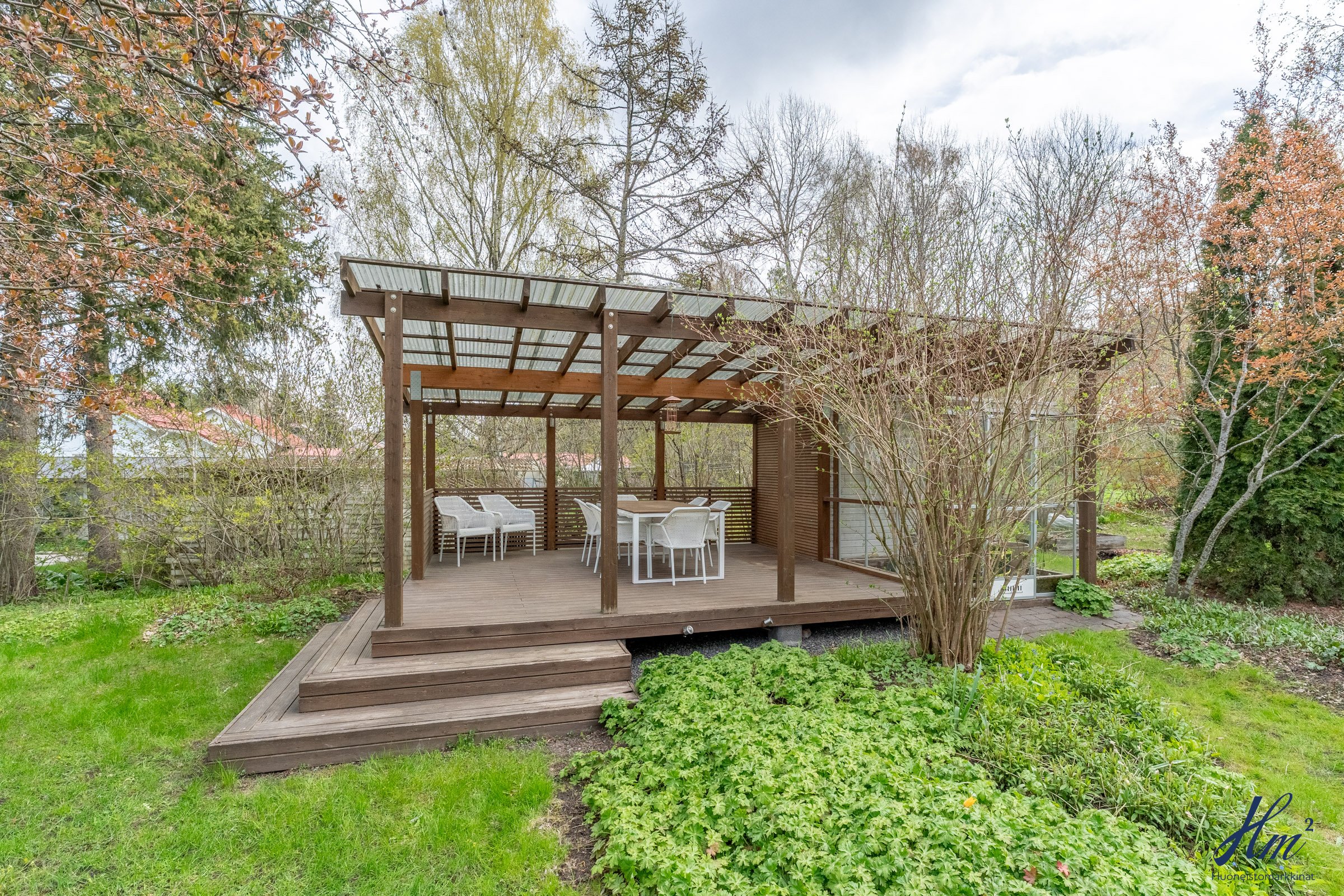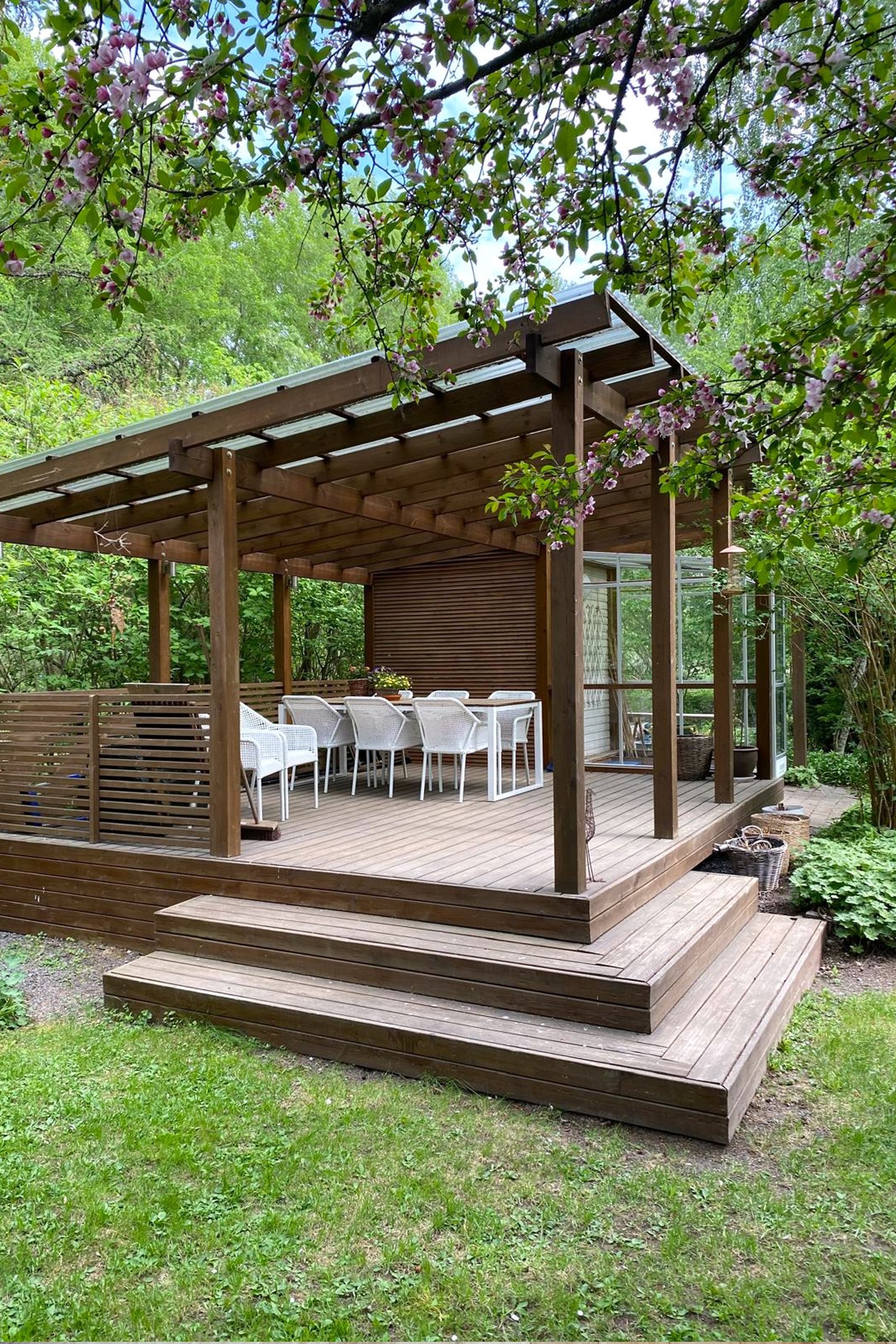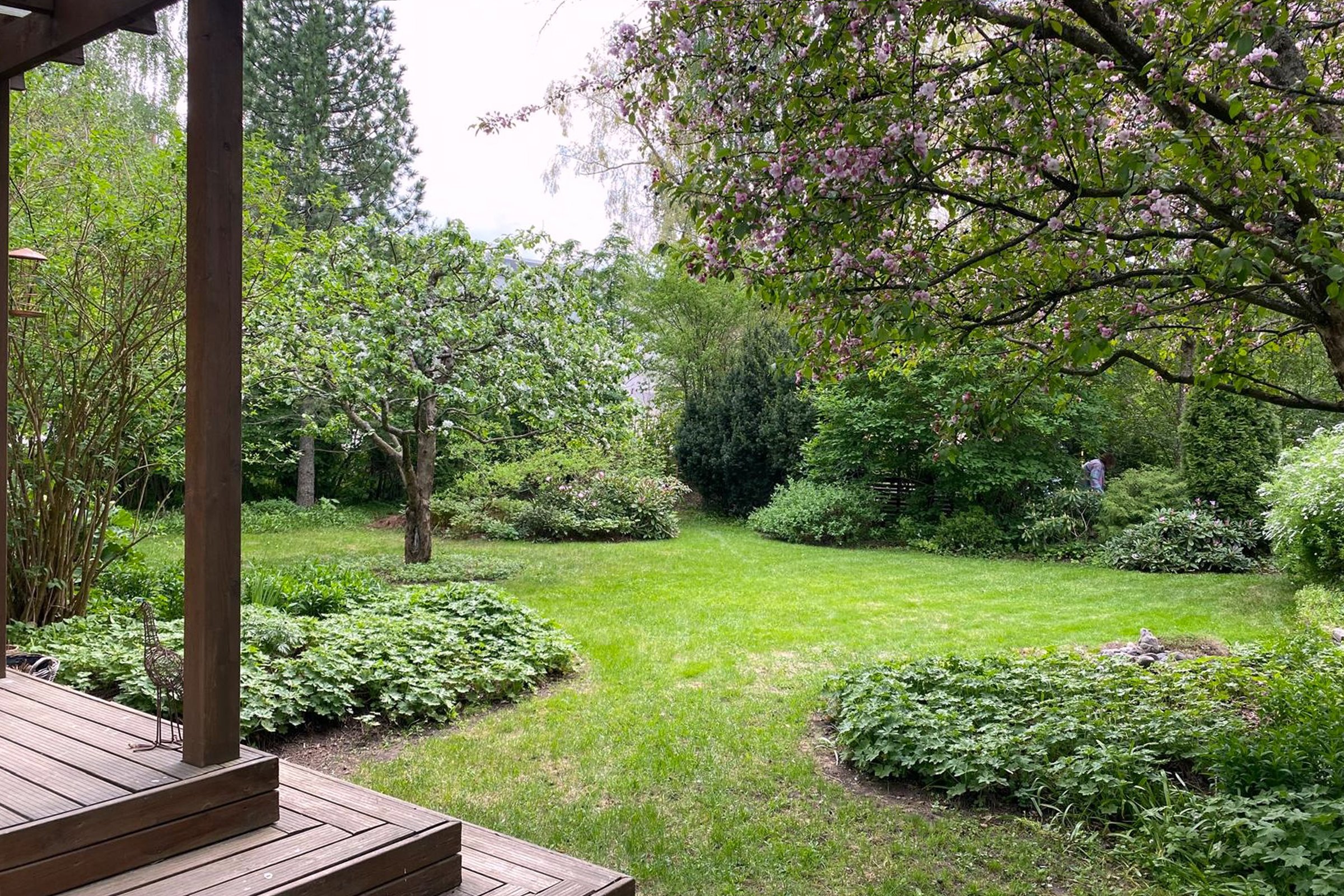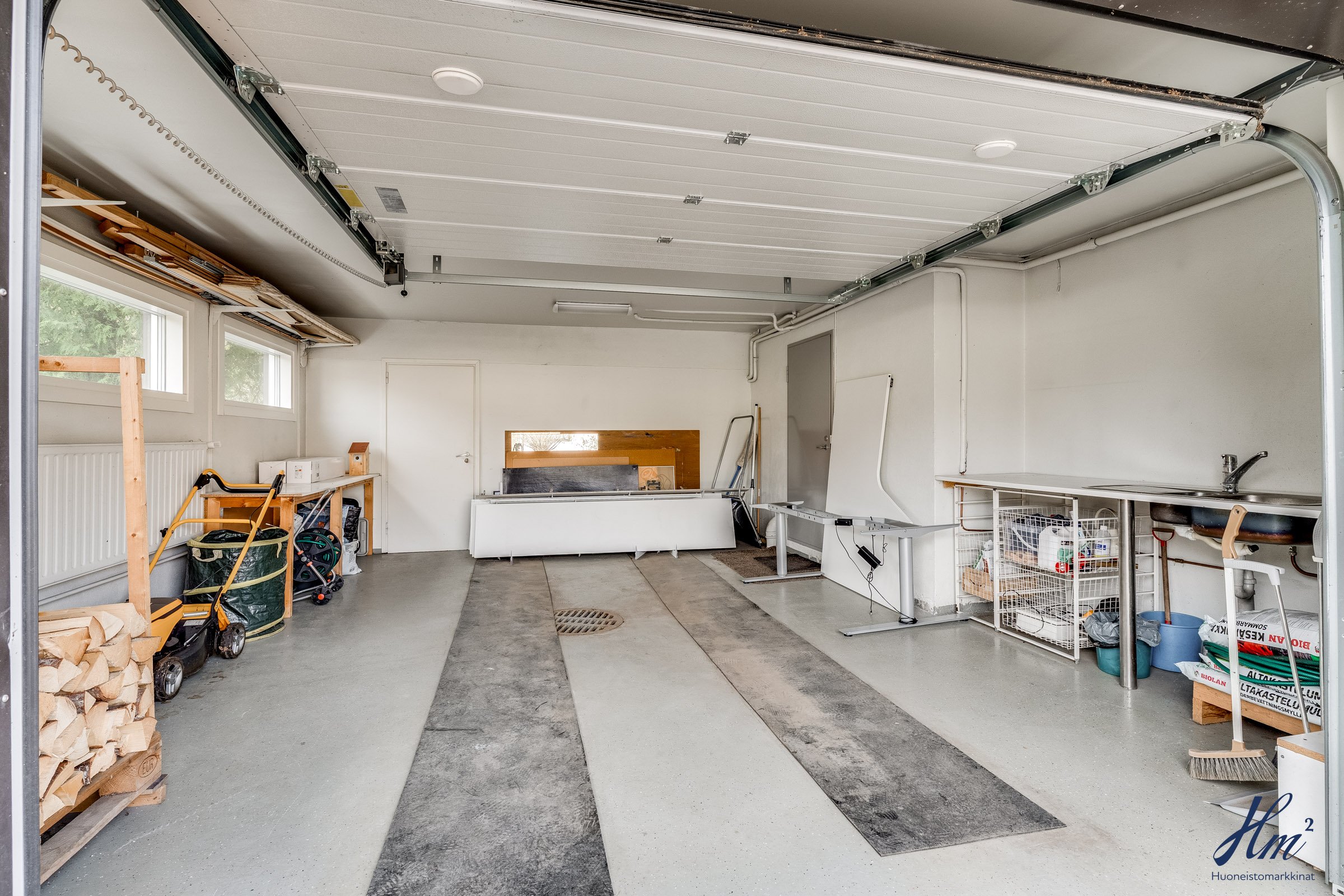 Mutta ehkä suurin ihastuksen kohde löytyy ulkoa – harvoin tulee vastaan näin upeaa ja huolella vaalittua puutarhapihaa. Osittain katettu terassi ja kesäkeittiö tekevät pihasta unelmien kesäolohuoneen, jossa grilliherkut maistuvat ja arki unohtuu.