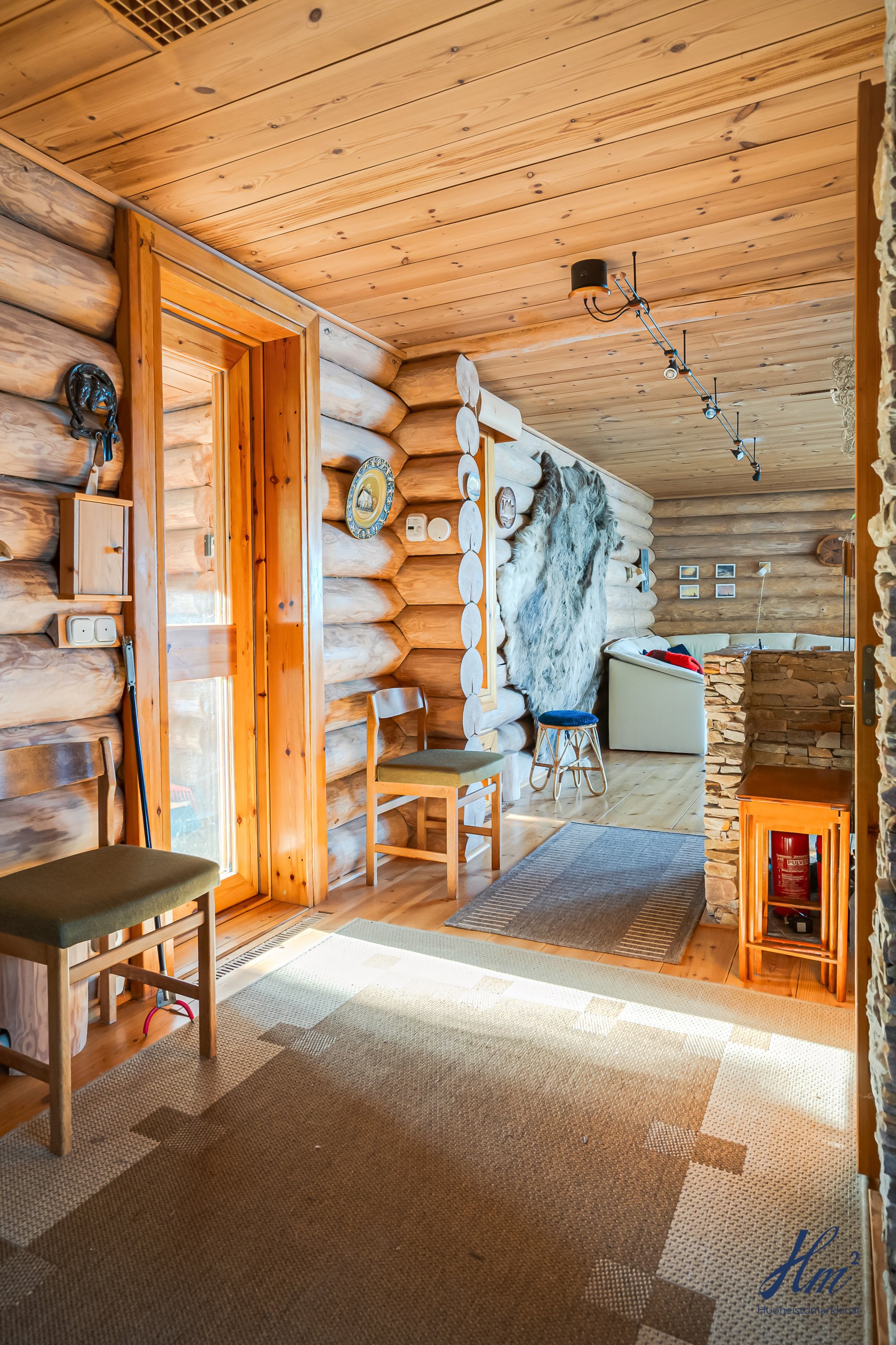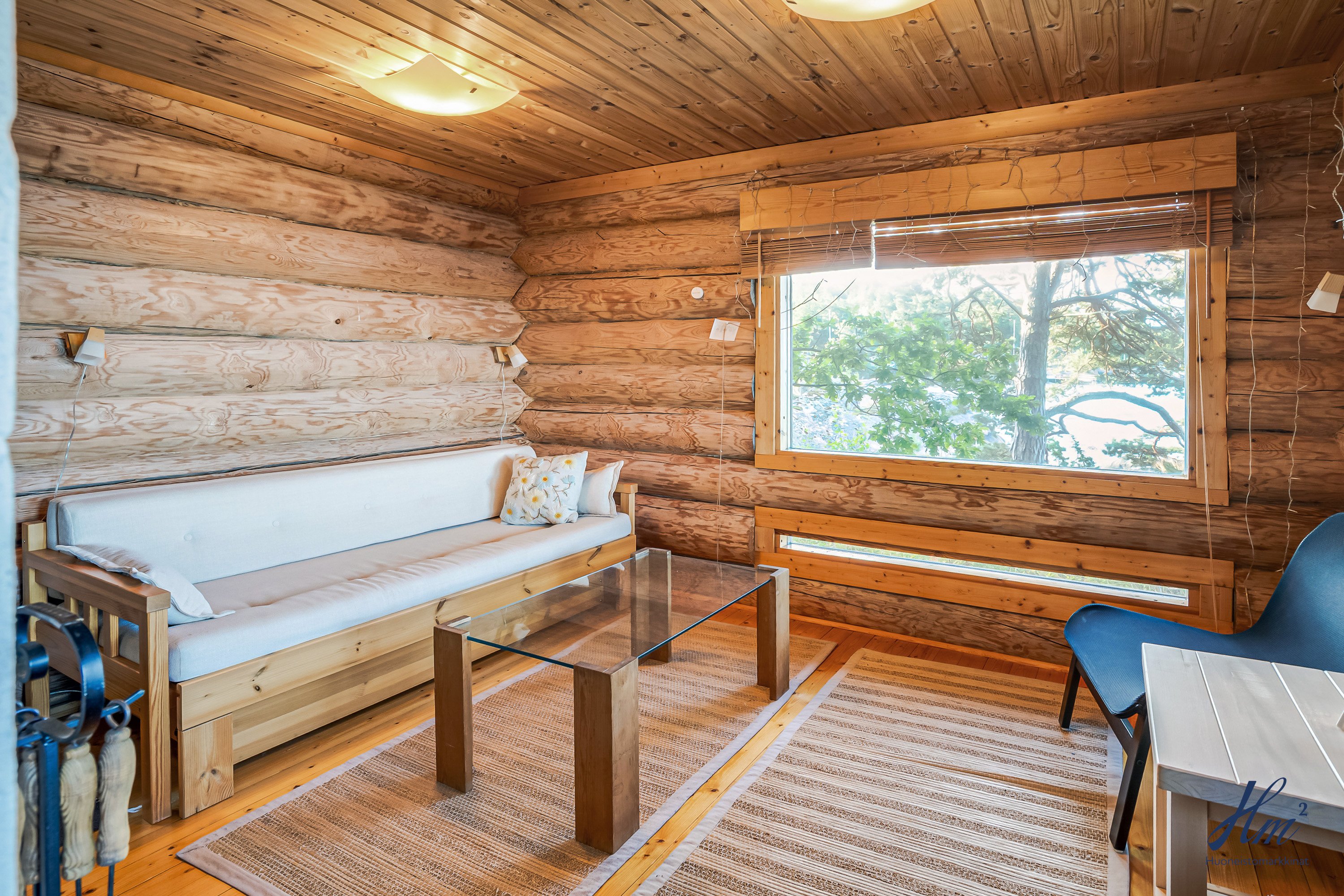 Pyöröhirsimökki pitää sisällään kolme makuuhuonetta, avaran ja yhtenäisen keittiö / oleskelutilan sekä pesuhuoneen ja saunan. Lämmitys on toteutettu vesi-ilmalämpöpumpulla ja jaettu vesikiertoisella lattialämmityksellä. Oleskelutilasta on kulku katetulle piha-alueelle, jonka yhteydestä on myös kulku erilliseen "studiotilaan". Rannan tuntumasta löytyy erillinen rantasaunarakennus, jonka yhteydessä on saunan lisäksi pesutilat ja oleskelutupa. Niin päärakennuksesta kuin rantasaunastakin aukeaa upea näkymä Airistolle.