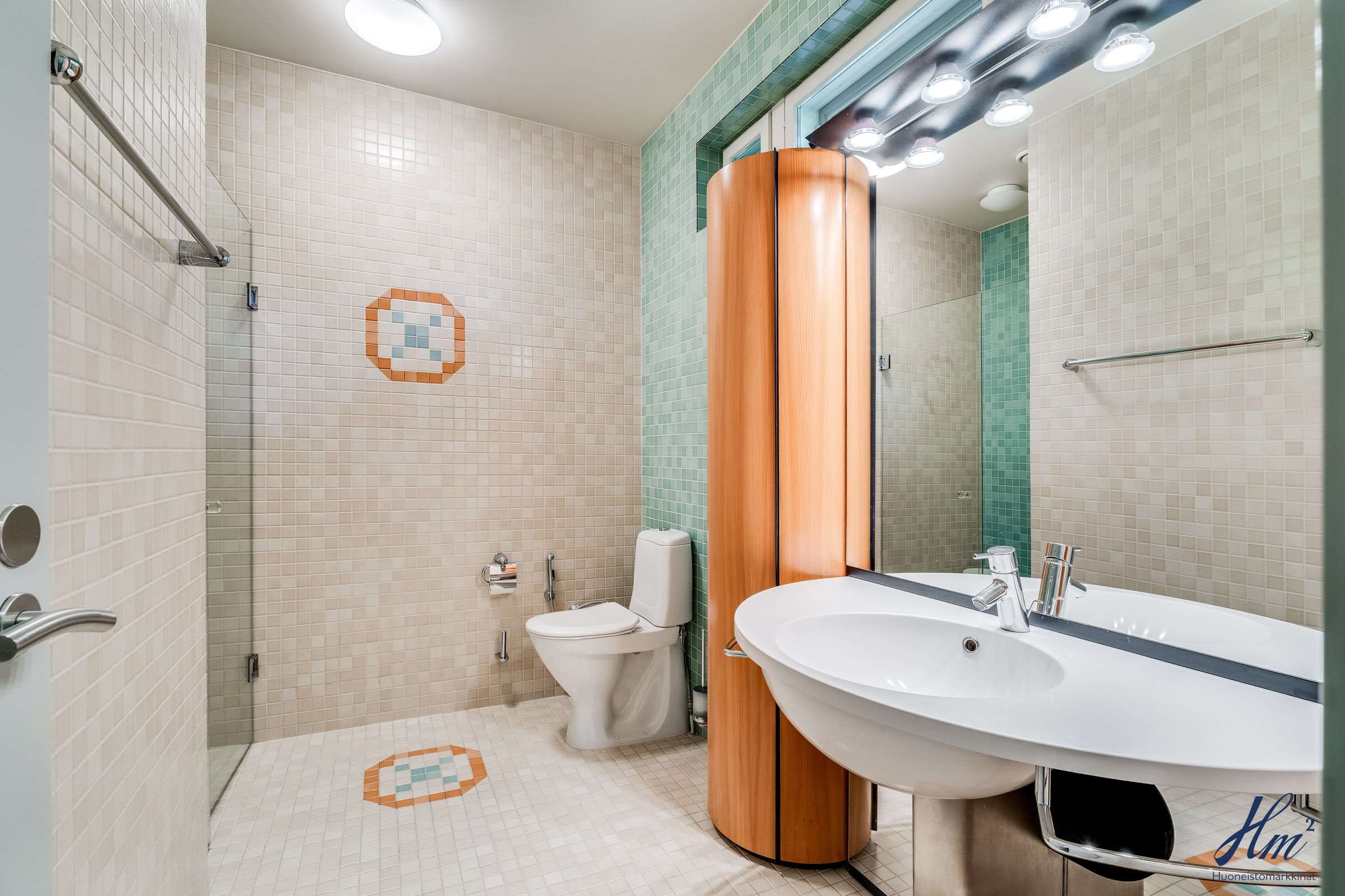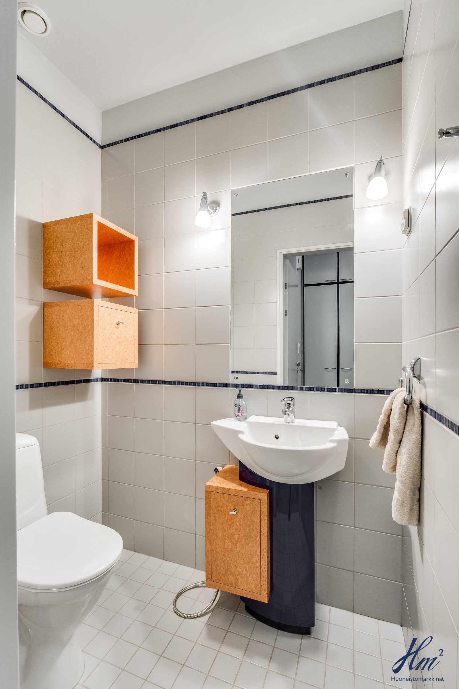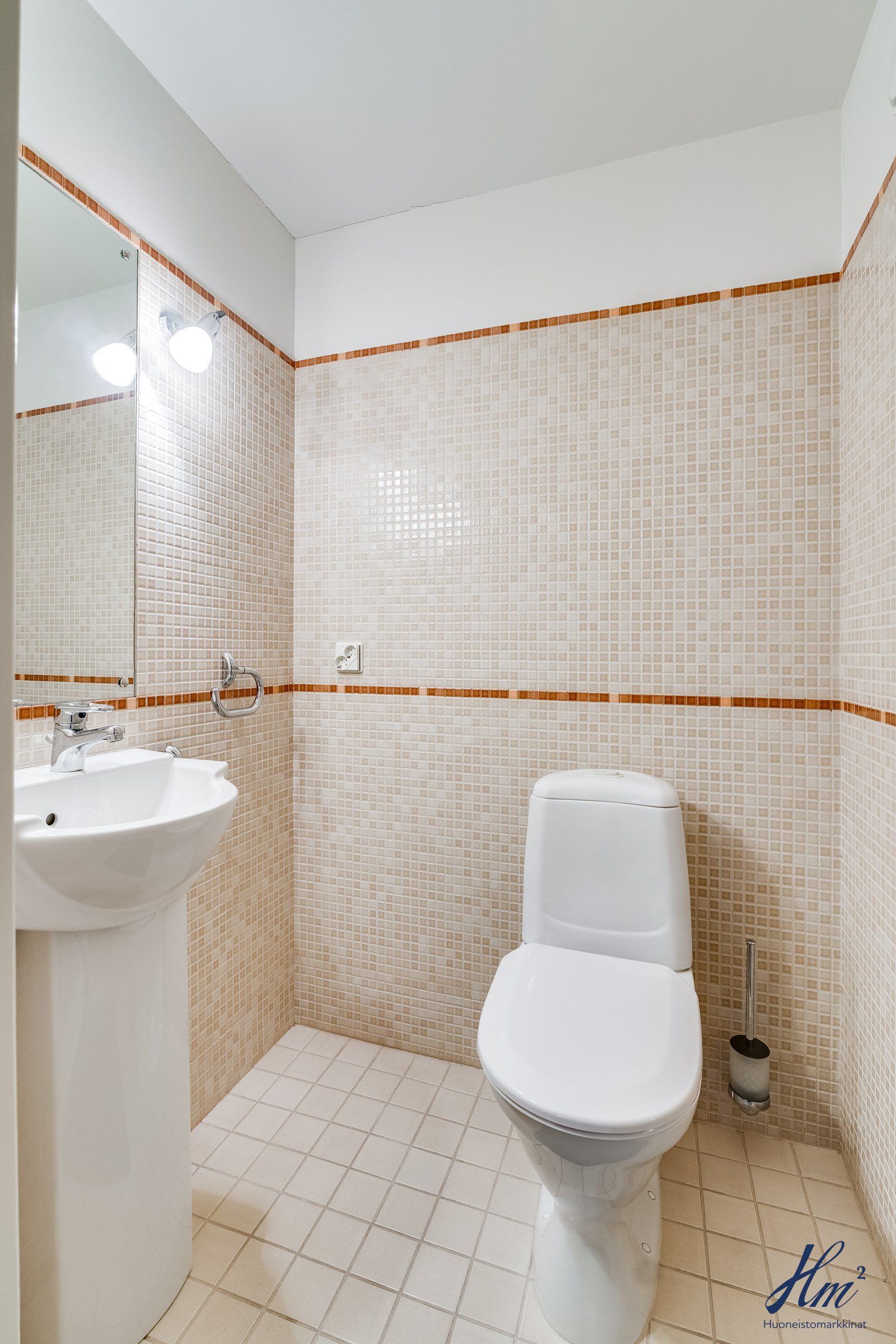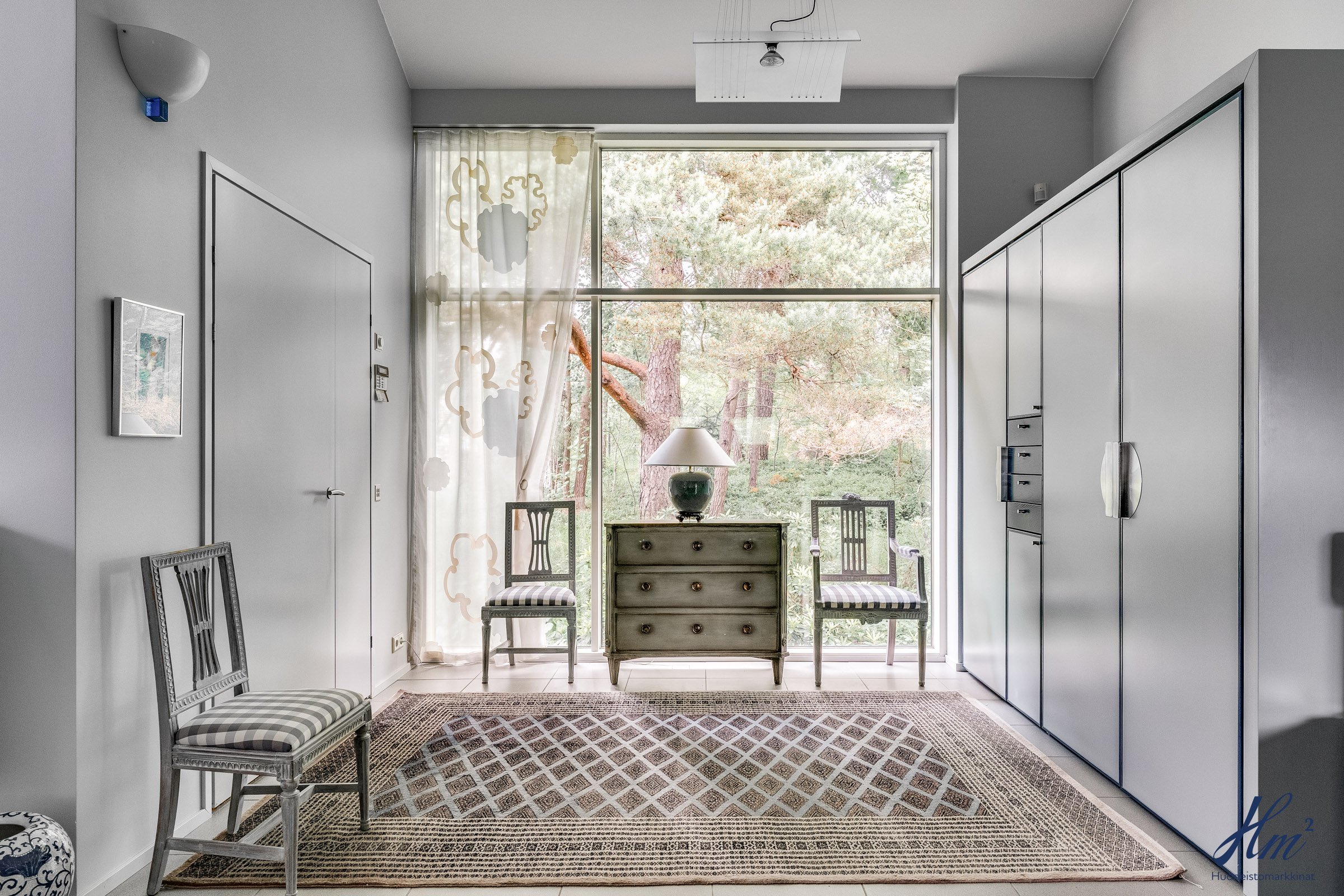 Pääasialliset asuintilat levittäytyvät käytännöllisesti yhteen tasoon. Yläkertaan sijoittuvat eteishalli, 2 erillistä huonetta, tilava olohuone / ruokailutila, keittiö, vaatehuone, erillinen wc-tila sekä toisen huoneen yhteydessä oleva oma pesuhuone / wc-tila. Olohuoneesta ja keittiöstä kuljetaan parvekkeelle, josta aukeaa esteettömät näkymät etelän suuntaan. Alakerrasta löytyvät taas iso kodinhoitohuone, yksi huone tulisijalla, erittäin tilavat vaatehuone ja varastotilat sekä kahden auton lämmin talli.