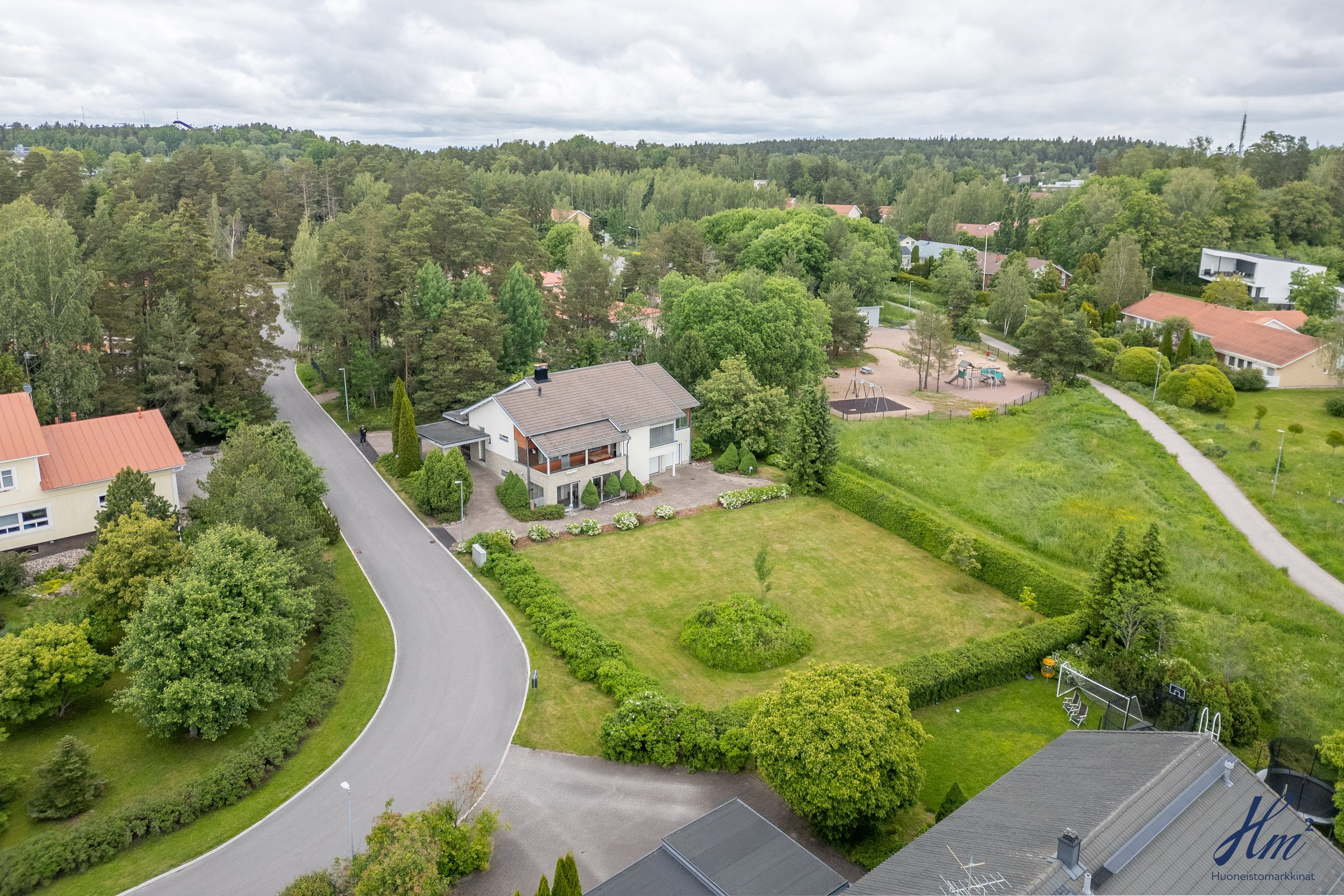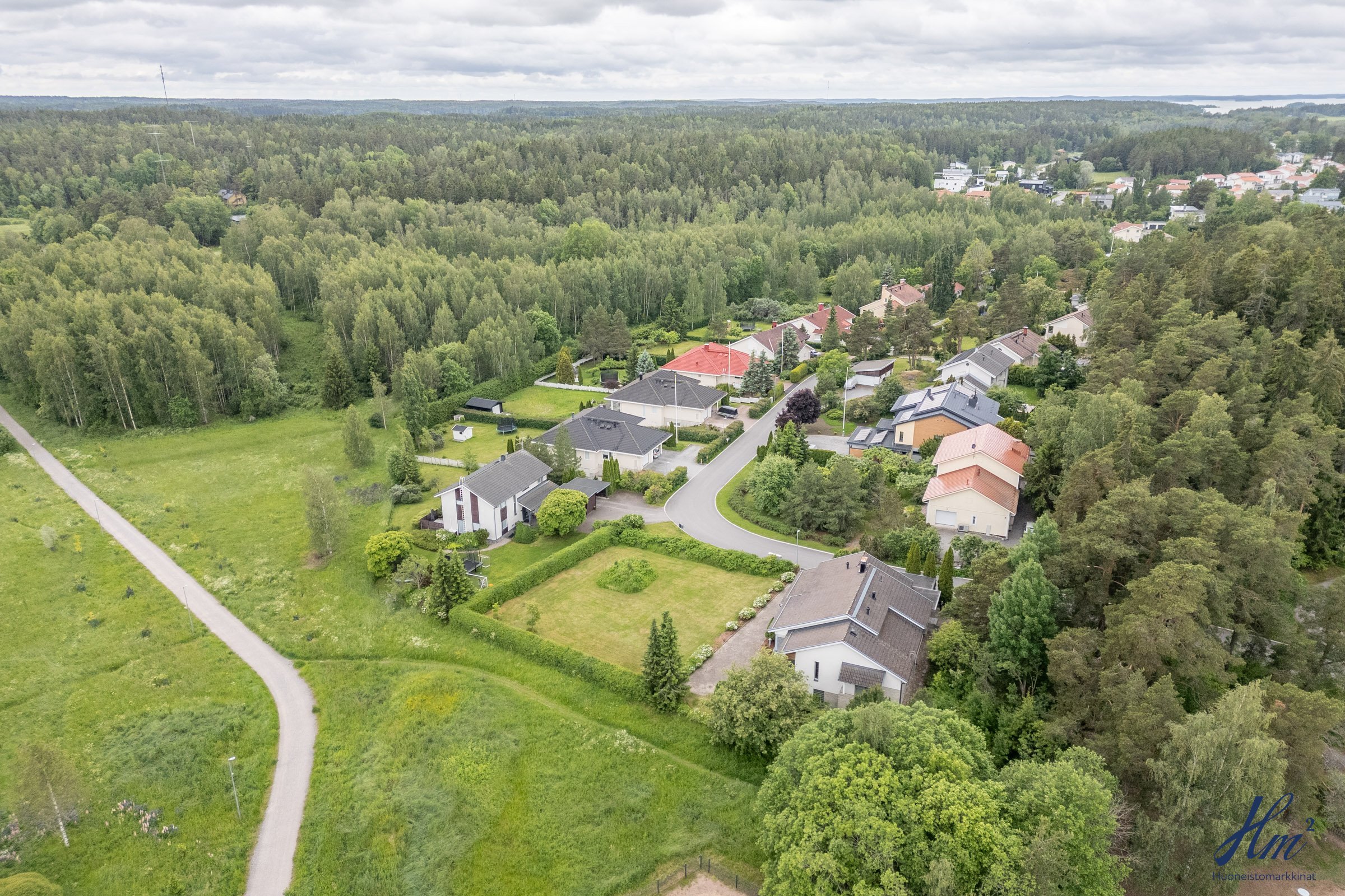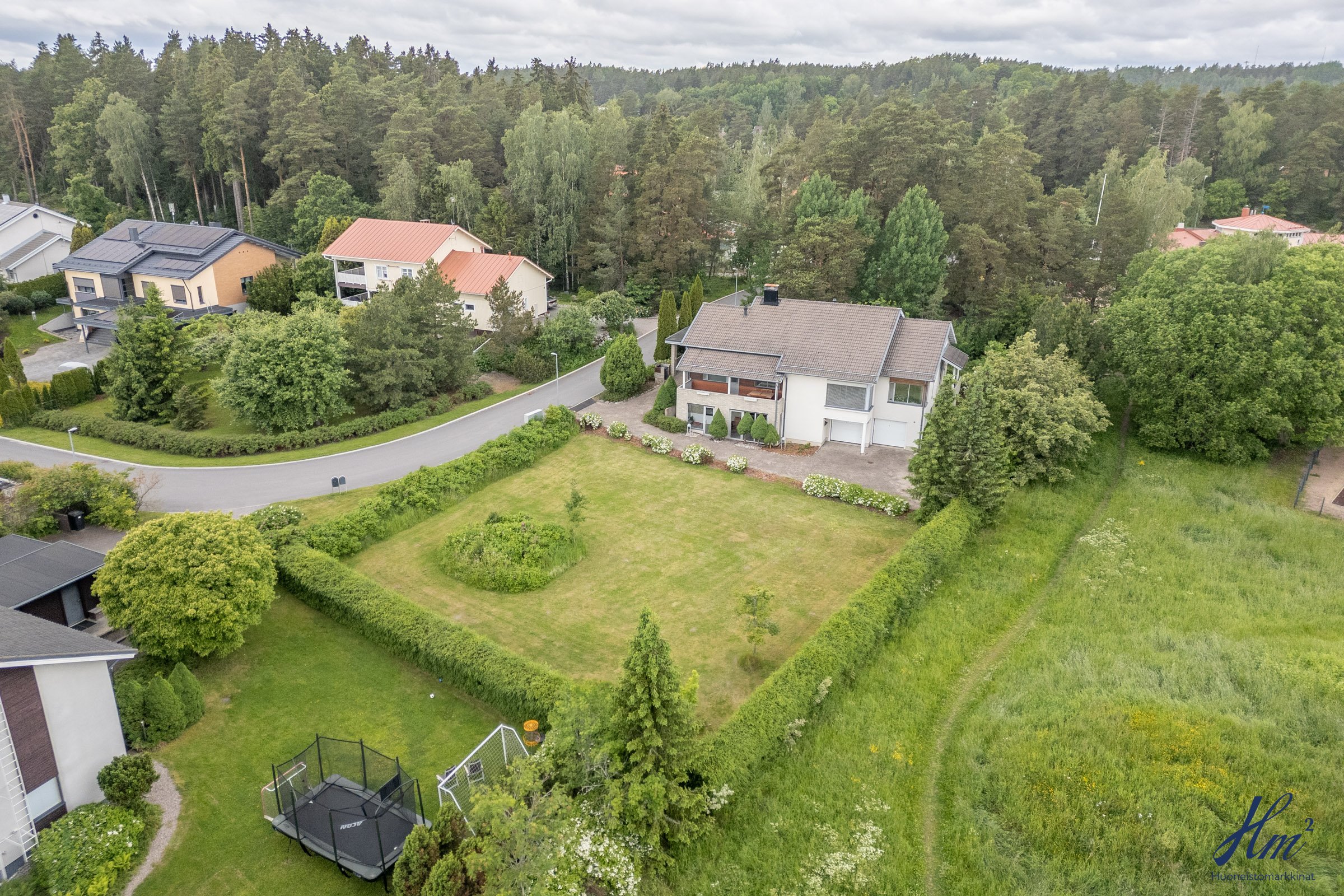 Helppohoitoinen ja oma 865 m²:n tontti rajoittuu kahdelta sivulta puistoon, mikä lisää pihan viihtyisyyttä. Sijainti Hirvensalossa on myös mitä mainioin, liikut sitten julkisilla, pyörällä taikka omilla muilla kulkuneuvoilla, sillä palvelut ja keskusta ovat lähellä. Myös luontoon ja lenkille on helppo lähteä suoraan omalta takapihalta.