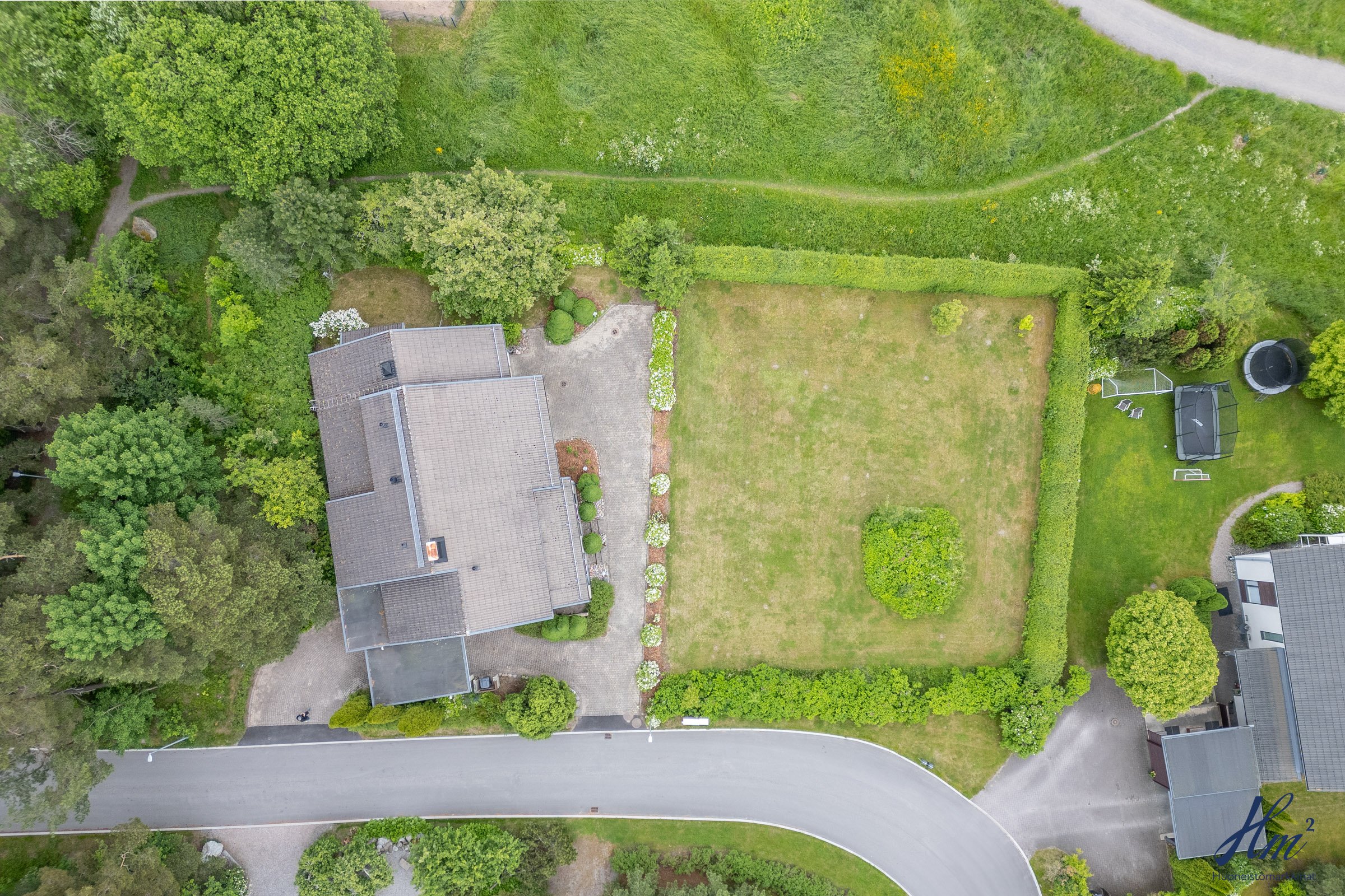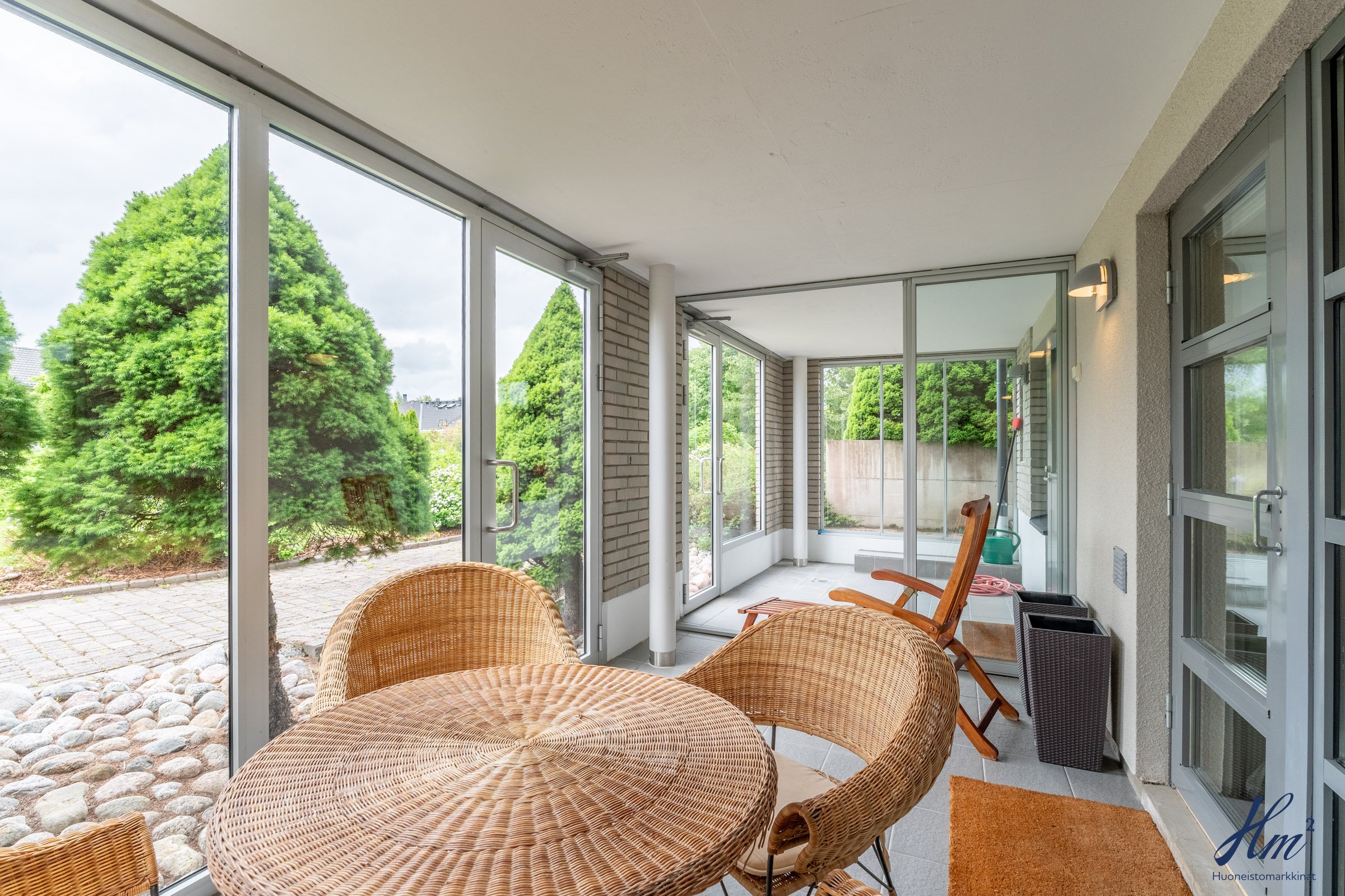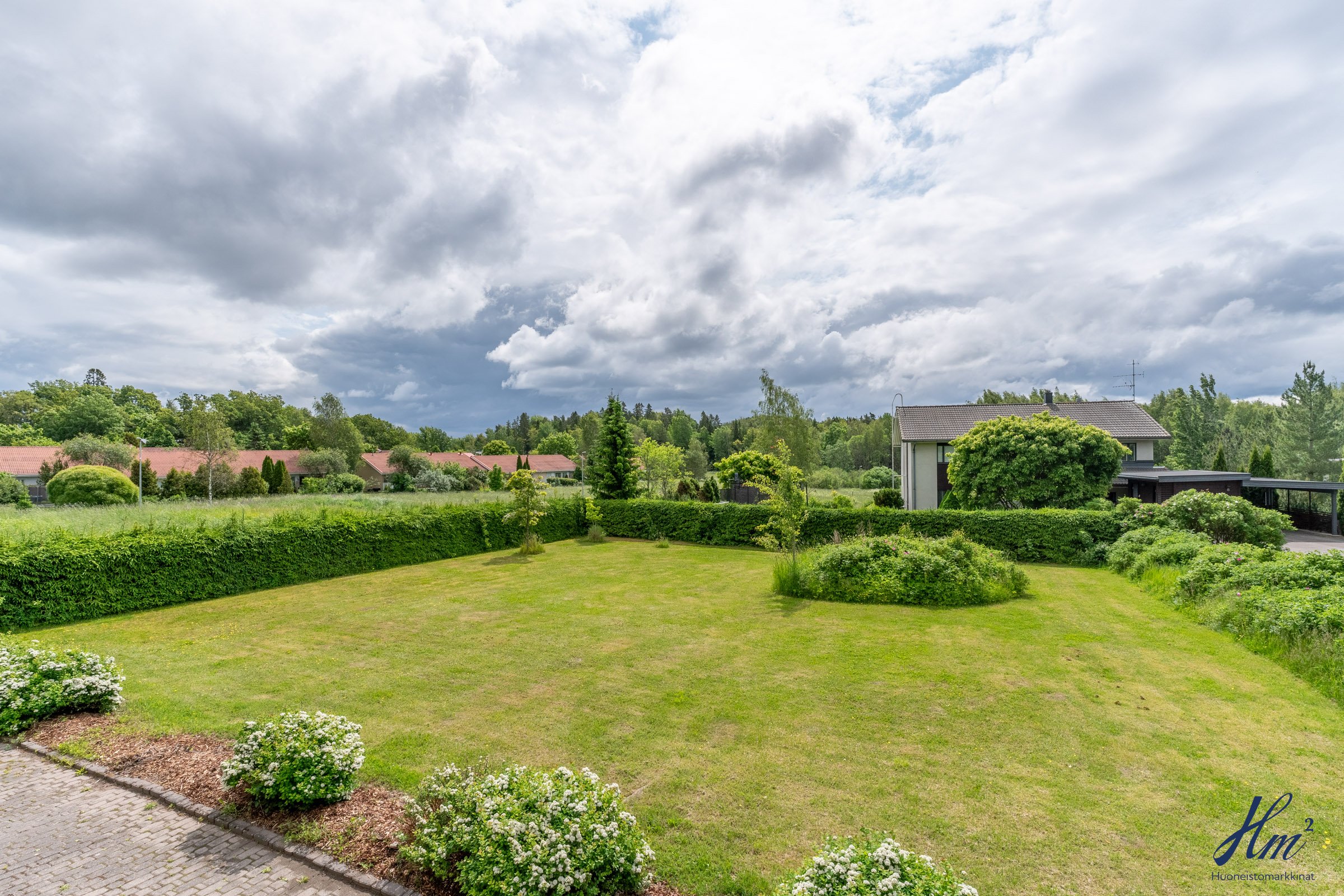 Helppohoitoinen ja oma 865 m²:n tontti rajoittuu kahdelta sivulta puistoon, mikä lisää pihan viihtyisyyttä. Sijainti Hirvensalossa on myös mitä mainioin, liikut sitten julkisilla, pyörällä taikka omilla muilla kulkuneuvoilla, sillä palvelut ja keskusta ovat lähellä. Myös luontoon ja lenkille on helppo lähteä suoraan omalta takapihalta.